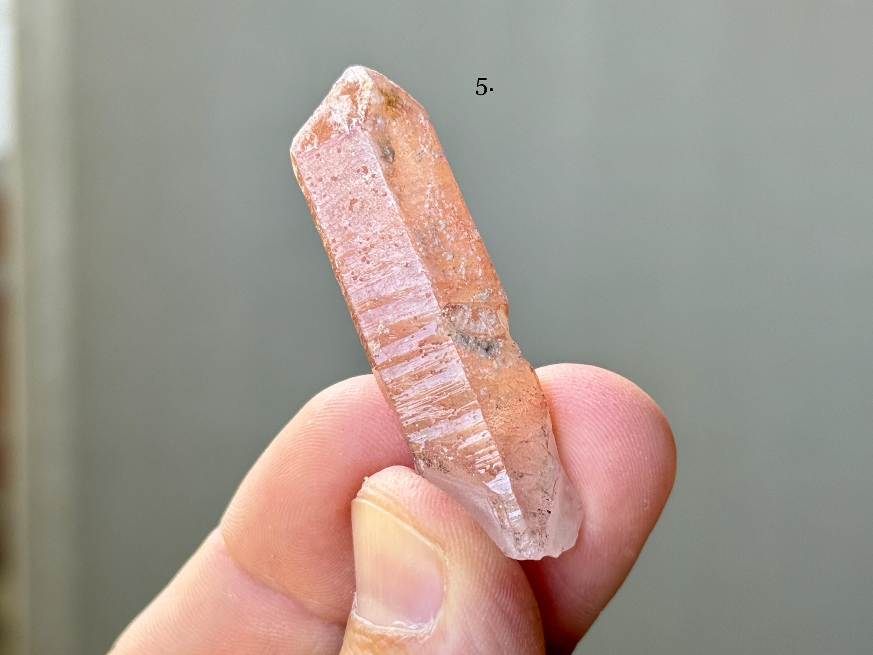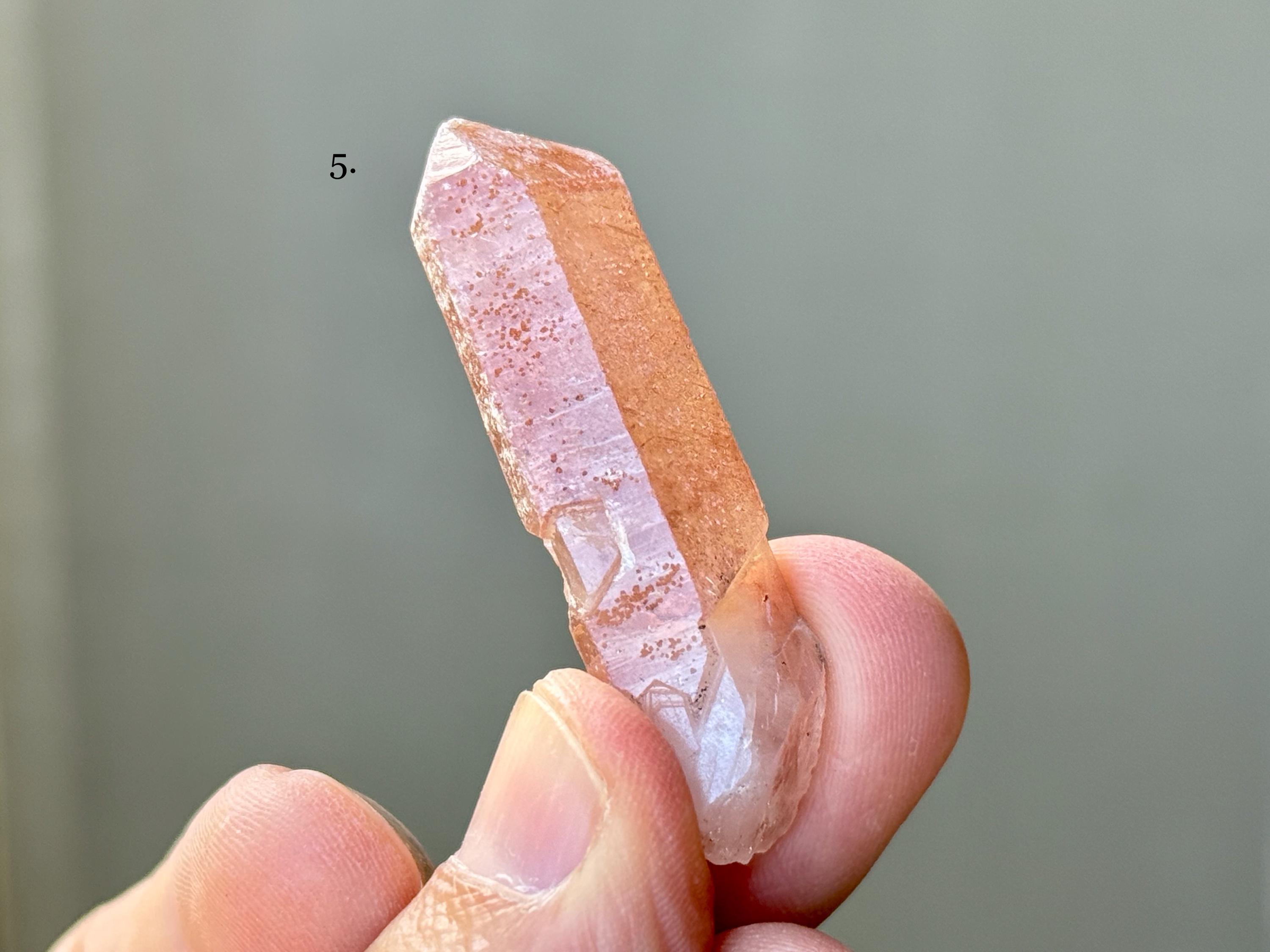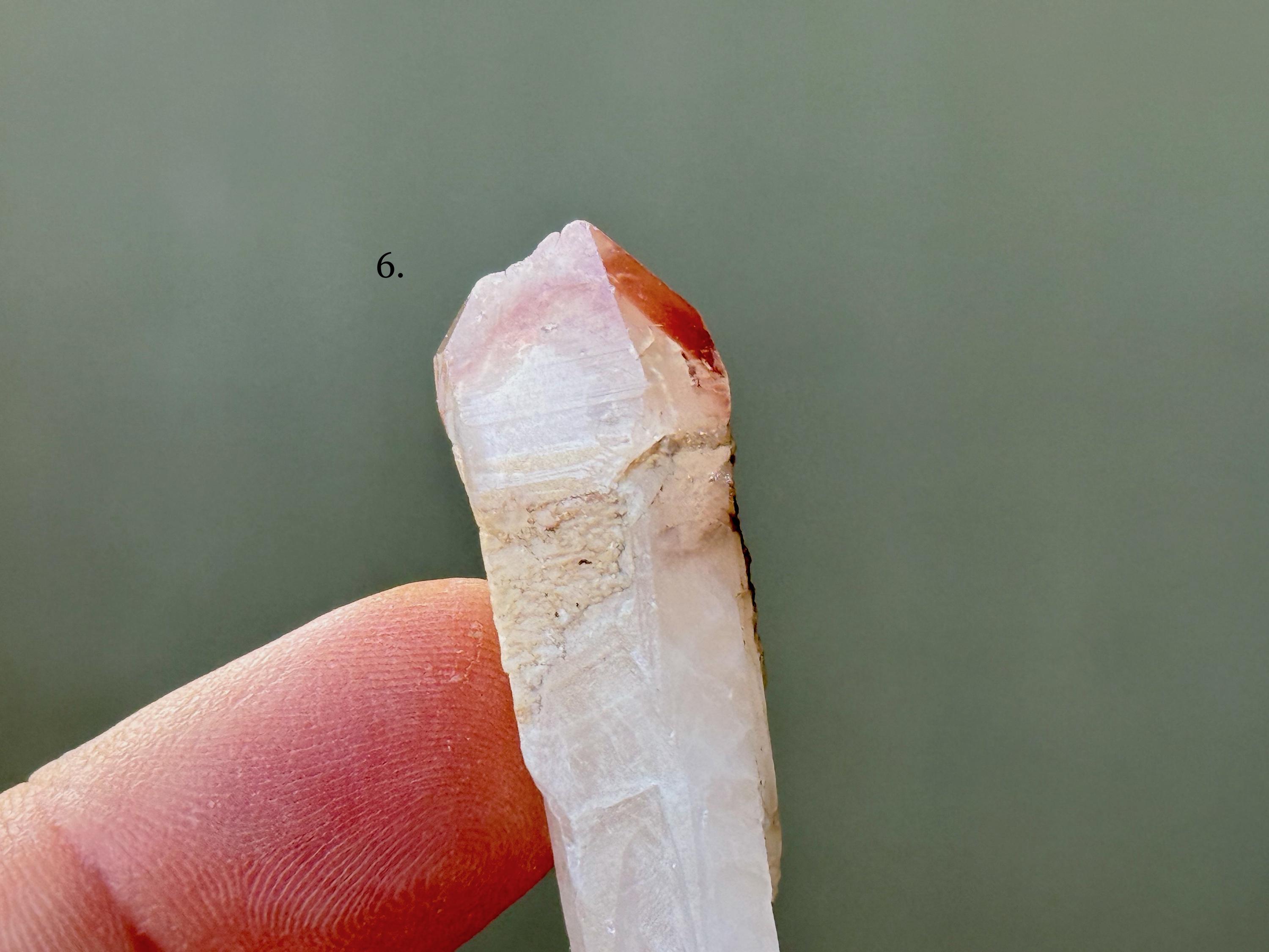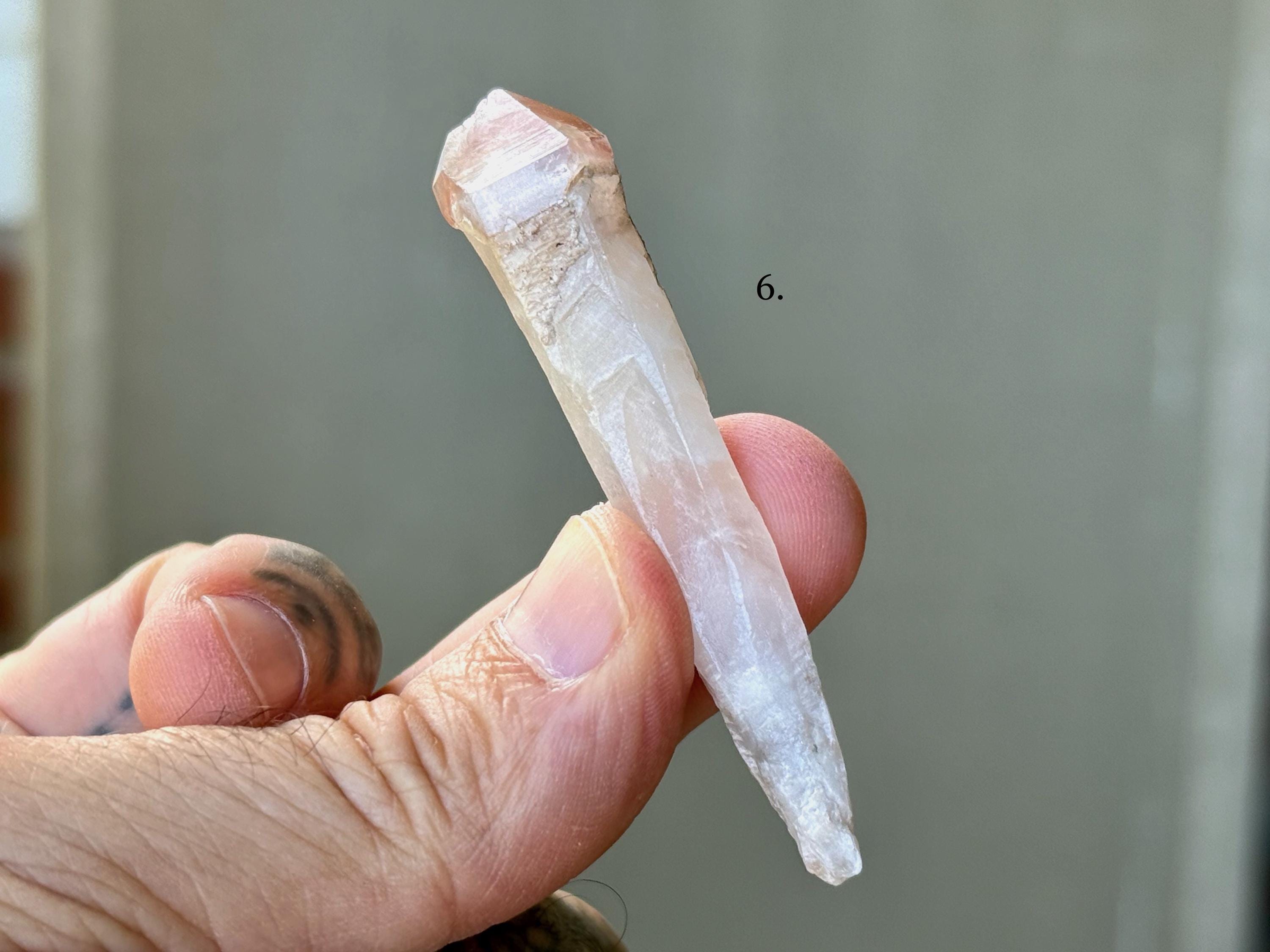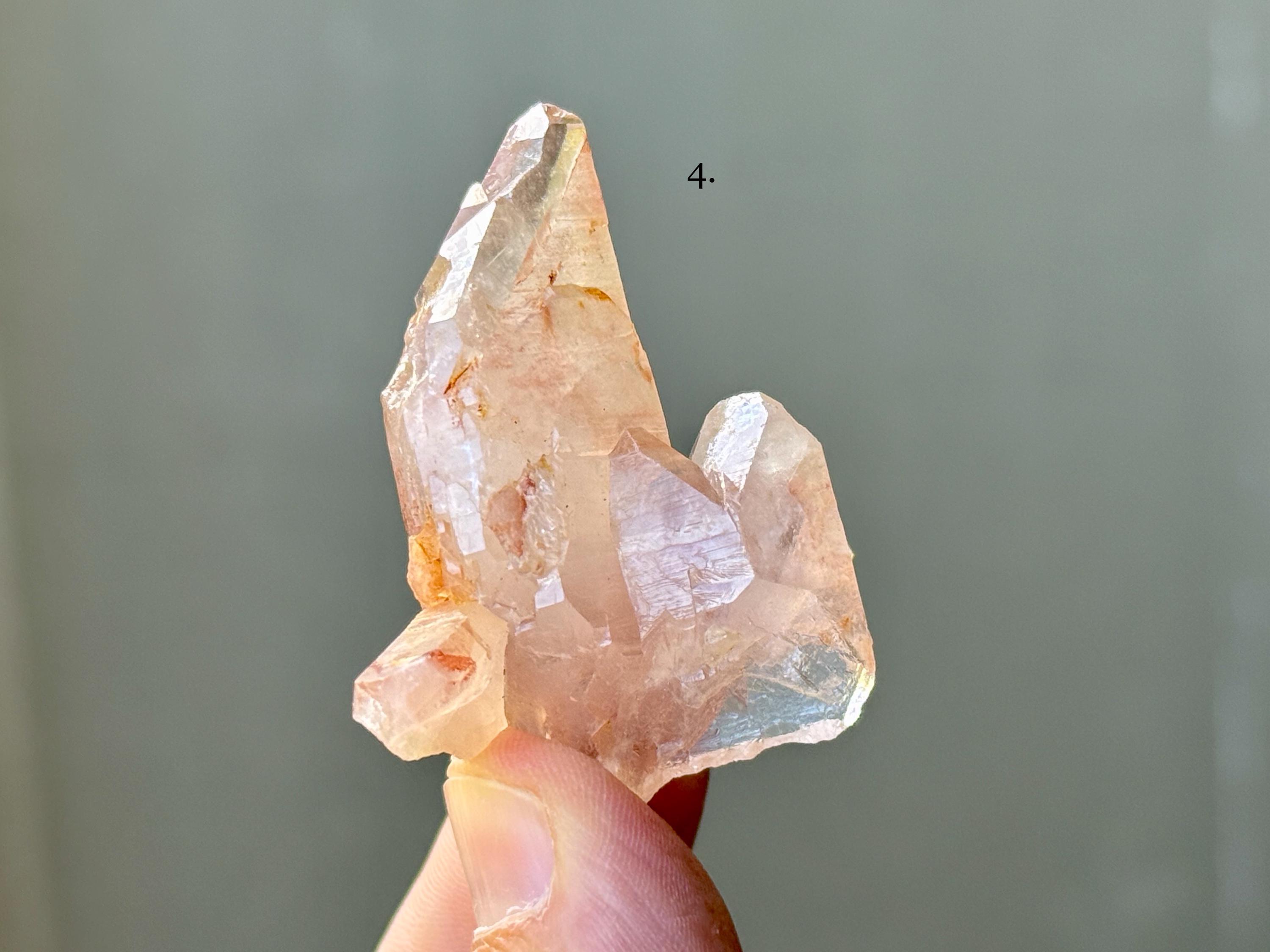 A gorgeous collection of Pink Lithium Quartz points! Simply select the crystal(s) of your preference from the dropdown menu (#1-8). The crystals are numbered in Photo 1, as well as in each subsequent photo. Each photo in the dropdown correlates to the actual crystal purchased.