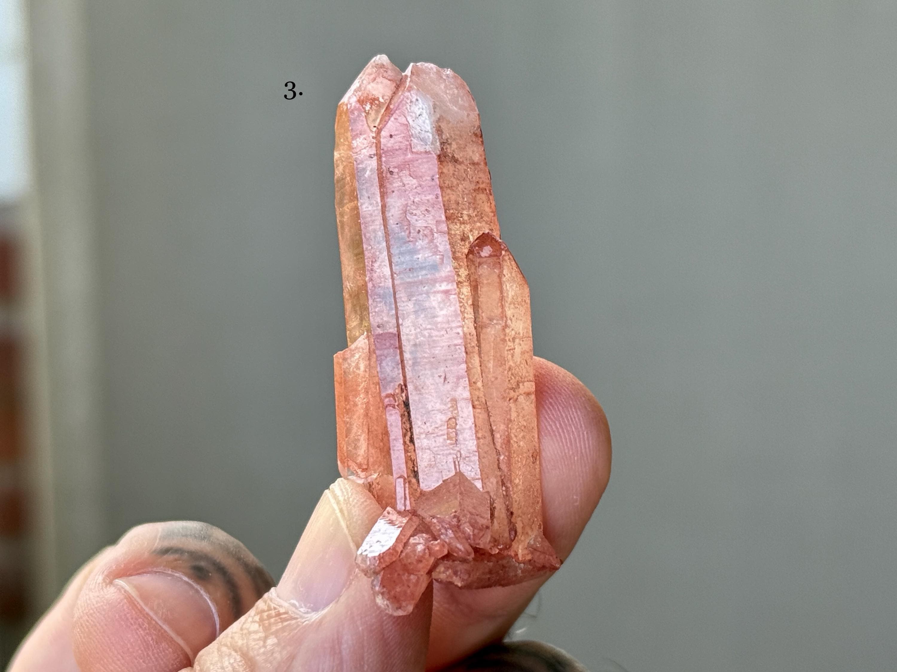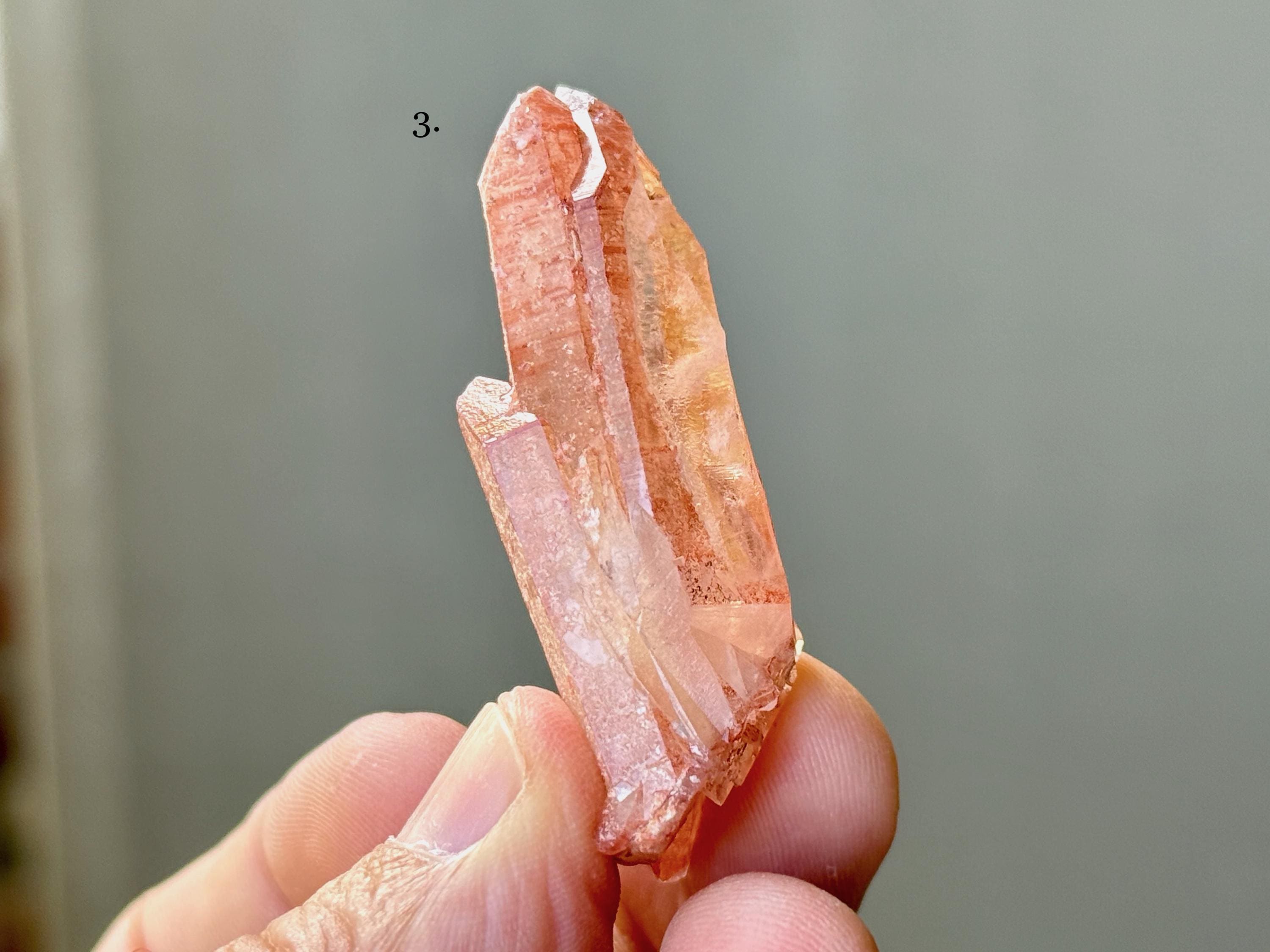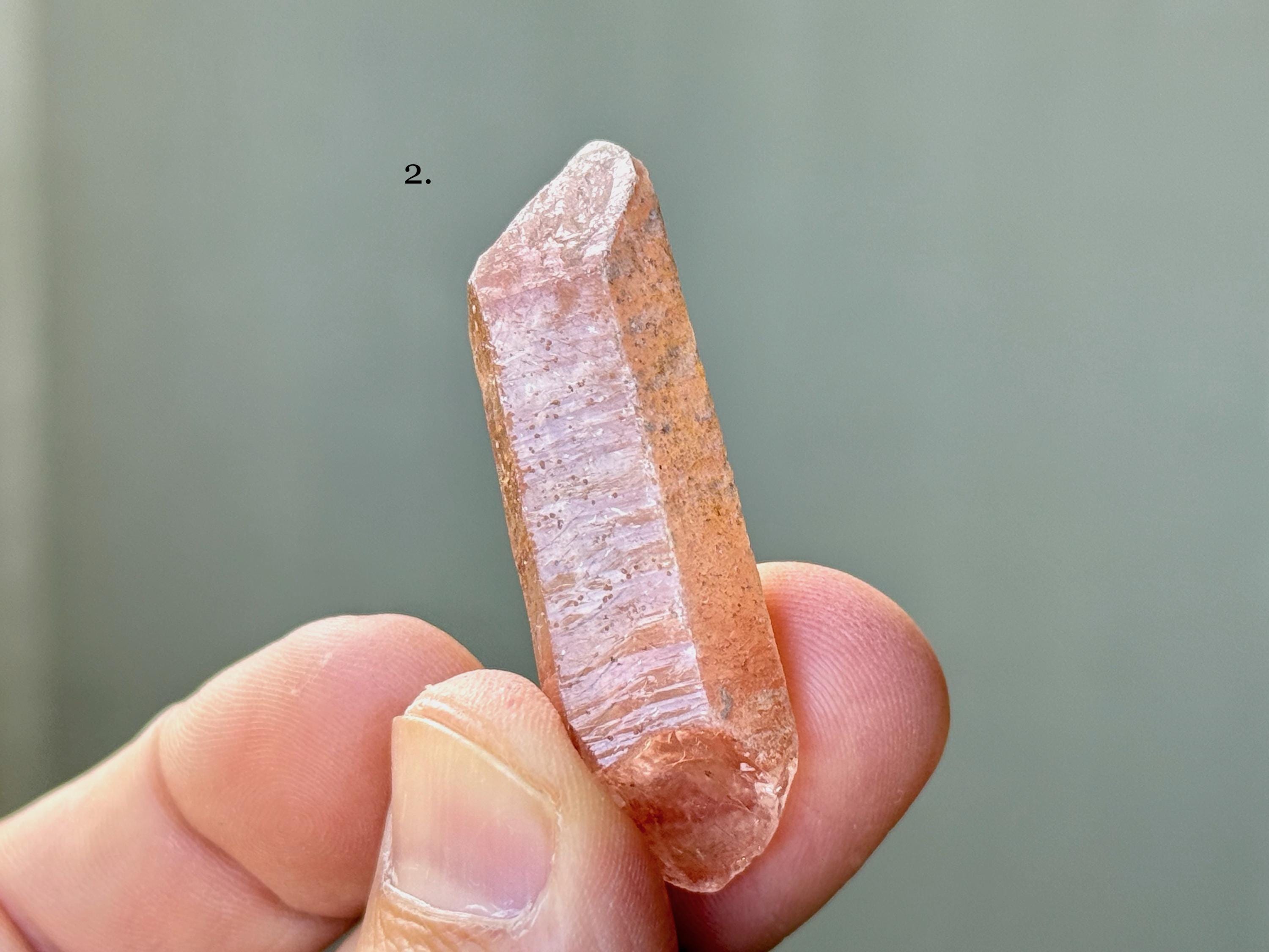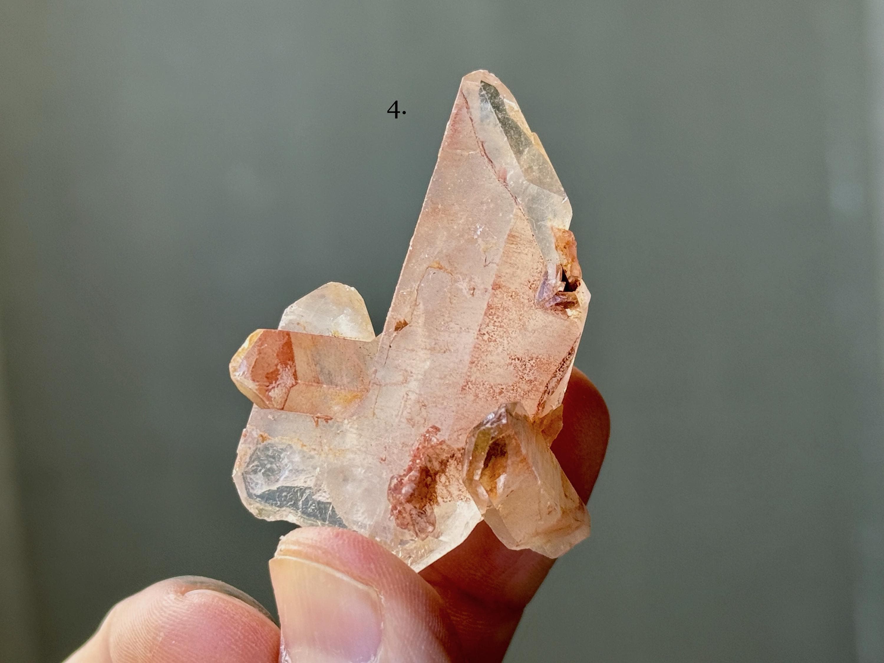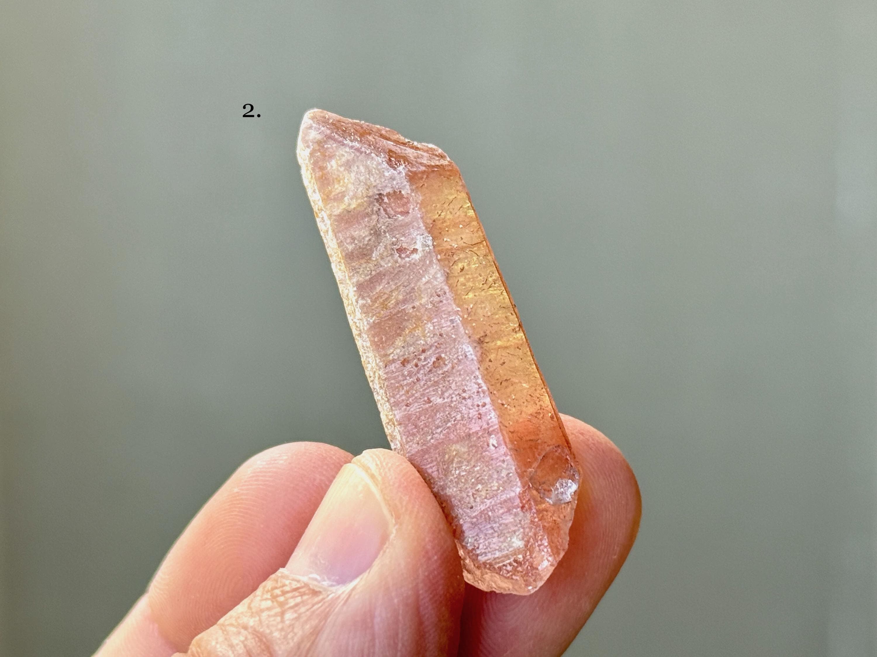 A gorgeous collection of Pink Lithium Quartz points! Simply select the crystal(s) of your preference from the dropdown menu (#1-8). The crystals are numbered in Photo 1, as well as in each subsequent photo. Each photo in the dropdown correlates to the actual crystal purchased.