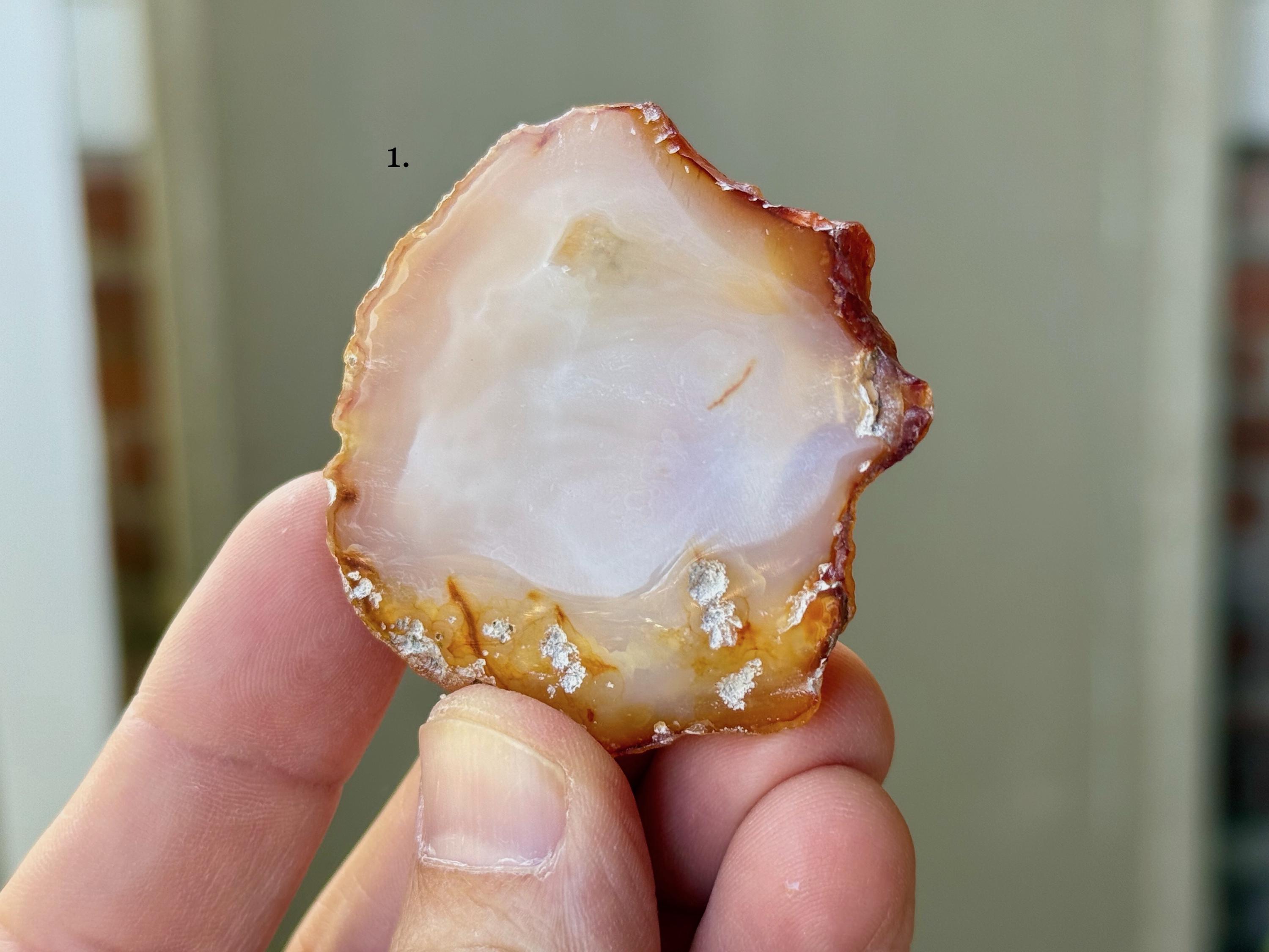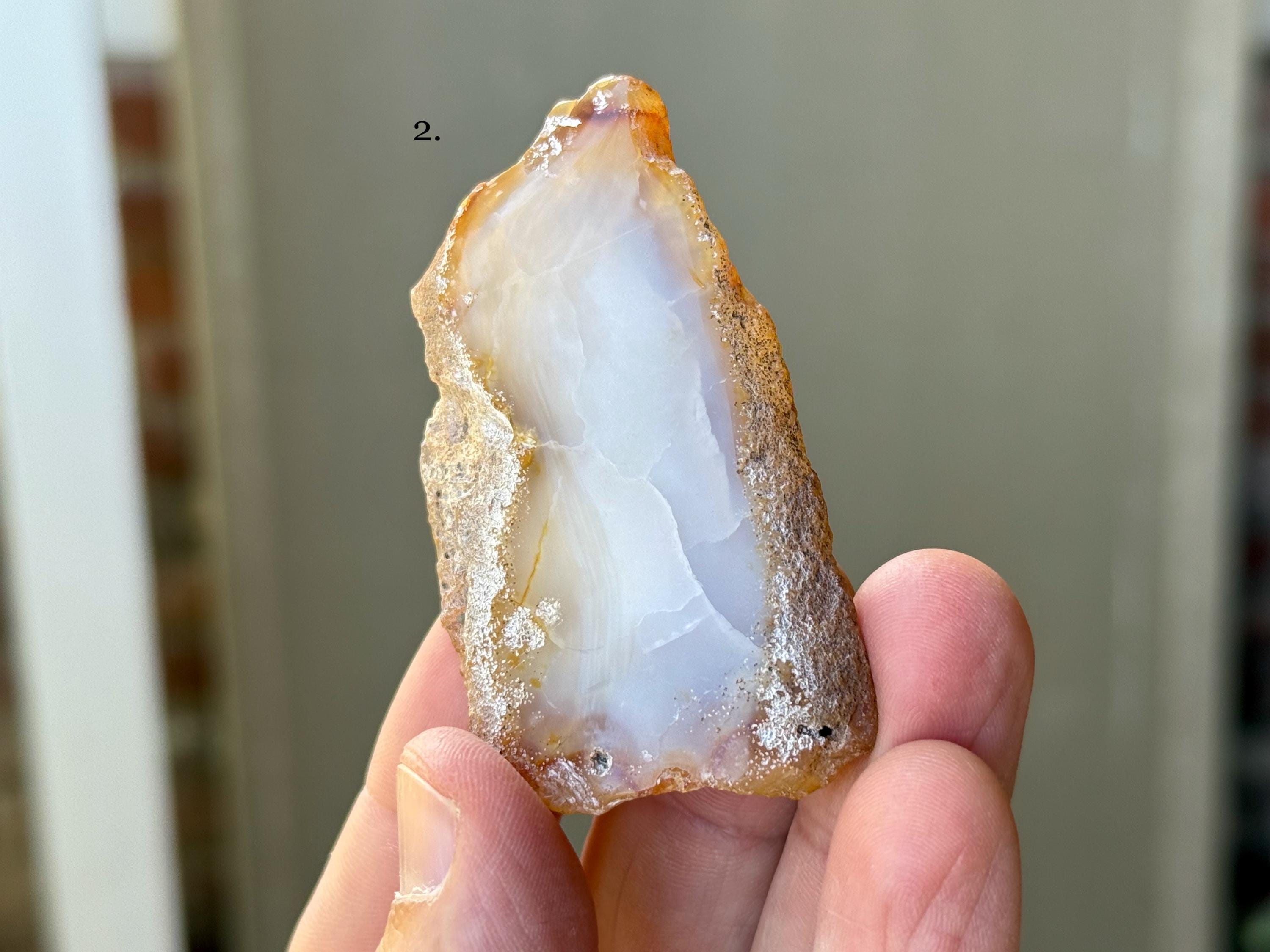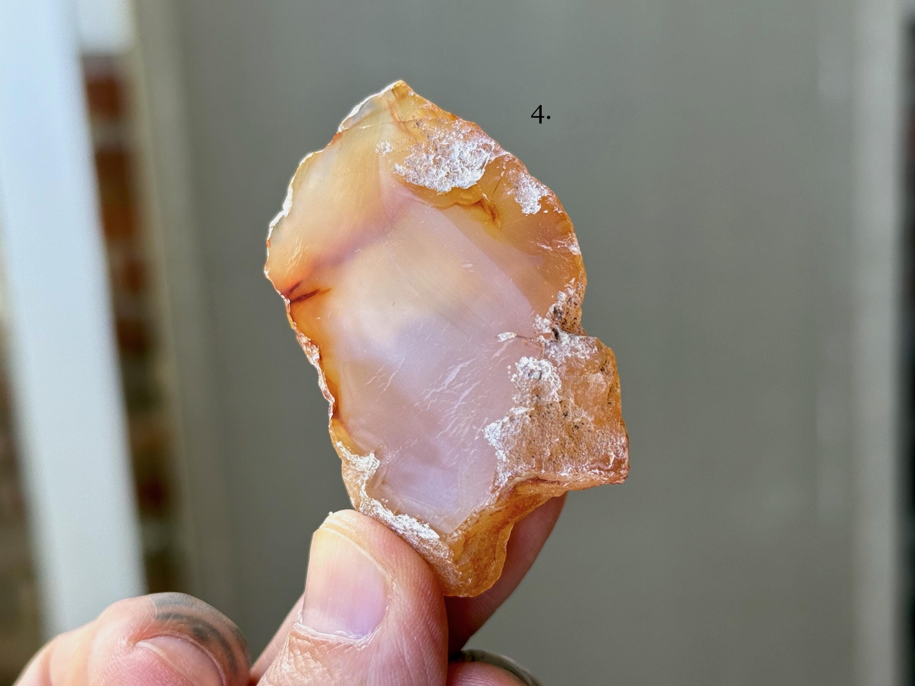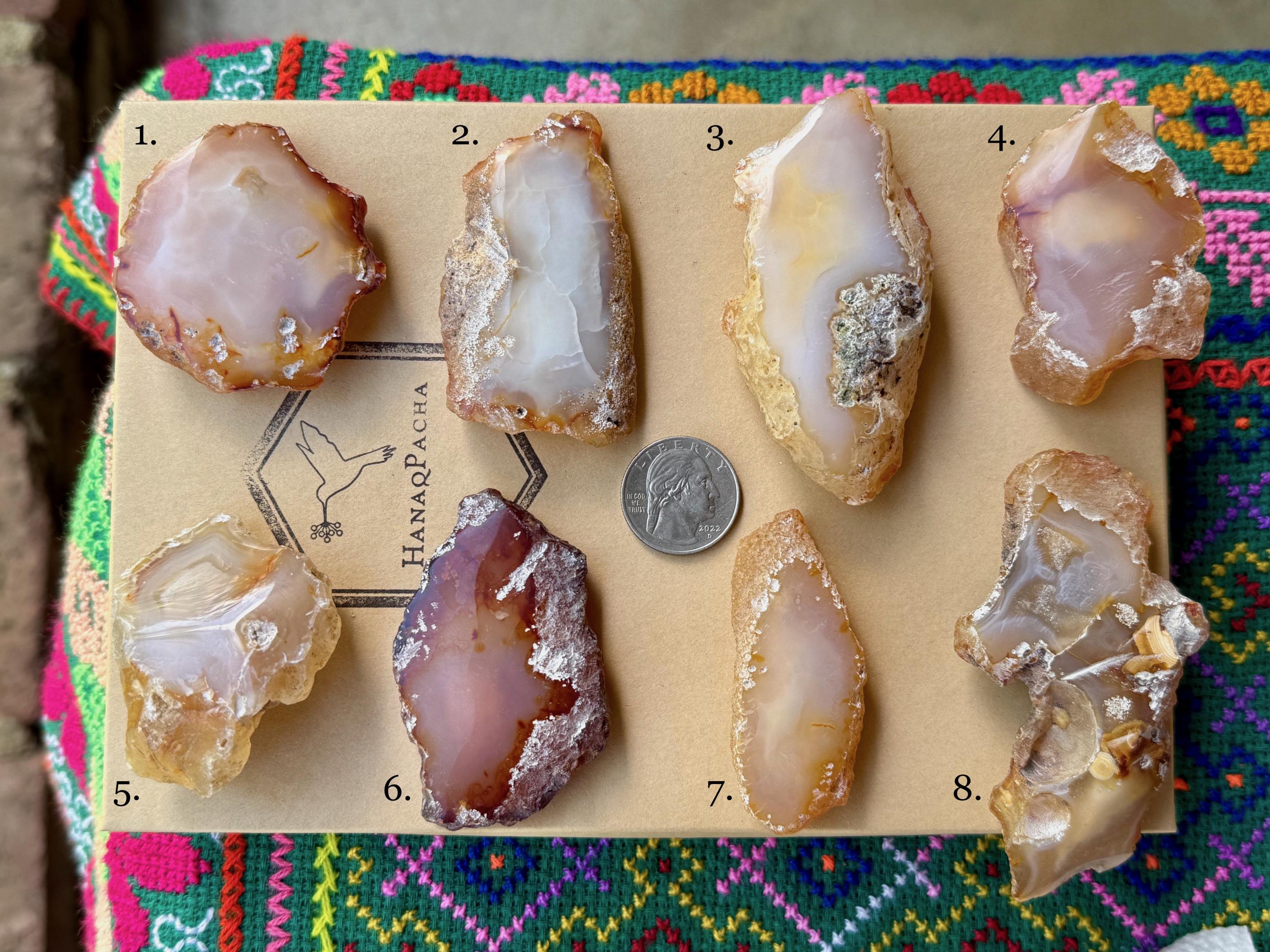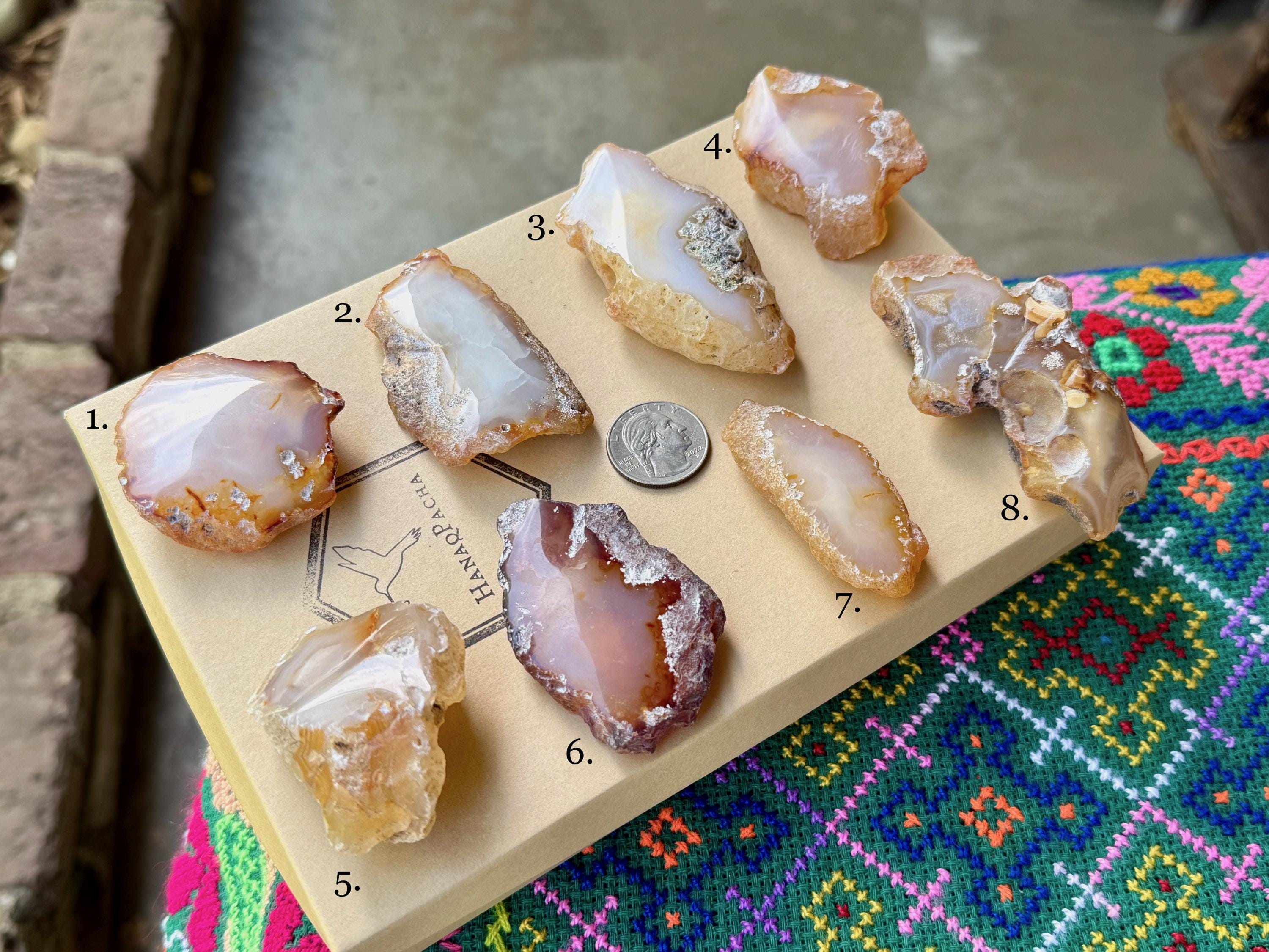 This selection of beautiful Carnelian Agate comes from a recent find in Java, Indonesia. Each selection is numbered, simply select the one(s) you'd like from the dropdown.