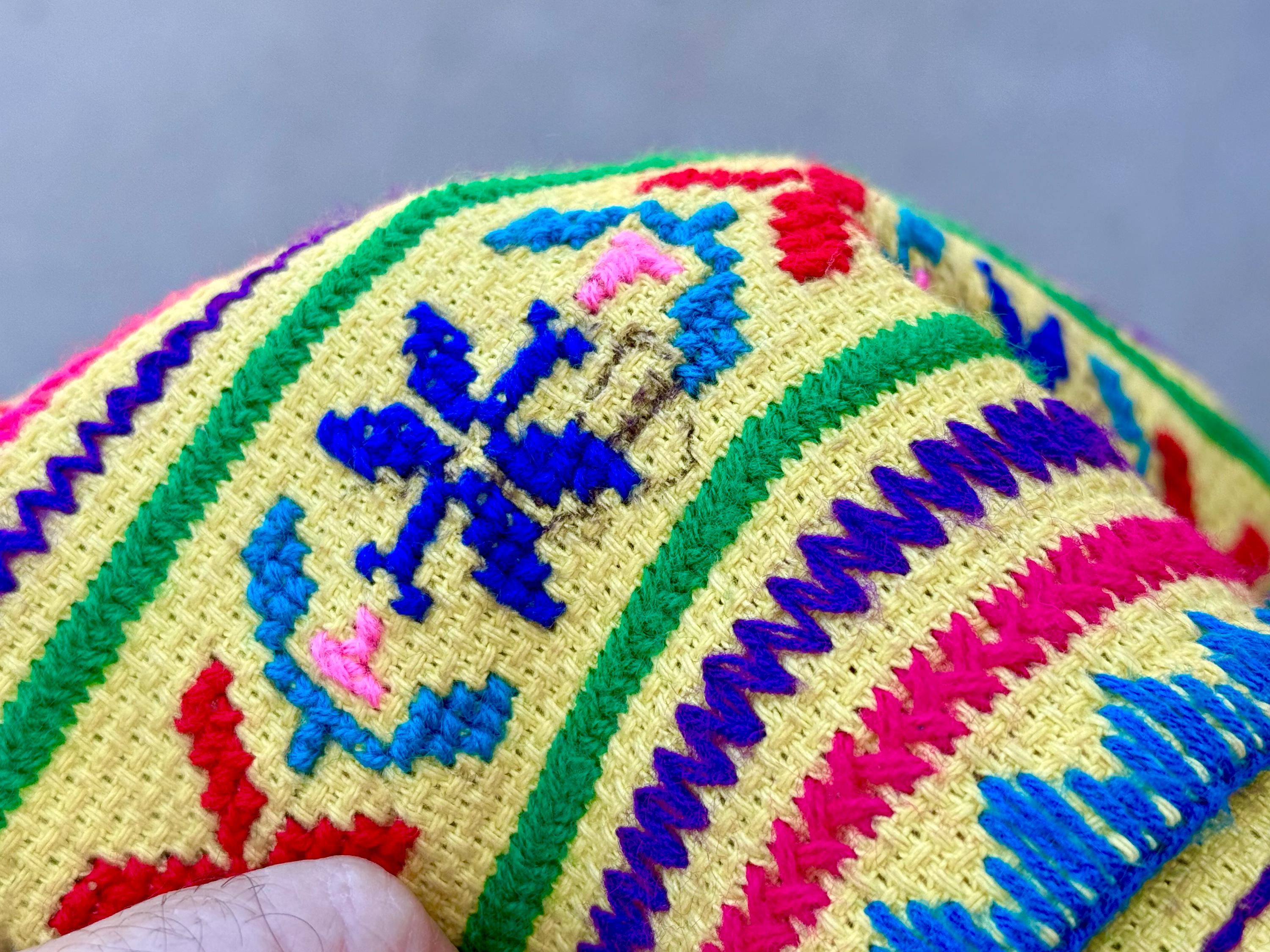 This stunning manta cloth was hand-embroidered by the talented Peruvian artisan Laura Rengifo in Pucallpa, Peru.