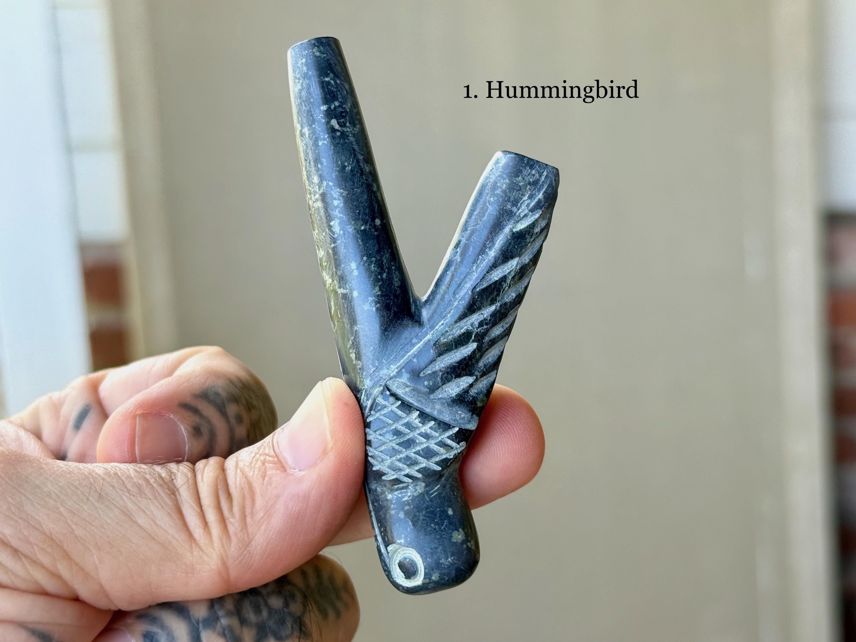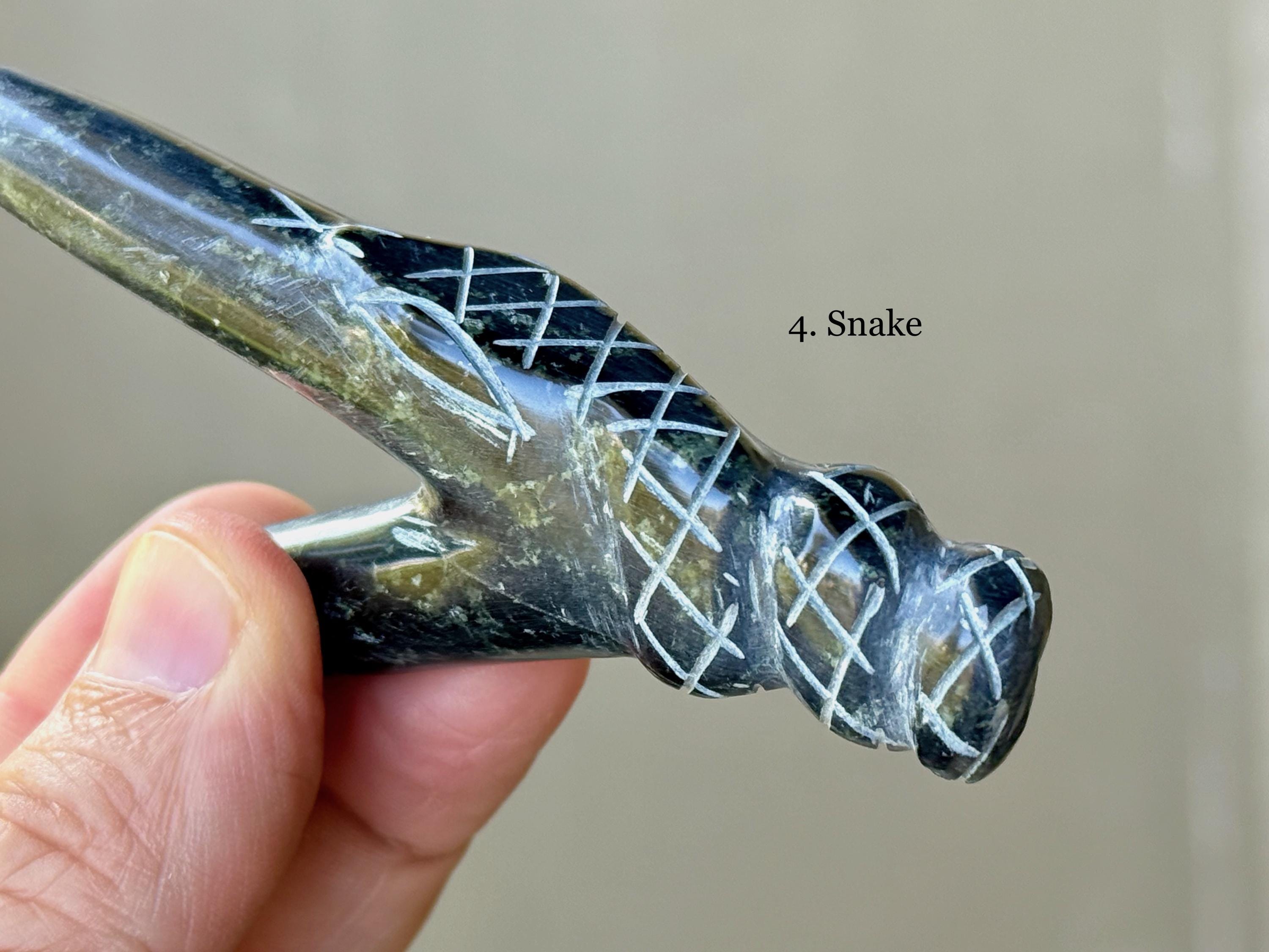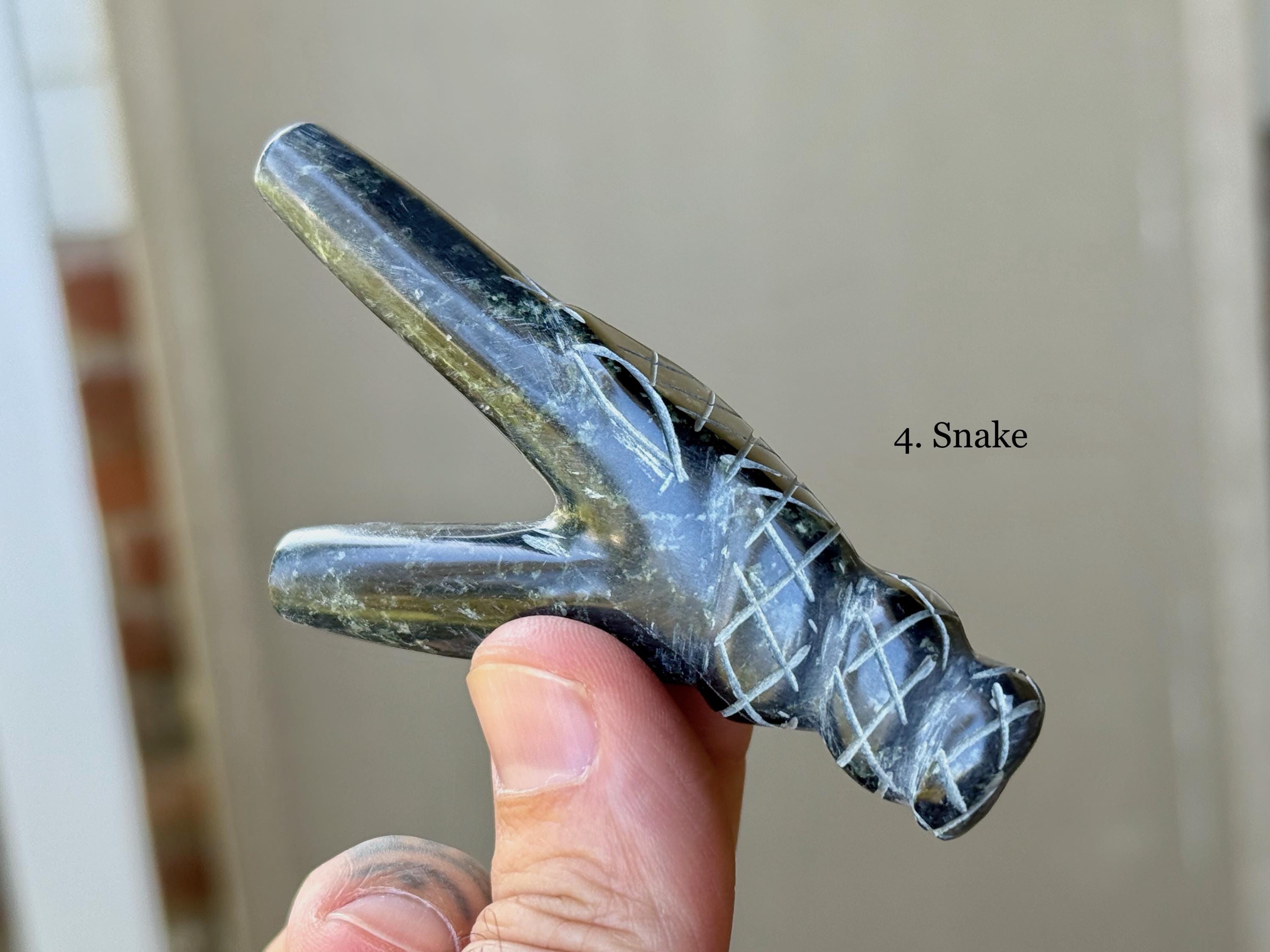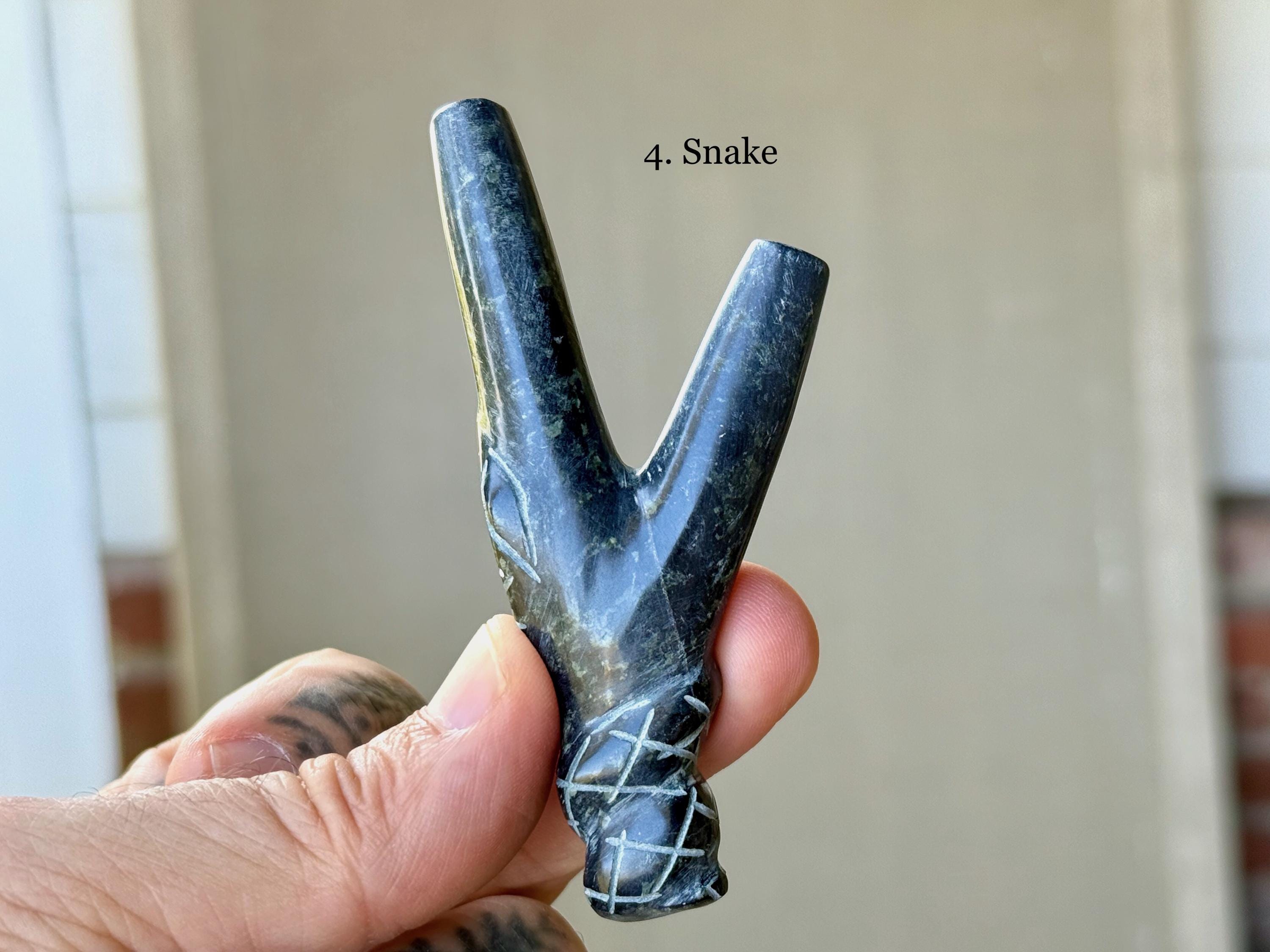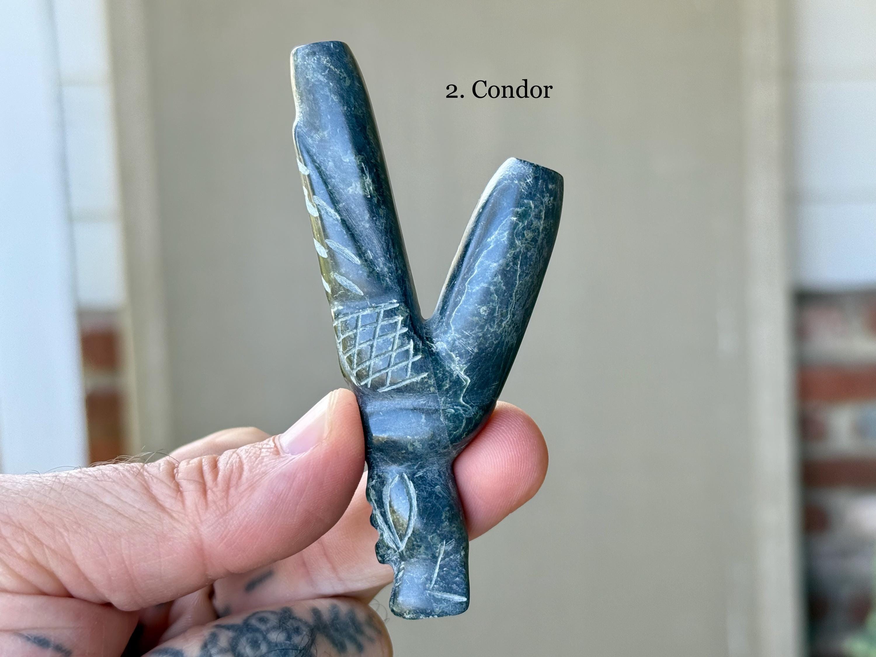 These Stone Kuripes were handcrafted from native Serpentine Stone in Peru's Sacred Valley. These are high-quality shamanic applicator pipes. Simply select your preference of design (Hummingbird, Condor, Owl or Snake) from the dropdown menu.