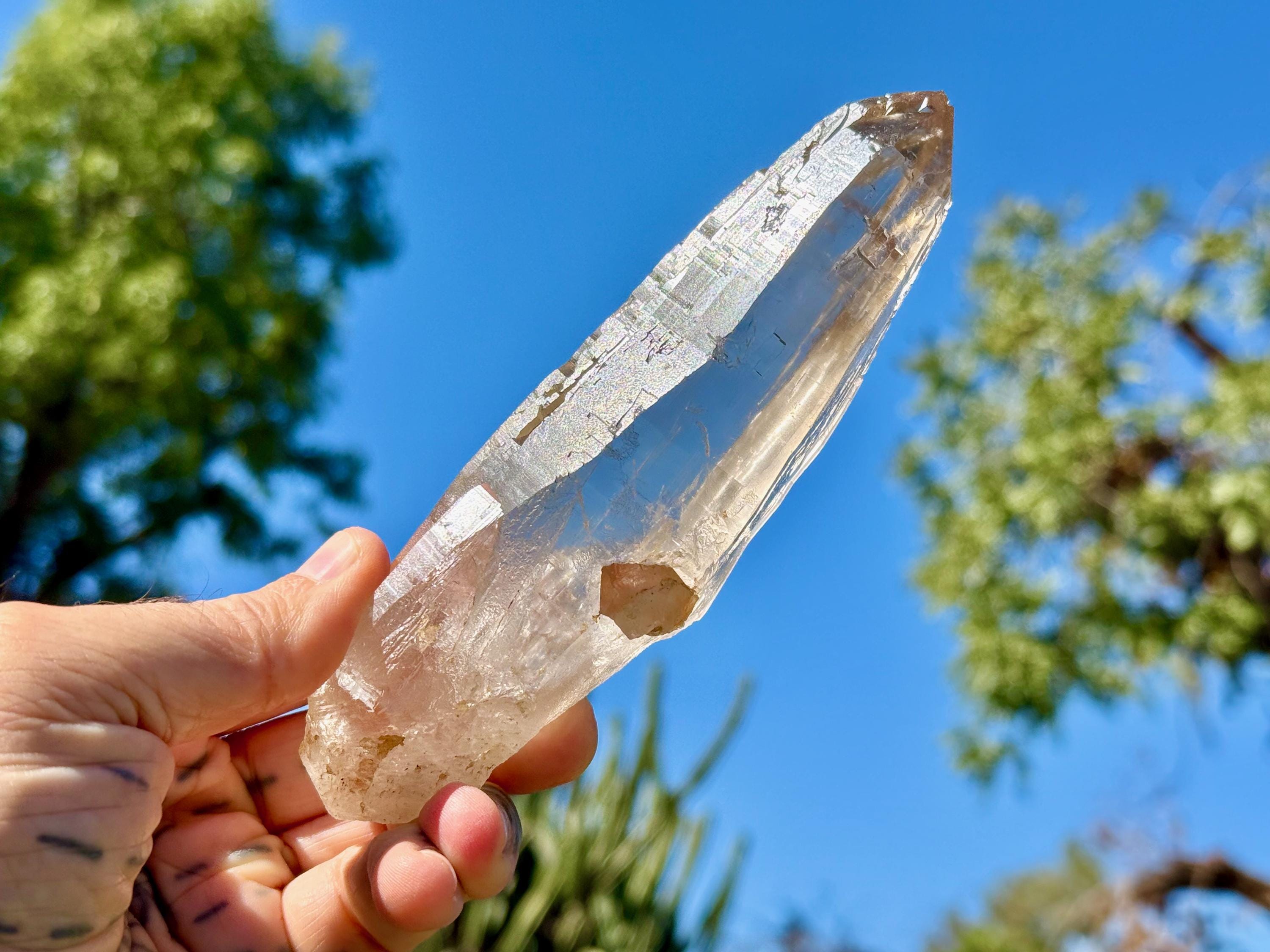 These rare and powerful crystals bear distinctive marks (typically a zig-zag pattern that runs the length of the crystal) that indicate the quartz was struck by lightning while still underground in the Earth. These crystals tend to have a palpable "electric" energy (personally, my heart races when I handle them) and are prized by healers for their unique qualities, as they have an enhanced ability to receive, amplify and transmit "prana" or "chi" energy, also known as our Universal Life Force.