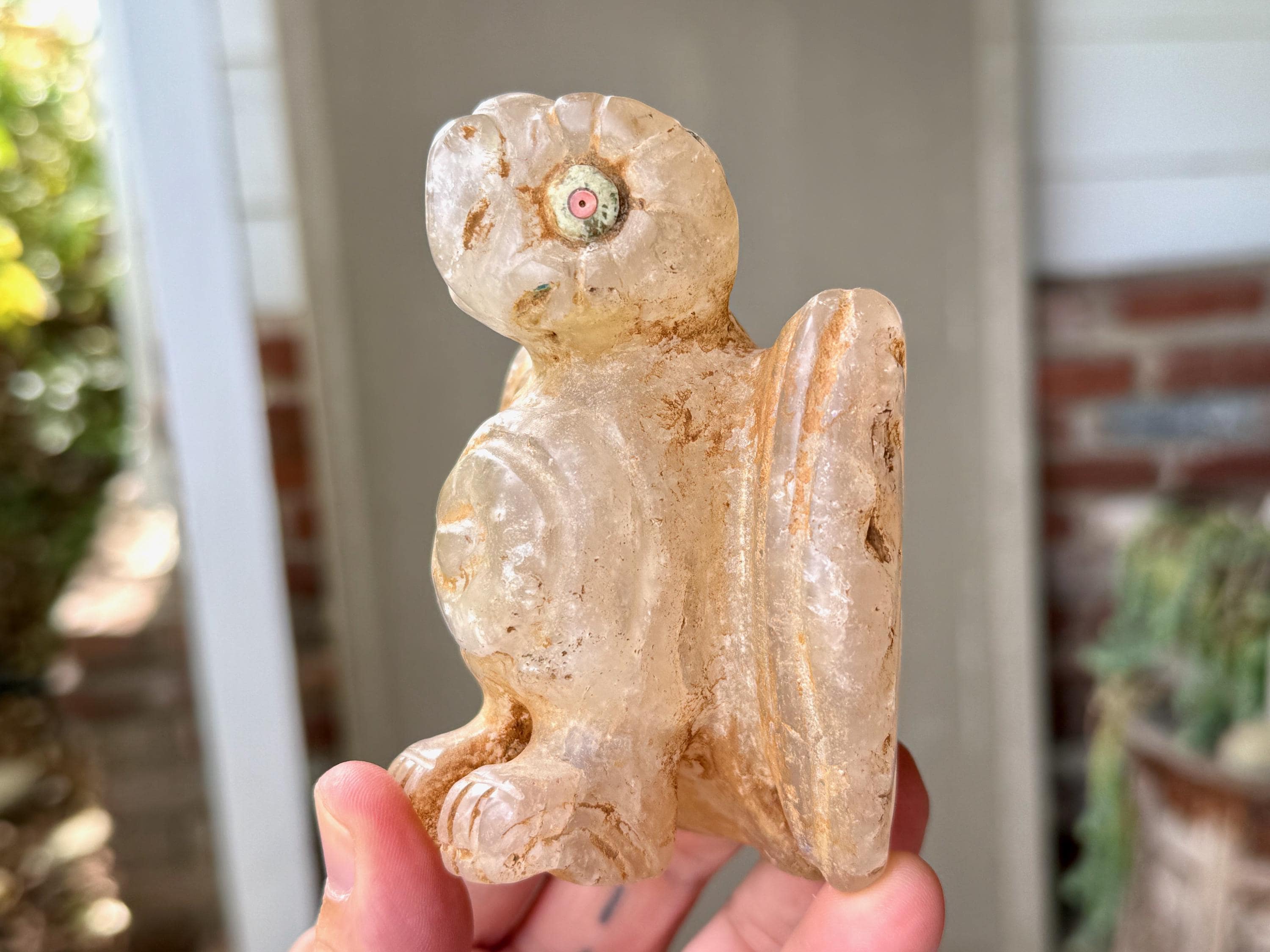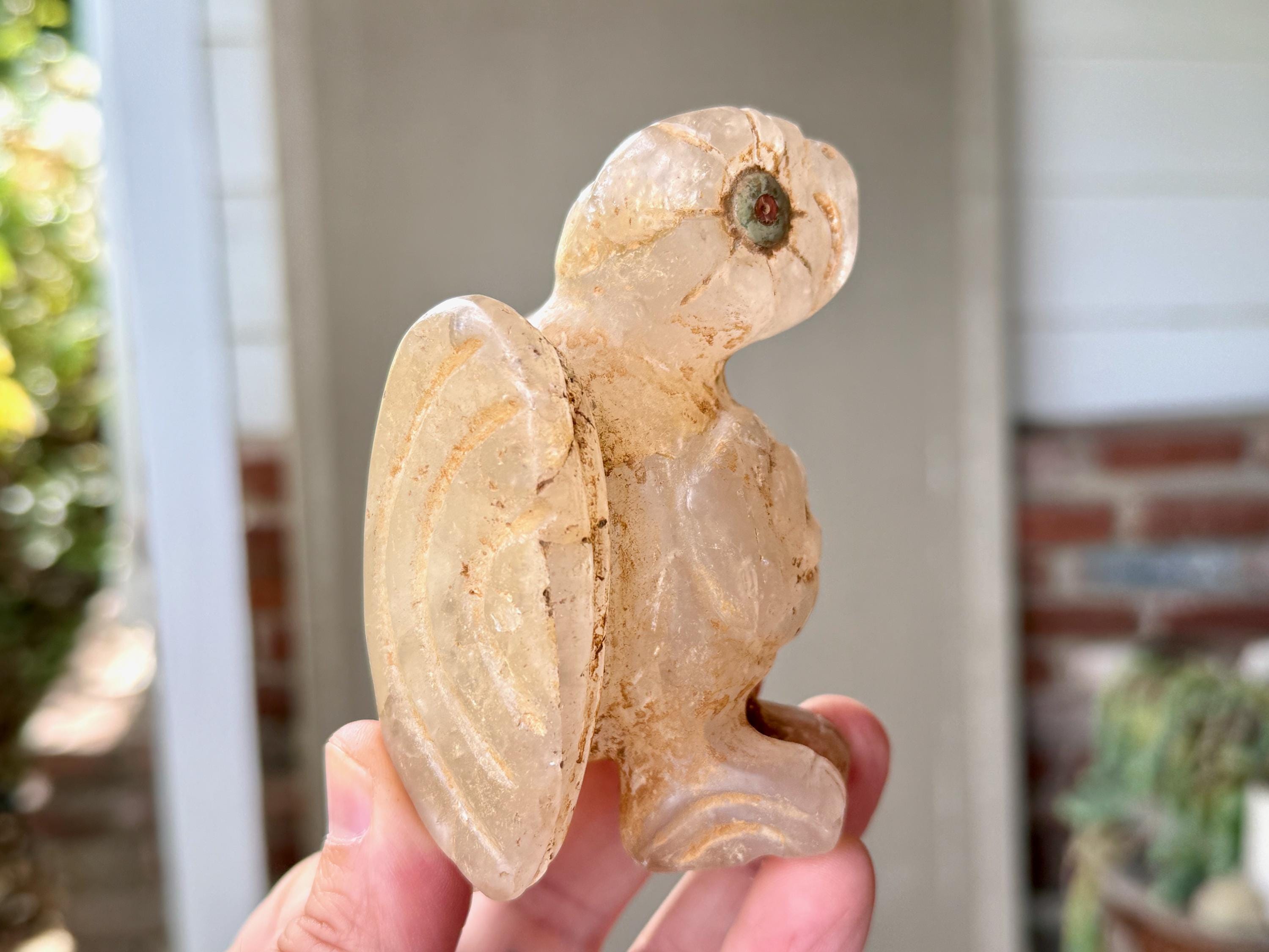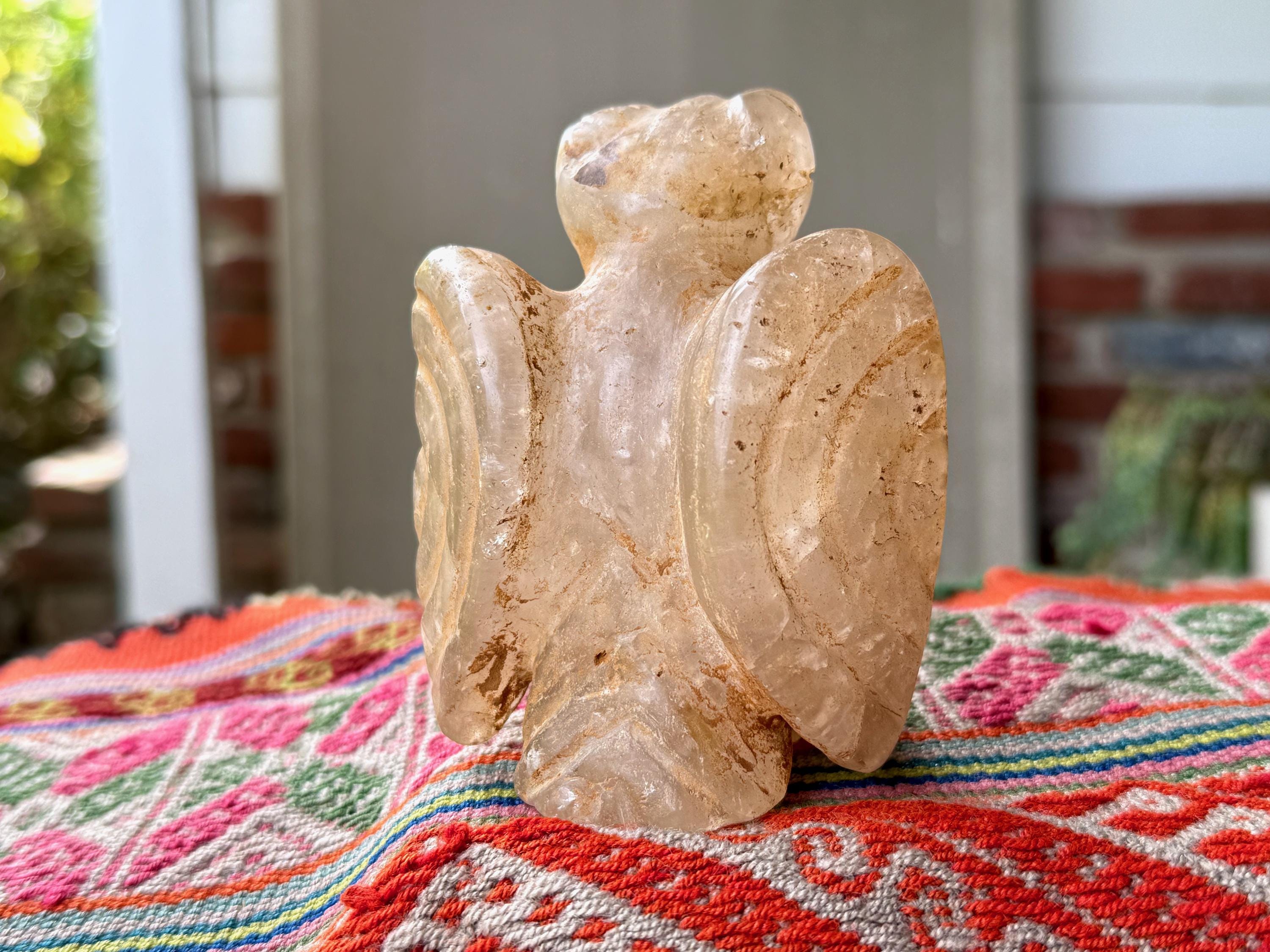 This extraordinary Owl Statue was hand carved from native Andean Quartz by Peruvian Artist Ruben Layme in Peru's Sacred Valley.