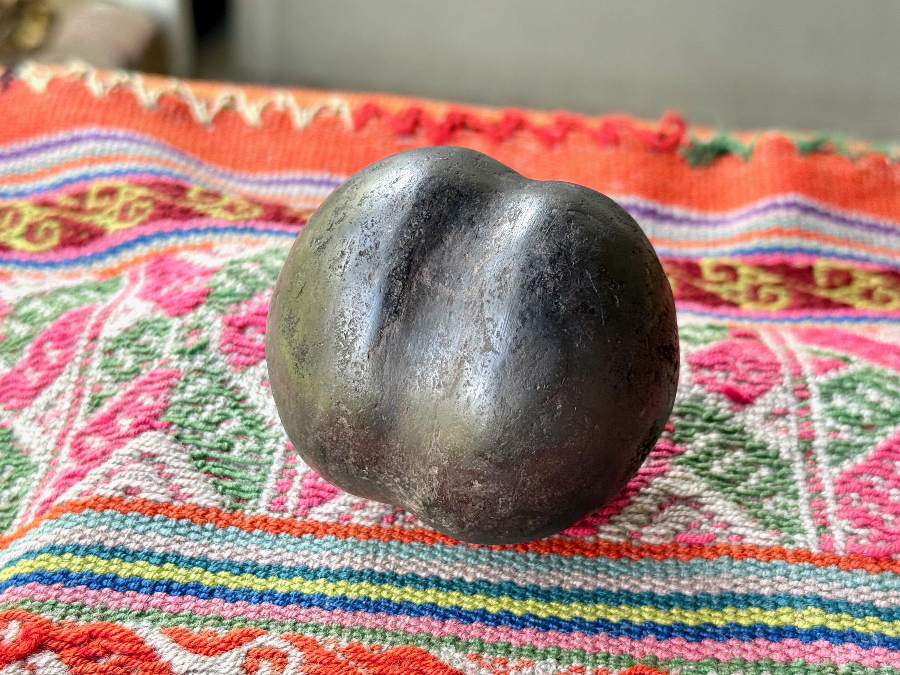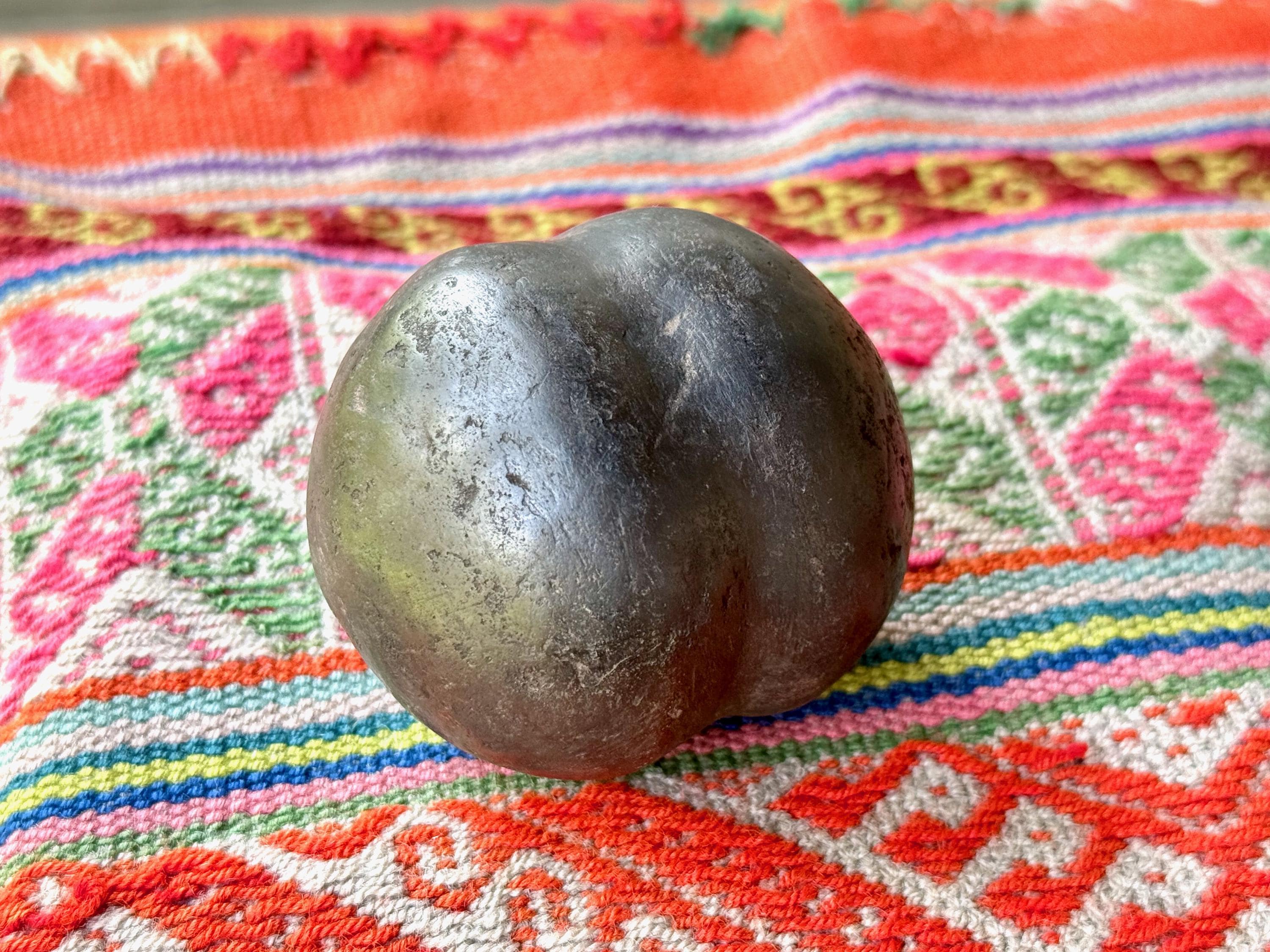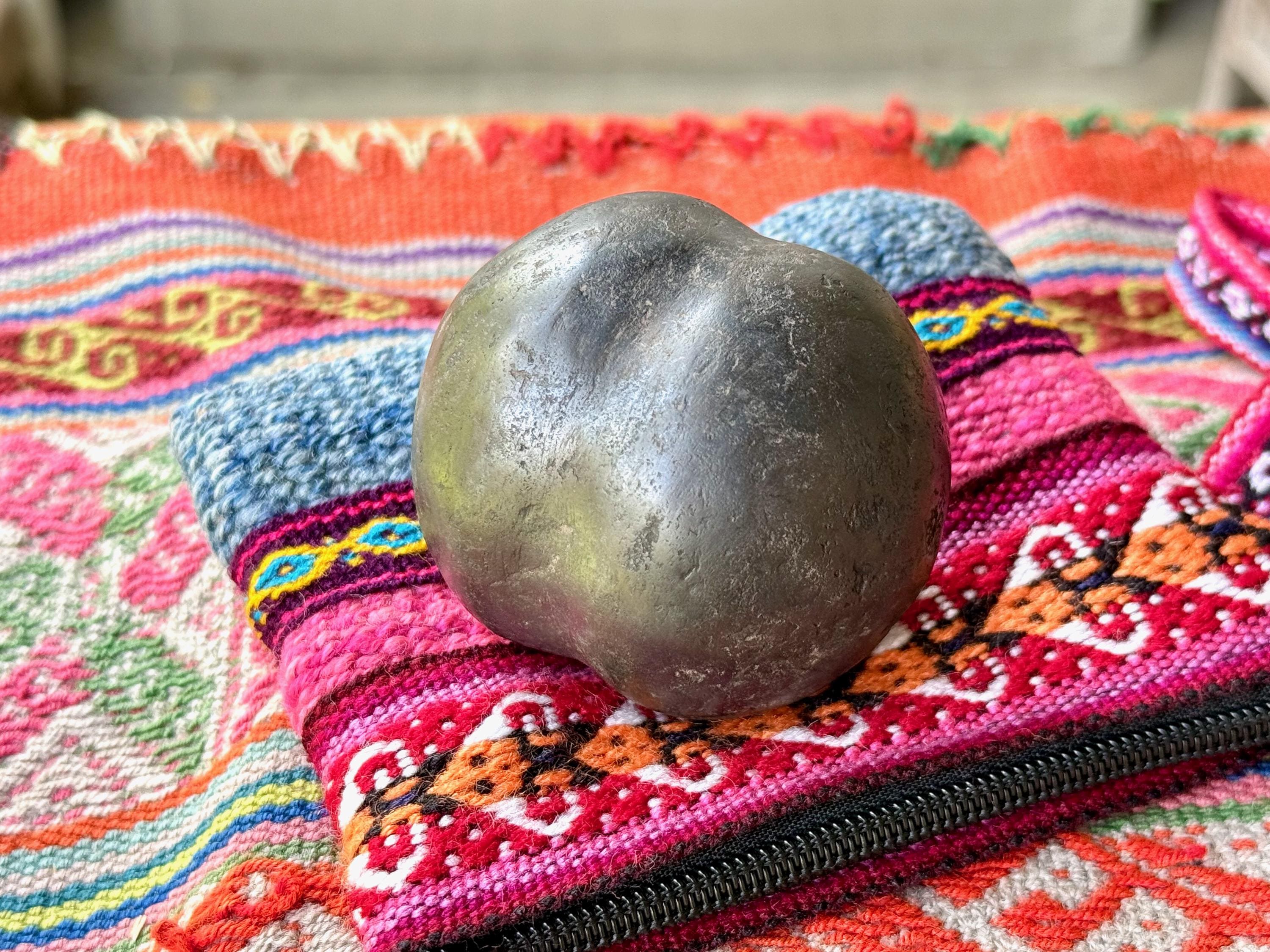 This piece is quite special in that the material is an extremely dense black metallic stone that feels like iron and is also magnetic. Our source in the Sacred Valley tells us that it is carved from a "meteor found in the highest altitudes of the mountains" there. Without a lab test, we cannot verify this for certain. This piece comes from a trusted source of ours that is well-respected throughout Peru's Sacred Valley, so we do trust his word. However, for full transparency and out of respect for our customers we do want to include this disclaimer that we cannot be fully certain of the actual material, thus we've indicated it here as "alleged" meteoric rock. What is not disputed is that the material comes from the very sacred mountains (Apus) of the Cusco region, giving it a wonderful and powerful energetic connection to the land, regardless of is geological makeup.