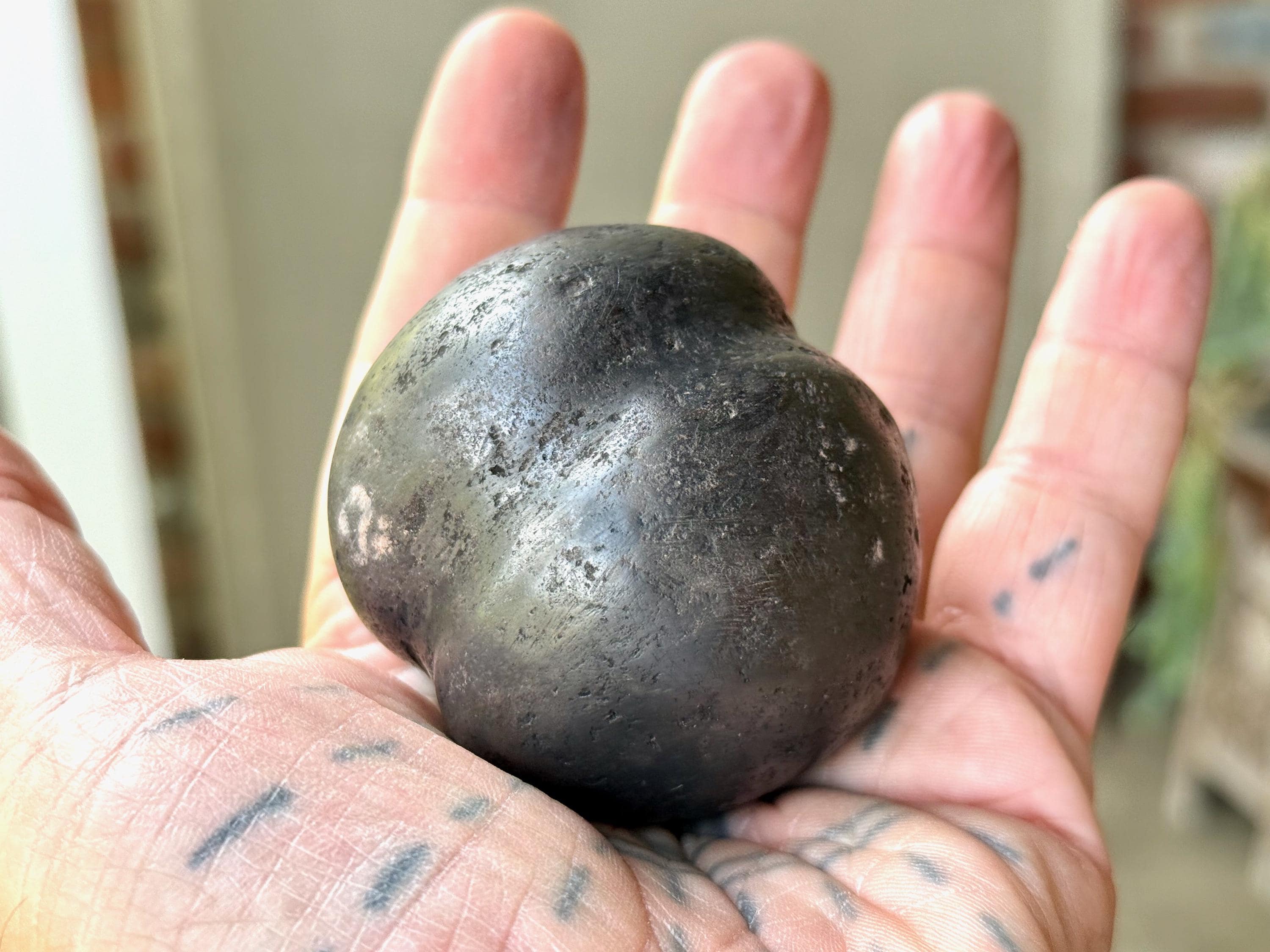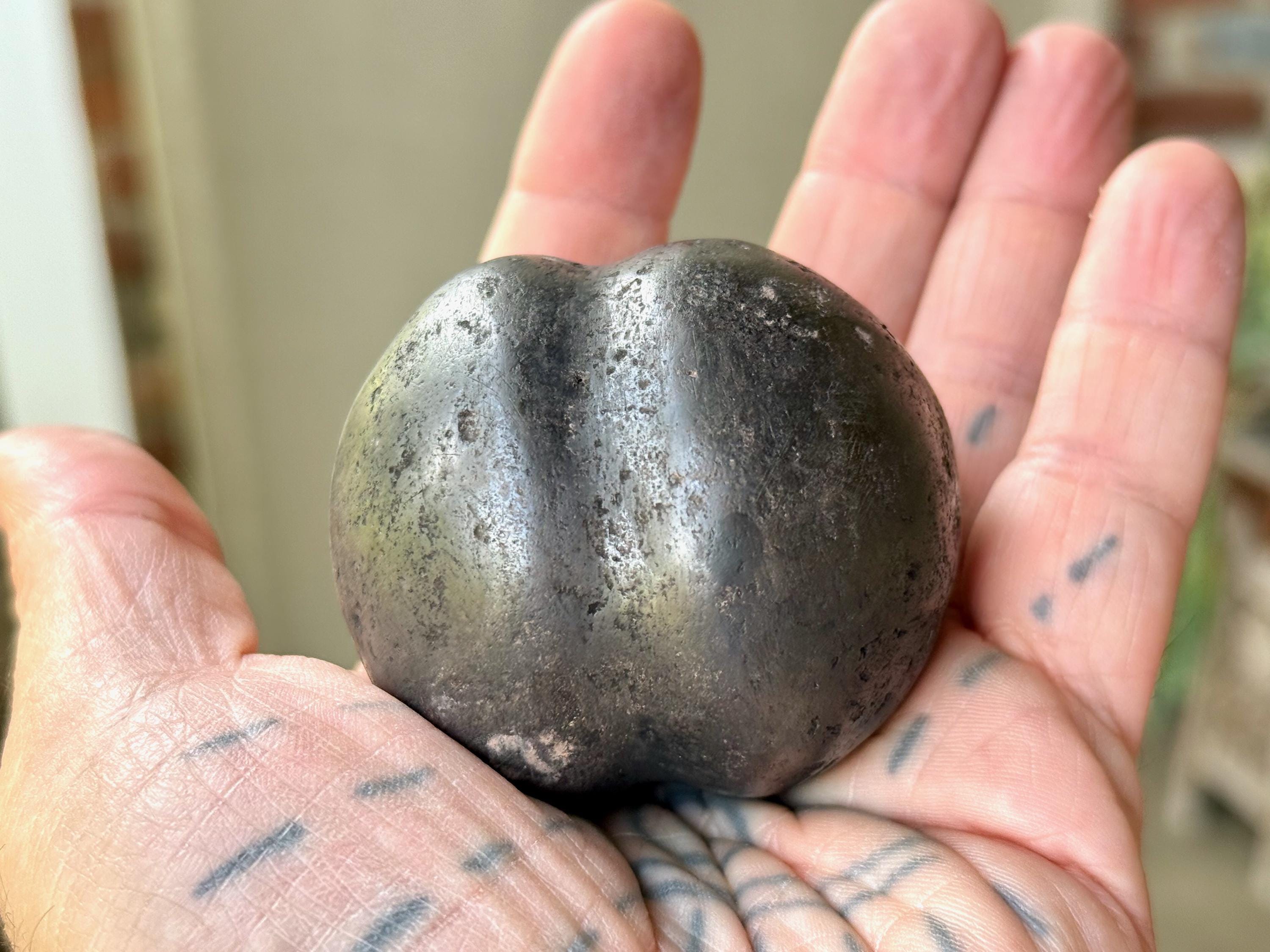 This piece is quite special in that the material is an extremely dense black metallic stone that feels like iron (please see below for our thoughts on this material). We can't imagine how difficult it was to carve, due to the extremely density of the material. It is masterfully crafted and weathered to perfection to give it an ancient patina. While it is a new creation, it really does seem to carry an ancient energy.