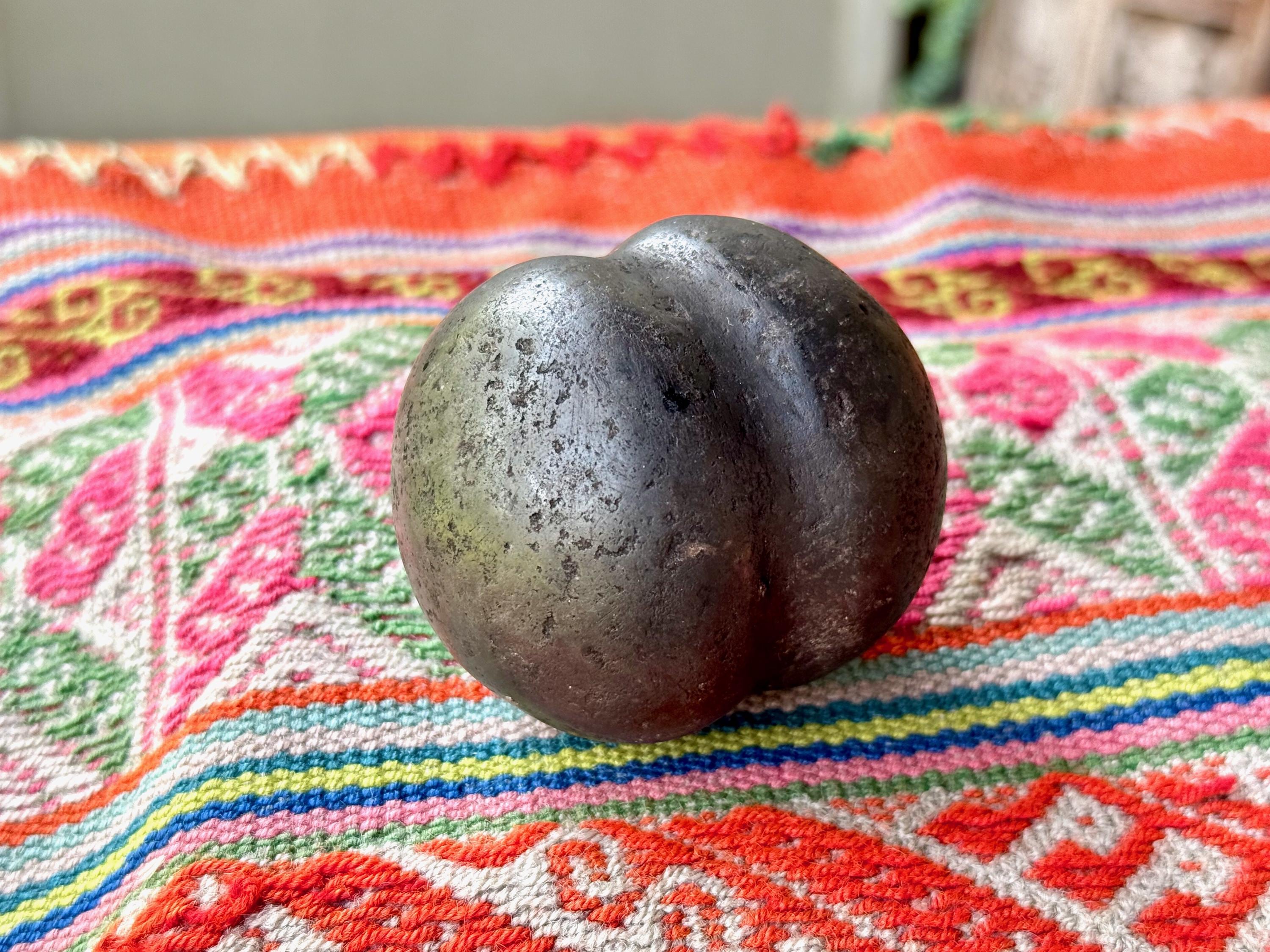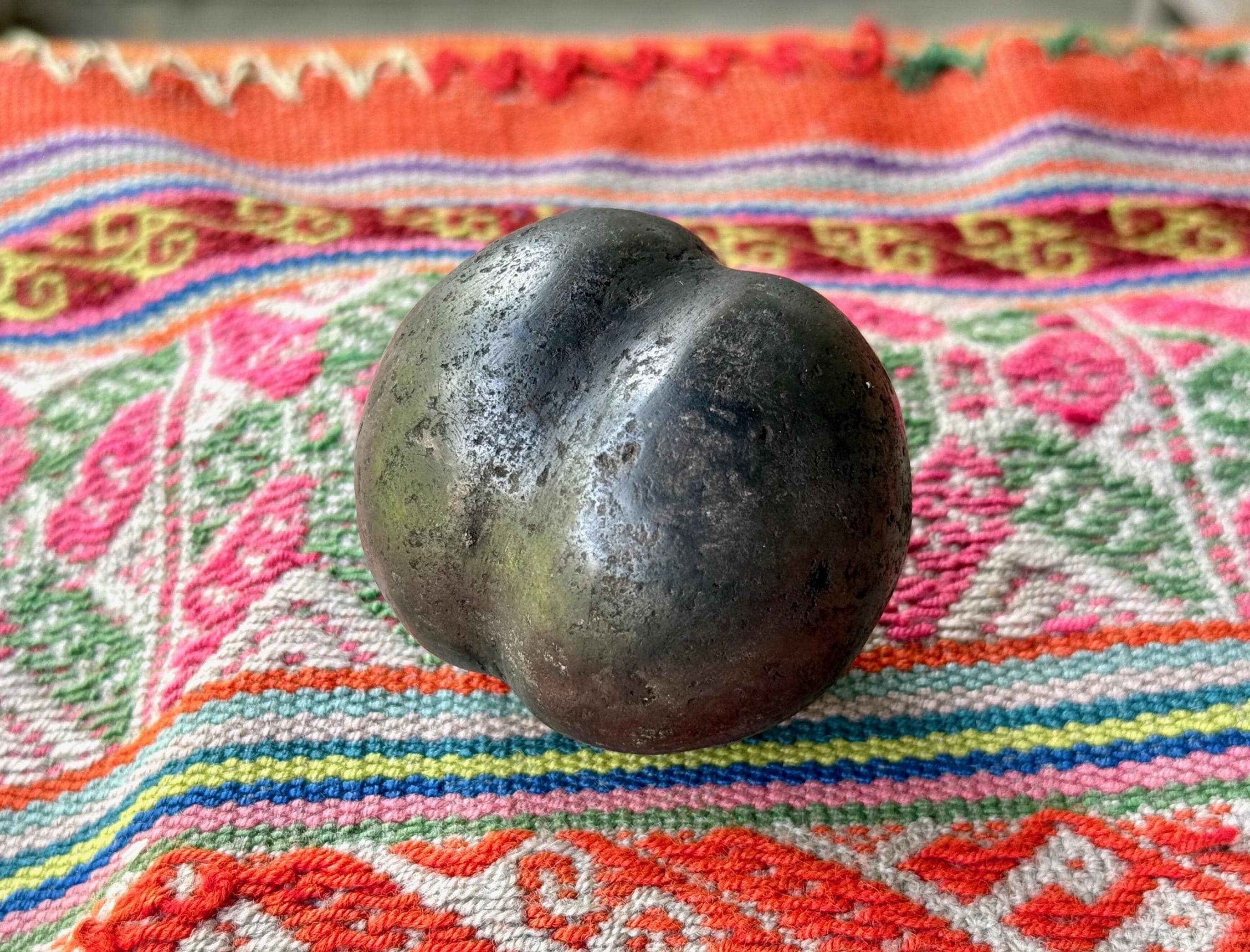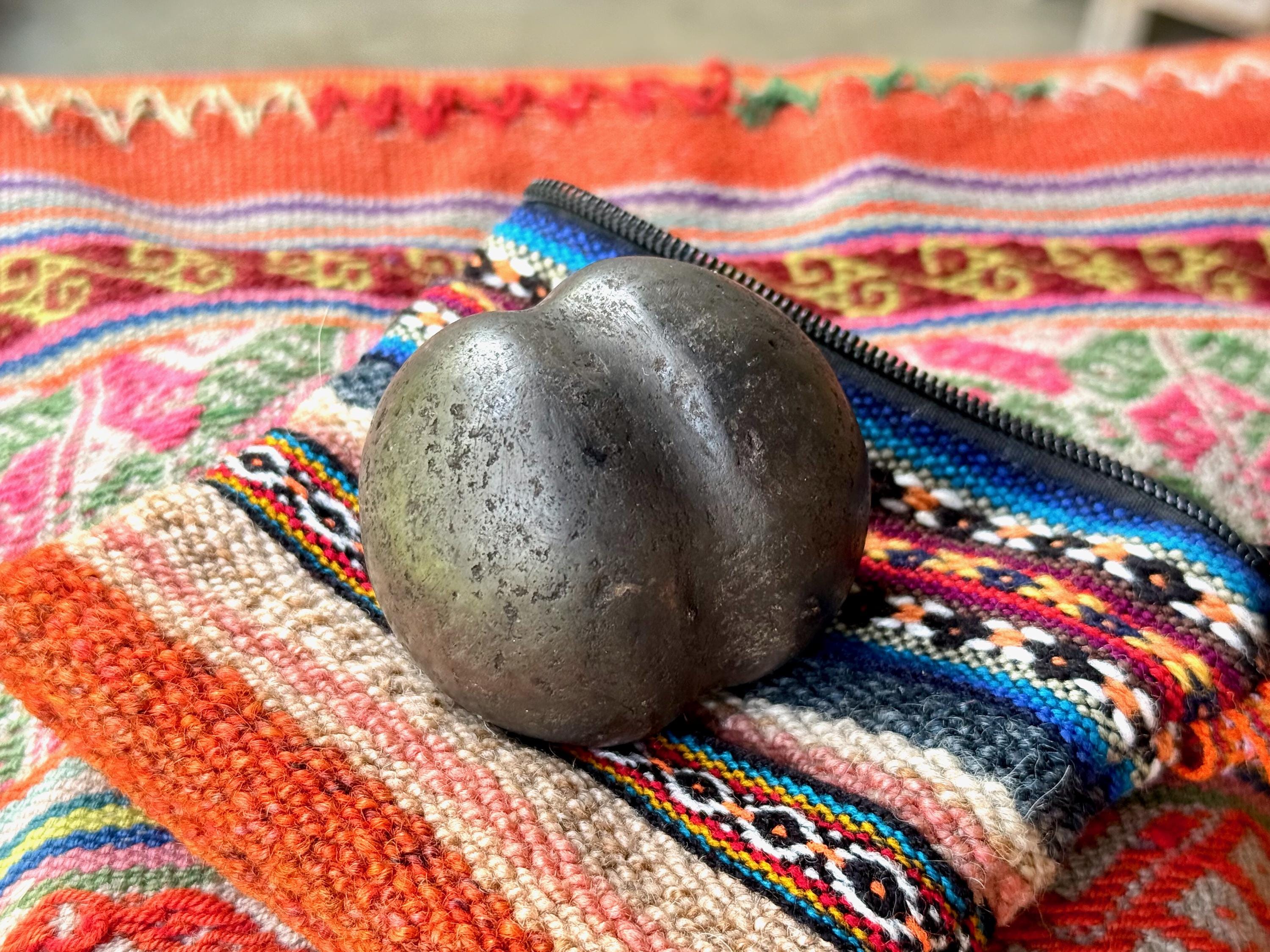 This piece is quite special in that the material is an extremely dense black metallic stone that feels like iron and is also magnetic. Our source in the Sacred Valley tells us that it is carved from a "meteor found in the highest altitudes of the mountains" there. Without a lab test, we cannot verify this for certain. This piece comes from a trusted source of ours that is well-respected throughout Peru's Sacred Valley, so we do trust his word. However, for full transparency and out of respect for our customers we do want to include this disclaimer that we cannot be fully certain of the actual material, thus we've indicated it here as "alleged" meteoric rock. What is not disputed is that the material comes from the very sacred mountains (Apus) of the Cusco region, giving it a wonderful and powerful energetic connection to the land, regardless of is geological makeup.