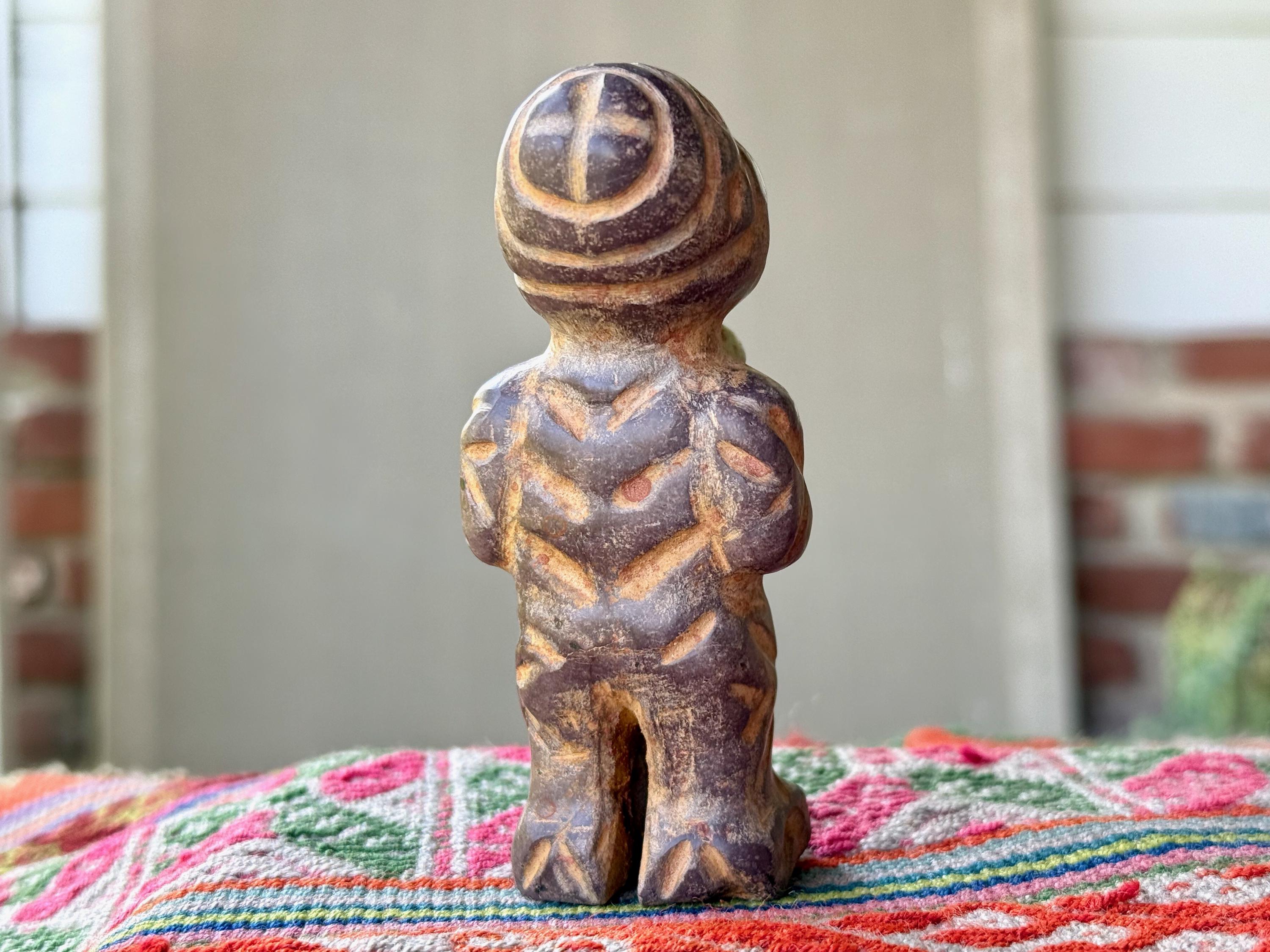 Ruben Illa’s sculptures are one-of-a-kind pieces, deeply influenced by Peruvian shamanism and Incan heritage. Each piece, including this alien statue, tells a story of connection to the cosmos, offering both protective energy and a cosmic presence for your home or ceremonial space.
