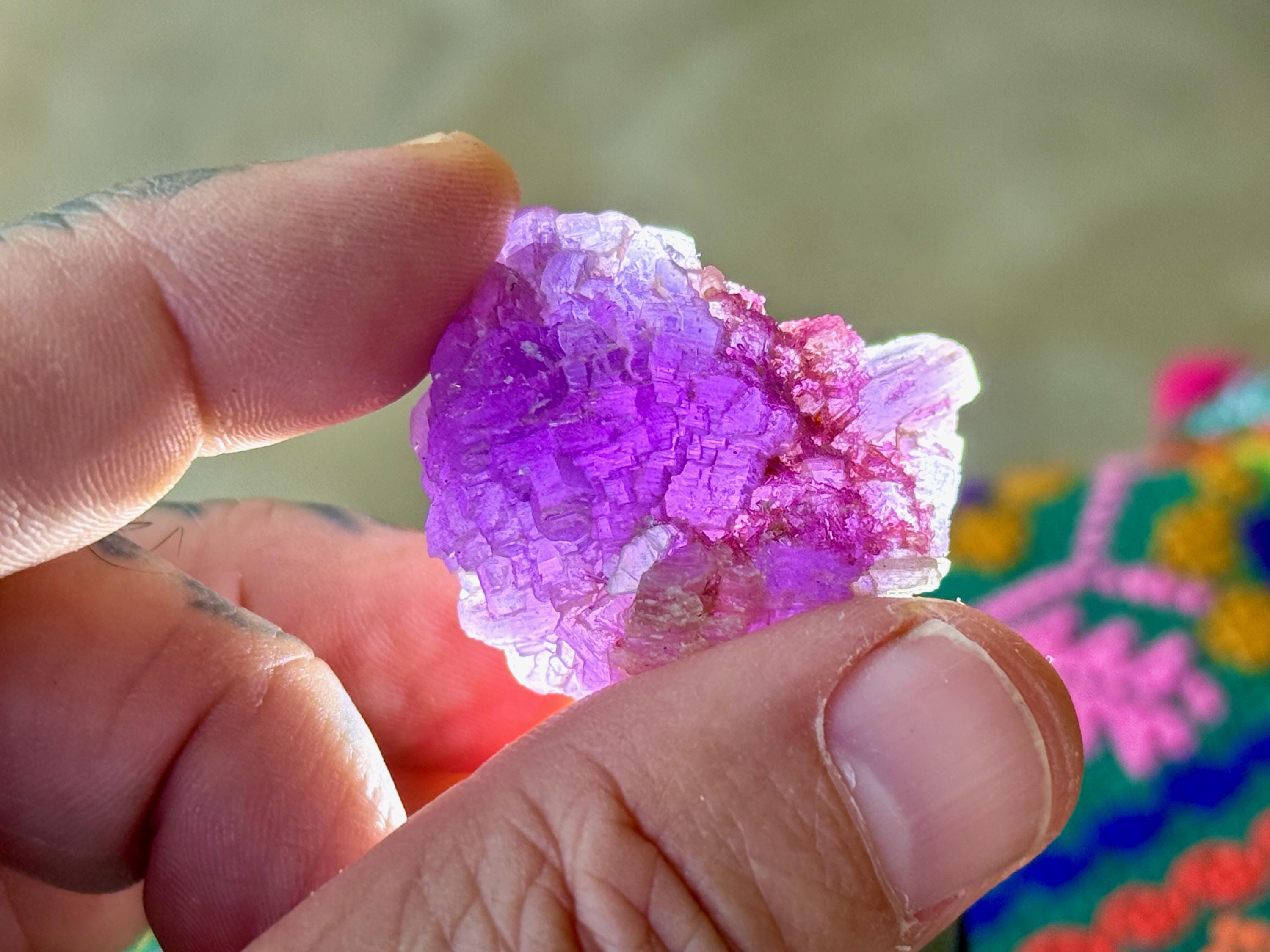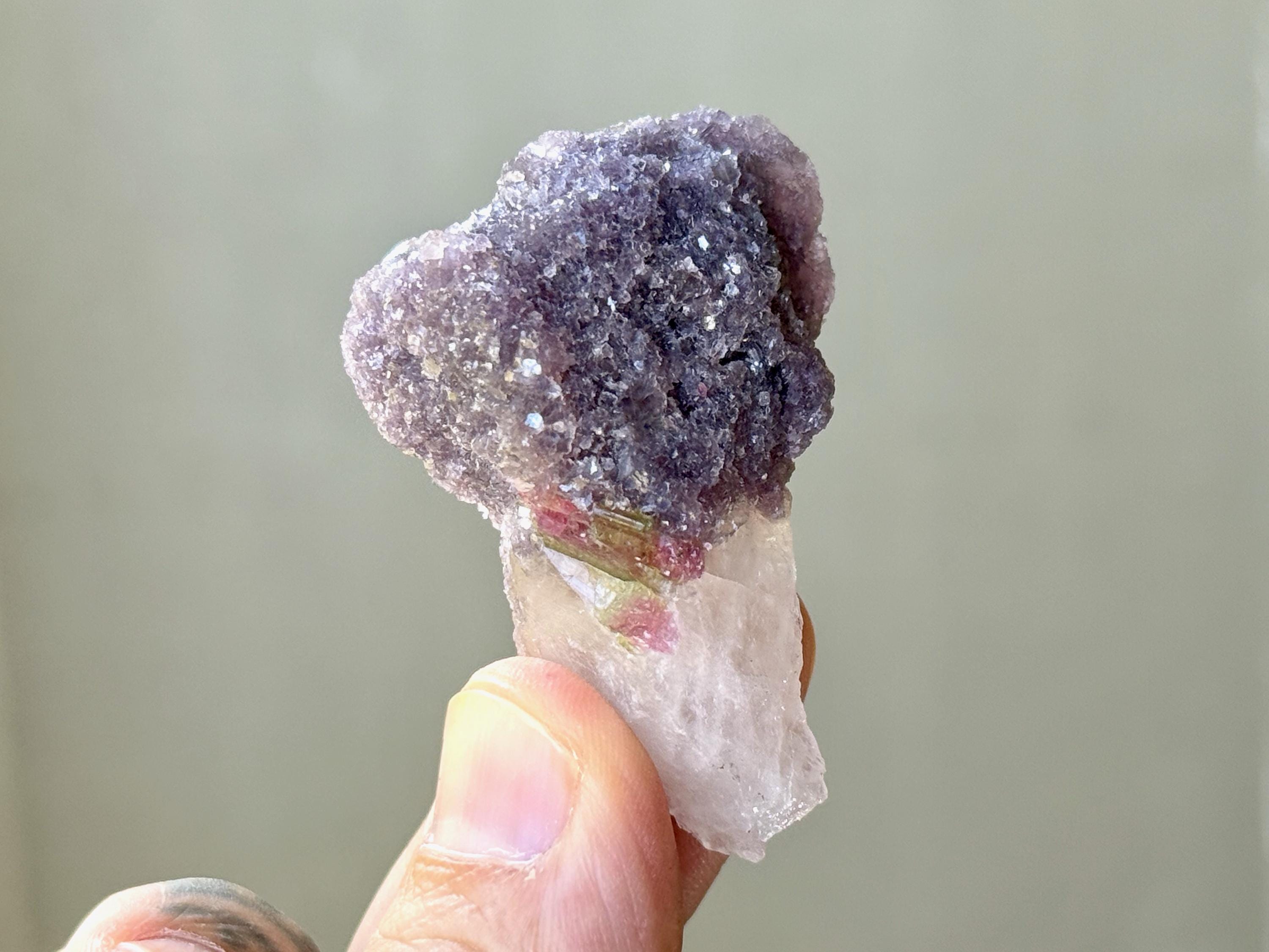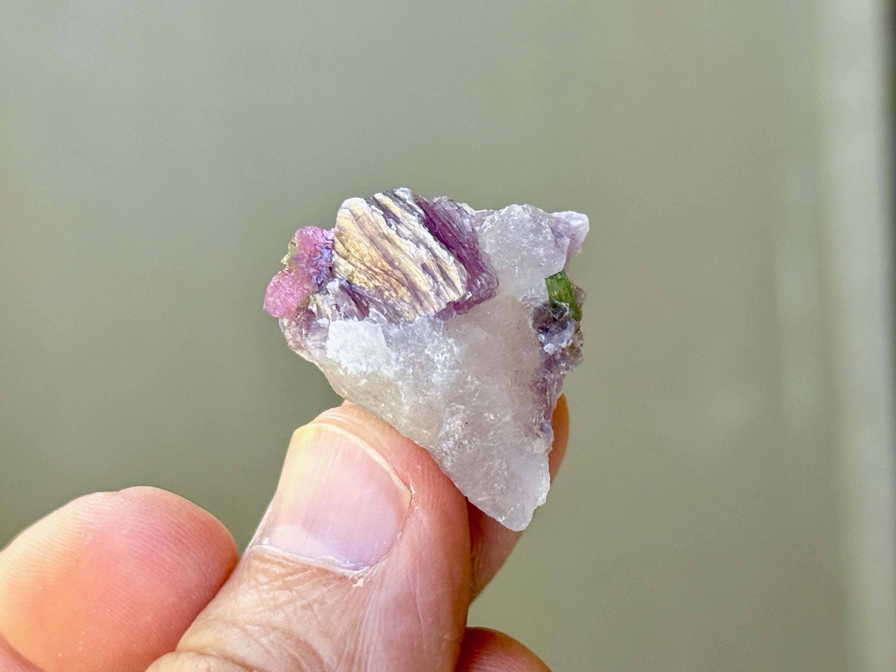 This vibrant lot of Unicorn Stone Quartz with Pink & Green Tourmaline and Lepidolite inclusions comes from the area of Coronel Murta, Minas Gerais, Brazil