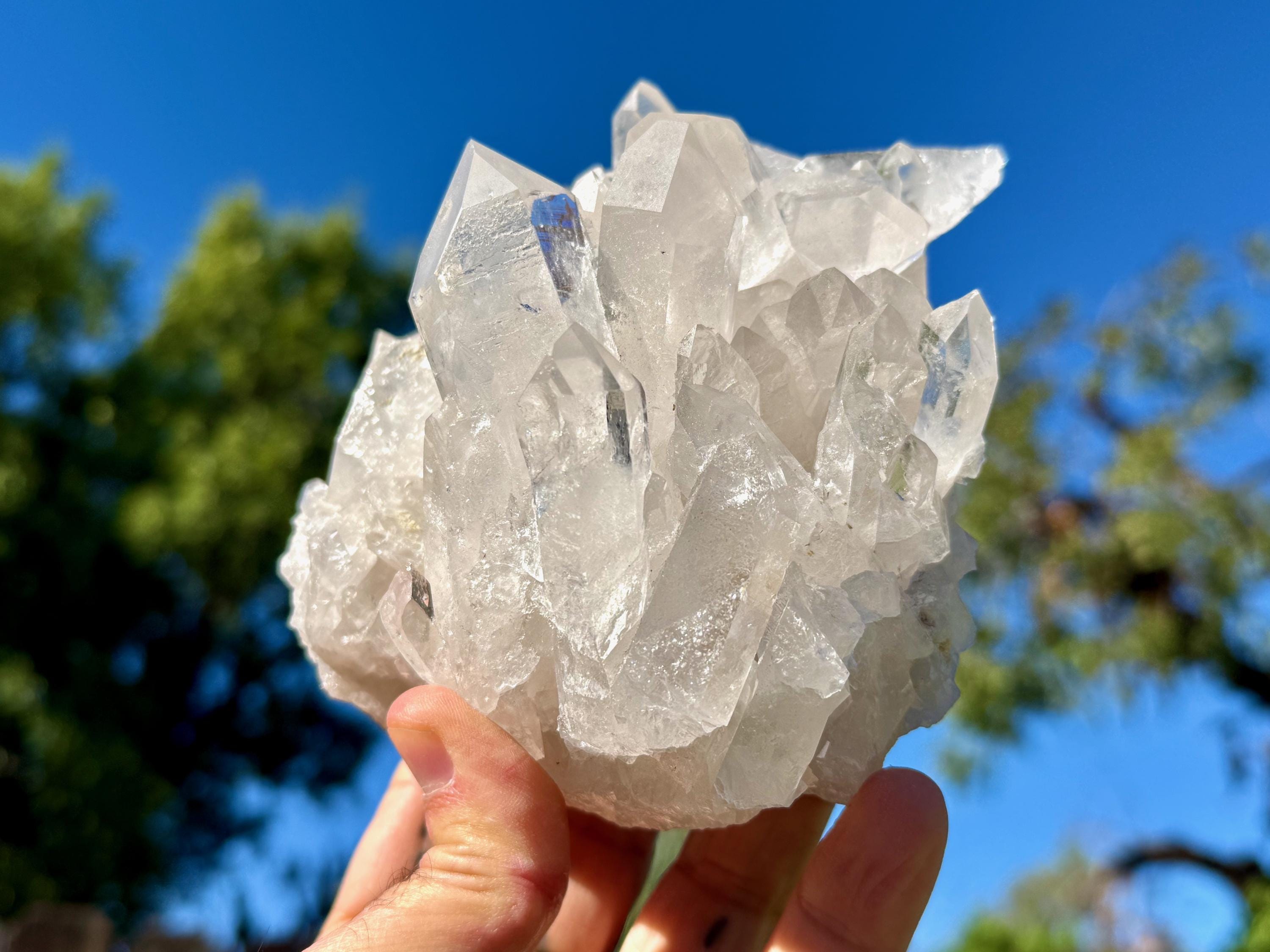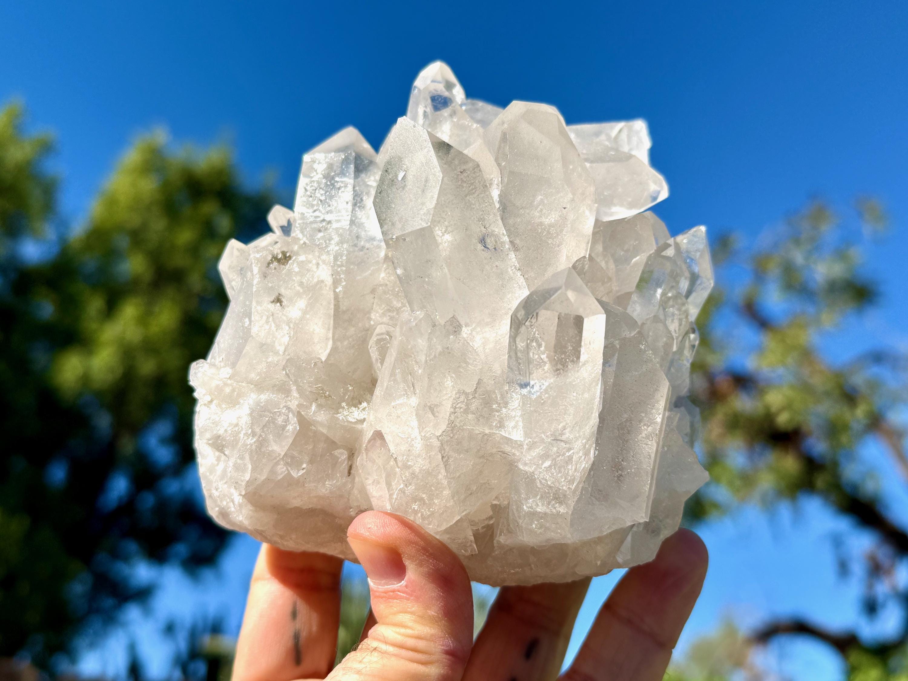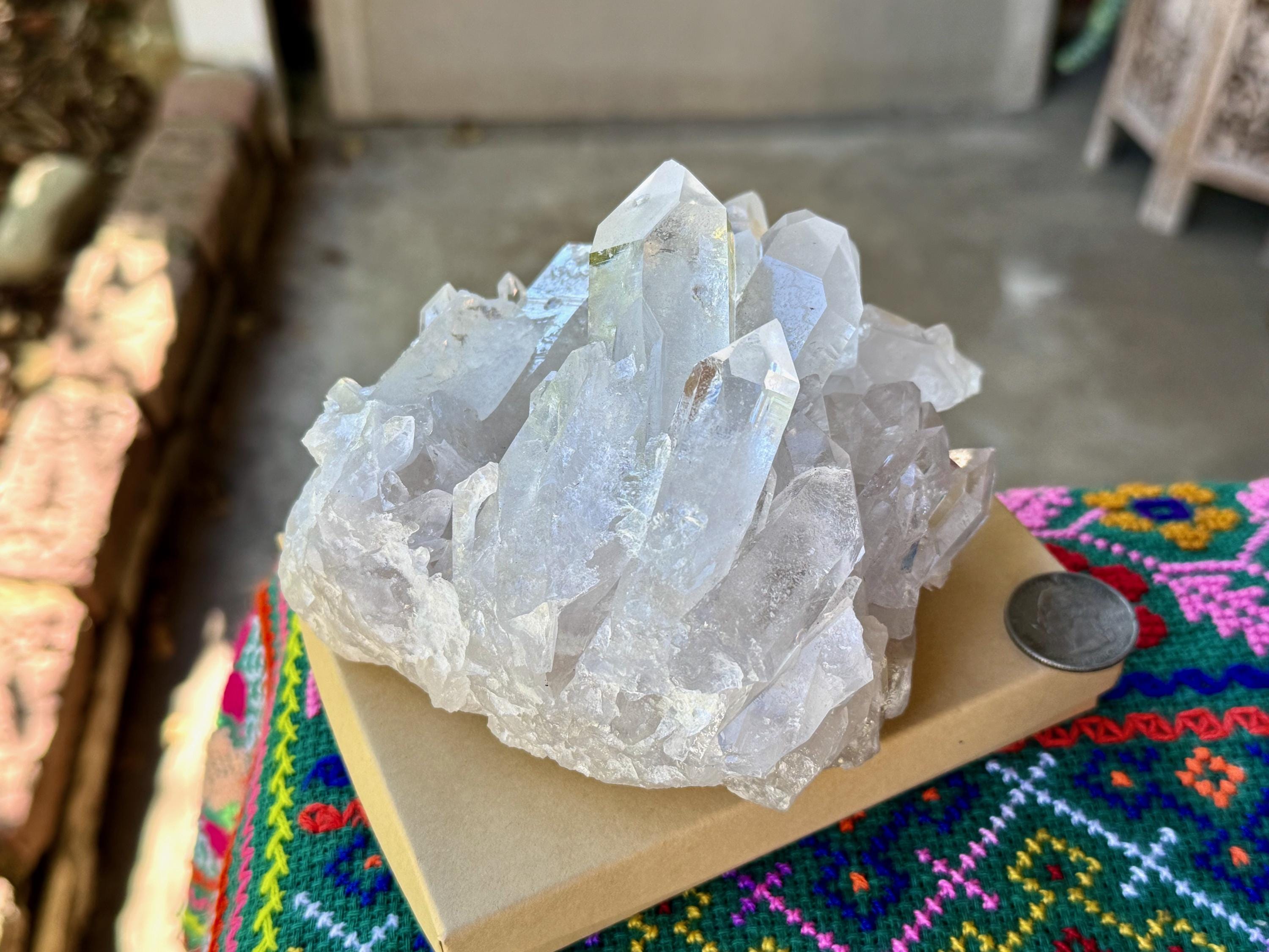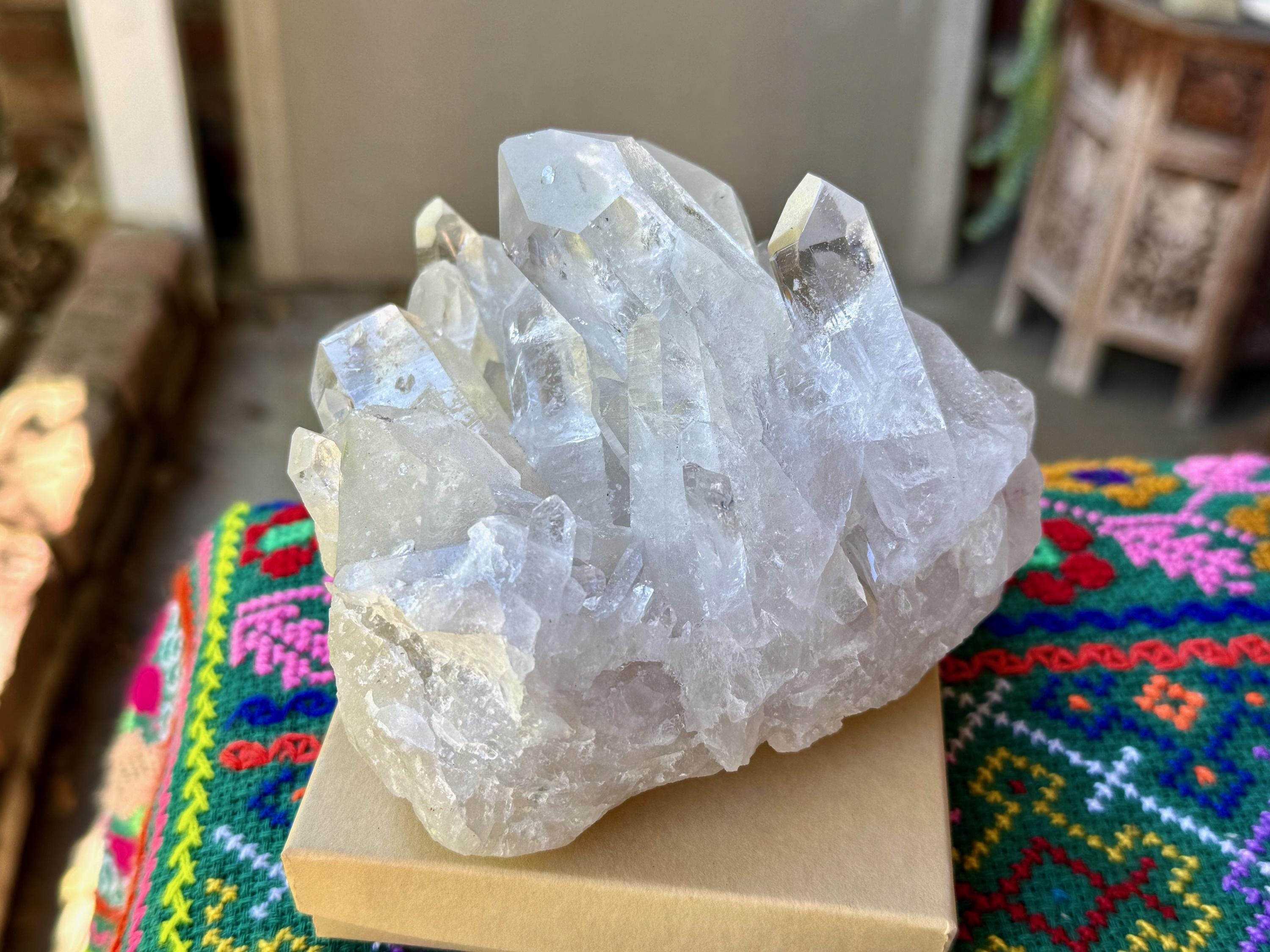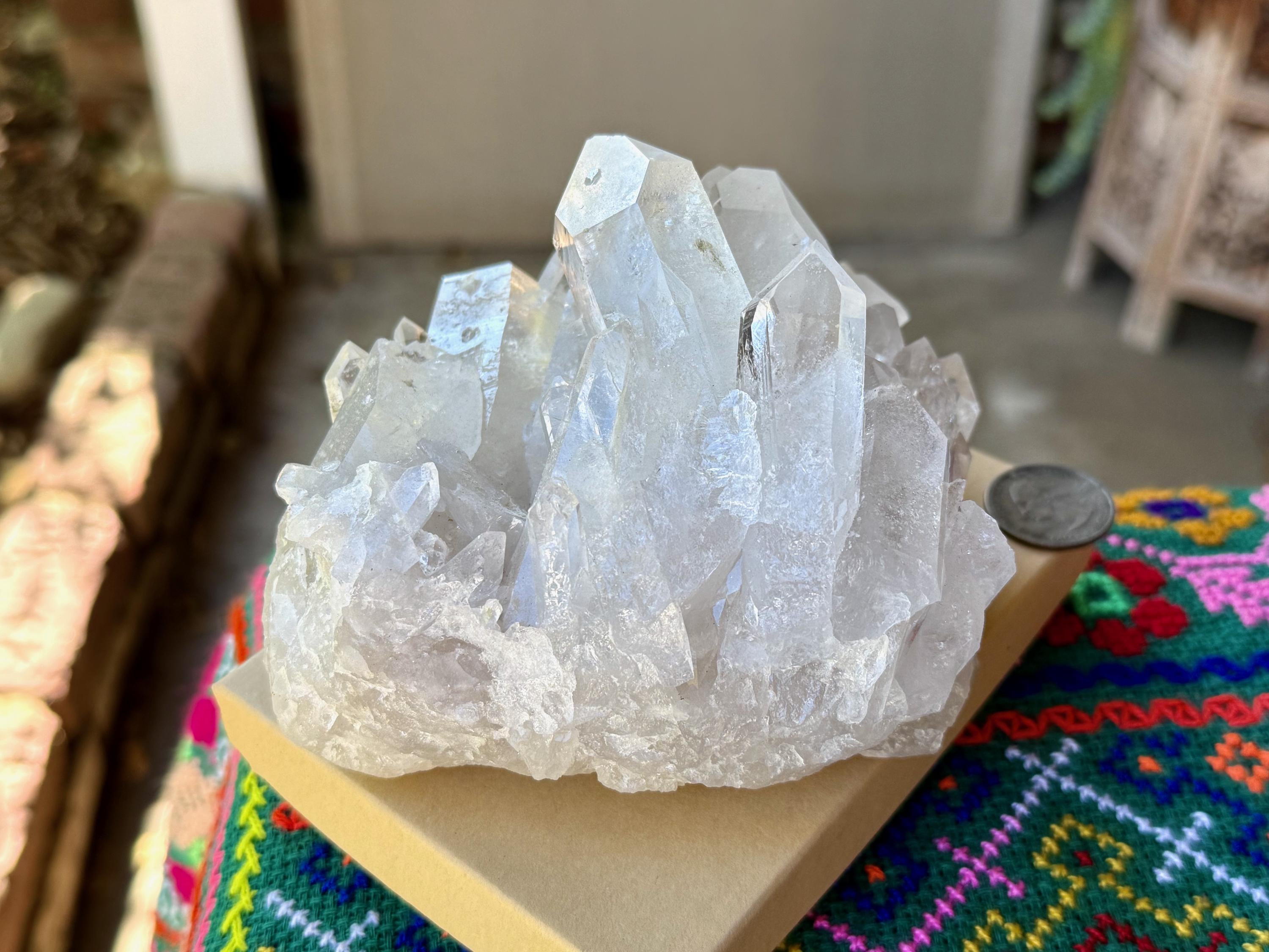 Cluster formations serve to bring the “group” energy of the associated crystal to the surroundings, enhancing harmony and peace in groups, in the family, and in other social and/or business environments. The energy generated is directly proportional to the number of crystals in the cluster. The auric light that surrounds a Quartz cluster is very bright and strong, and will bathe an entire area or room in radiance. They can also be used to activate and to cleanse other minerals, enhancing and increasing their energy. They can be placed in areas to purify the environment of negative energies and feelings, and to foster protection, cooperation, purification, harmony, friendship and intimacy.