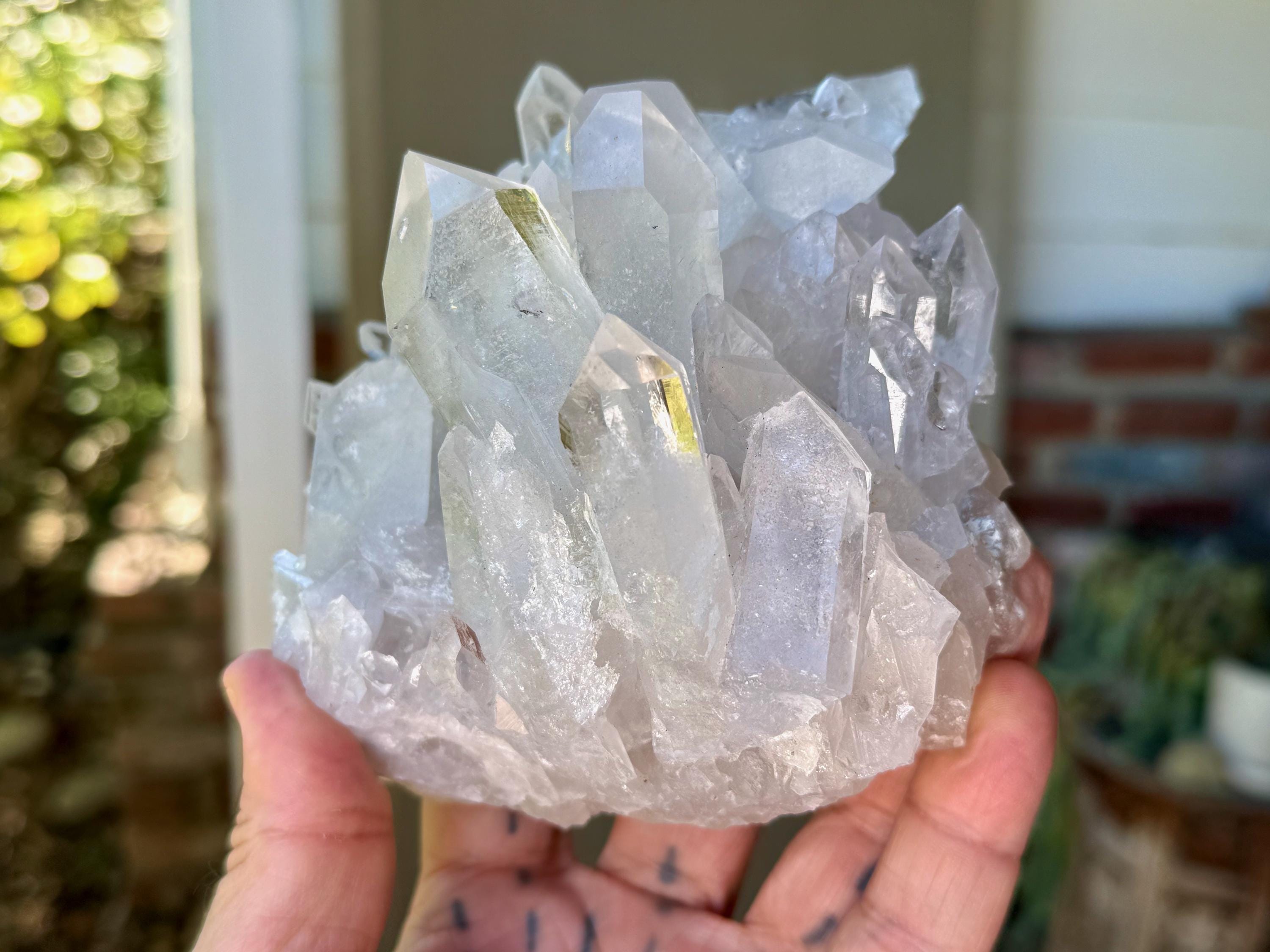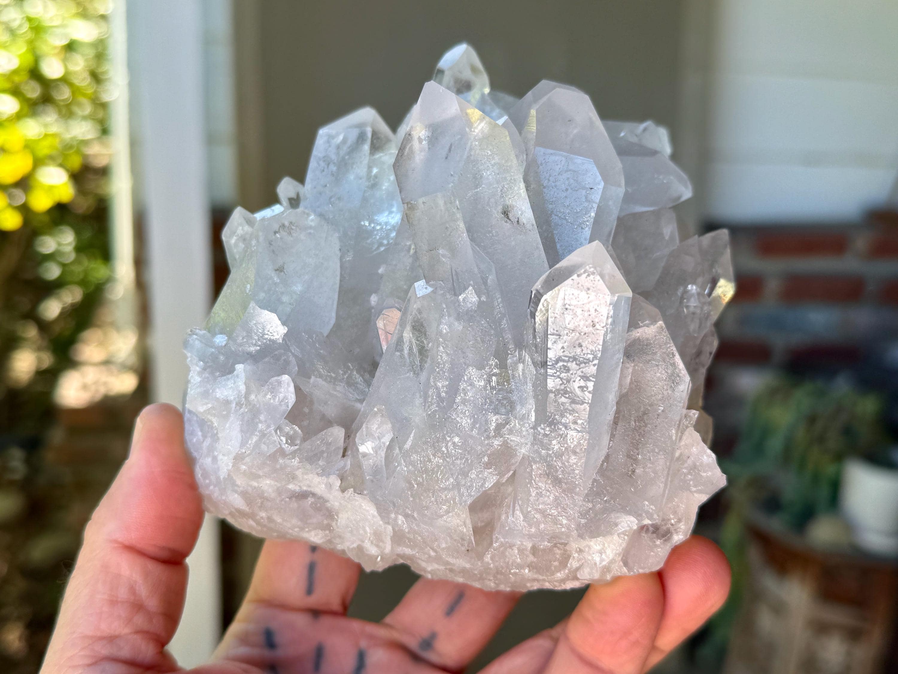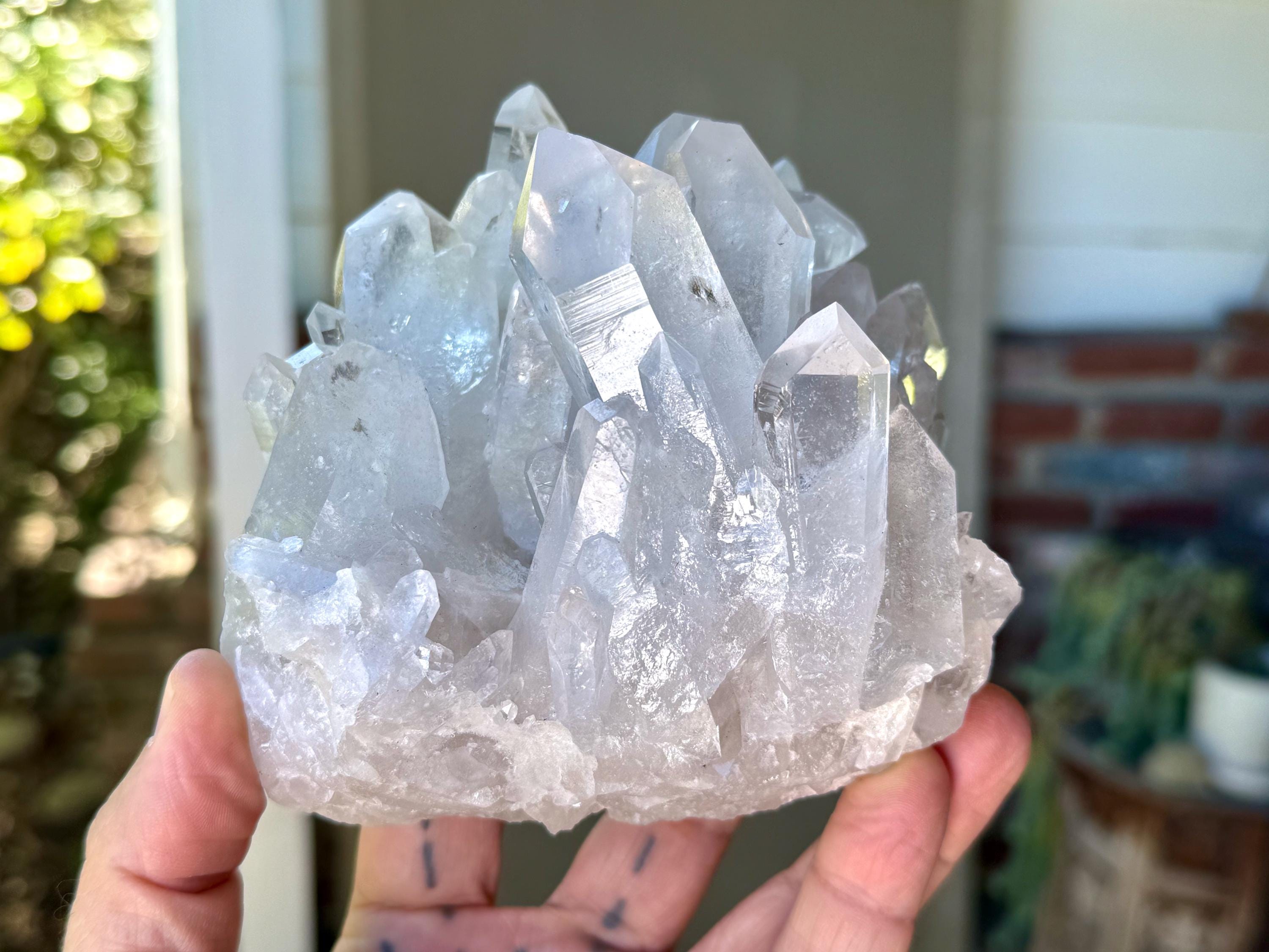 On the larger, more primary crystals, we can see mild Starbrary imprints on the sides. The base is naturally flat, so this piece sits nicely on its own for display.