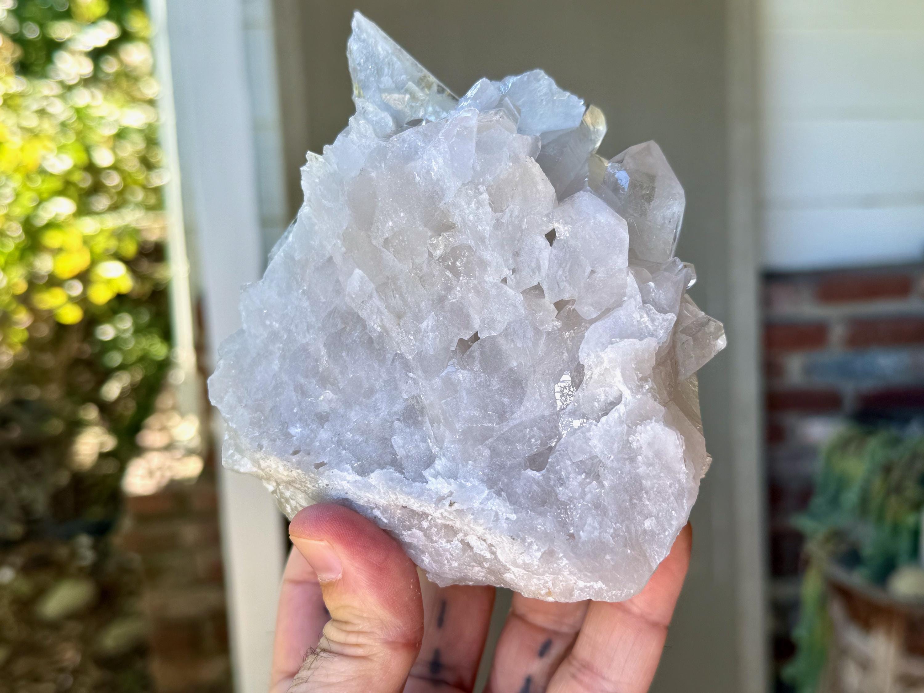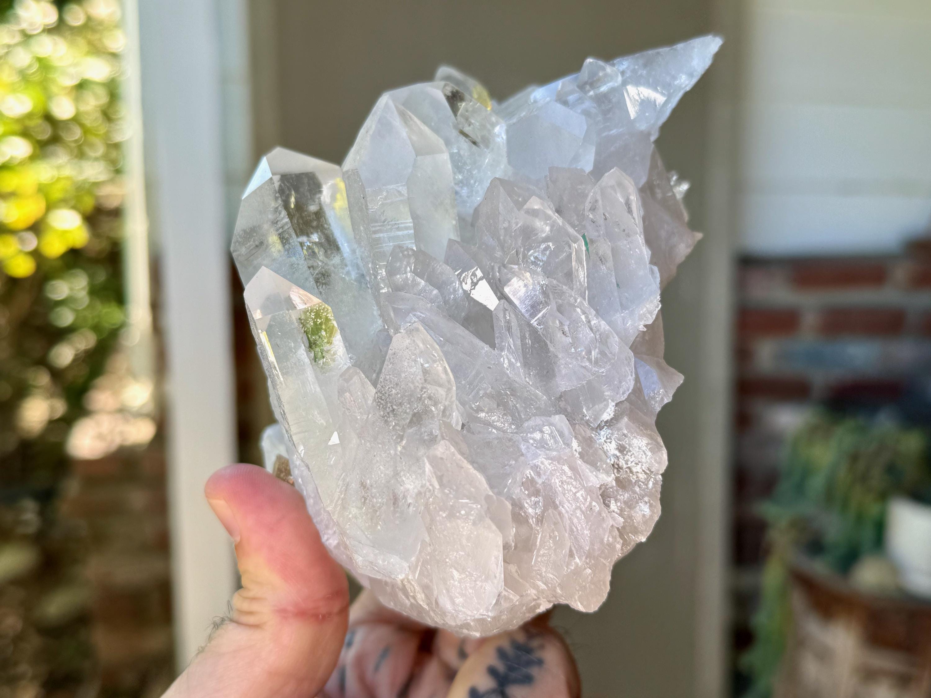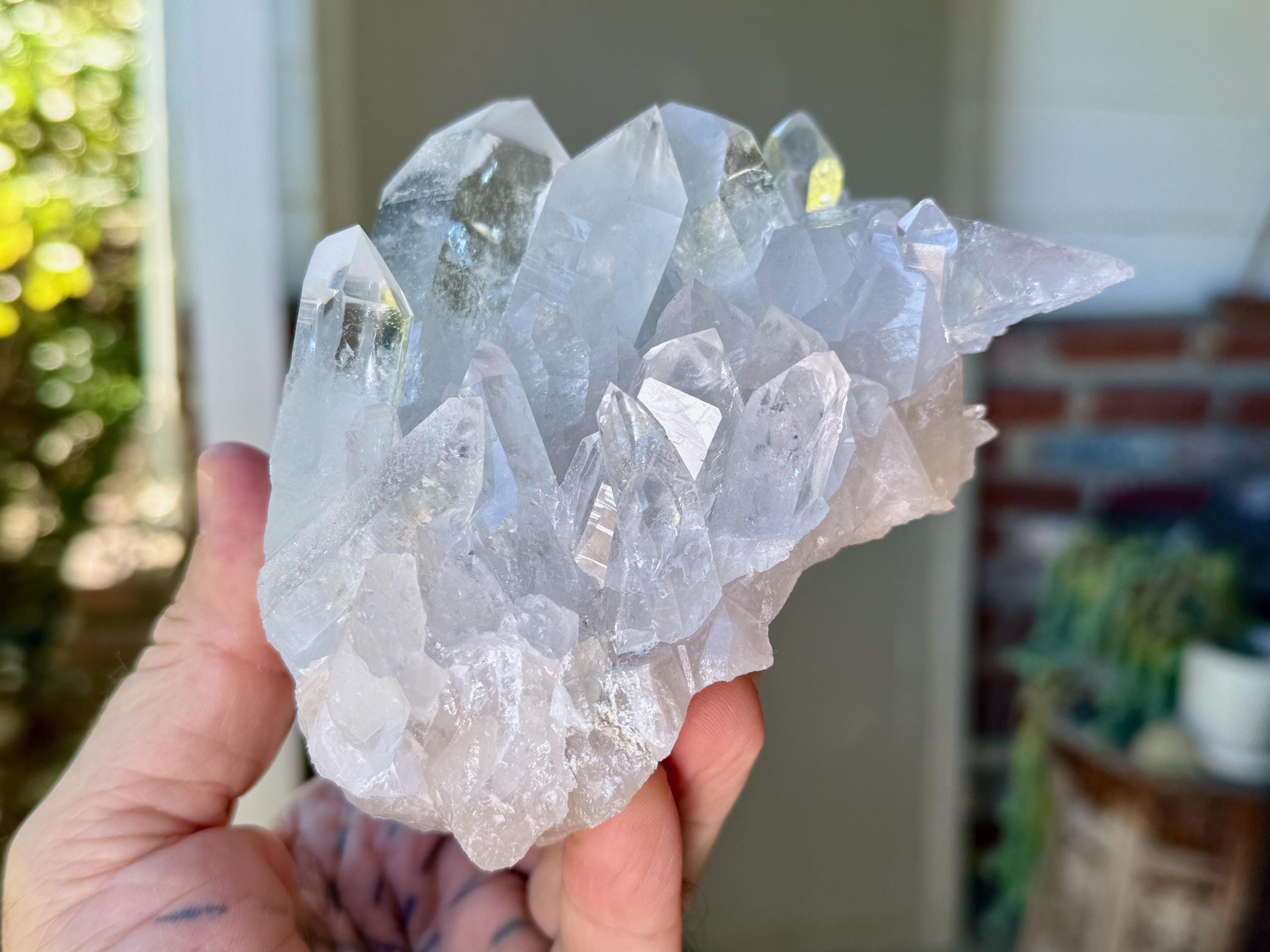 On the larger, more primary crystals, we can see mild Starbrary imprints on the sides. The base is naturally flat, so this piece sits nicely on its own for display.