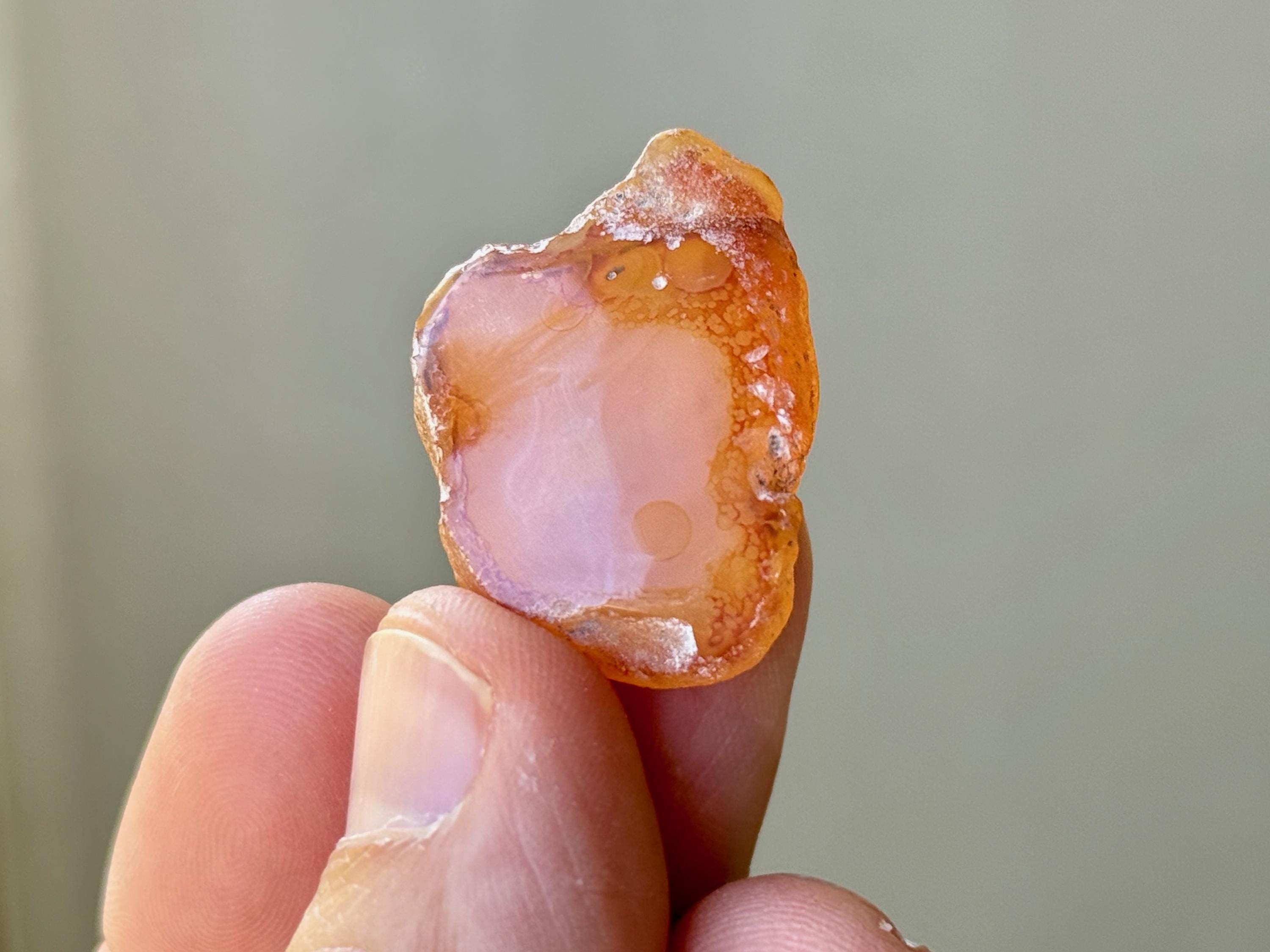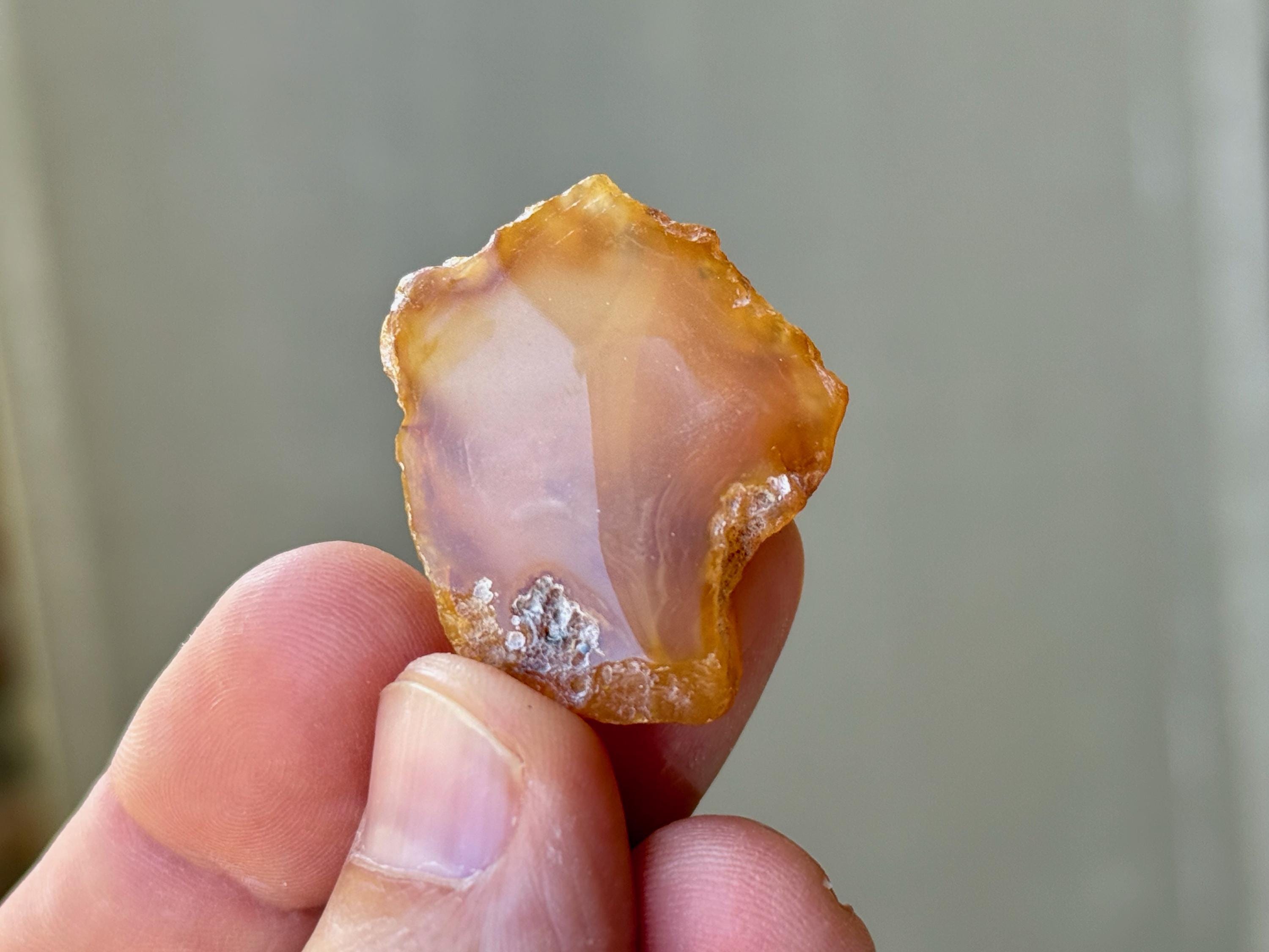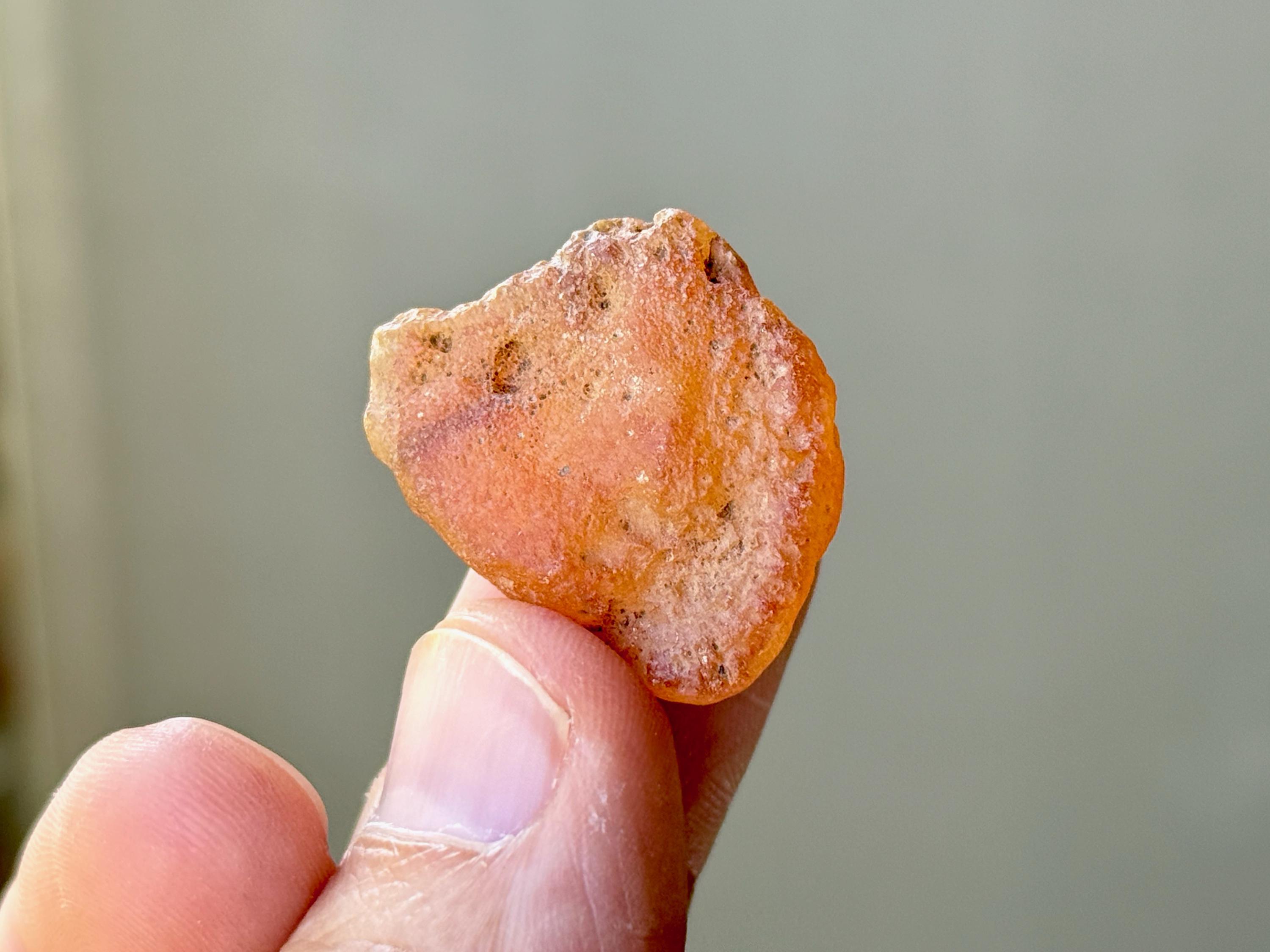 A wonderful lot of these natural Carnelian Agates in natural formations with semi-polished areas on front and/or back. We love the gradient colors of yellow, orange and red. When backlit, they pass light beautifully, and you may even see a few with non-moving enhydros (water bubbles) trapped inside.