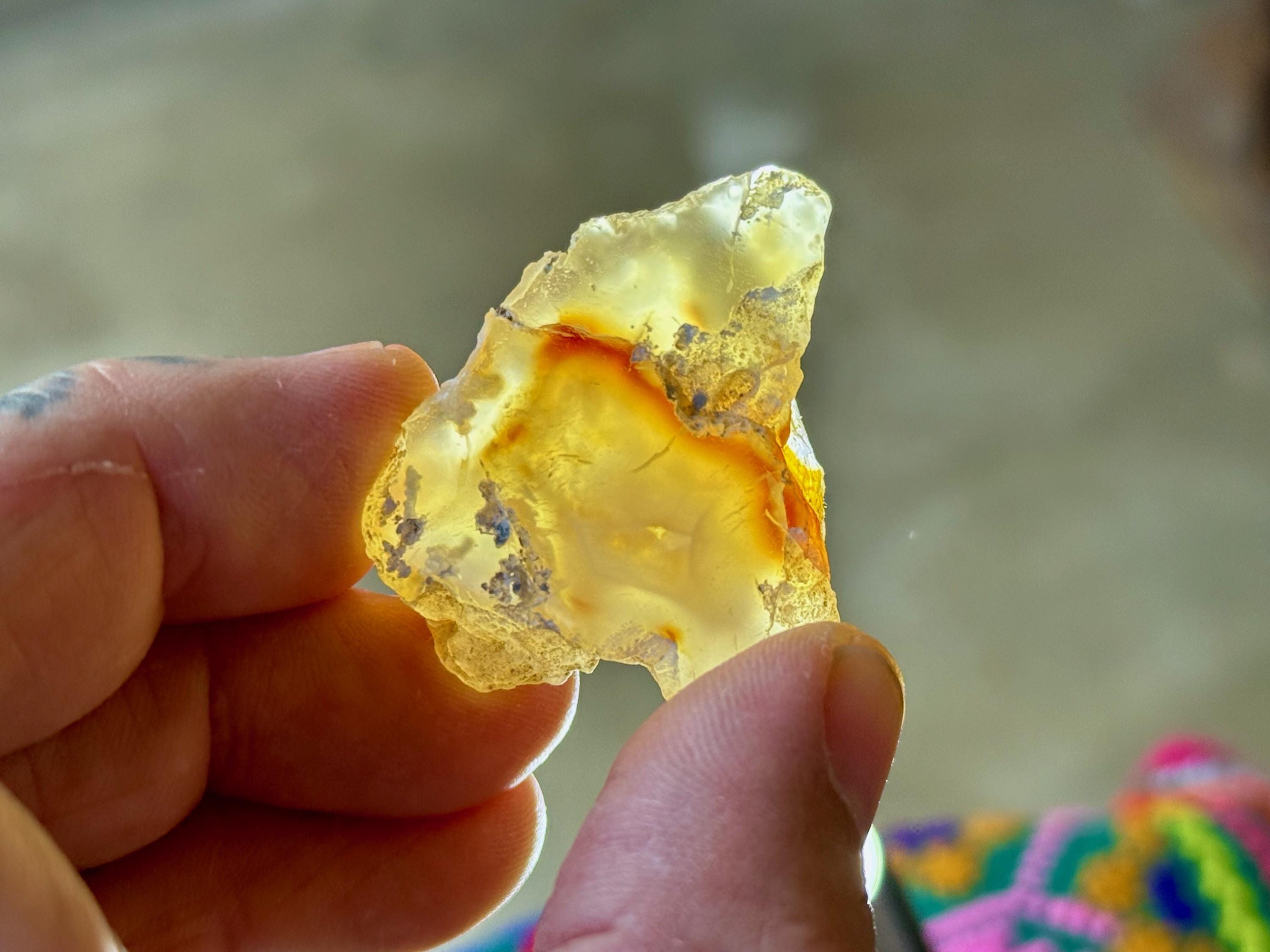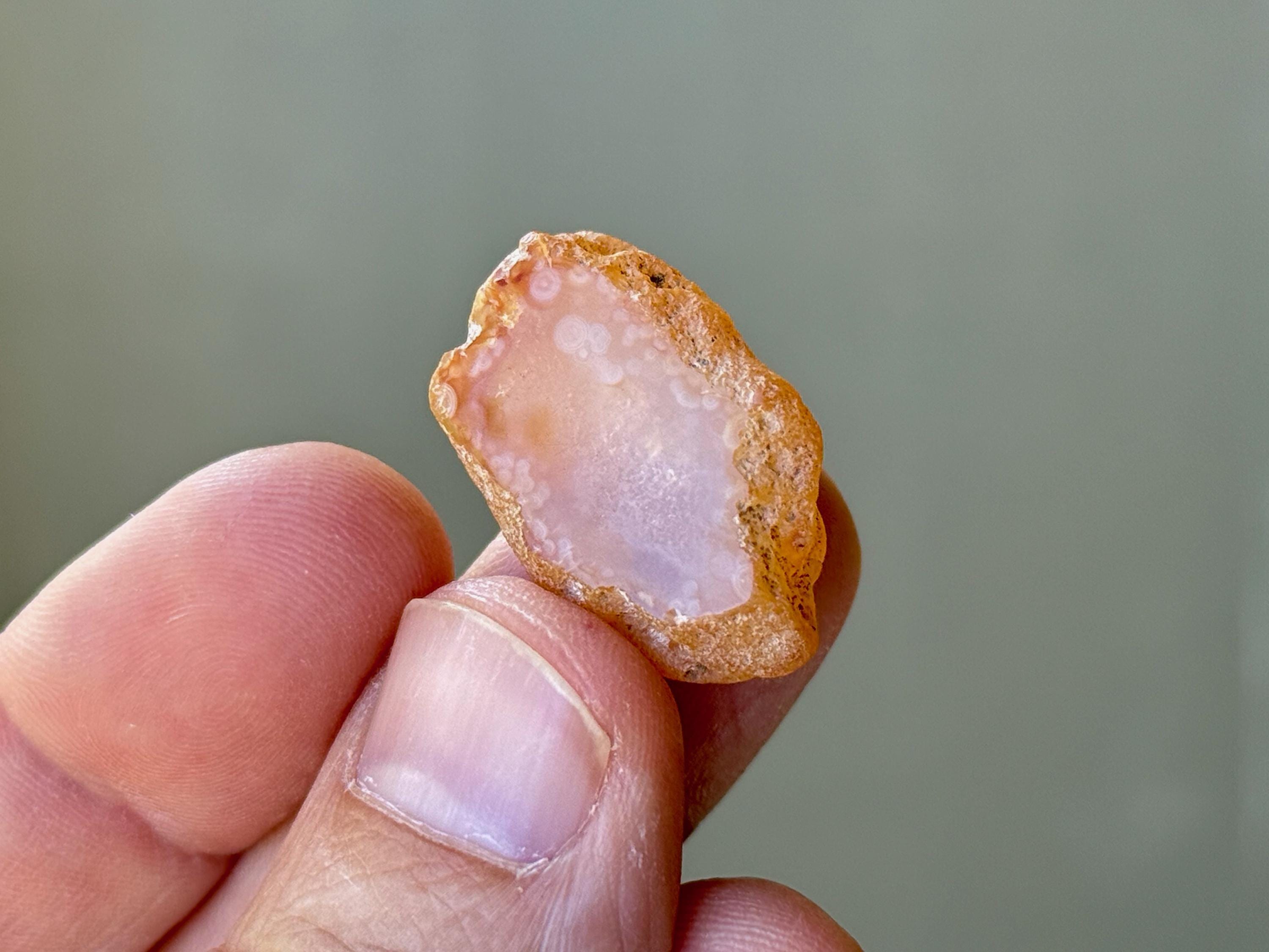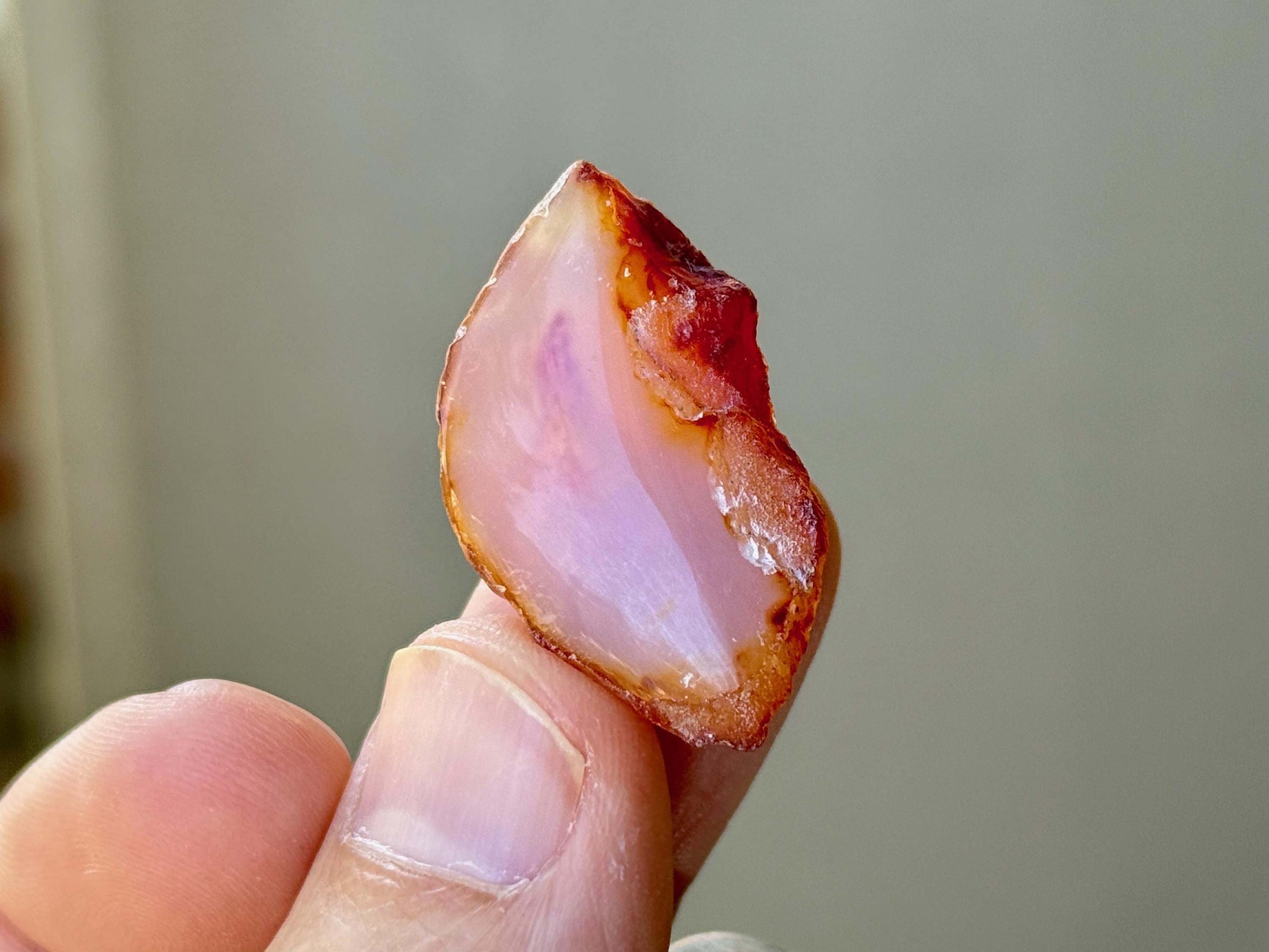 A wonderful lot of these natural Carnelian Agates in natural formations with semi-polished areas on front and/or back. We love the gradient colors of yellow, orange and red. When backlit, they pass light beautifully, and you may even see a few with non-moving enhydros (water bubbles) trapped inside.