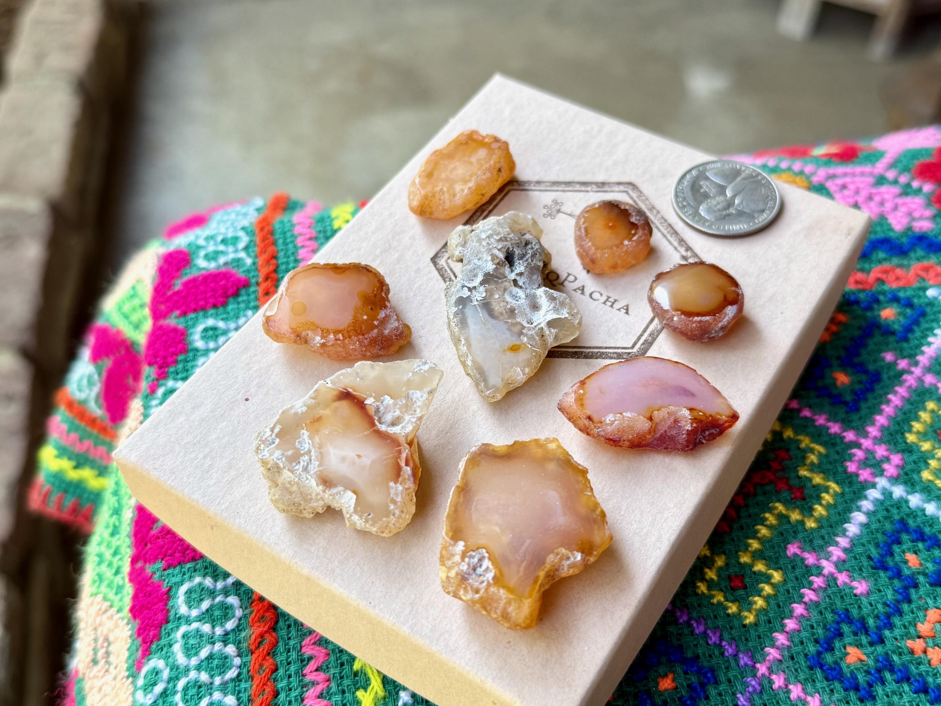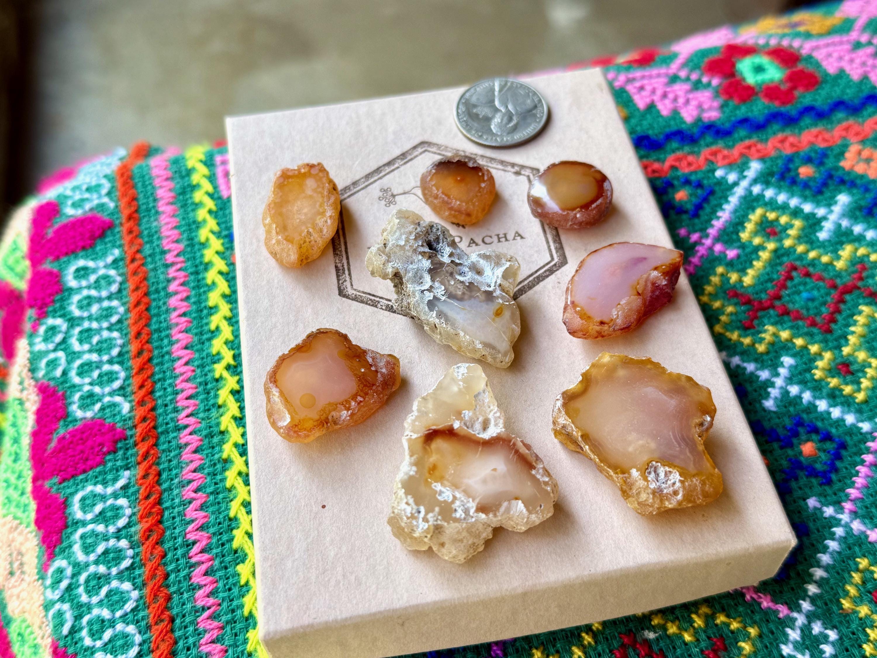 This beautiful lot of Carnelian Agates comes from a recent find in Java, Indonesia. Each of these crystals has been polished on one or both of their broad sides with edges (and sometimes back) left natural. Carnelian inspires courage and promotes positive, empowered life choices.