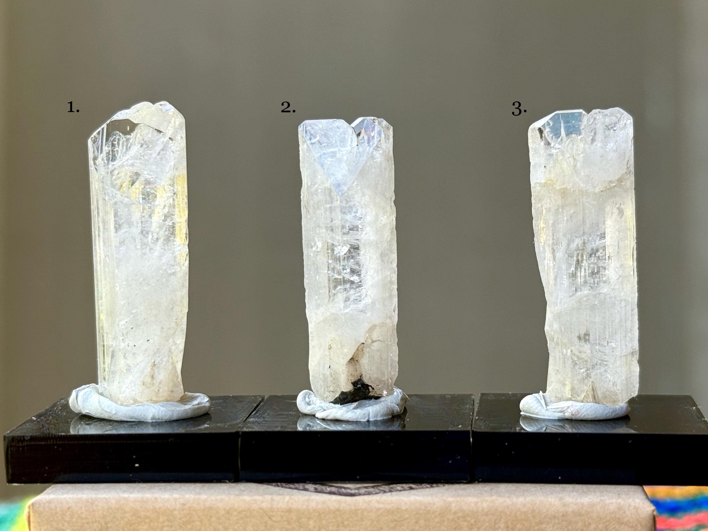 Simply select the crystal(s) of your preference from the dropdown menu (#1-3). The crystals are numbered in Photo 1, as well as in each subsequent photo. Each photo in the dropdown correlates to the actual crystal purchased.