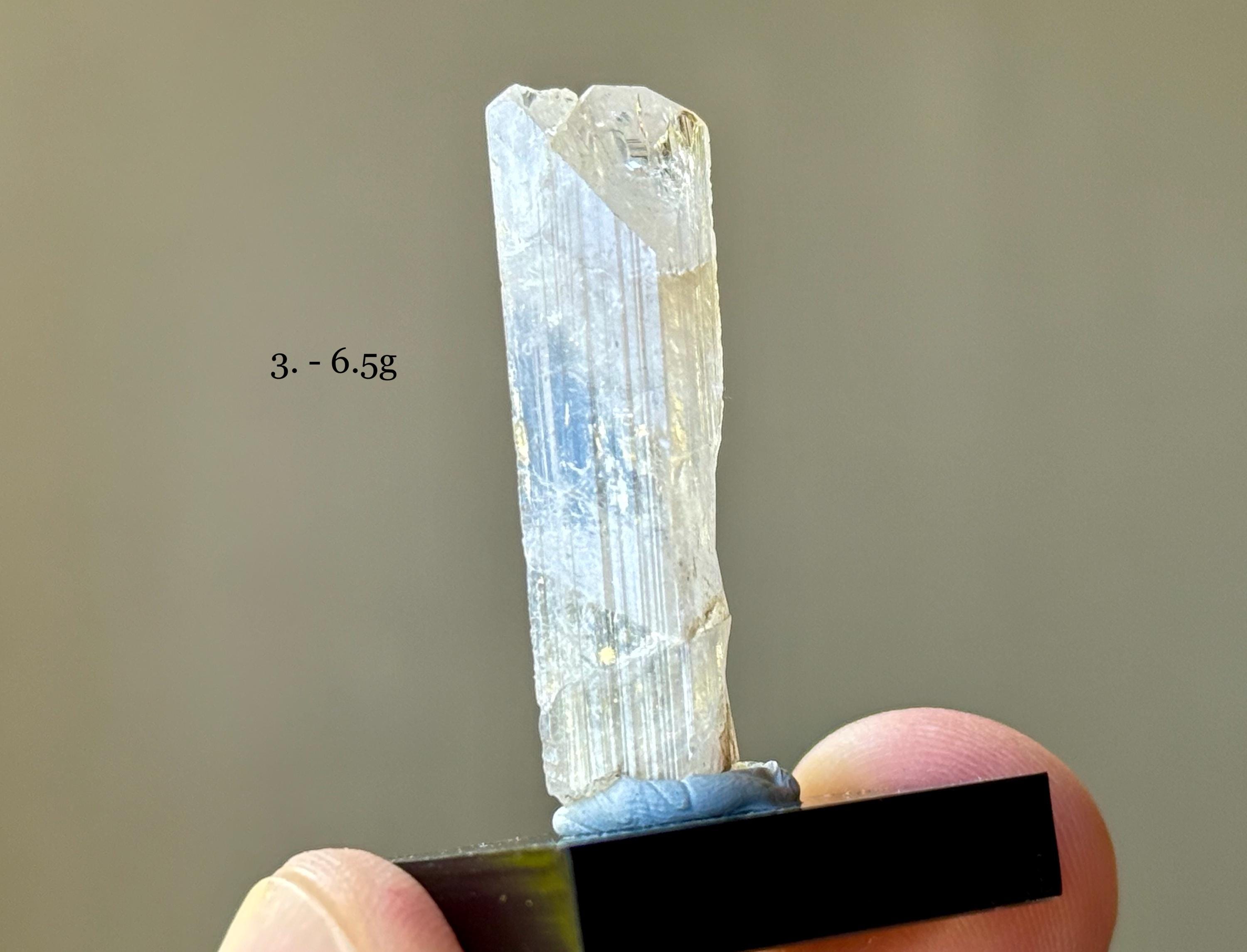 Each crystal ranges from 3.25 cm - 3.75 cm in length and between 5g - 6.5g in weight. Please see photos for exact weights of each.