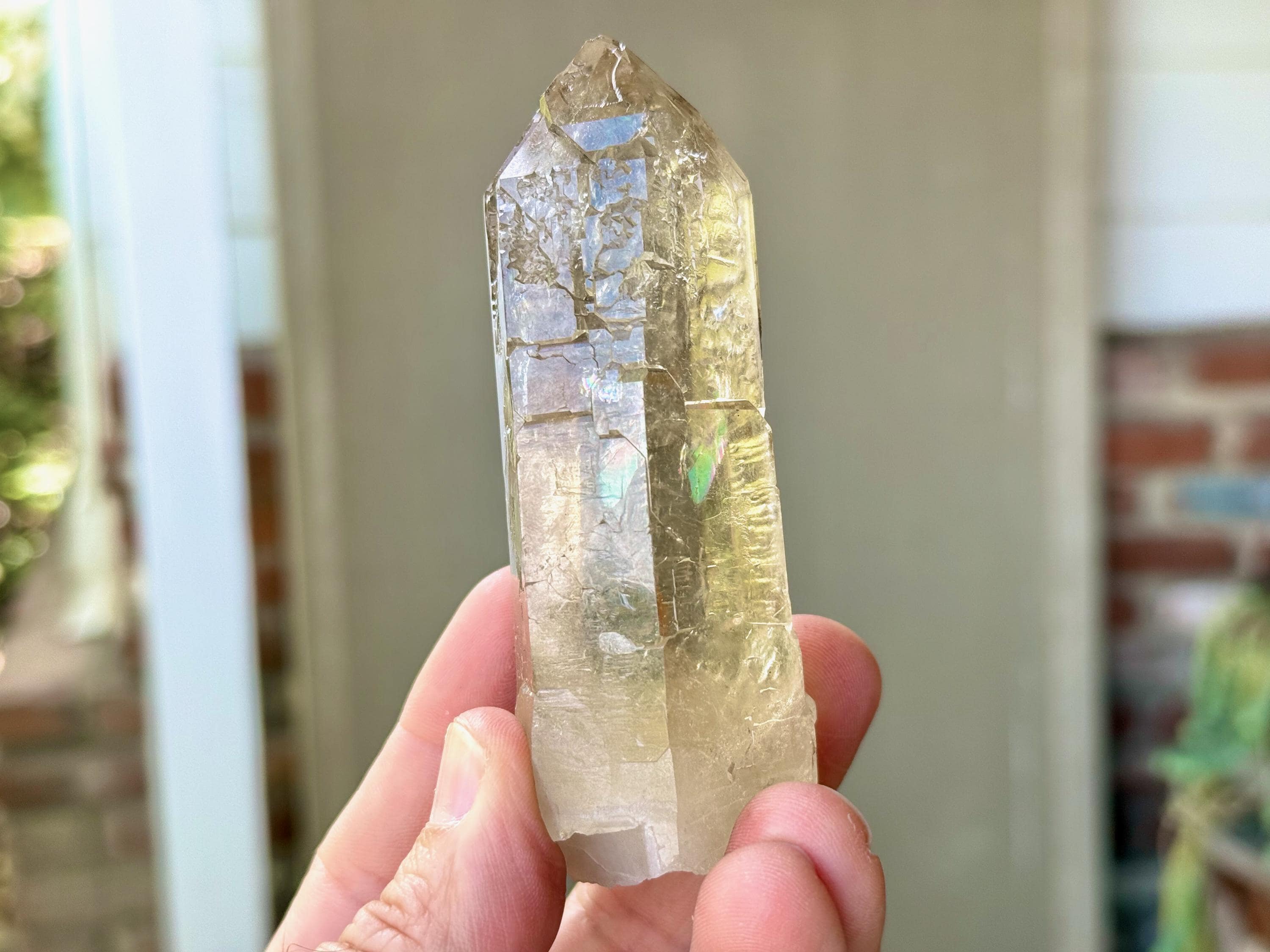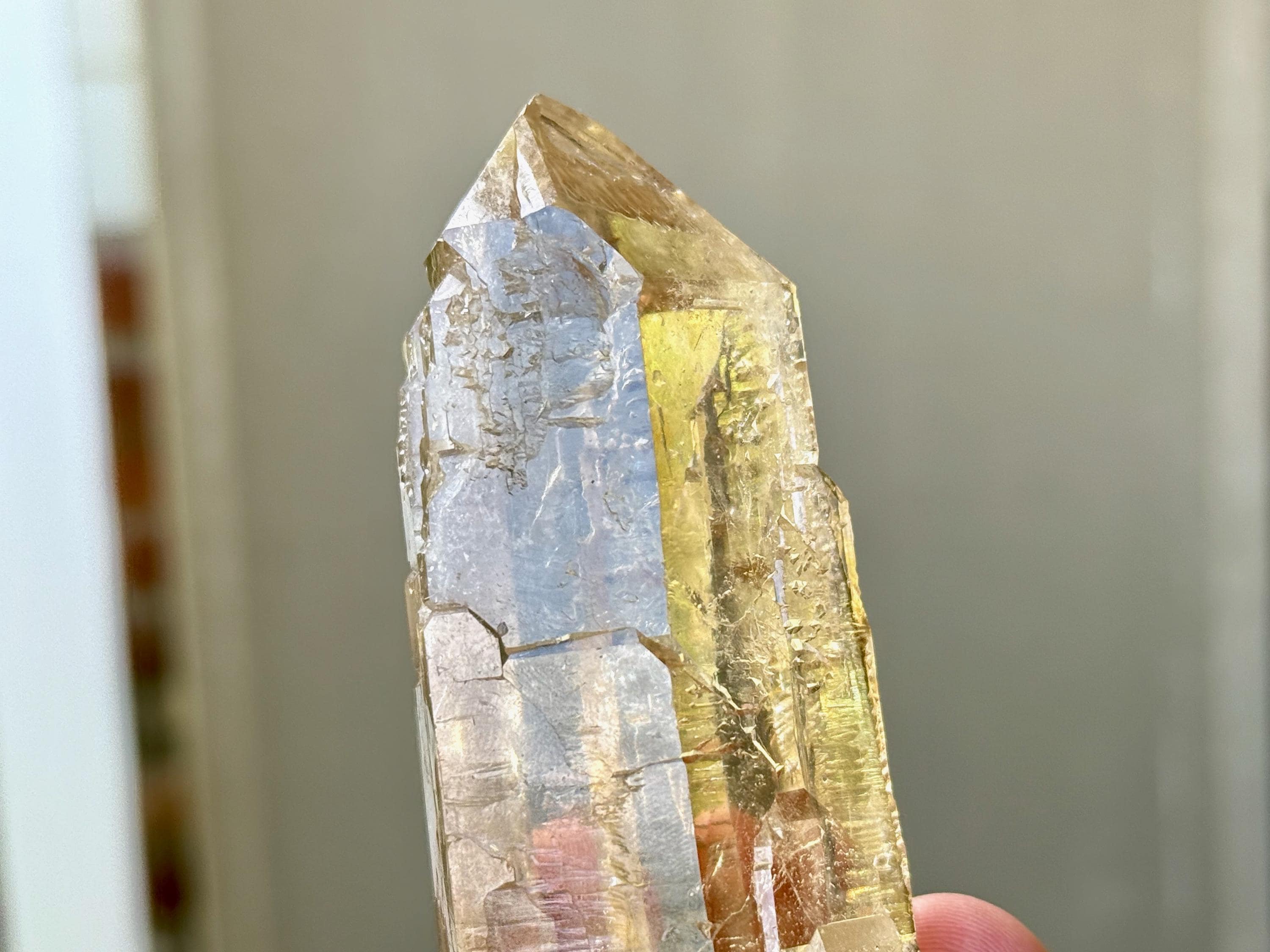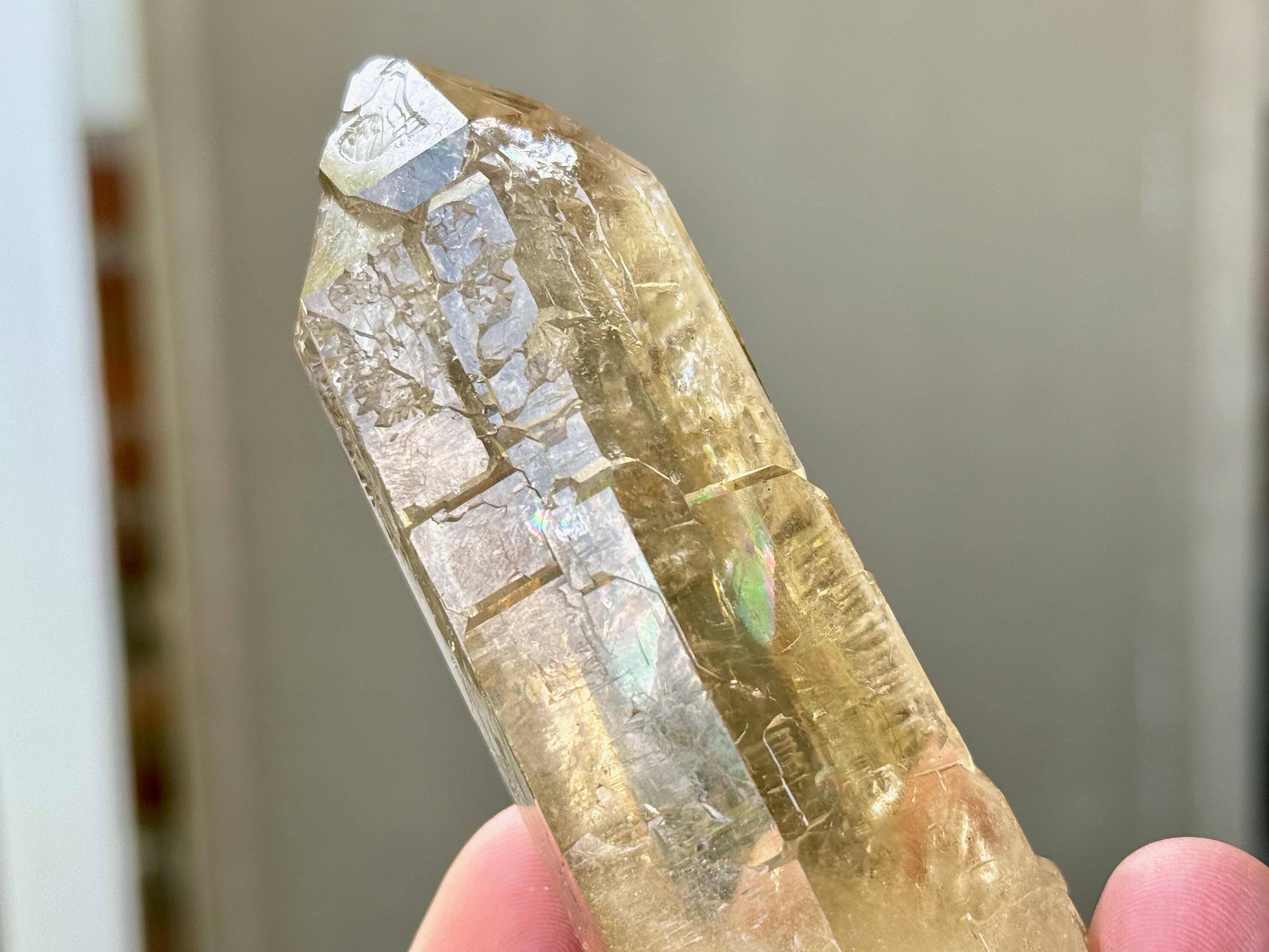 This natural Elestial Citrine crystal comes from a recent find in the Aracuai region of Minas Gerais, Brazil. Citrine activates, opens, and energizes the Solar Plexus and Navel Chakras, releasing personal power, creativity and most importantly the ability to manifest.