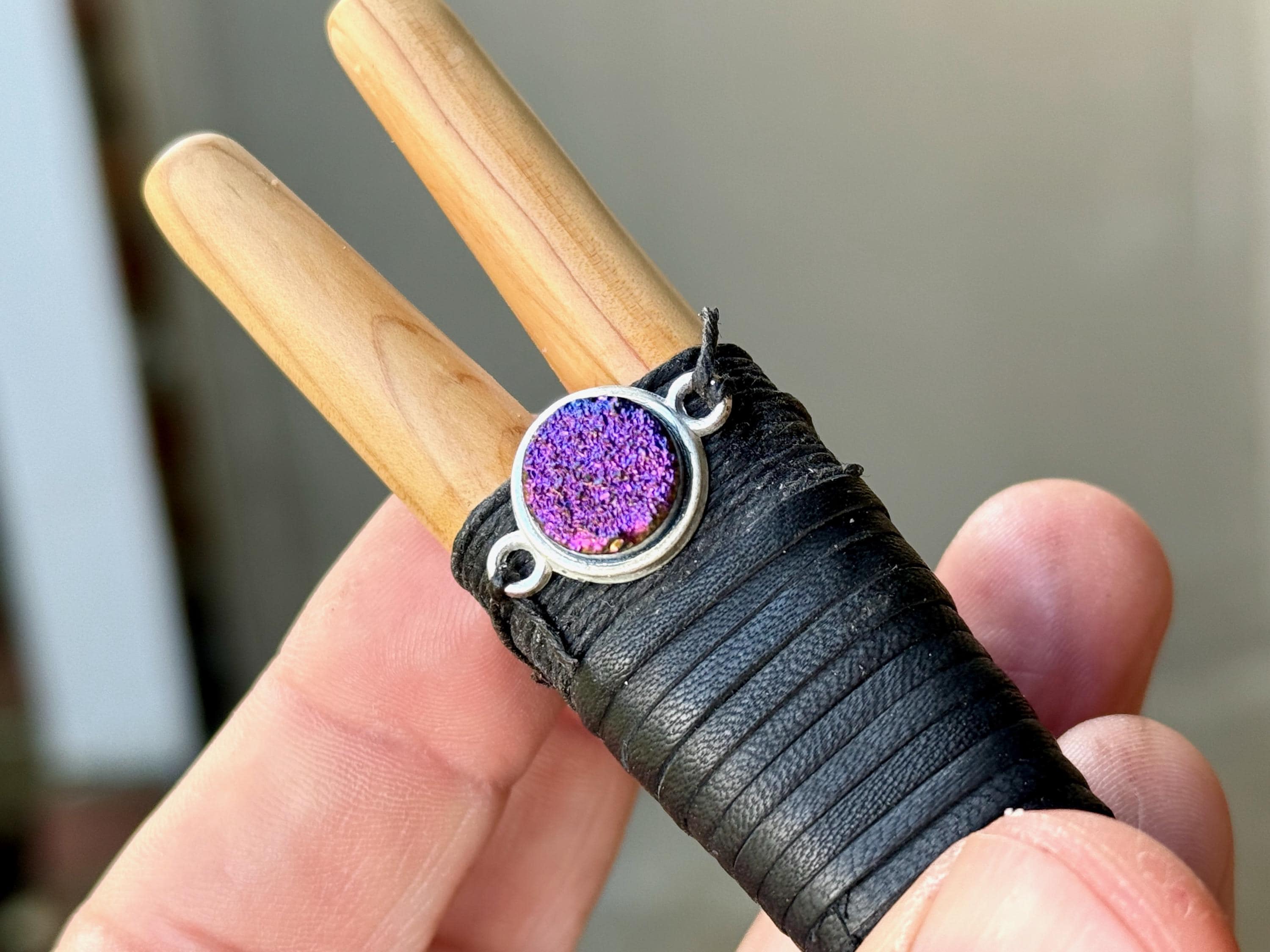 Additional ornamentation: Titanium Aura Cabochon in bezeled silver-tone setting