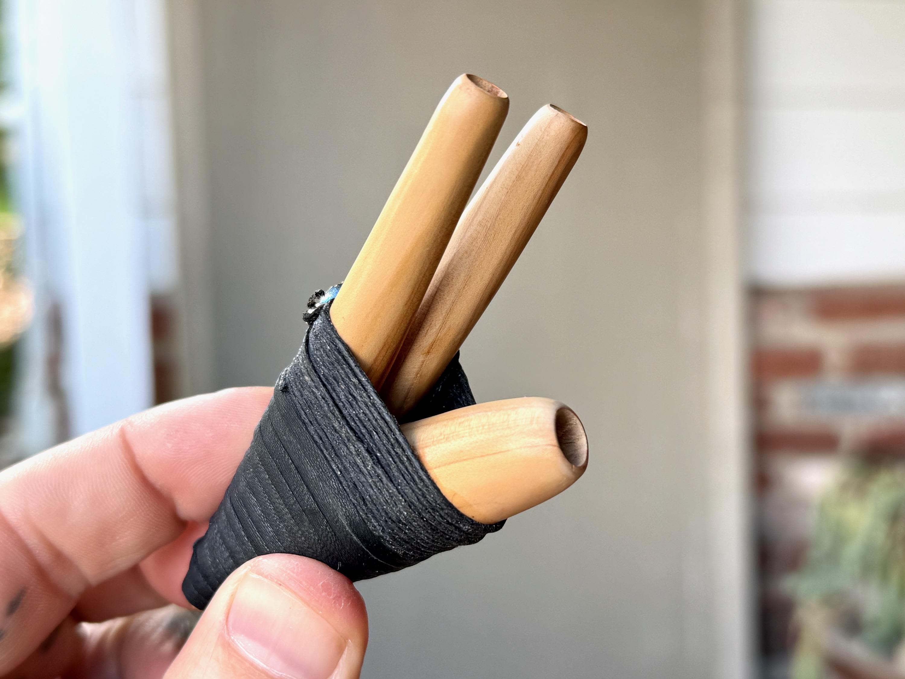 Please be aware that it can be very tricky to design a Double Kuripe that fits everyone due to the unique anatomical features of human beings. We have taken a good deal of time and consideration to craft pipes that are designed to fit MOST people. That being said, please be aware that there is always the chance that a Double Kuripe may be too wide or too narrow for some. If this is a concern, it is best to stick with a traditional single kuripe. However, we have found that our design fits most people without a problem.