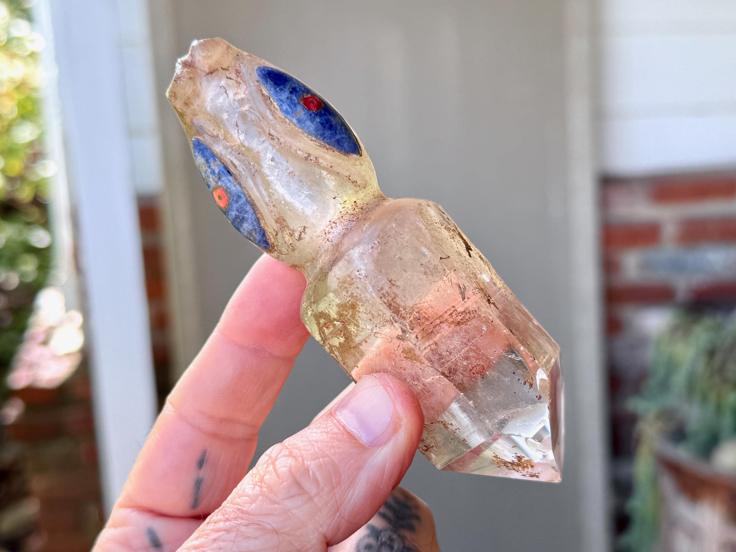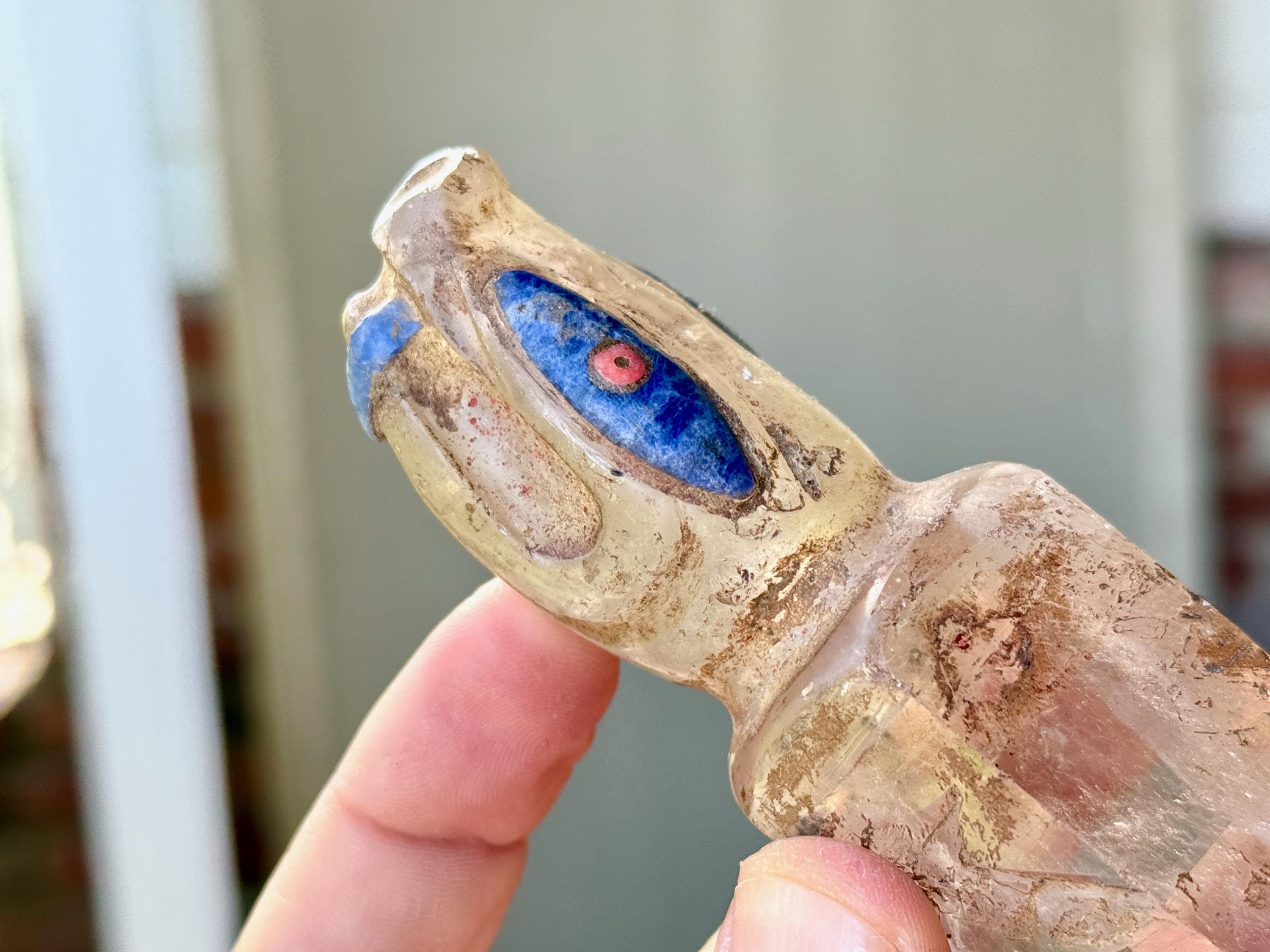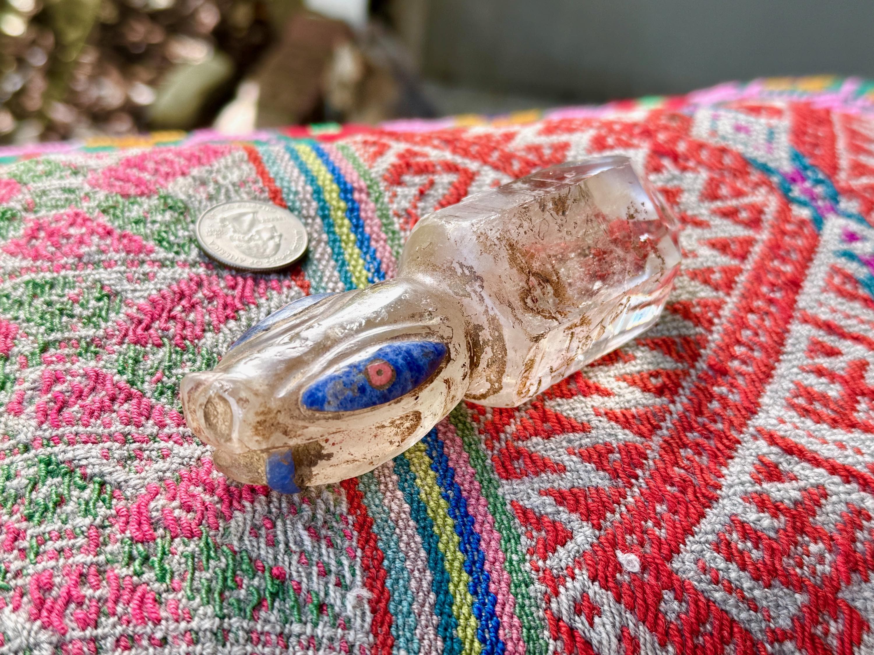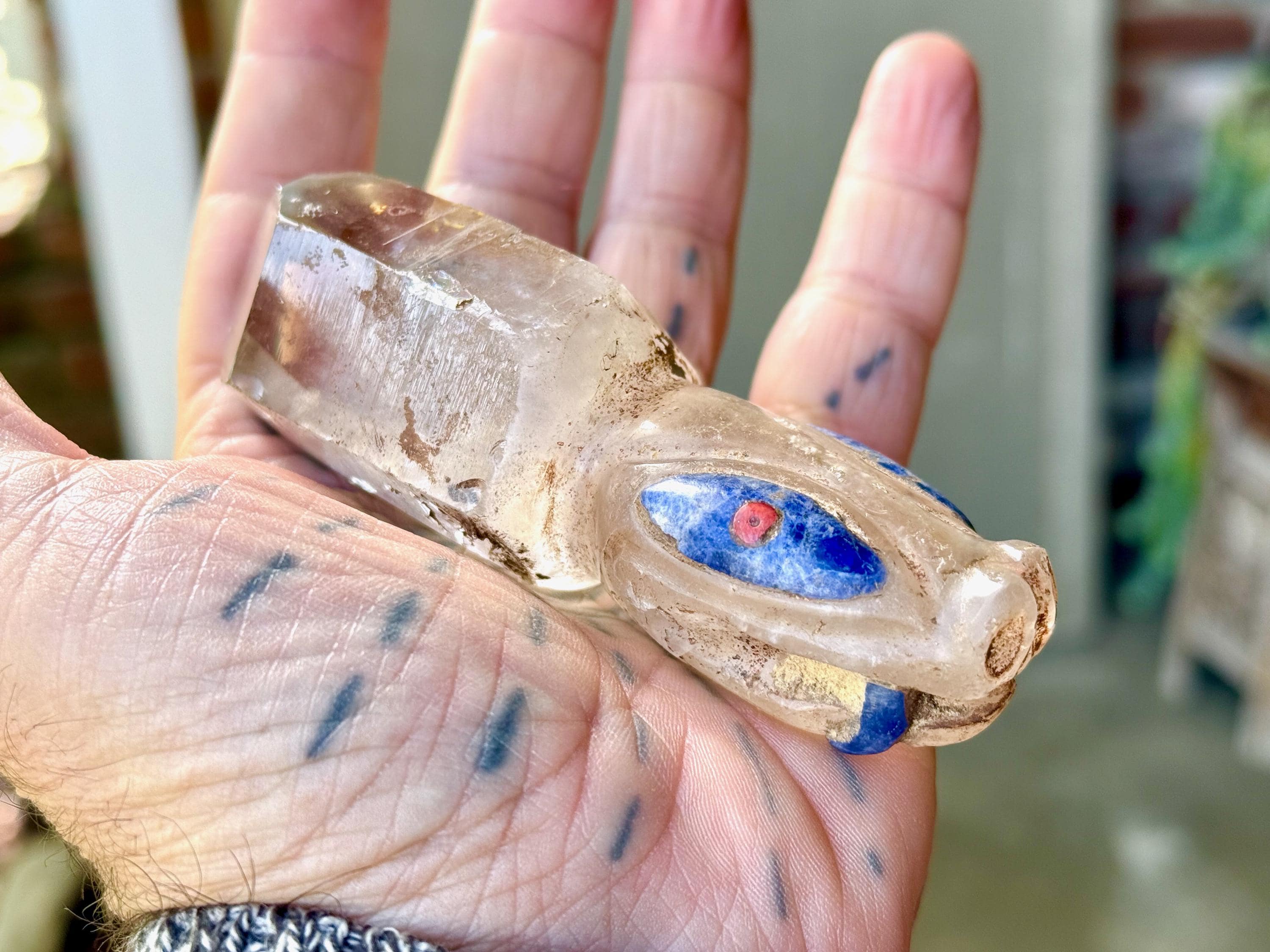 This exquisite Shamanic Crystal Serpent was hand carved from native Quartz by artisan Jose Aguilar in Peru's Sacred Valley. His pieces are influenced by sculptures and carving found in Incan tombs, and are imbued with the spirit and energies of the mountains and ancient lands where these native crystals were mined.