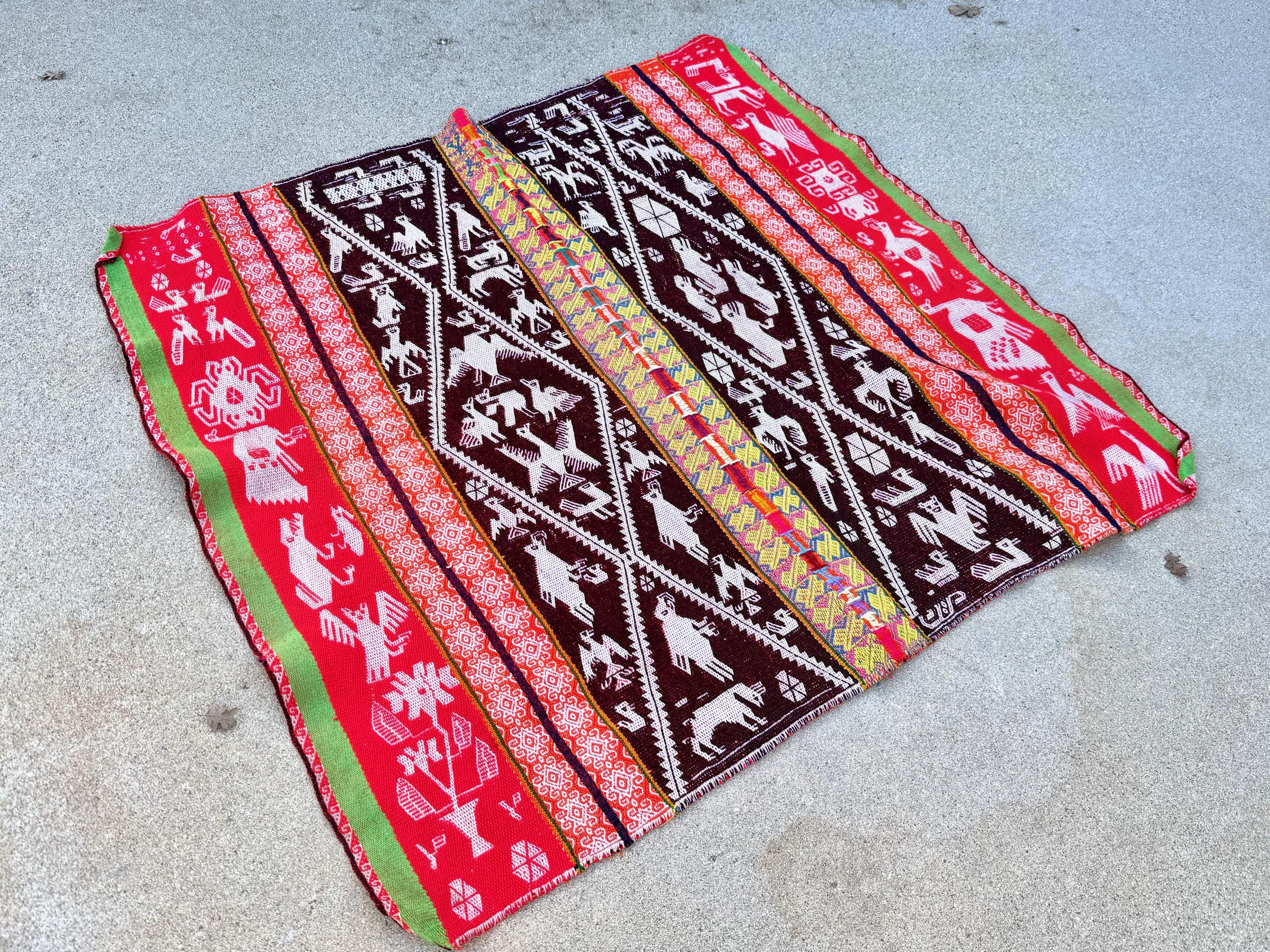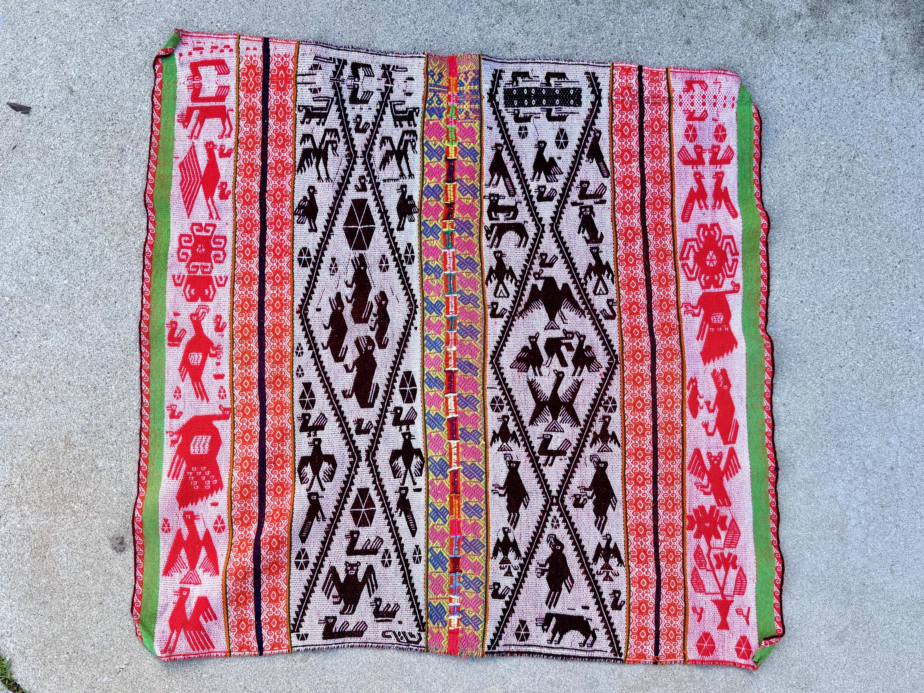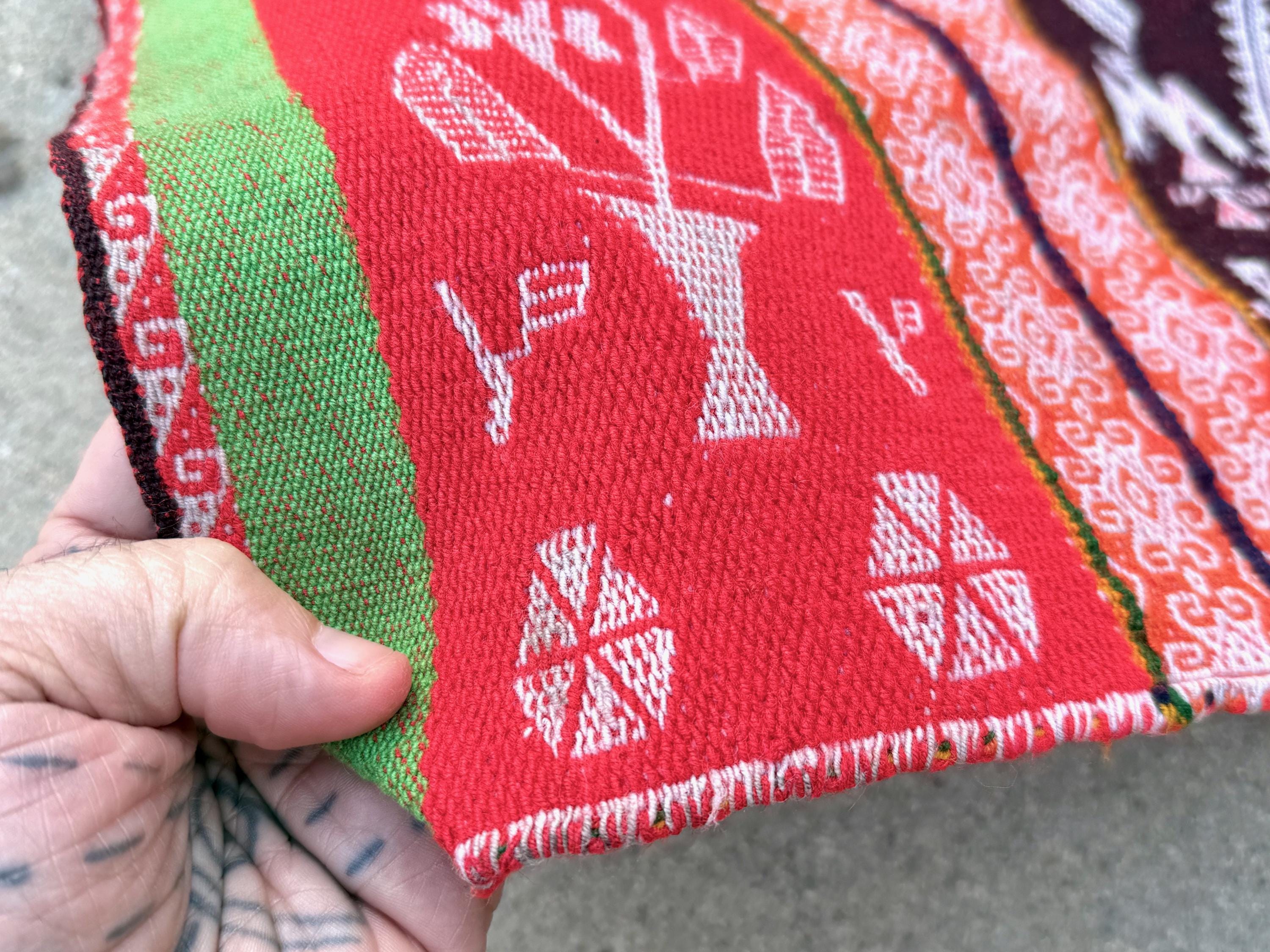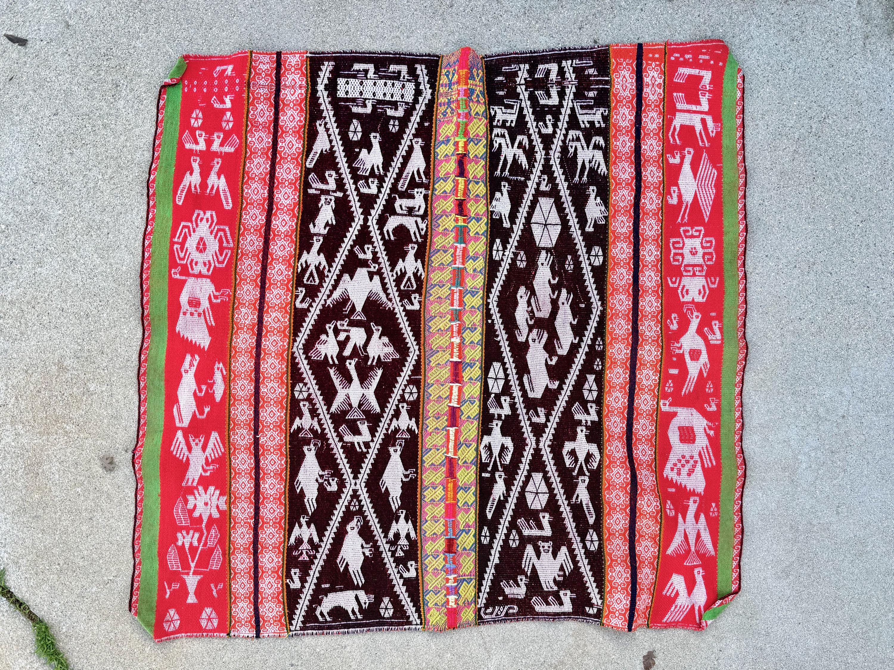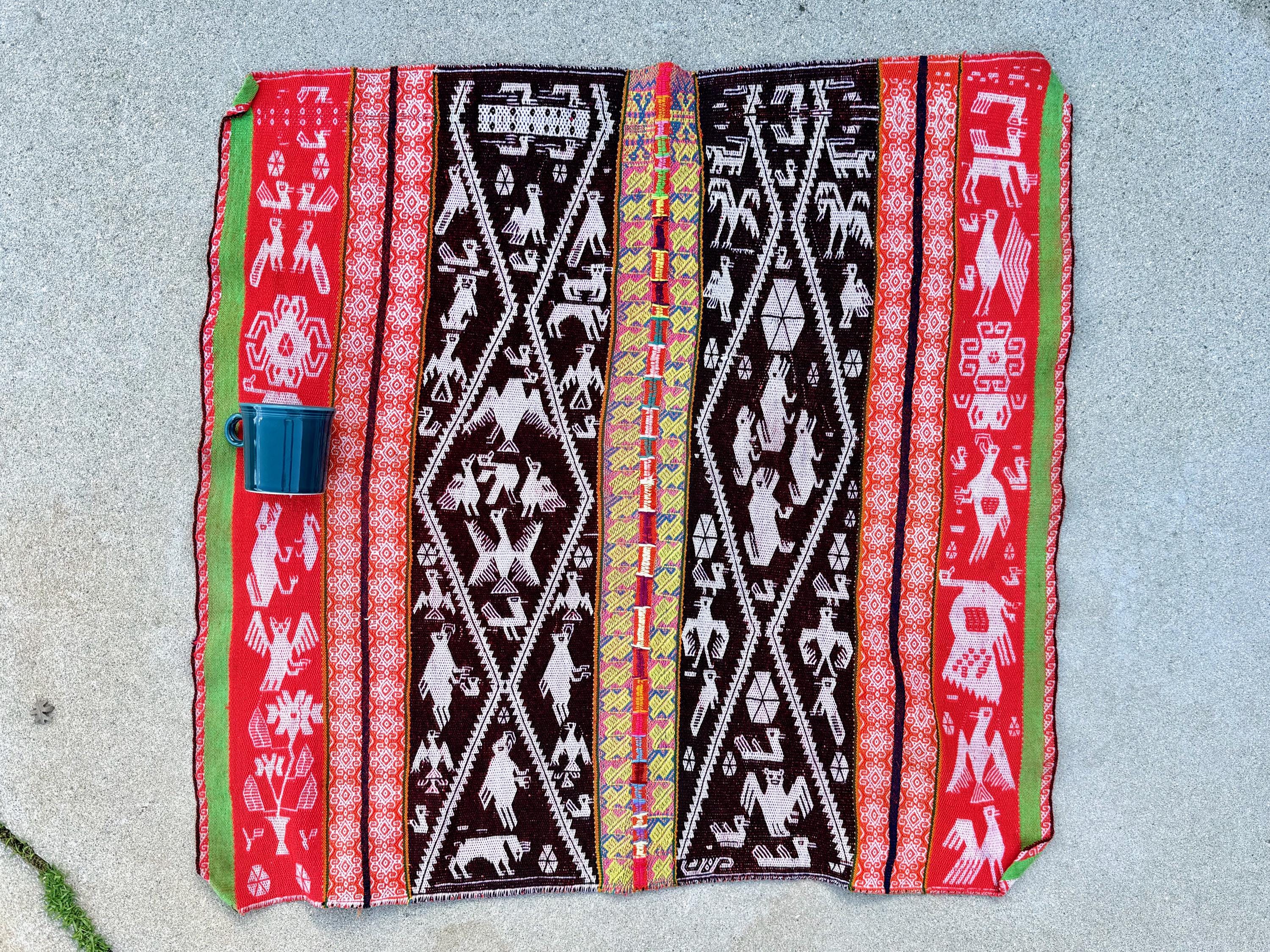 Shamanic Manta Cloth, Vintage Andean Mesa Cloth for Plant Medicine Ceremony, 33" x 35", Handmade in Patakancha, Ollantaytambo, Peru