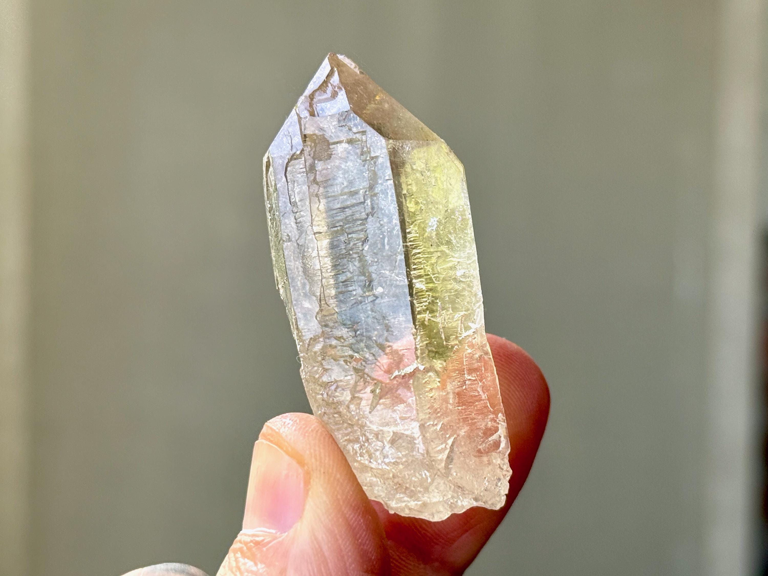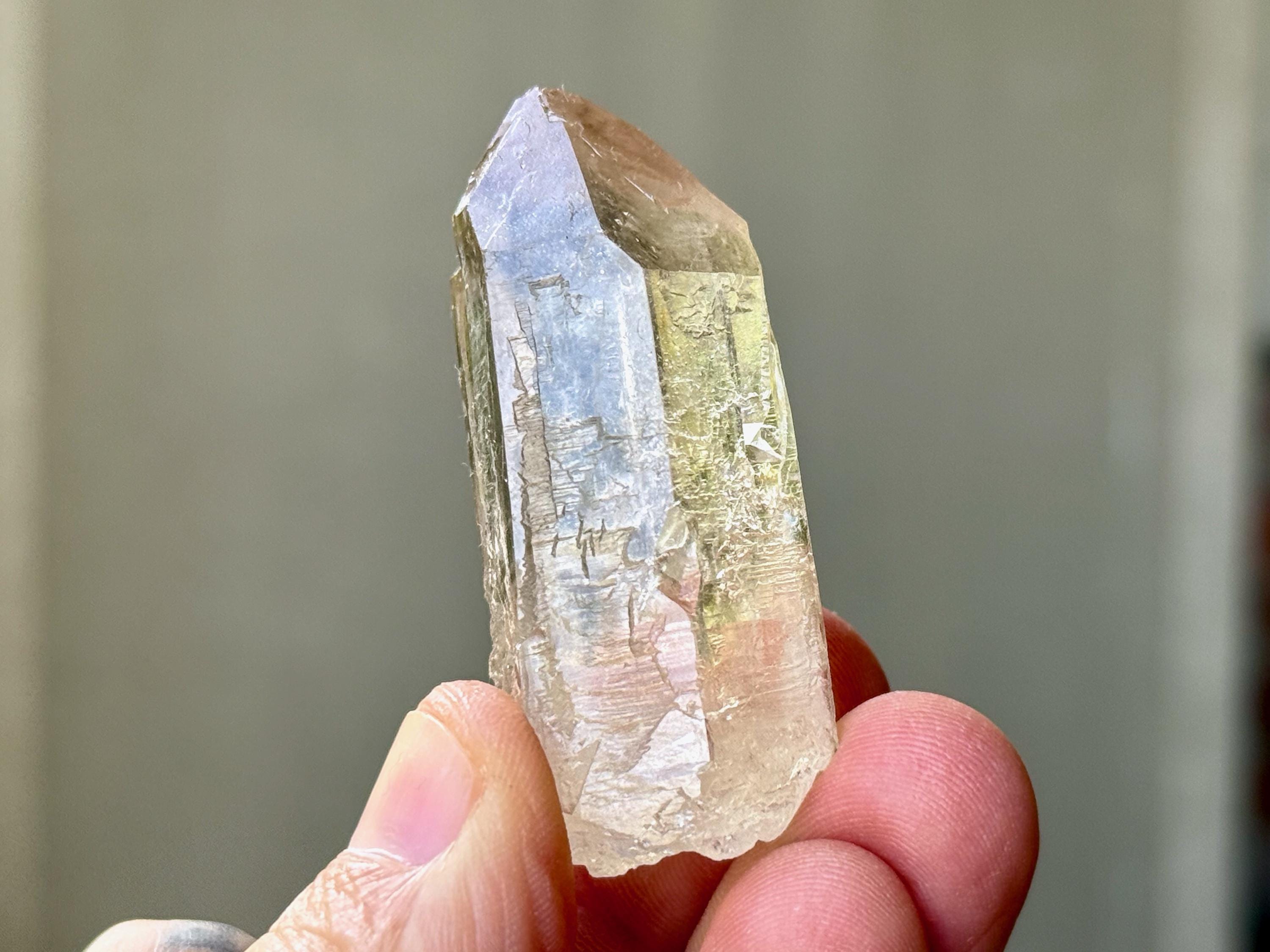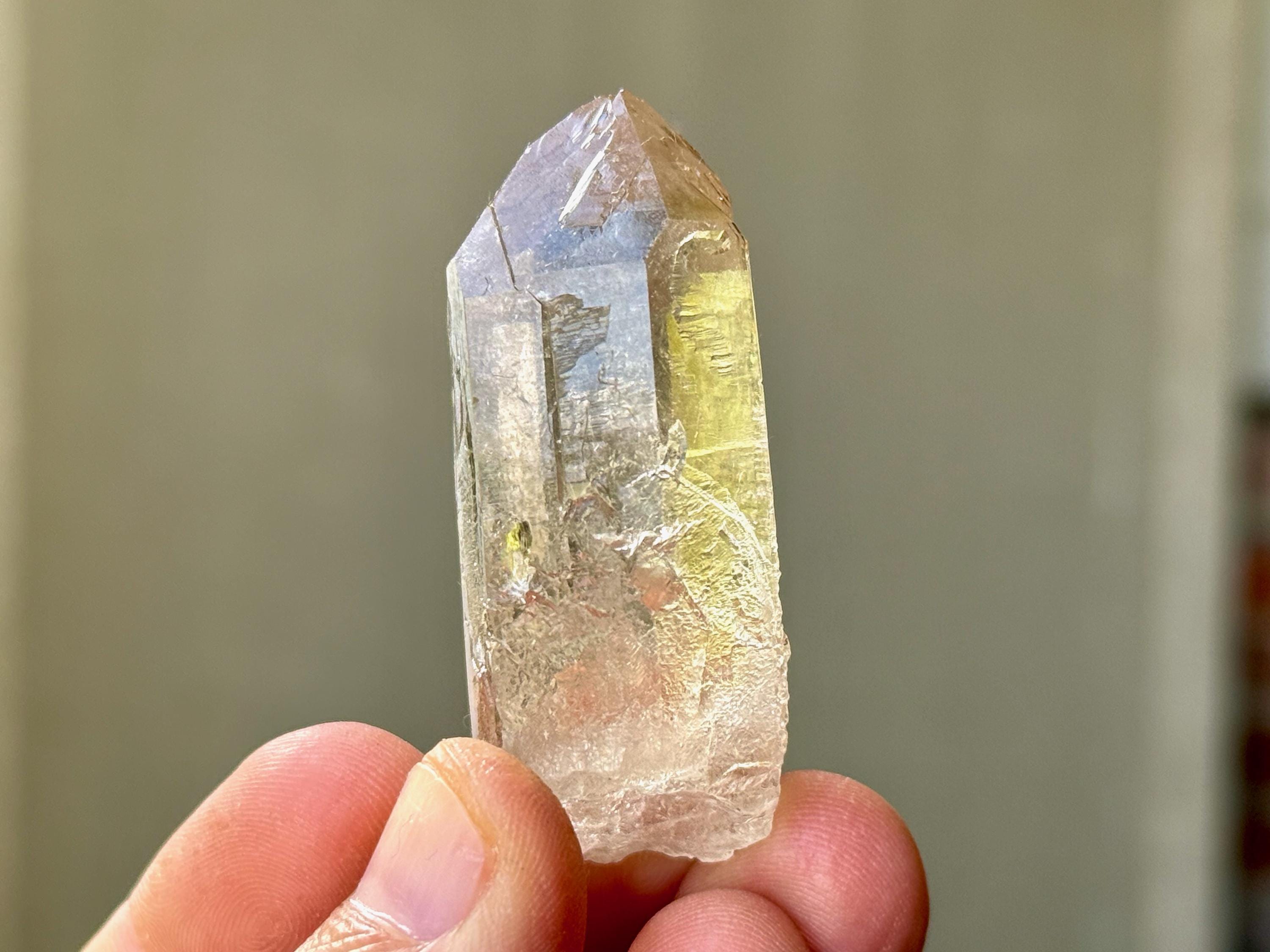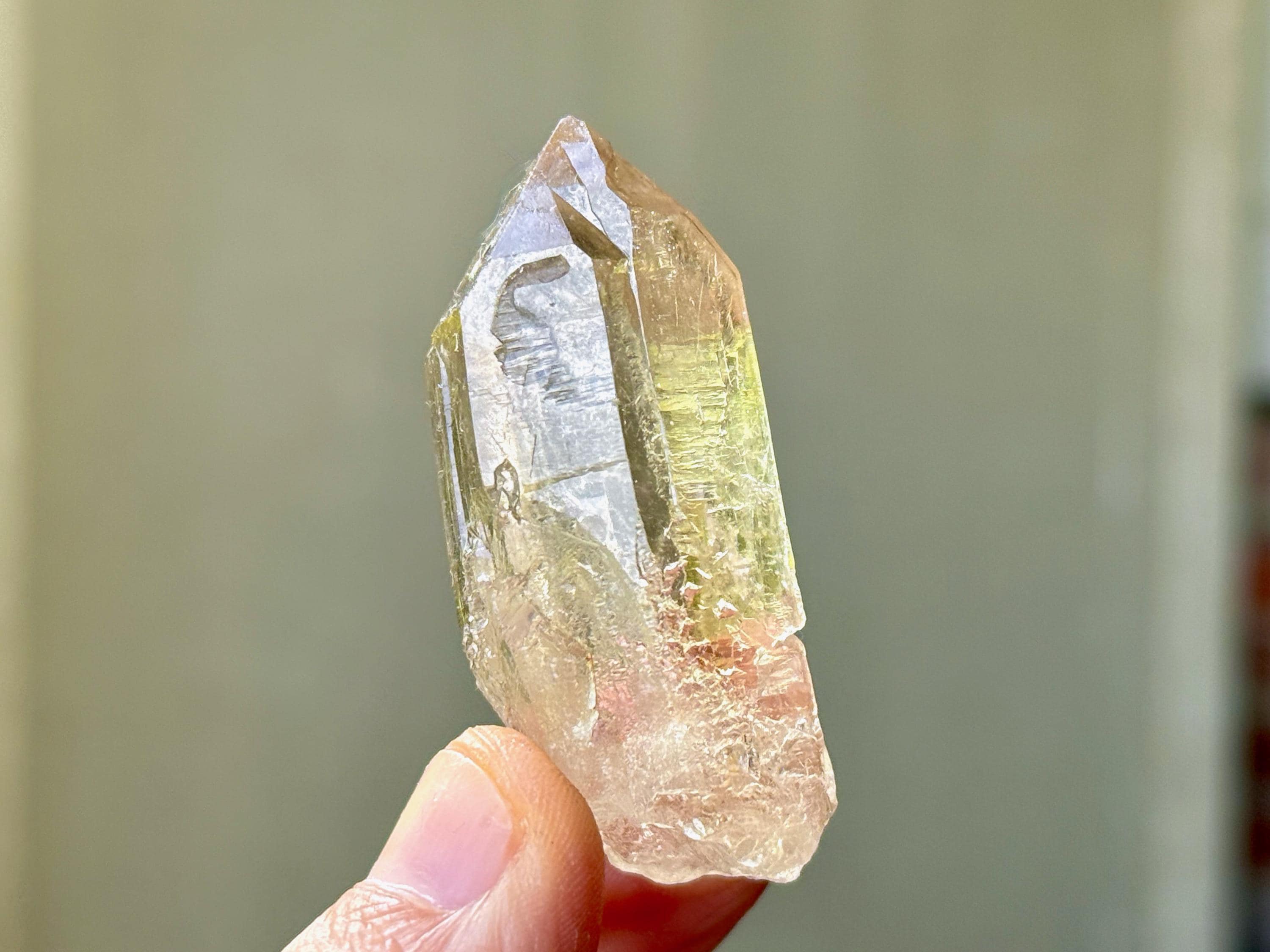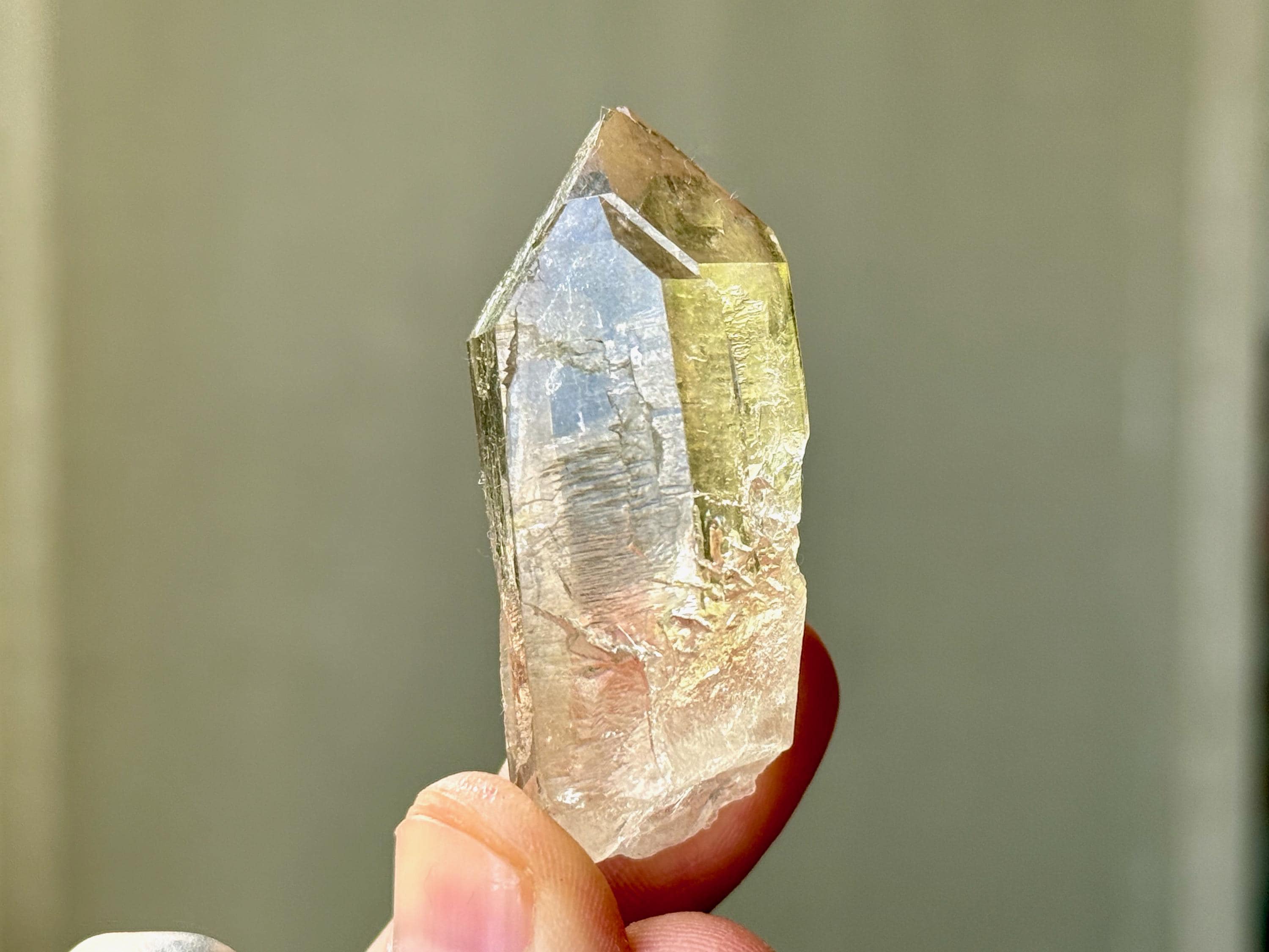 This natural Elestial Citrine crystal comes from a recent find in the Aracuai region of Minas Gerais, Brazil. Citrine activates, opens, and energizes the Solar Plexus and Navel Chakras, releasing personal power, creativity and most importantly the ability to manifest.