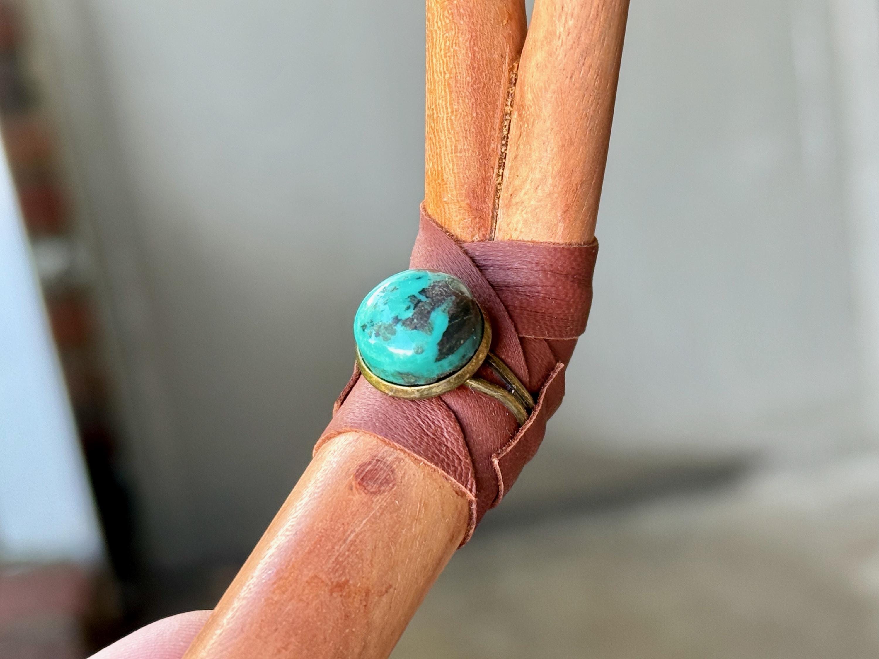 Additional ornamentation: Cloud Mountain Turquoise Cabochon in bezeled brass setting
