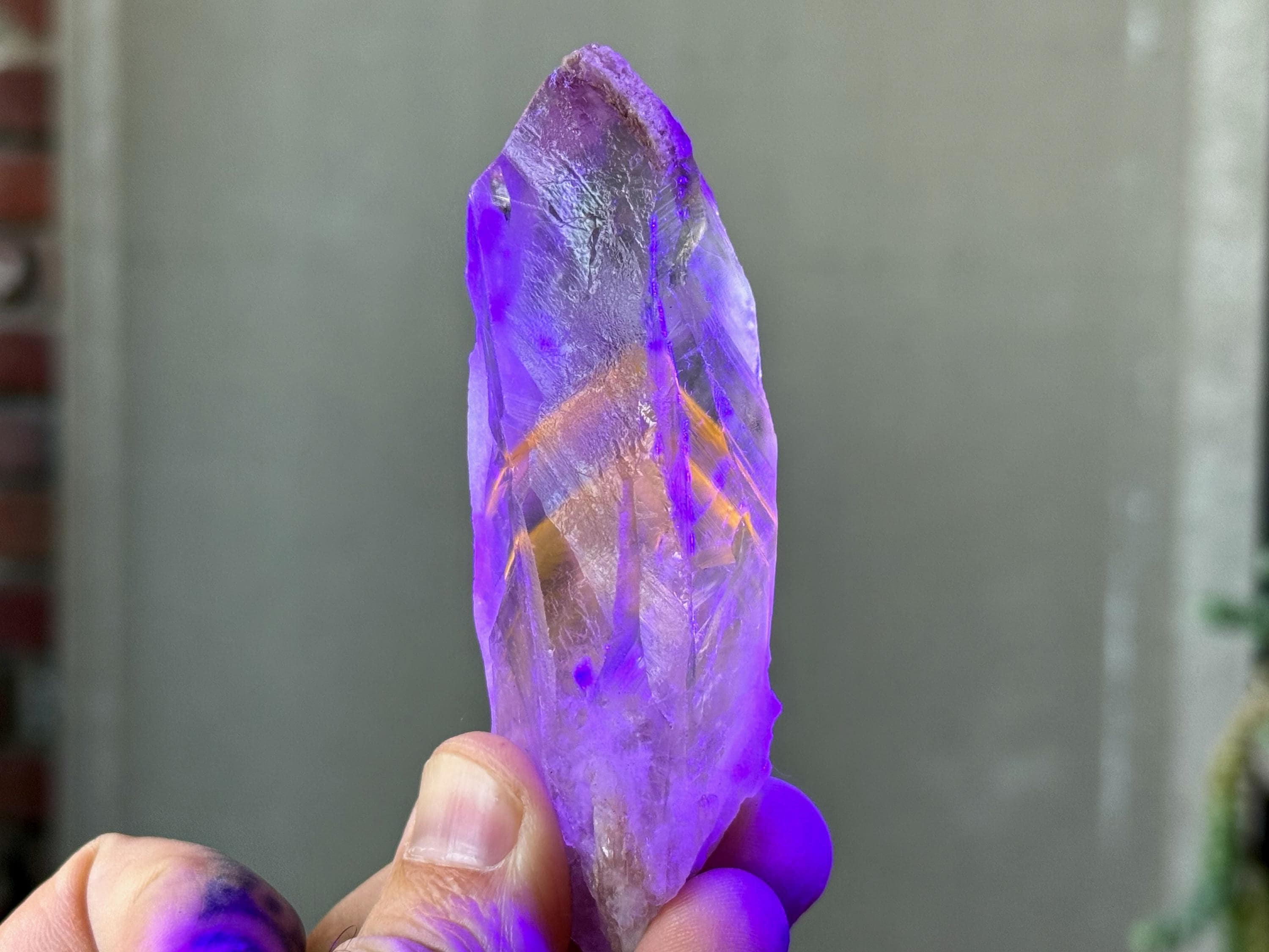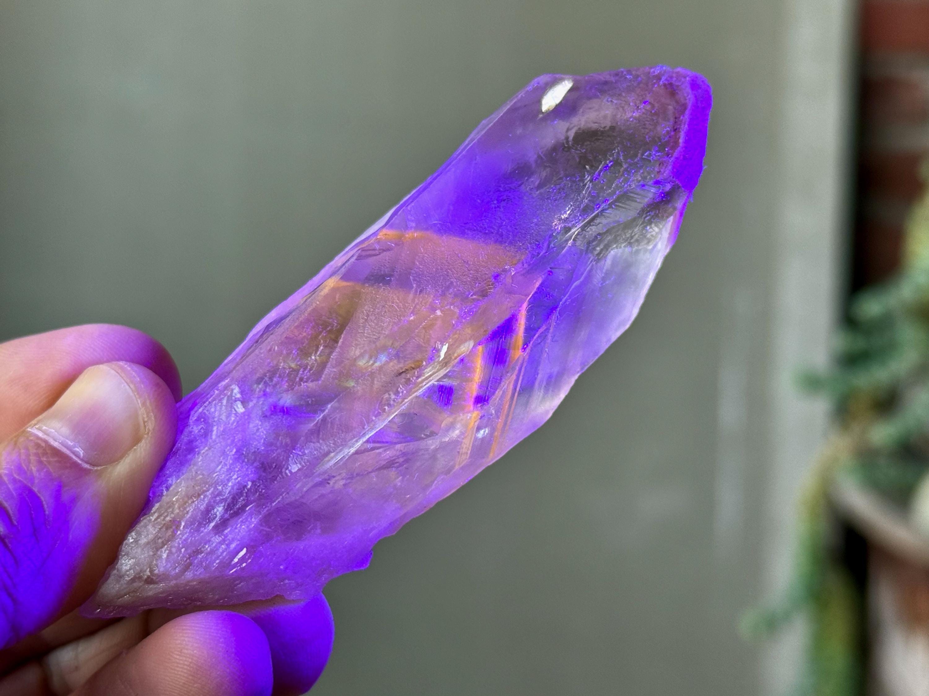 **Please note, the inclusions in this crystal are all natural/untreated. A UV light is necessary to see the phantoms glow, and they can be found affordably at Amazon or any other online outlet.