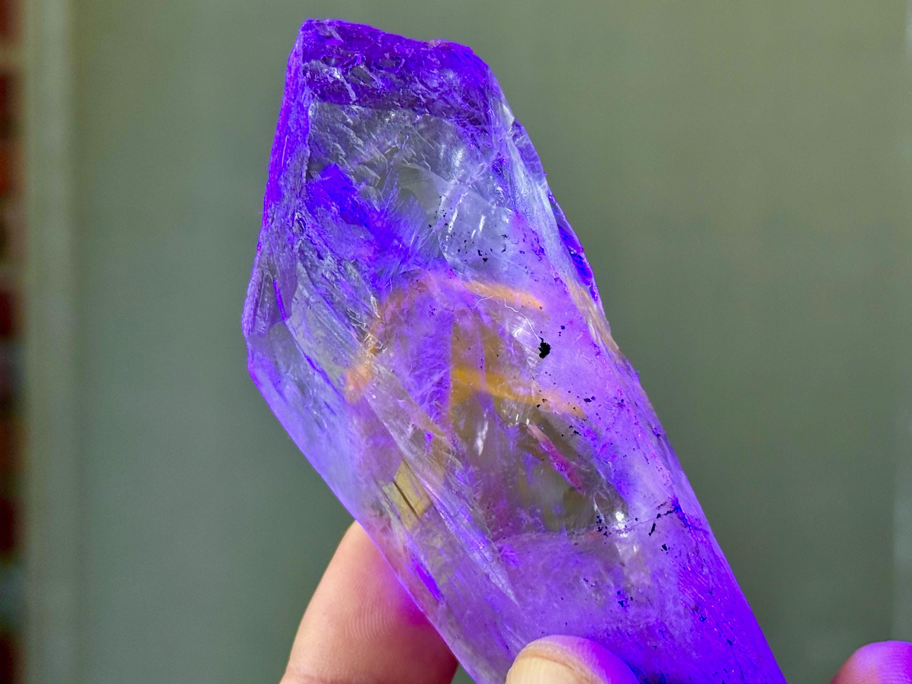 **Please note, the inclusions in this crystal are all natural/untreated. A UV light is necessary to see the phantoms glow, and they can be found affordably at Amazon or any other online outlet.