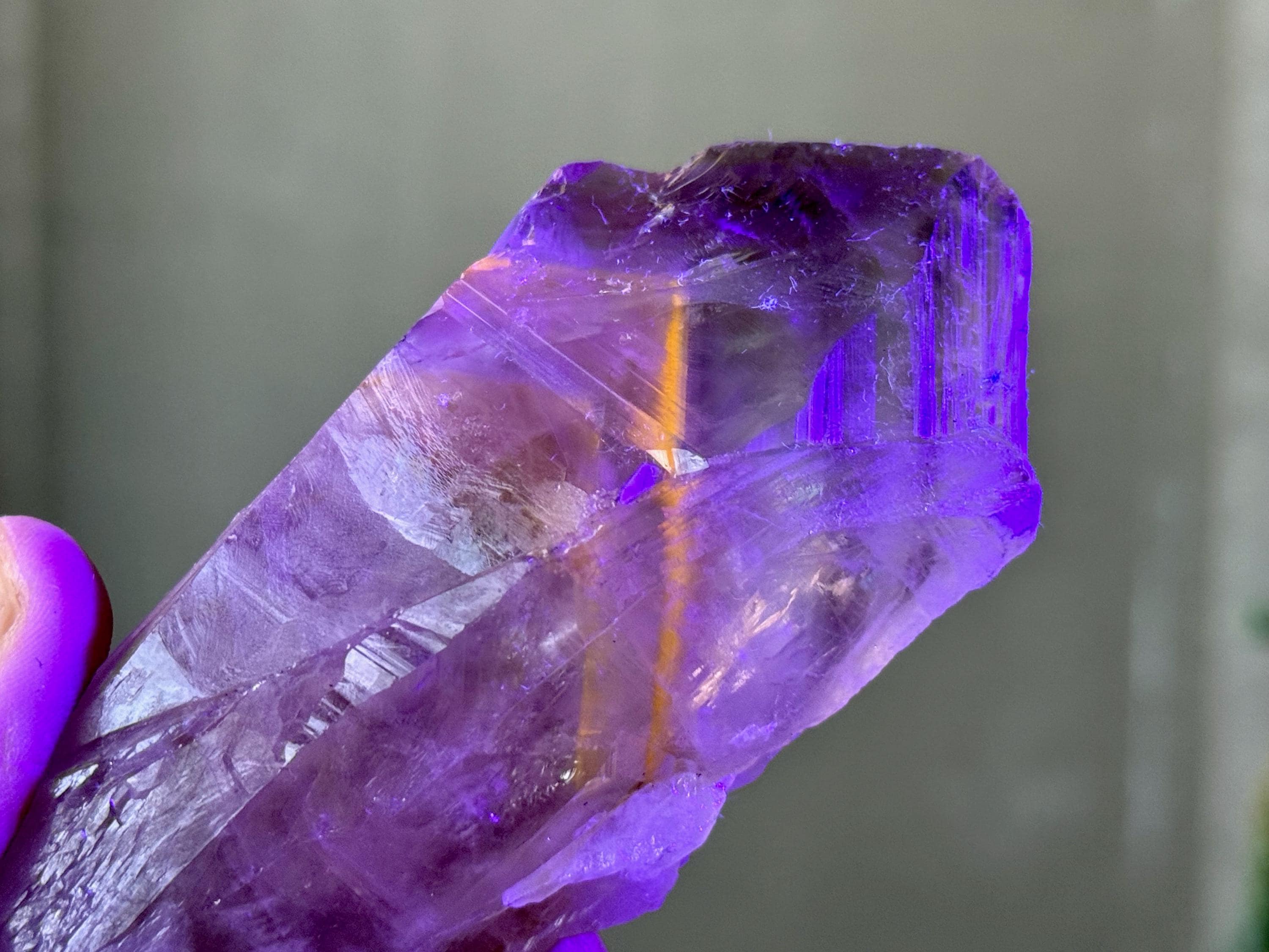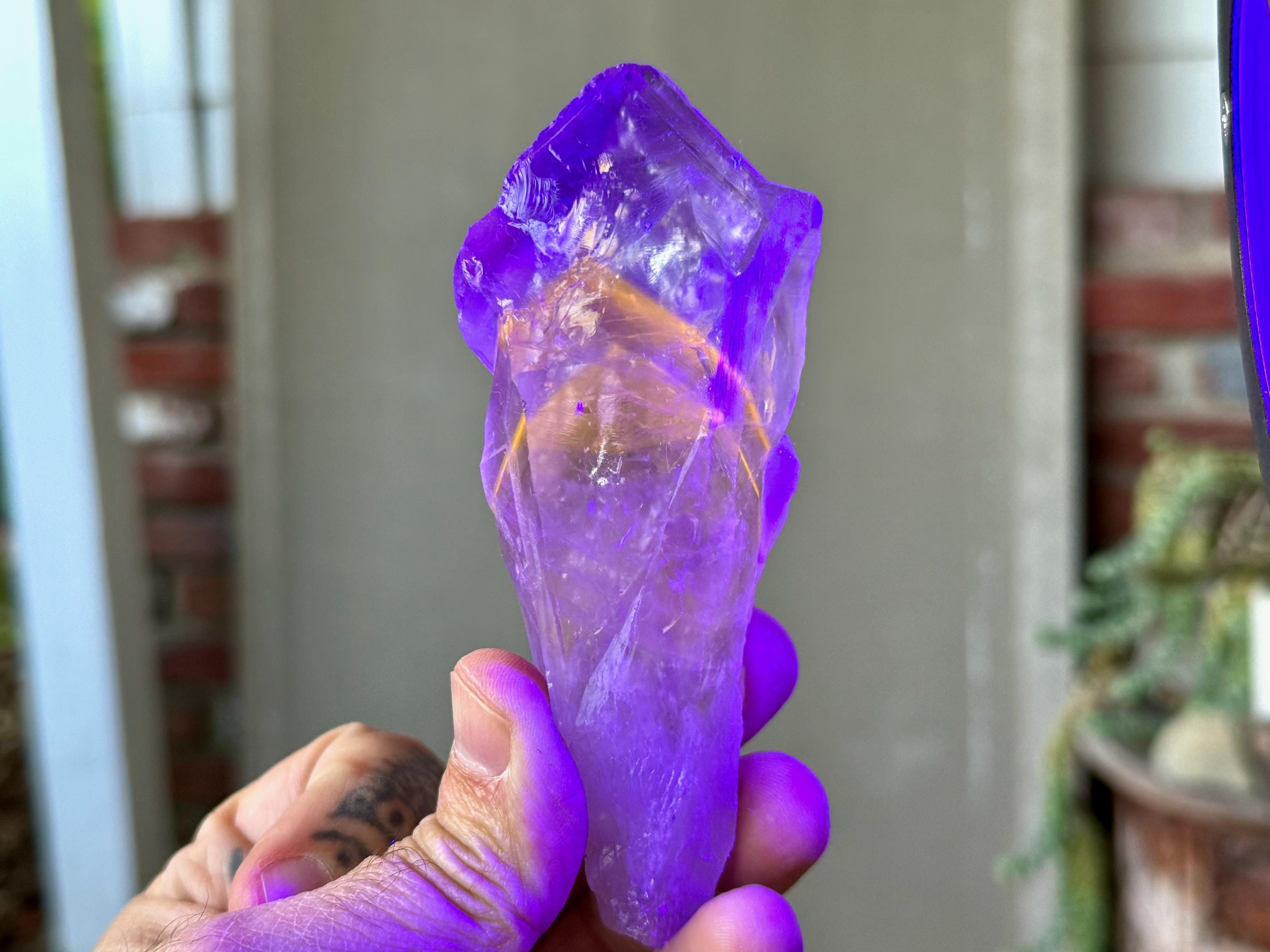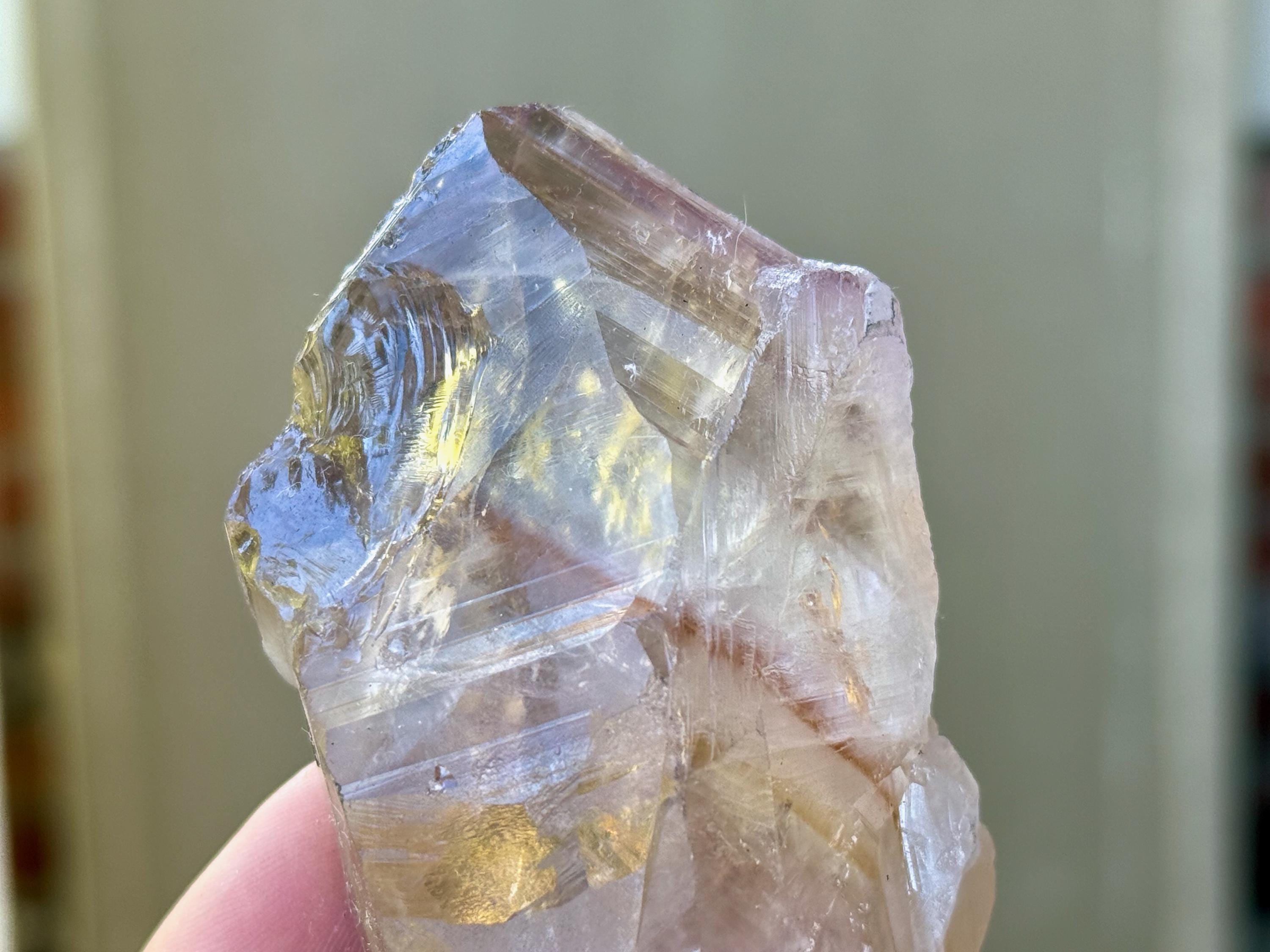 **Please note, the inclusions in this crystal are all natural/untreated. A UV light is necessary to see the phantoms glow, and they can be found affordably at Amazon or any other online outlet.