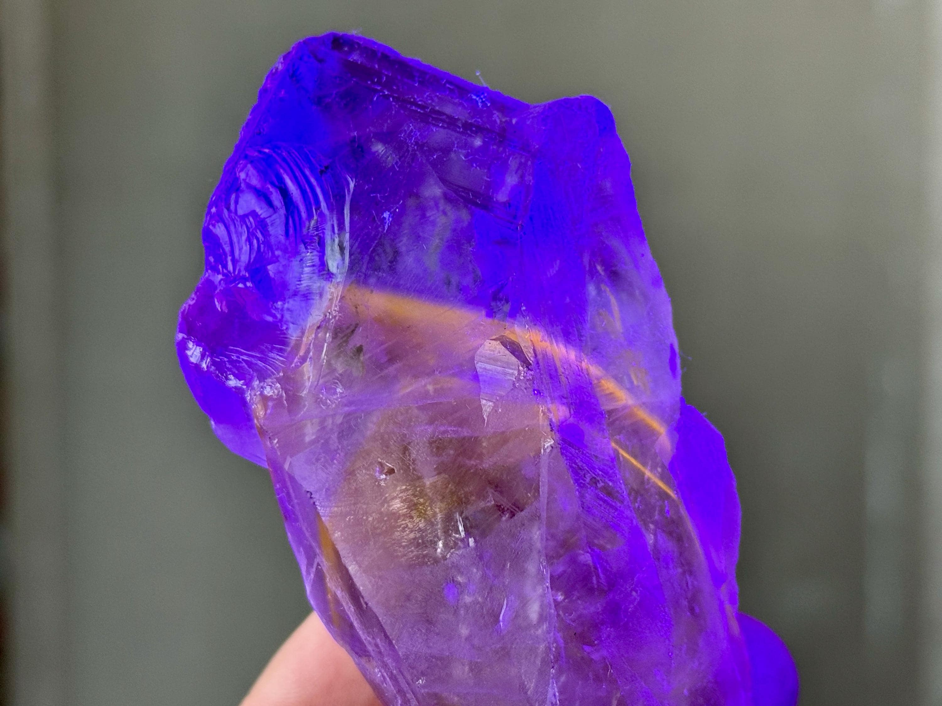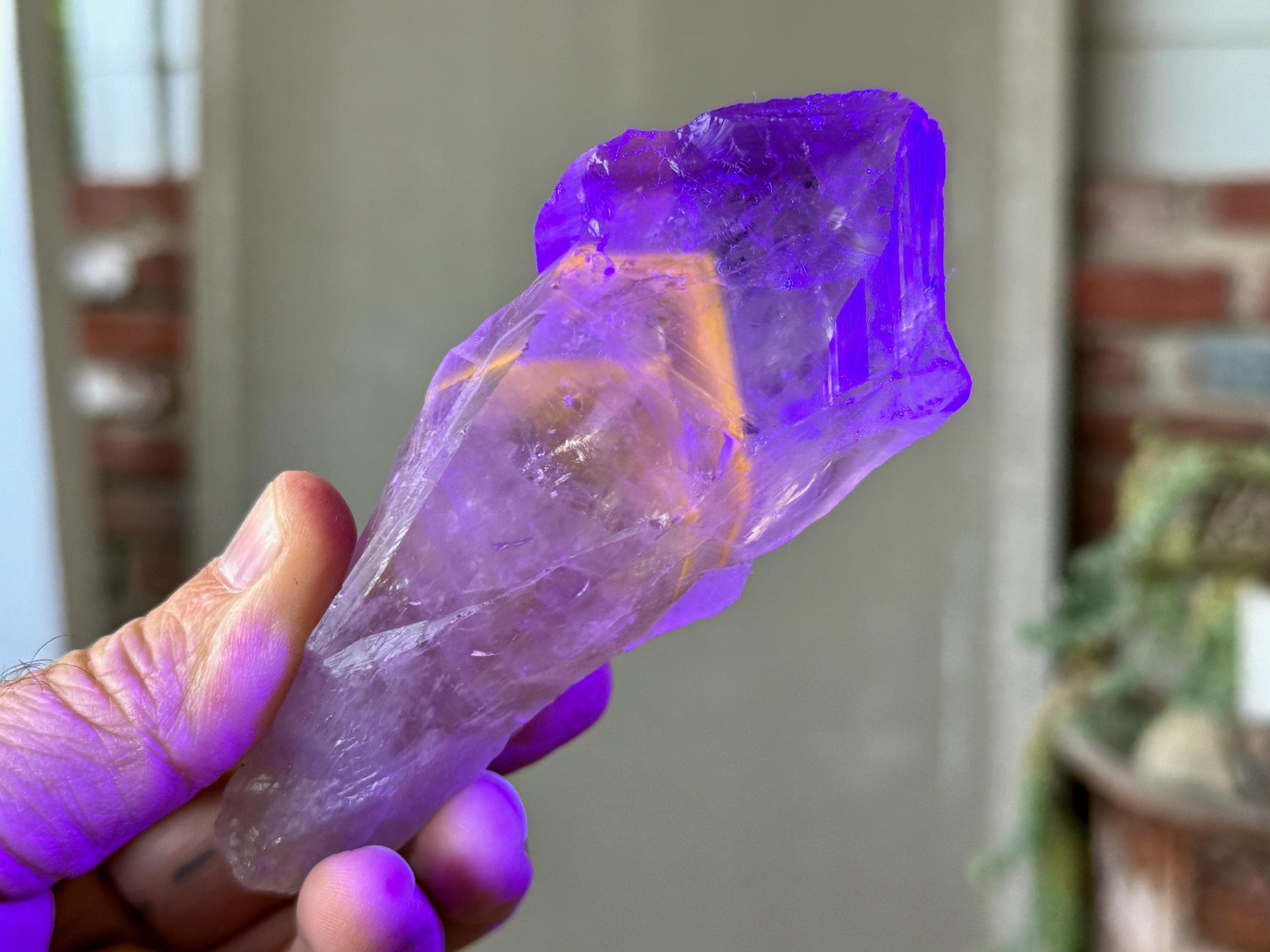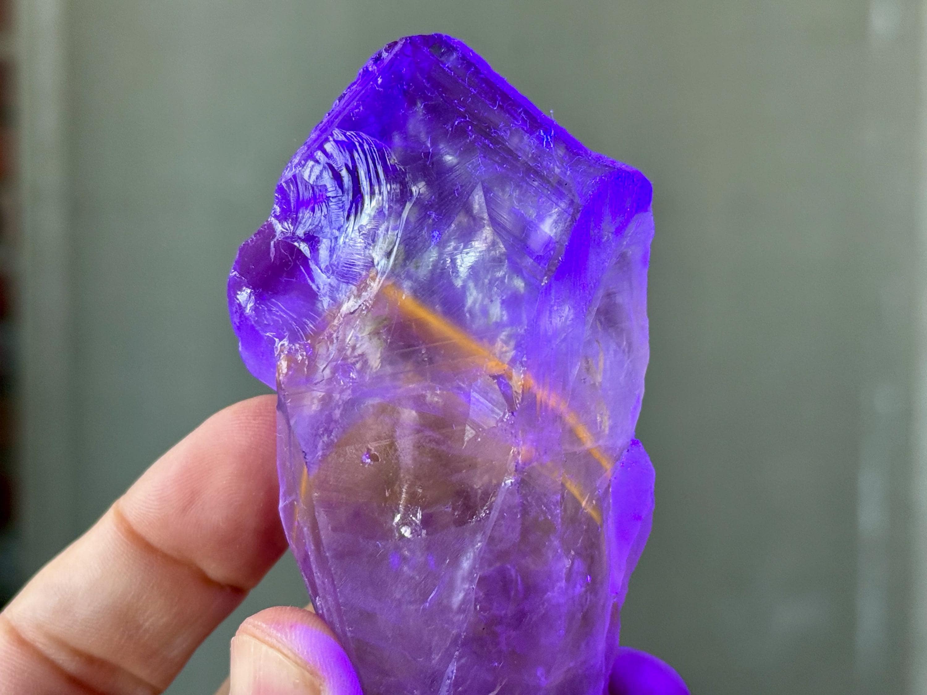 **Please note, the inclusions in this crystal are all natural/untreated. A UV light is necessary to see the phantoms glow, and they can be found affordably at Amazon or any other online outlet.