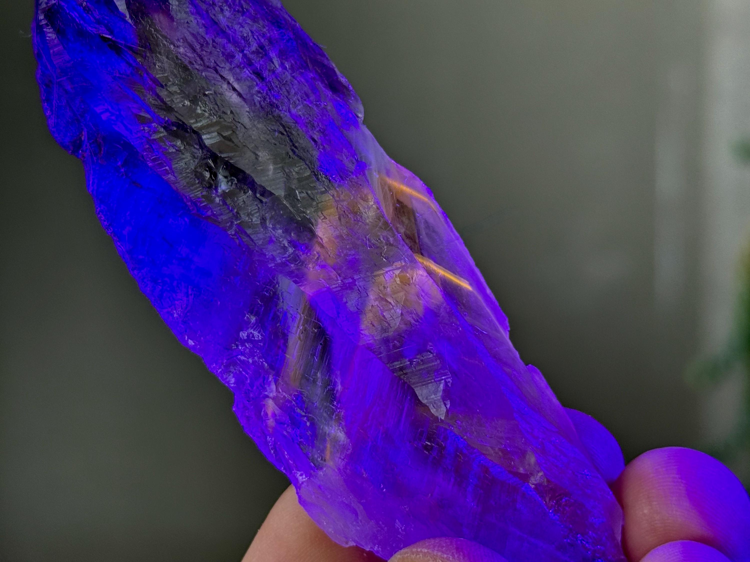 **Please note, the inclusions in this crystal are all natural/untreated. A UV light is necessary to see the phantoms glow, and they can be found affordably at Amazon or any other online outlet.