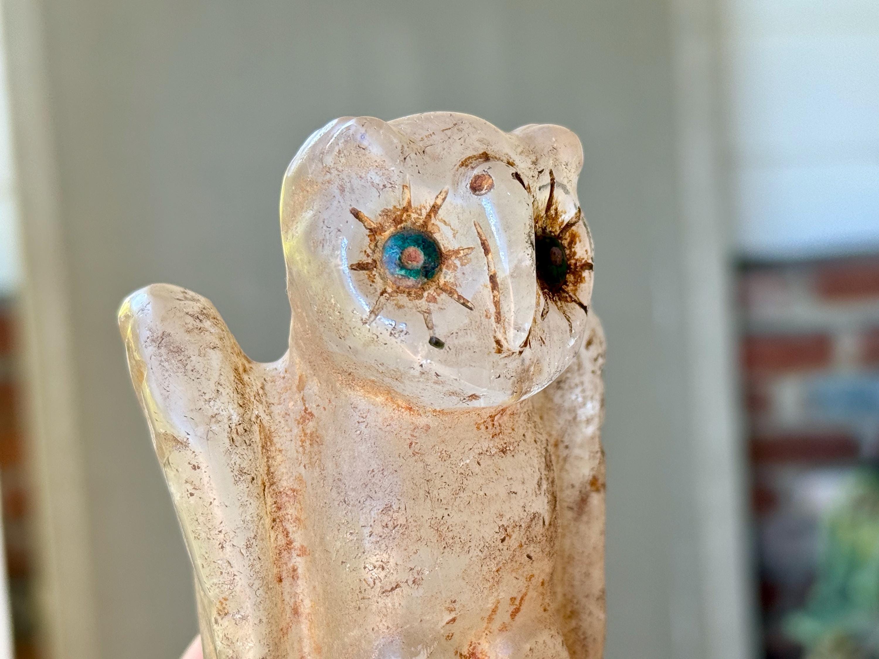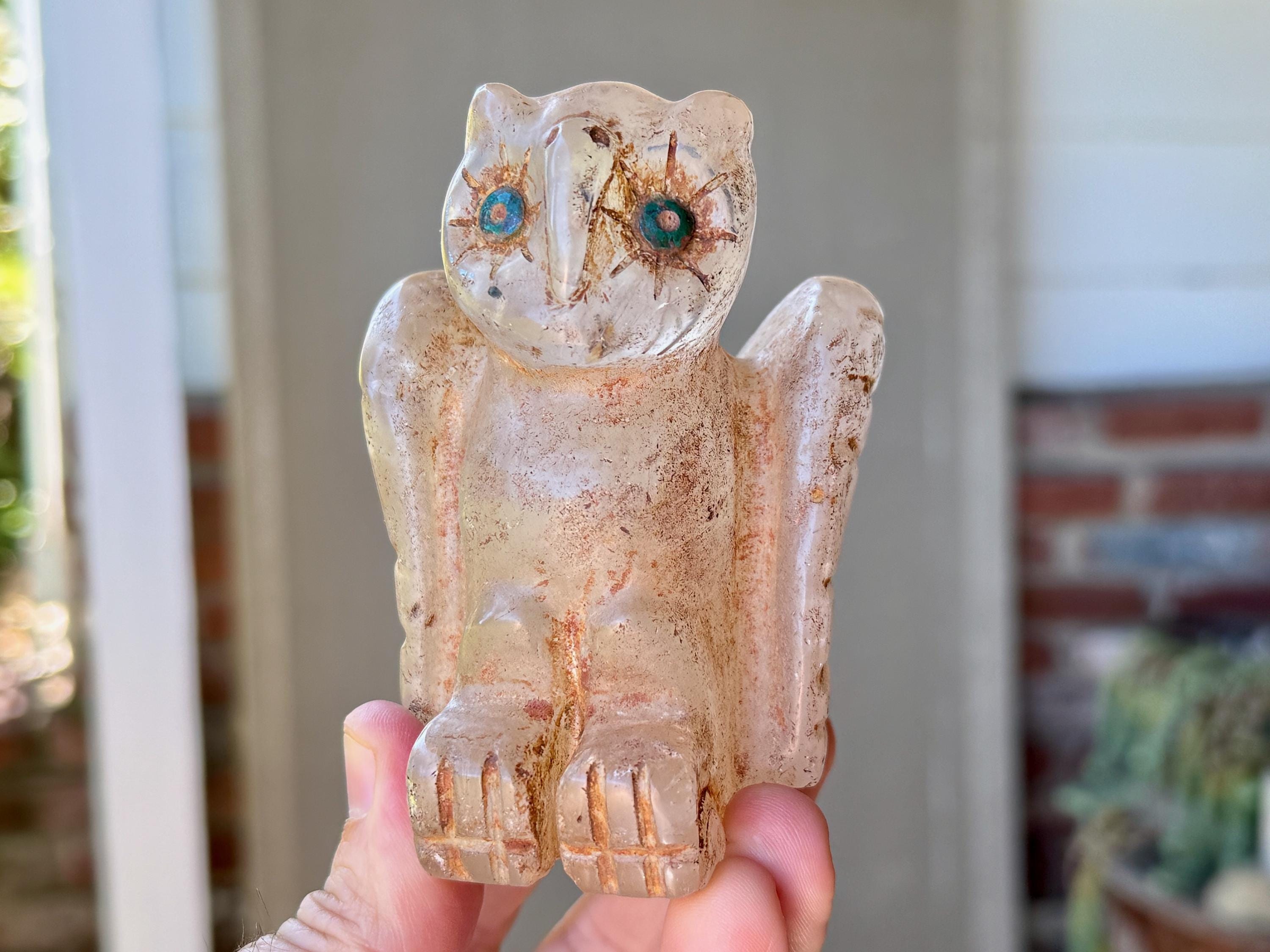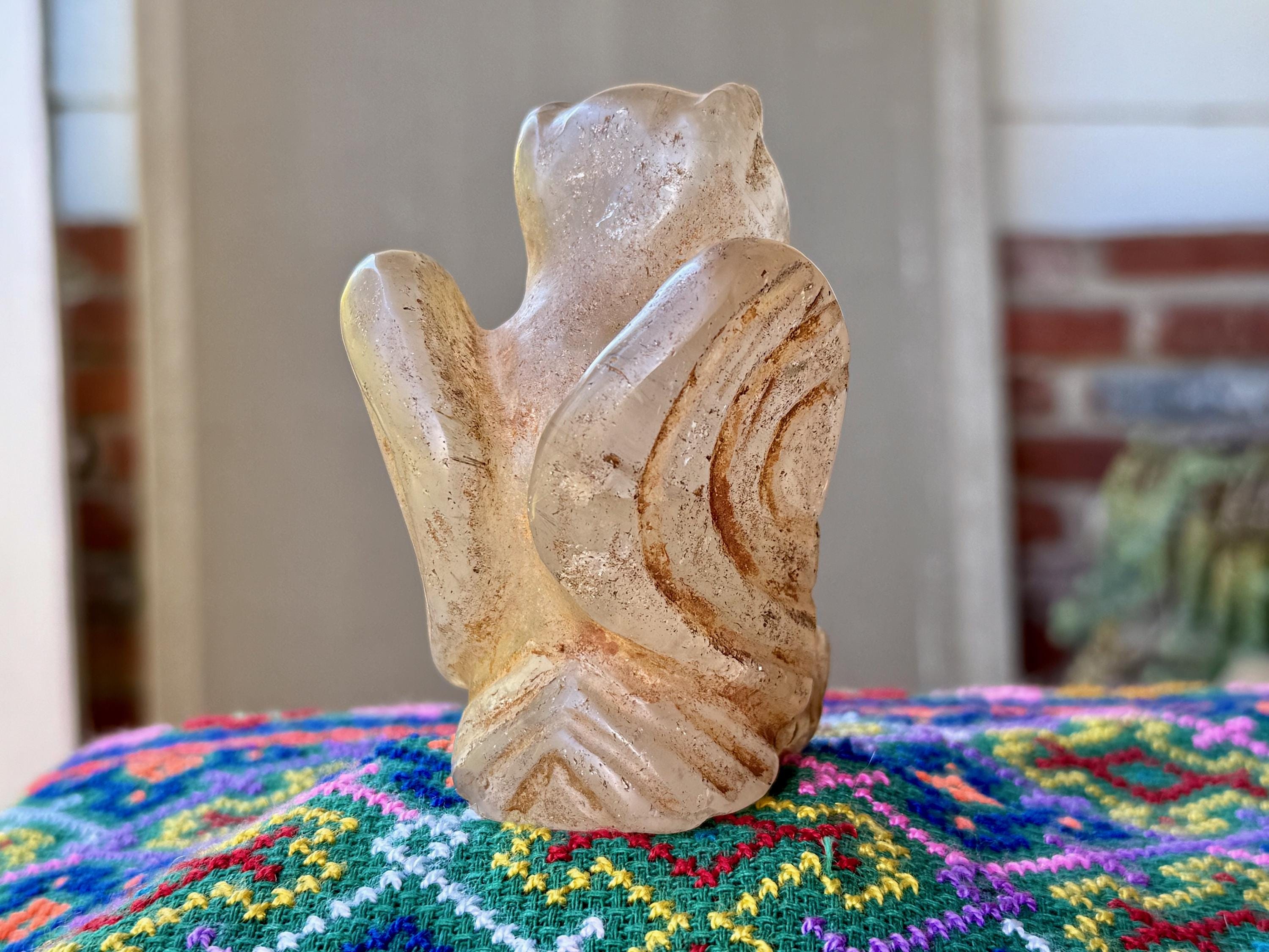 This powerful Owl Statue was hand carved from native Andean Quartz by Peruvian Artist Ruben Layme in Peru's Sacred Valley.