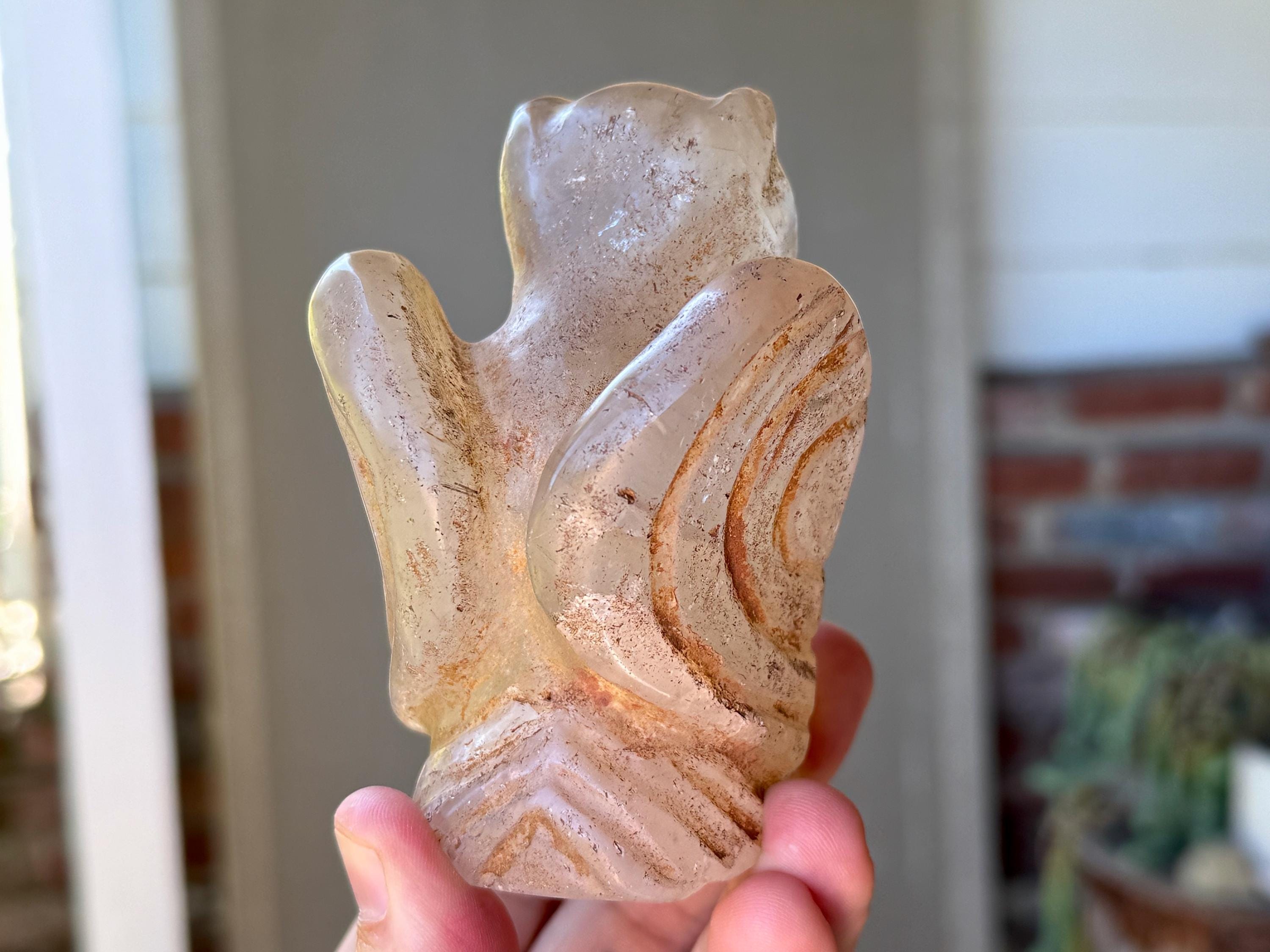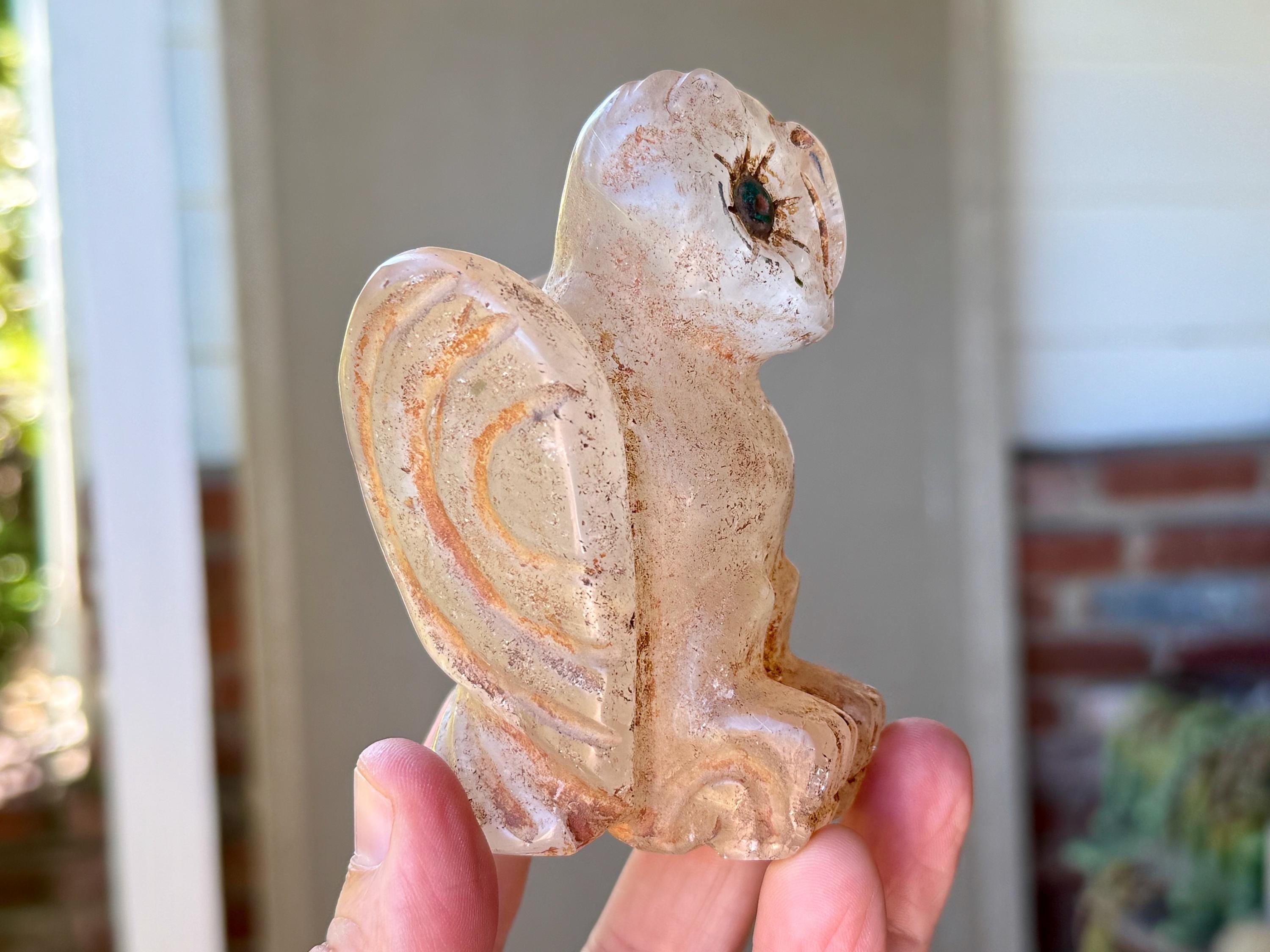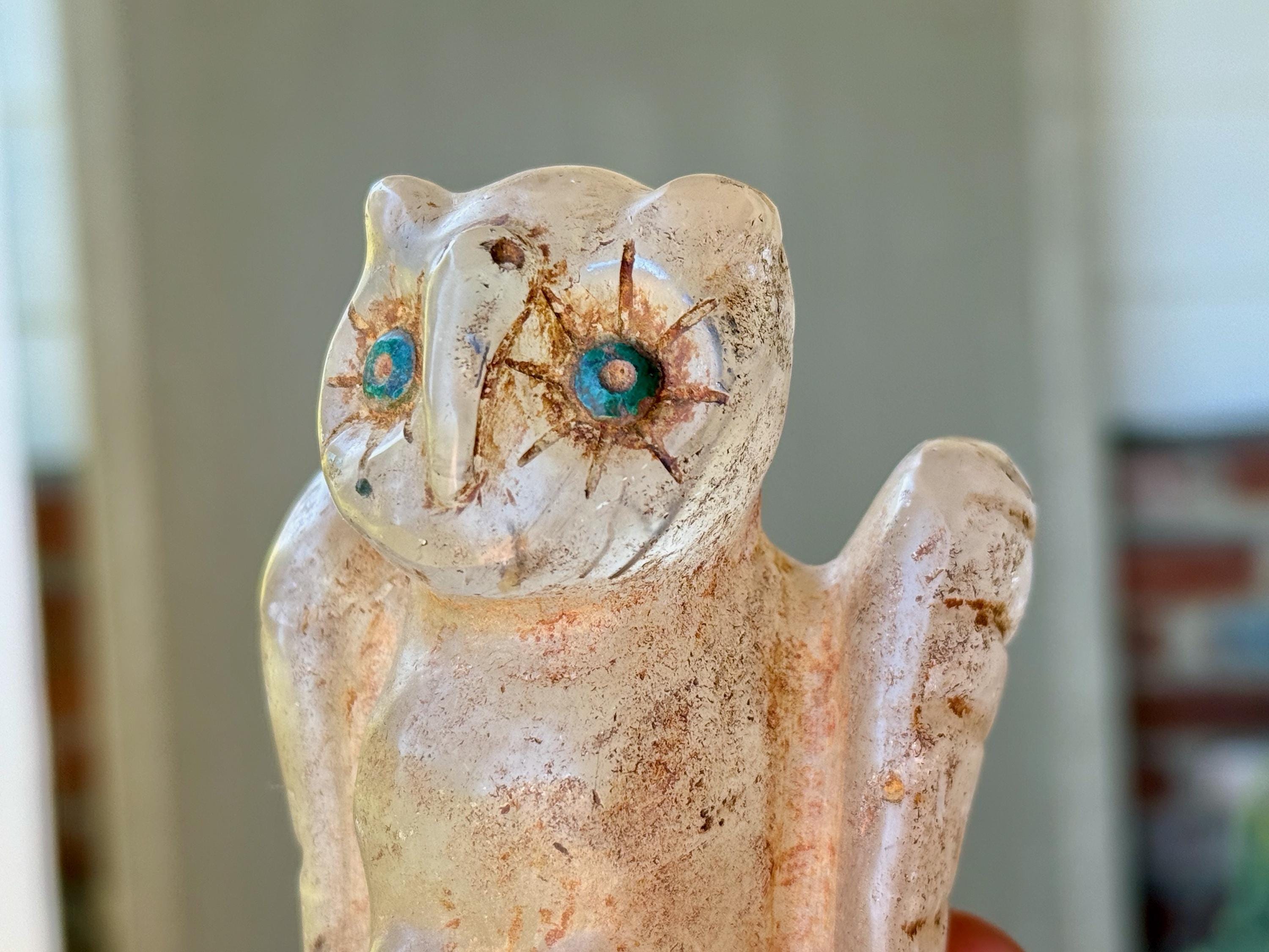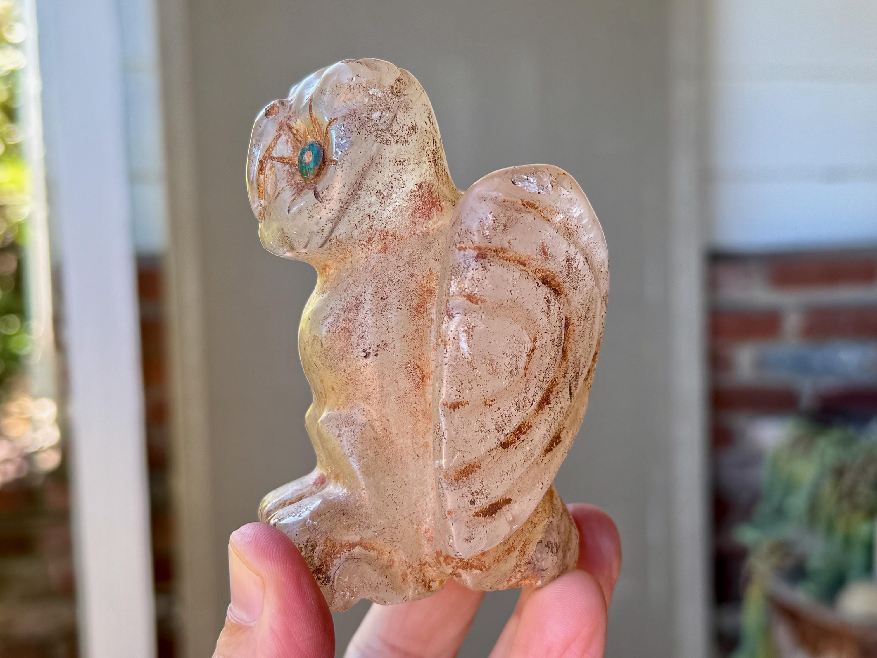 This powerful Owl Statue was hand carved from native Andean Quartz by Peruvian Artist Ruben Layme in Peru's Sacred Valley.