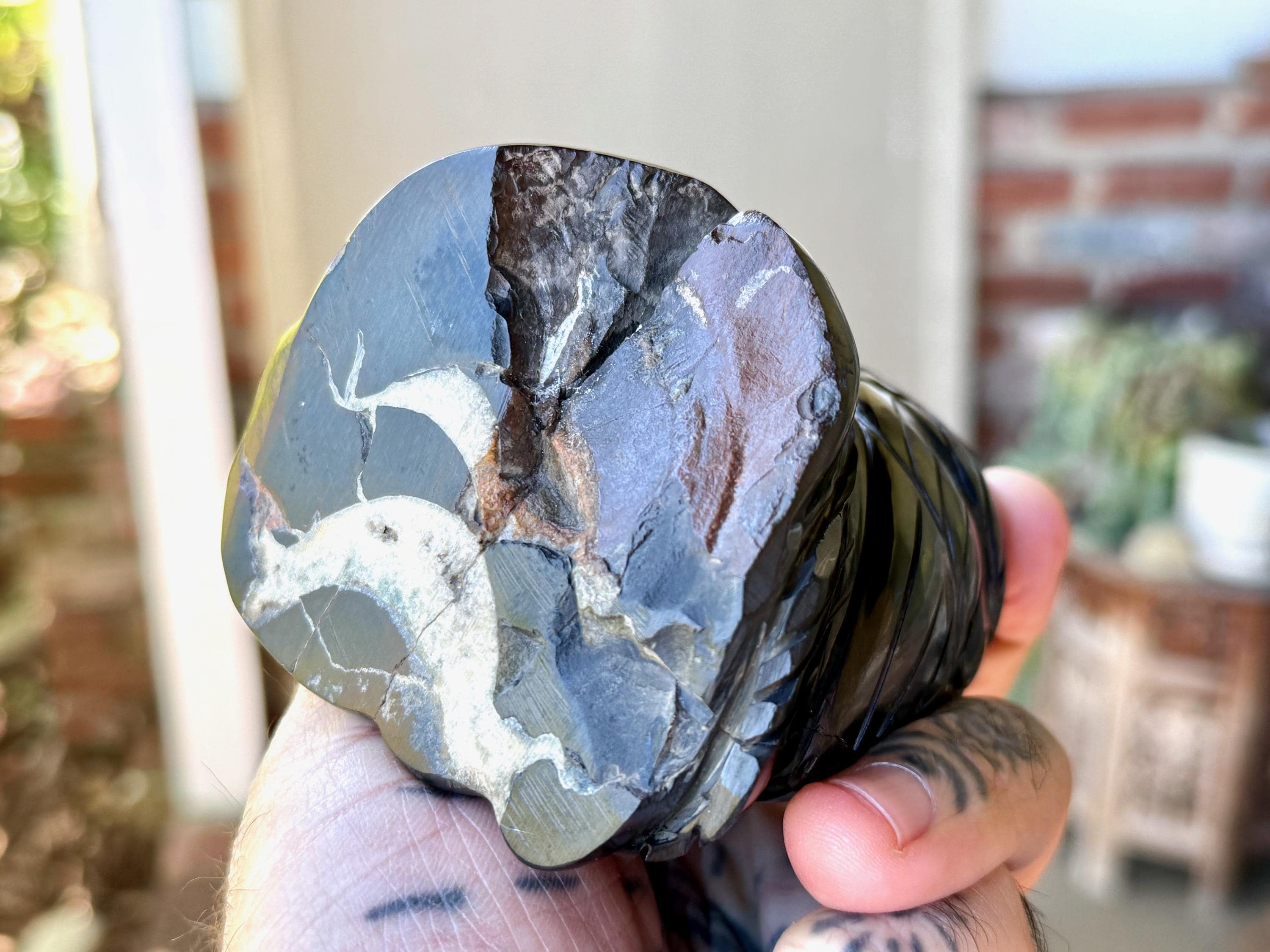 Material: Black Onyx, Septarian Stone, Tiger's Eye (for the eyes)