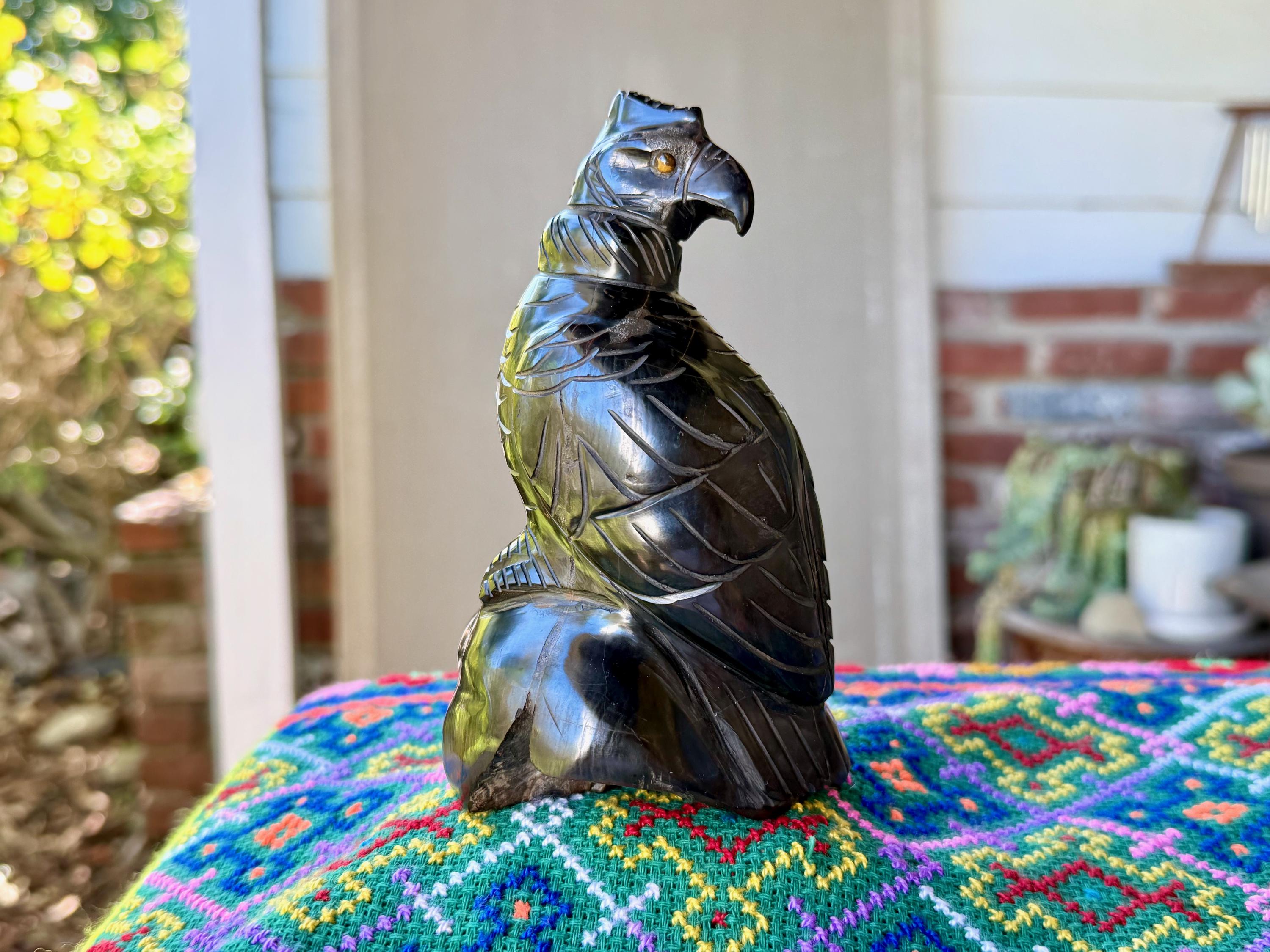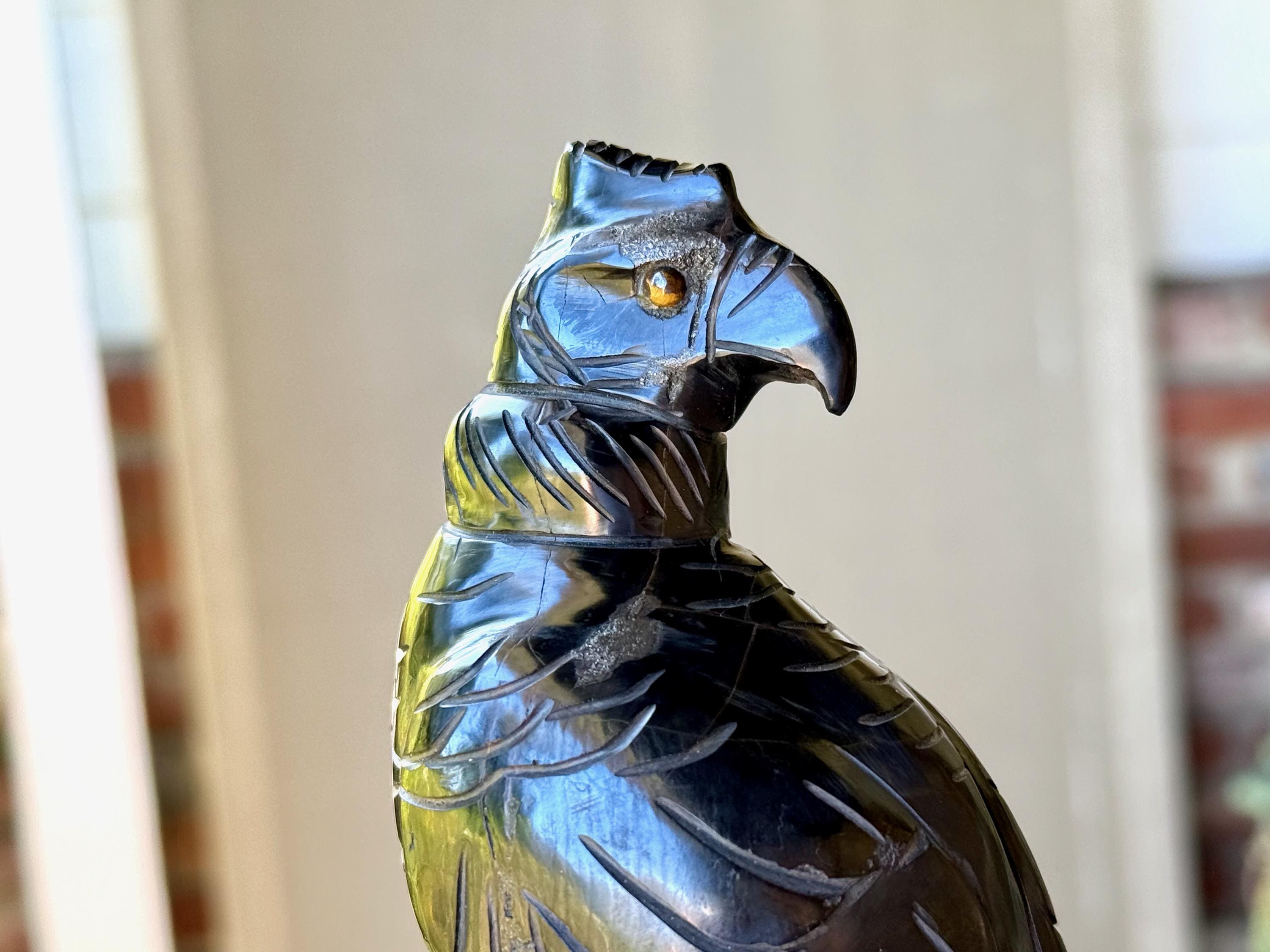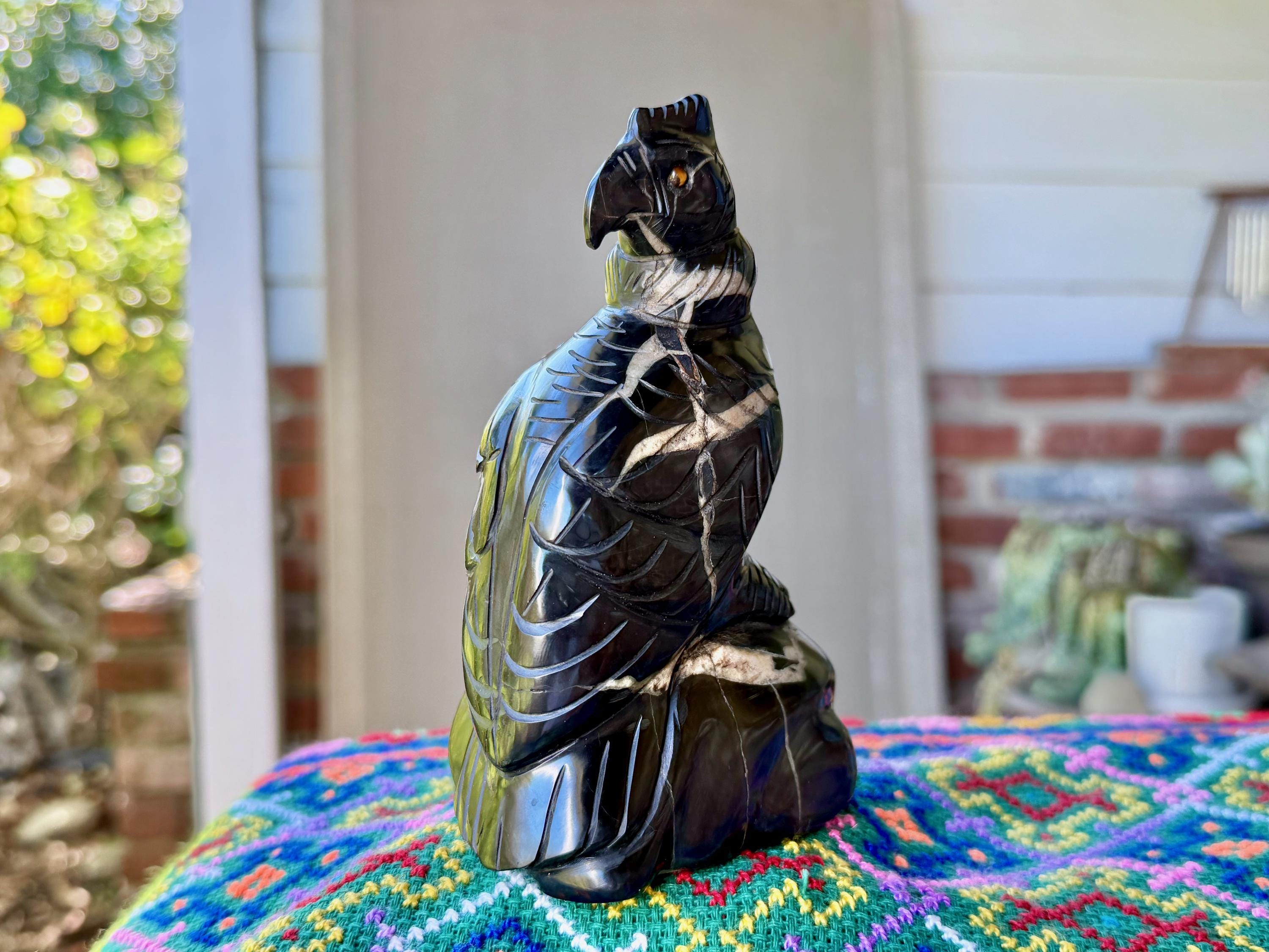 This majestic and powerful Andean Condor statue was hand carved from solid Black Onyx — with Septarian Stone inclusions — by Artist Ozwaldo Perez in Peru's Sacred Valley. The condor was considered by the Incas to be the messenger of the gods between the heavens (HanaqPacha) and the earth (KayPacha).