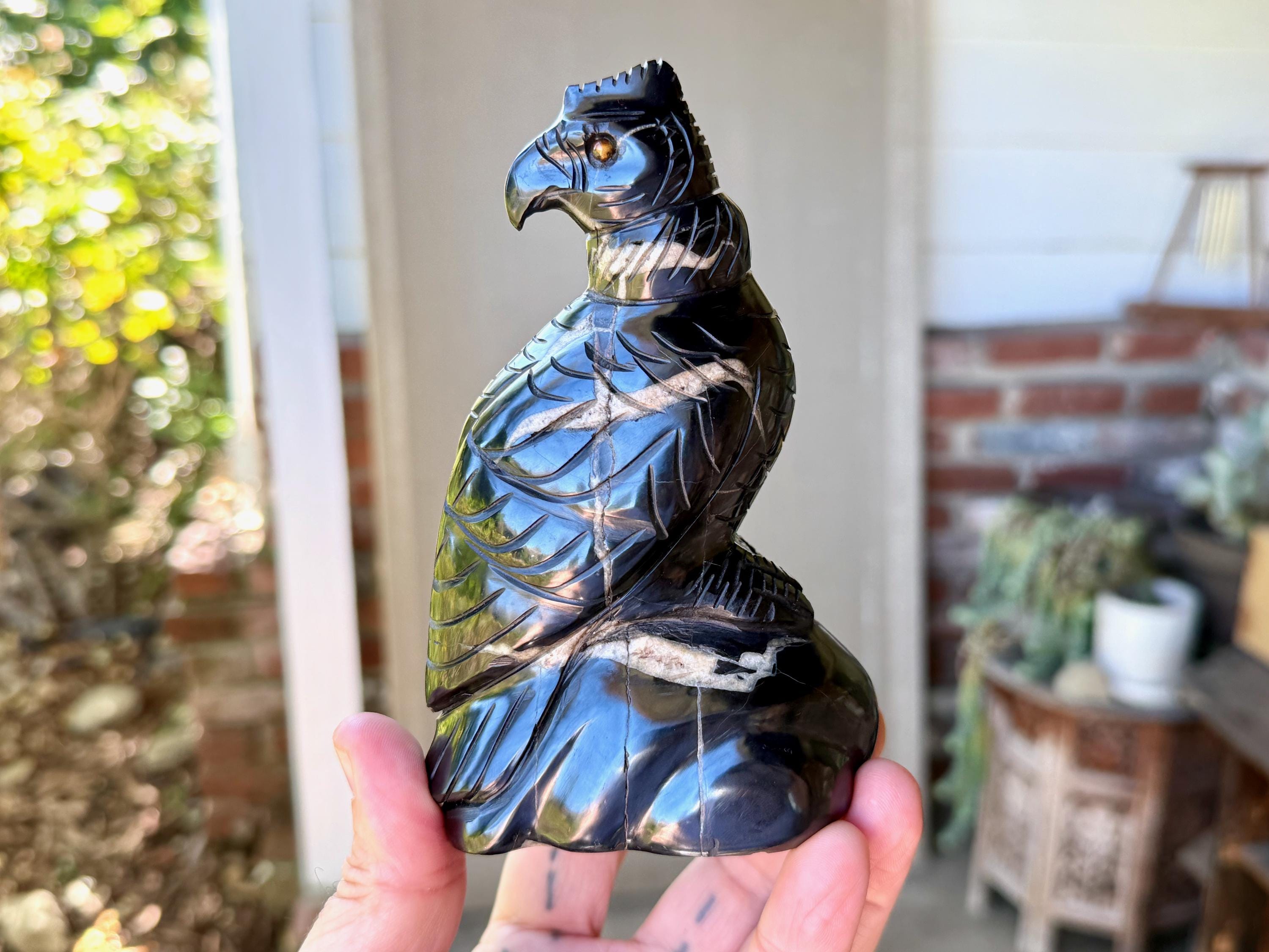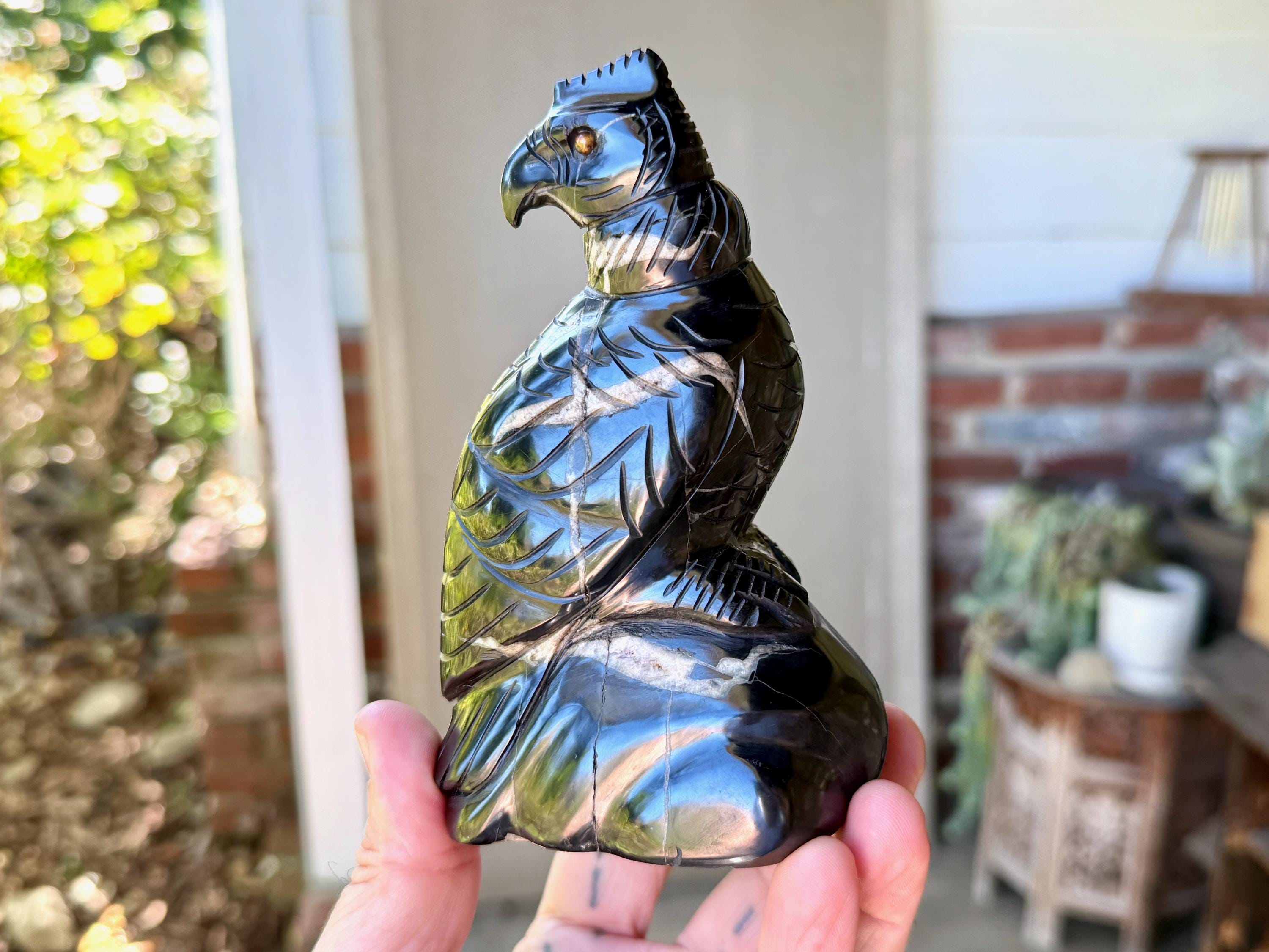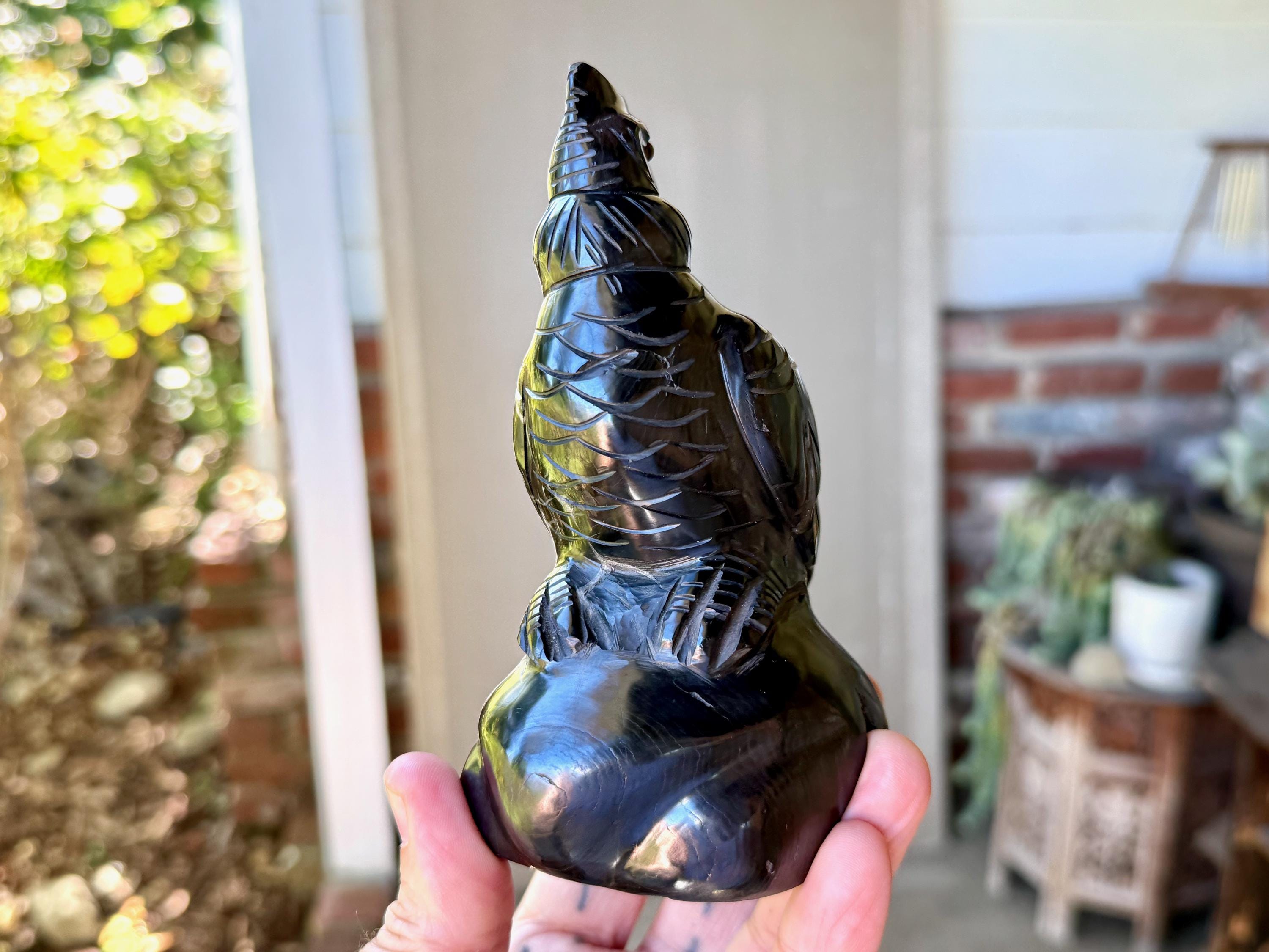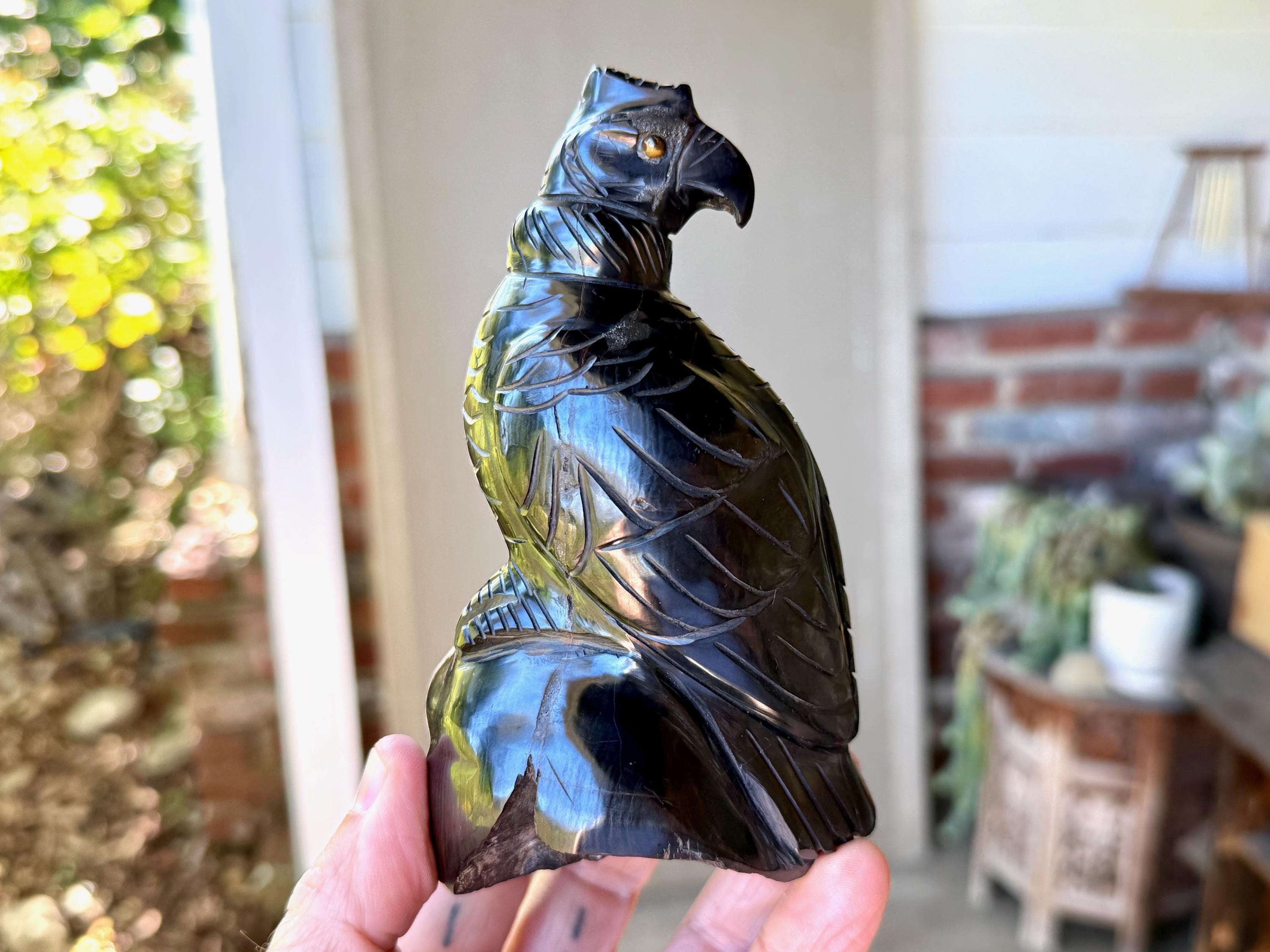 This majestic and powerful Andean Condor statue was hand carved from solid Black Onyx — with Septarian Stone inclusions — by Artist Ozwaldo Perez in Peru's Sacred Valley. The condor was considered by the Incas to be the messenger of the gods between the heavens (HanaqPacha) and the earth (KayPacha).