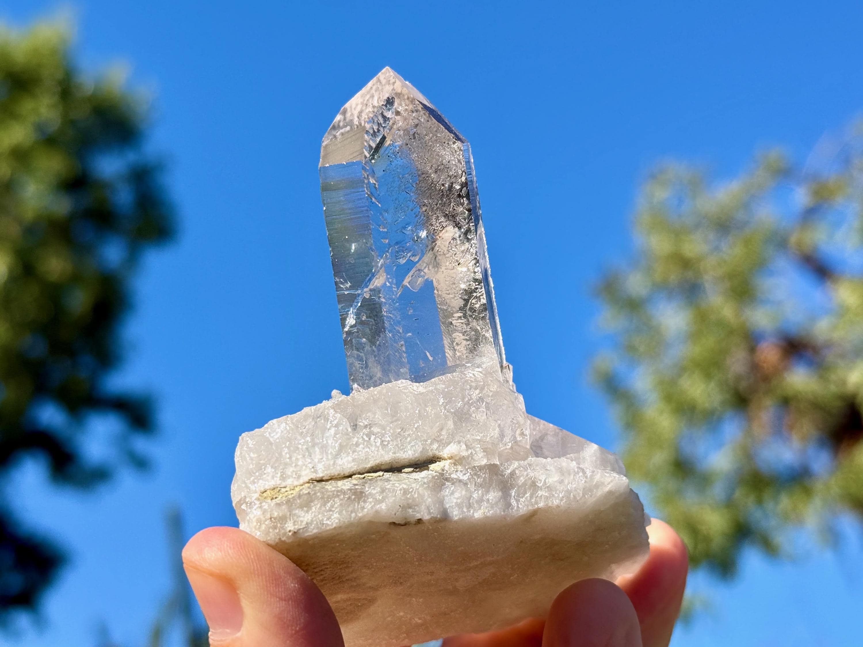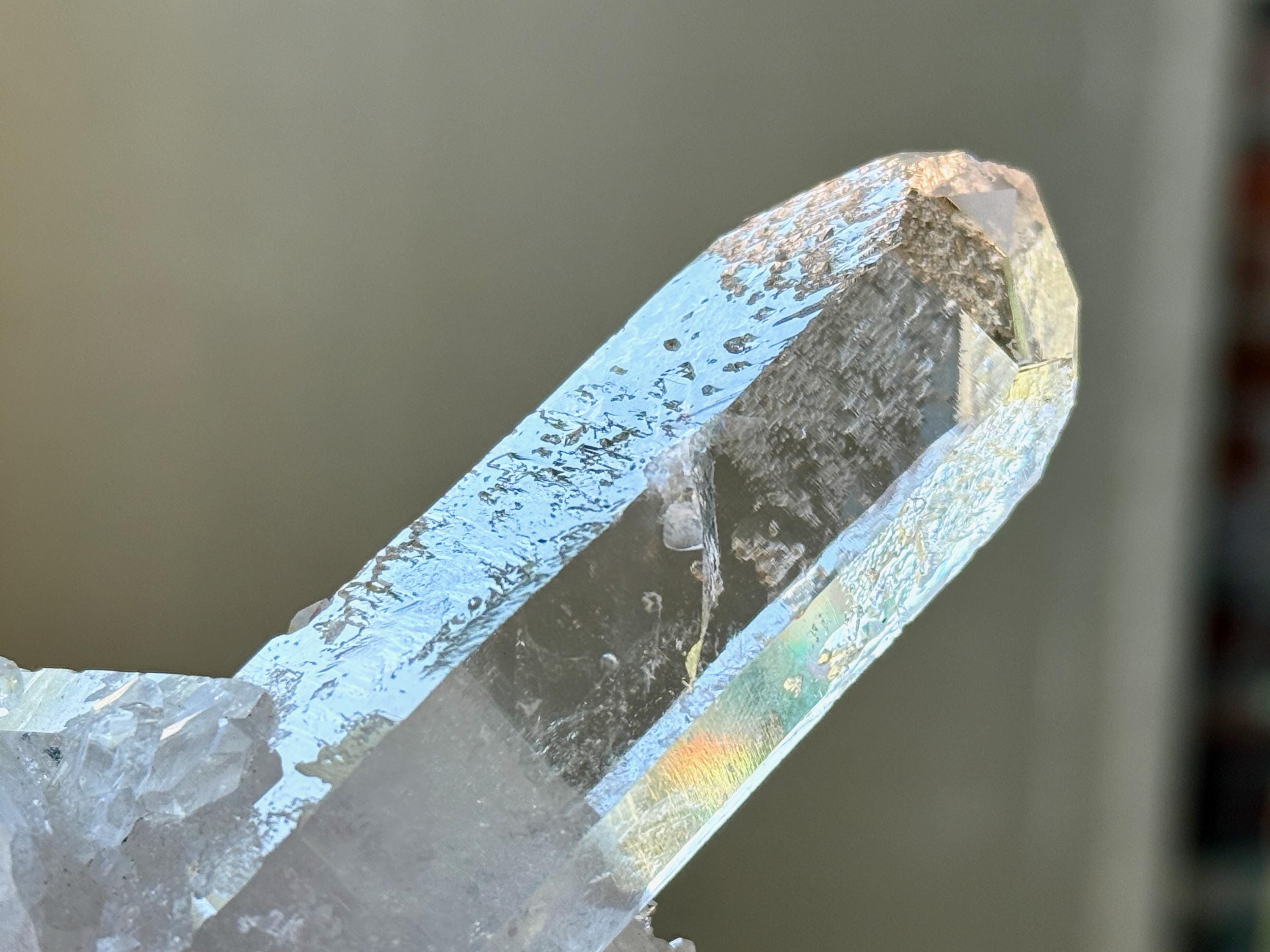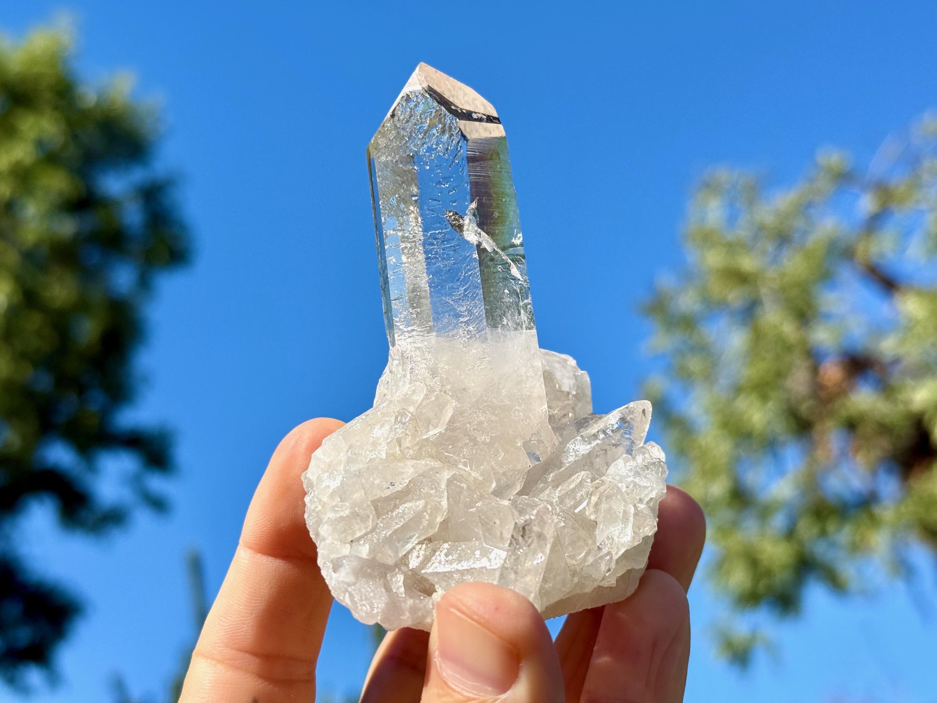 A Dow Crystal is one that has a termination with three perfect triangle facets, separated by three seven-sided facets. This special crystal manifests perfect geometry in the termination, alternating between triangles and seven-sided faces. It is a combination of the Channelling crystal and the Transmitter crystal, but serves an even greater purpose than the combined effects.