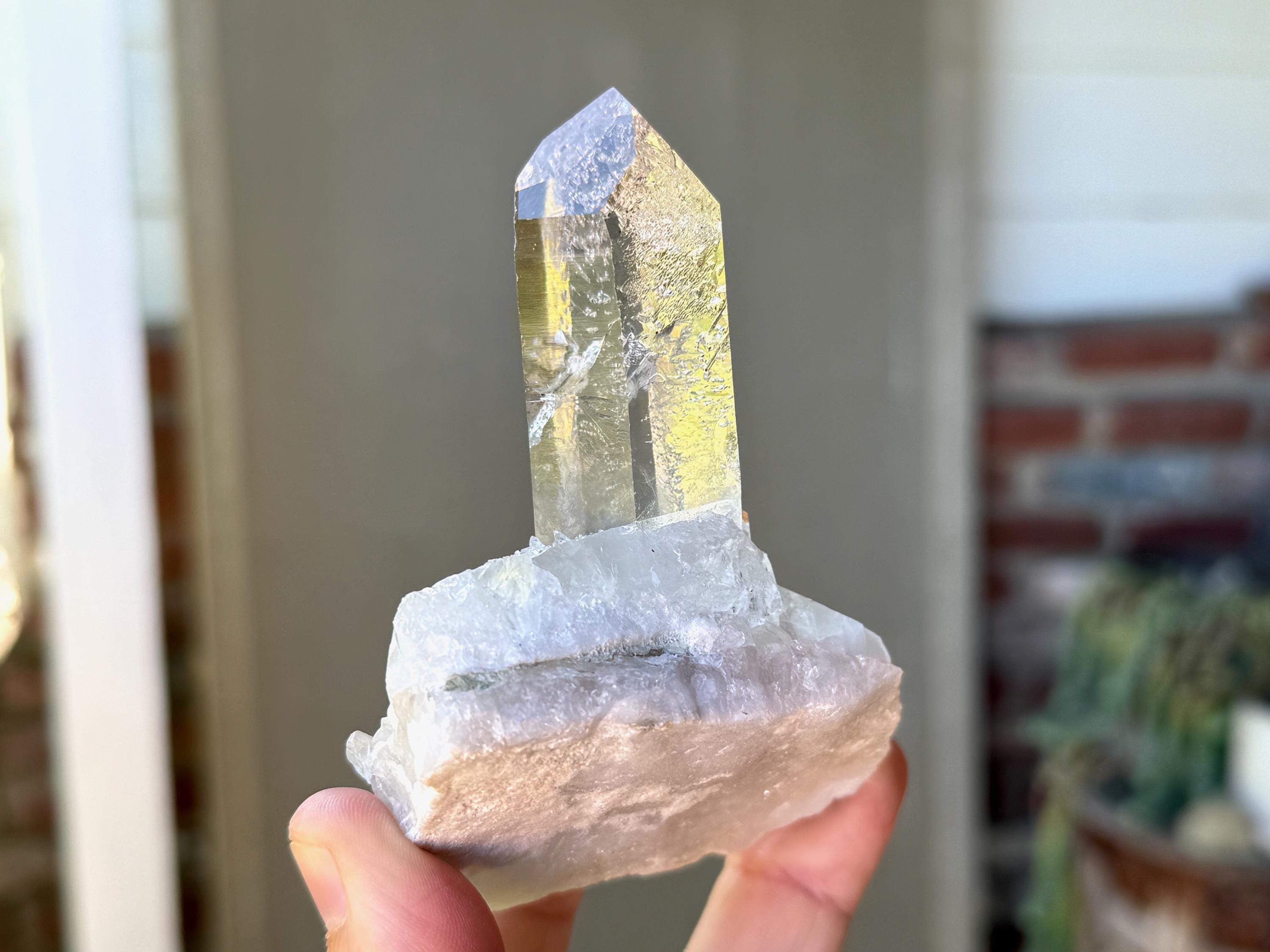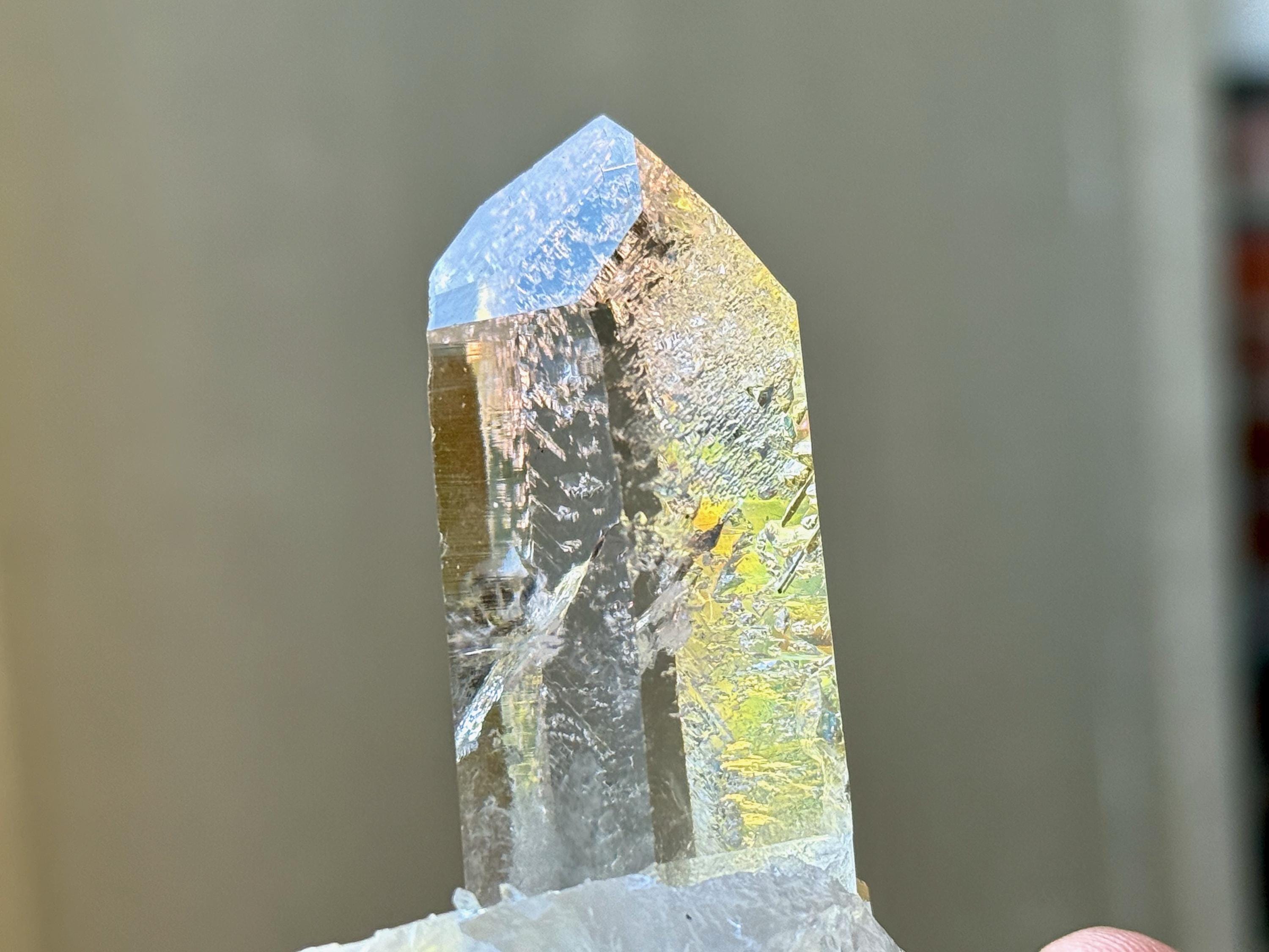 This crystal sits upright perfectly on its own. There's one minor "fleabite" on the left side of the main facet but the termination itself is excellent. Outstanding!