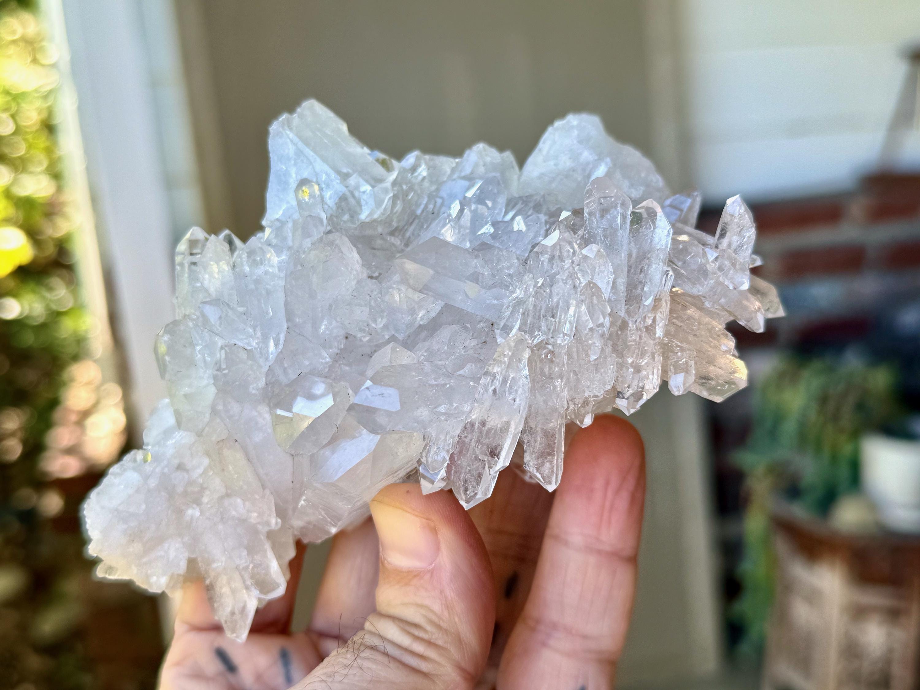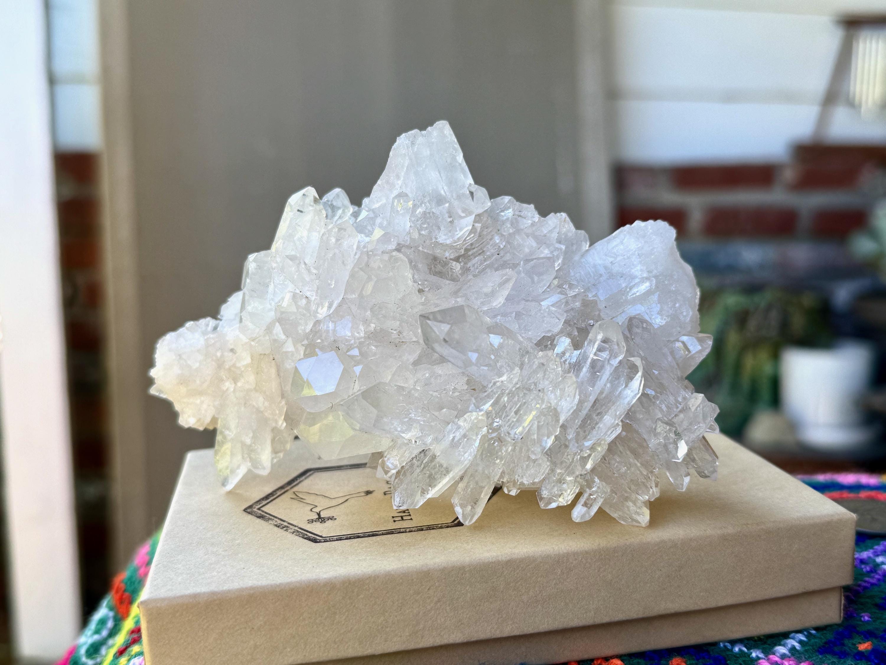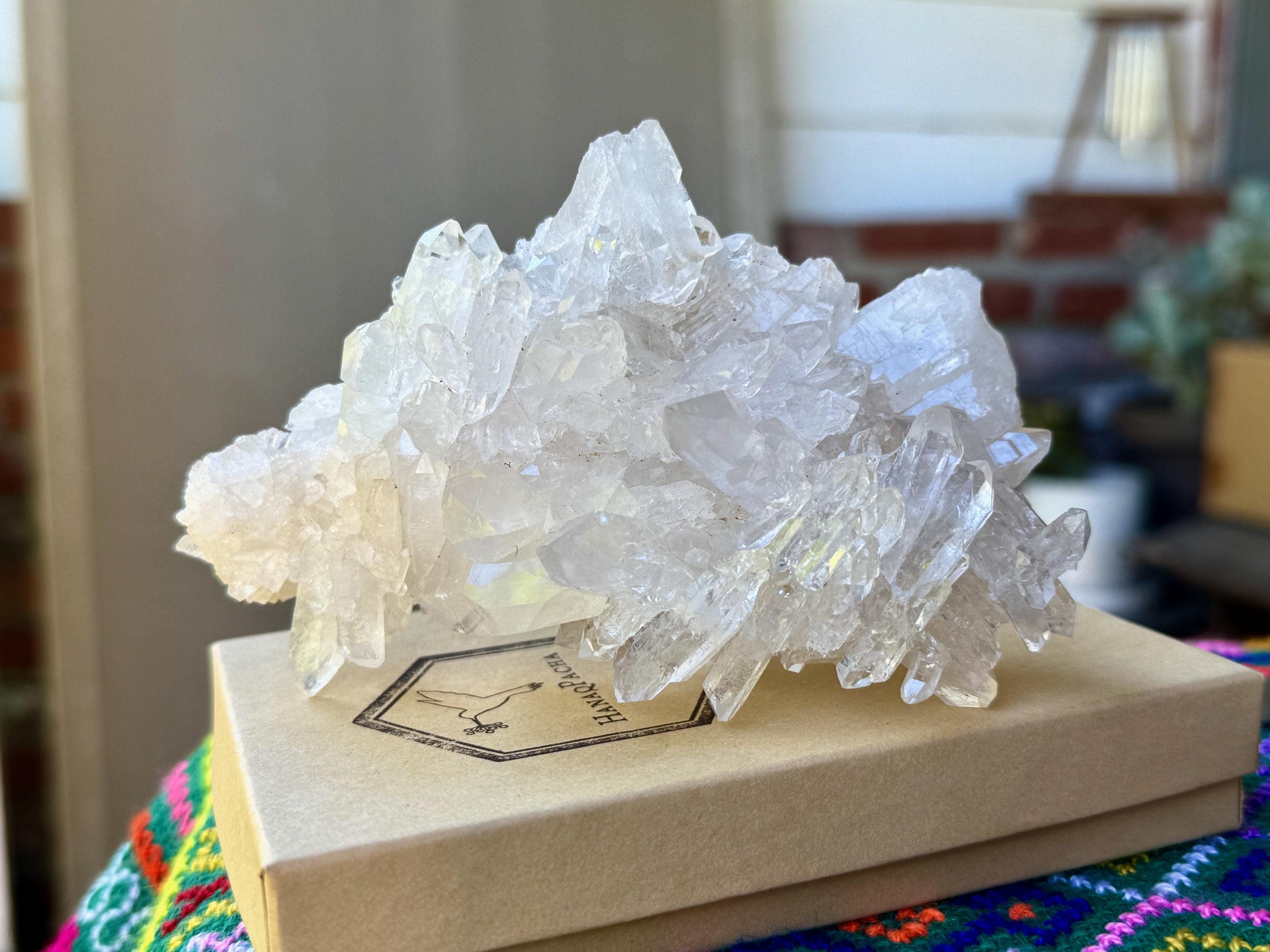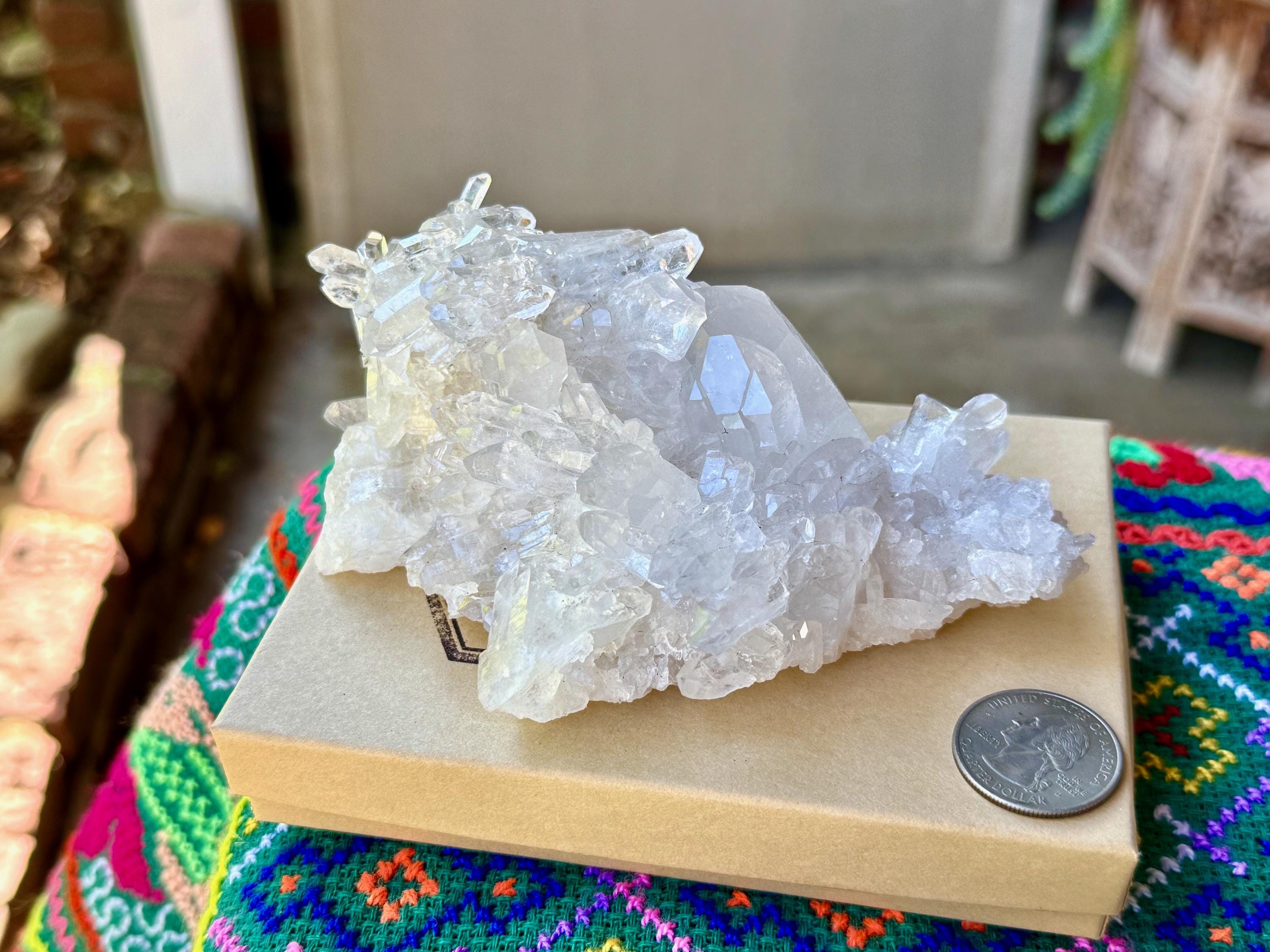 Cluster formations serve to bring the “group” energy of the associated crystal to the surroundings, enhancing harmony and peace in groups, in the family, and in other social and/or business environments. The energy generated is directly proportional to the number of crystals in the cluster. The auric light that surrounds a Quartz cluster is very bright and strong, and will bathe an entire area or room in radiance. They can also be used to activate and to cleanse other minerals, enhancing and increasing their energy. They can be placed in areas to purify the environment of negative energies and feelings, and to foster protection, cooperation, purification, harmony, friendship and intimacy.