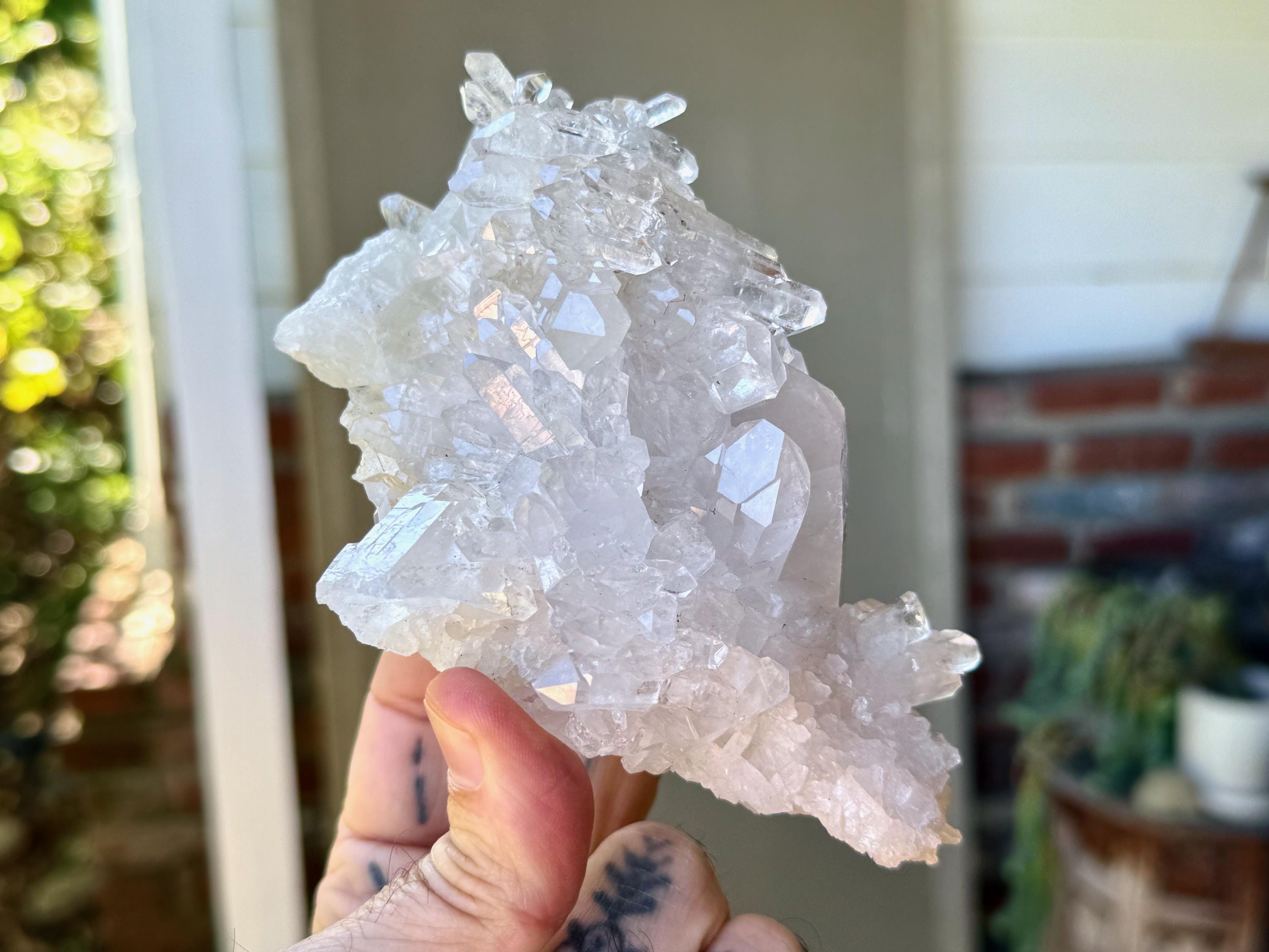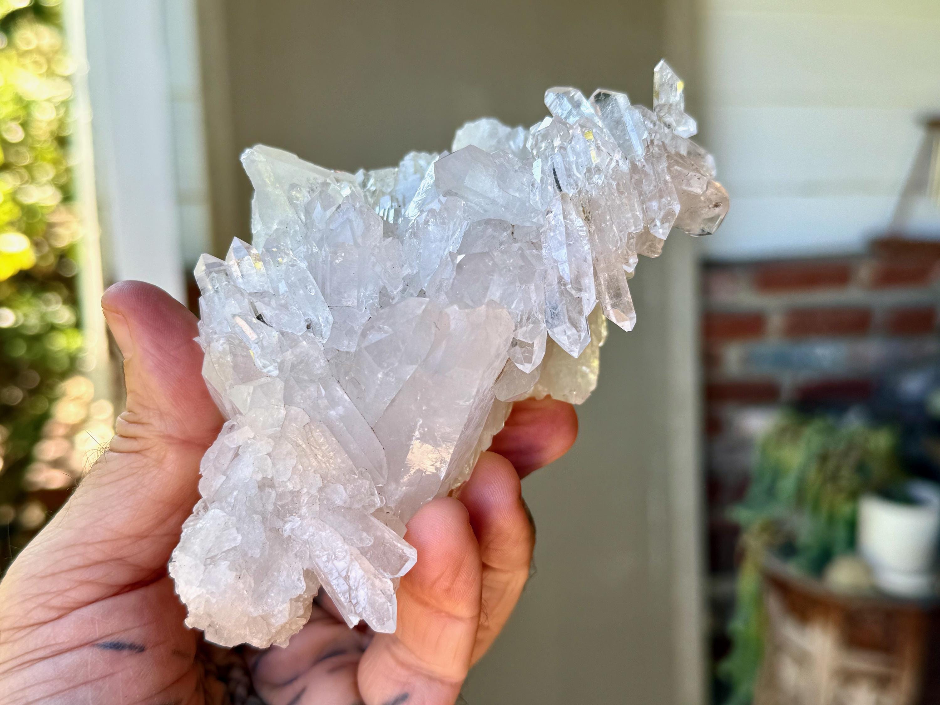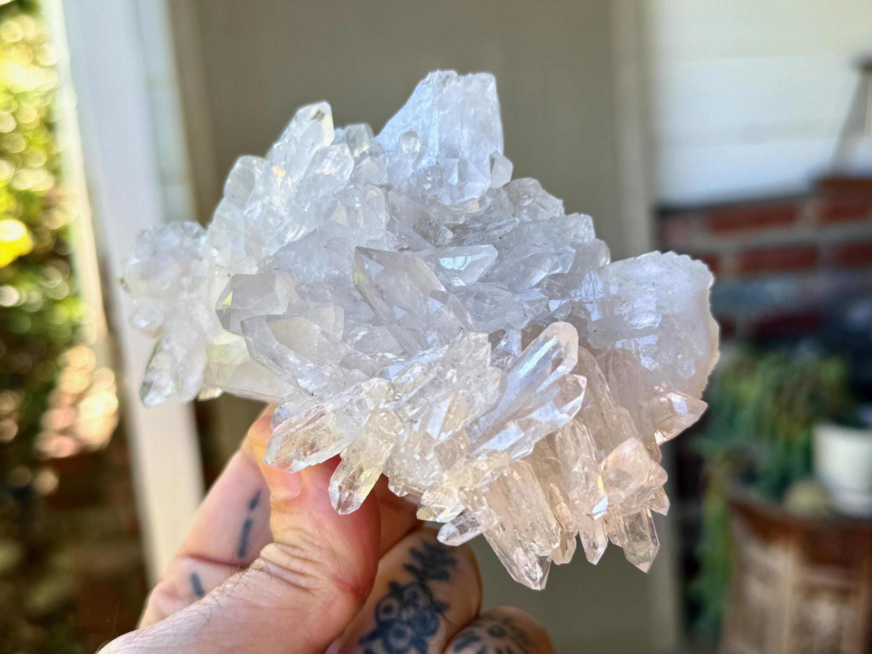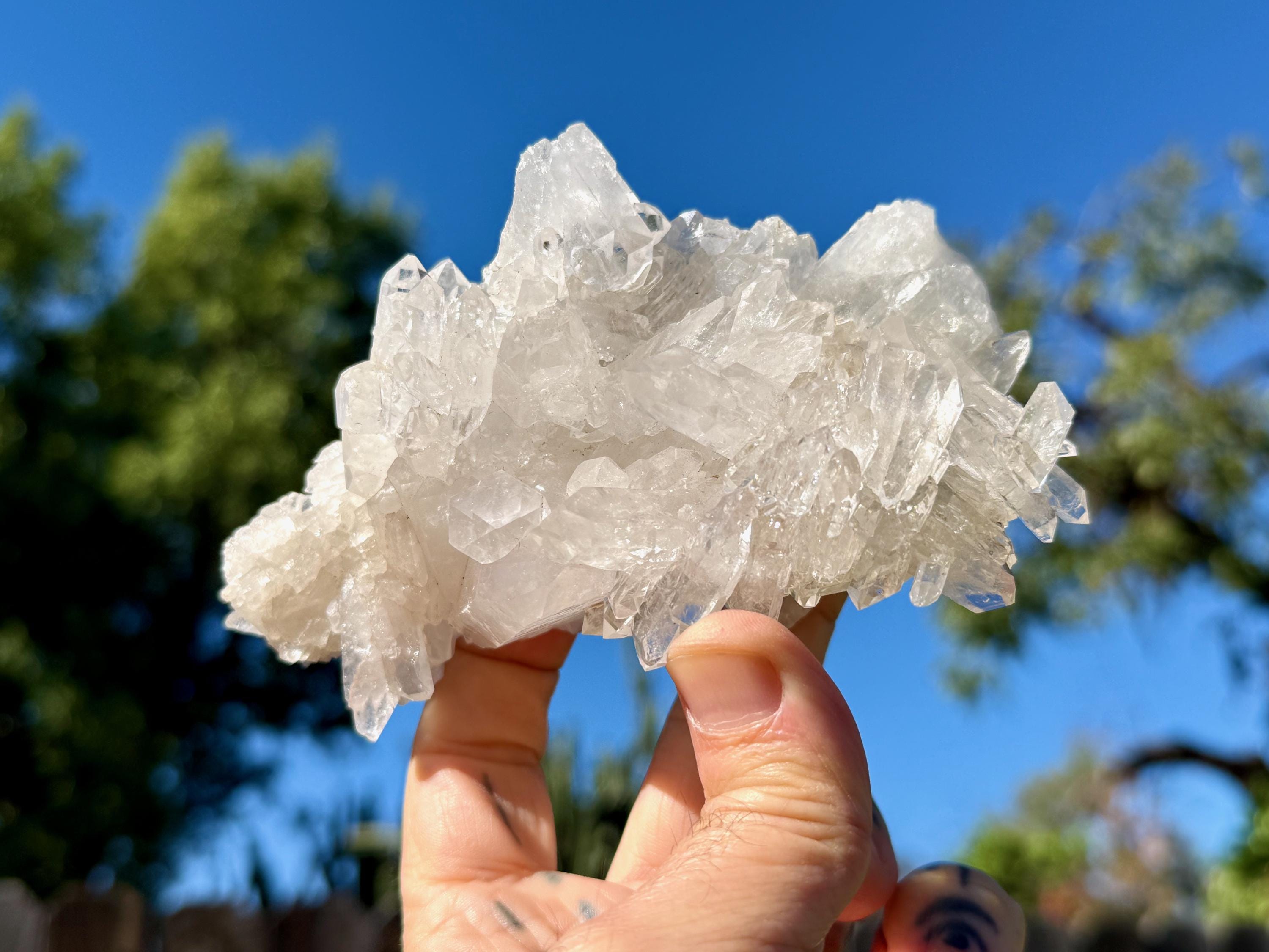 Cluster formations serve to bring the “group” energy of the associated crystal to the surroundings, enhancing harmony and peace in groups, in the family, and in other social and/or business environments. The energy generated is directly proportional to the number of crystals in the cluster. The auric light that surrounds a Quartz cluster is very bright and strong, and will bathe an entire area or room in radiance. They can also be used to activate and to cleanse other minerals, enhancing and increasing their energy. They can be placed in areas to purify the environment of negative energies and feelings, and to foster protection, cooperation, purification, harmony, friendship and intimacy.