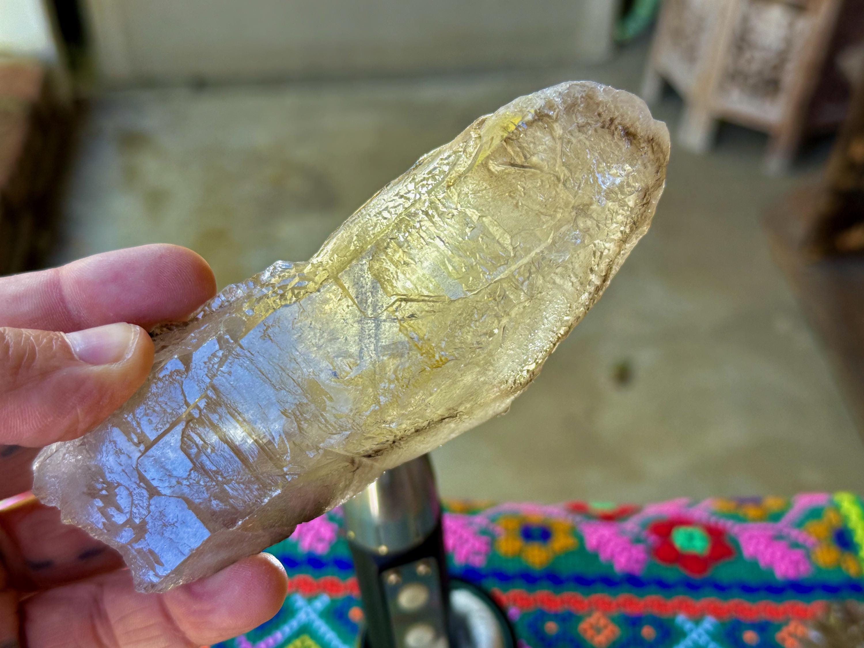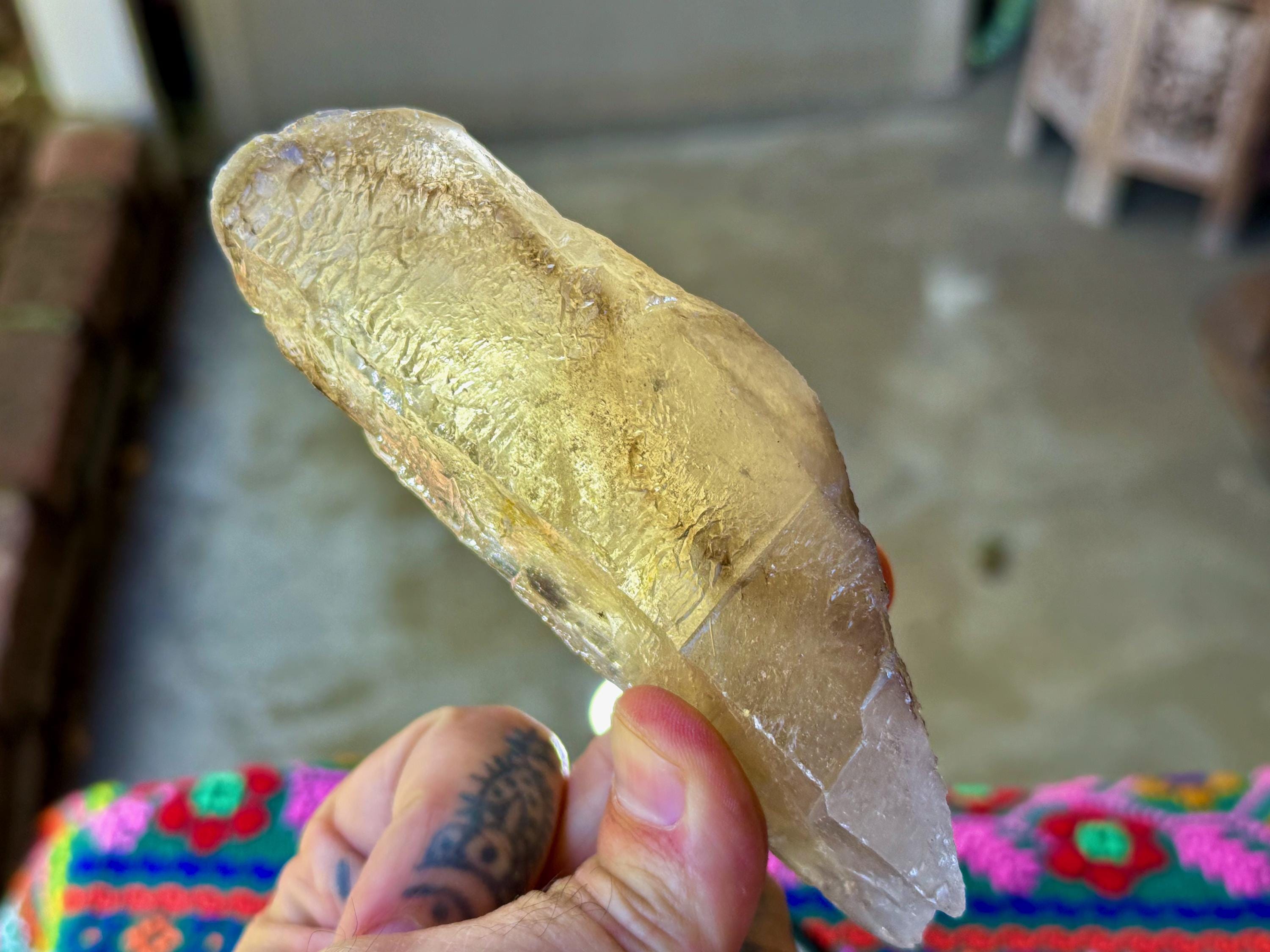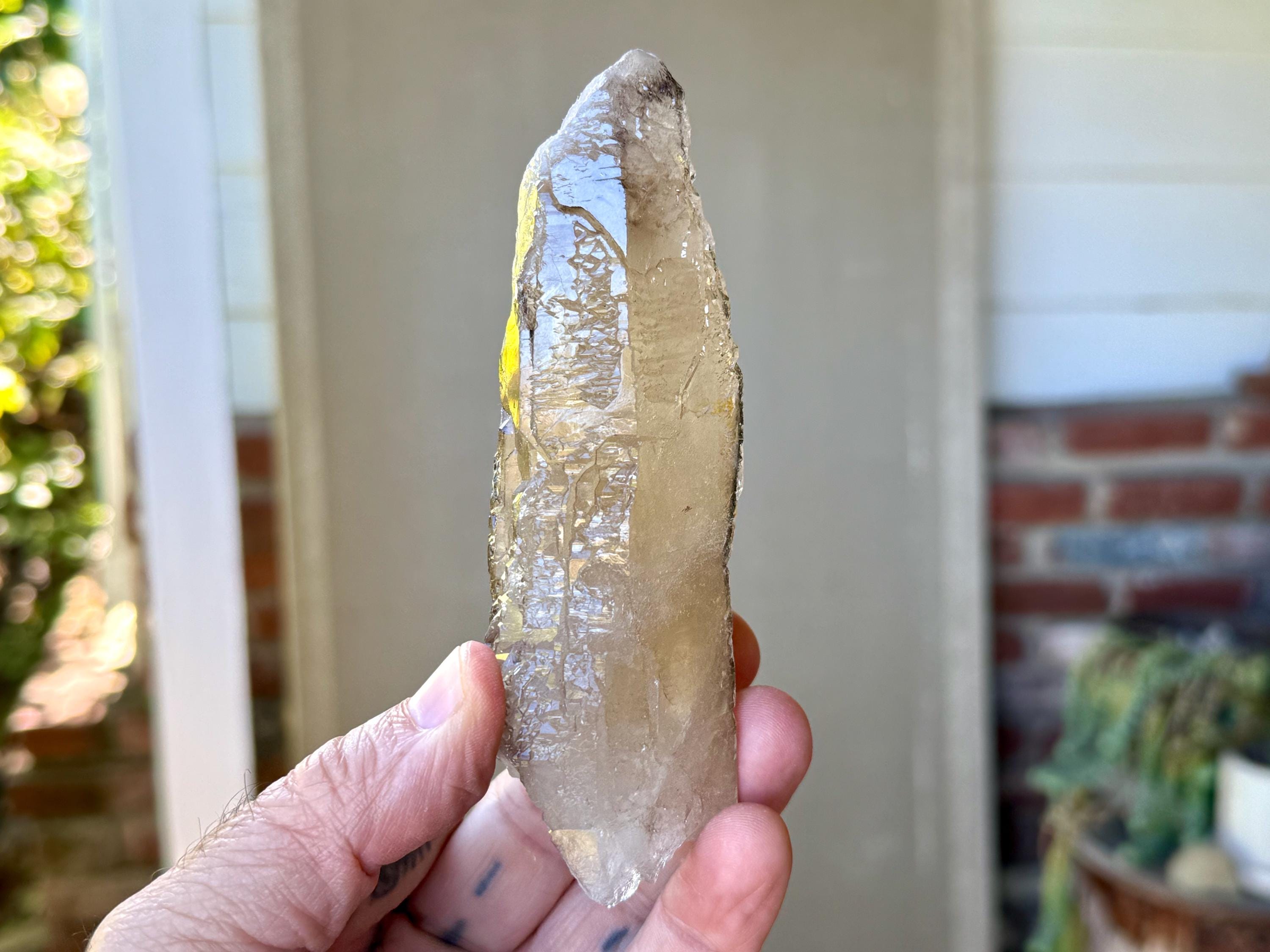 This natural Elestial Smoky Citrine crystal comes from a recent find in the Aracuai region of Minas Gerais, Brazil. Citrine activates, opens, and energizes the Solar Plexus and Navel Chakras, releasing personal power, creativity and most importantly the ability to manifest.