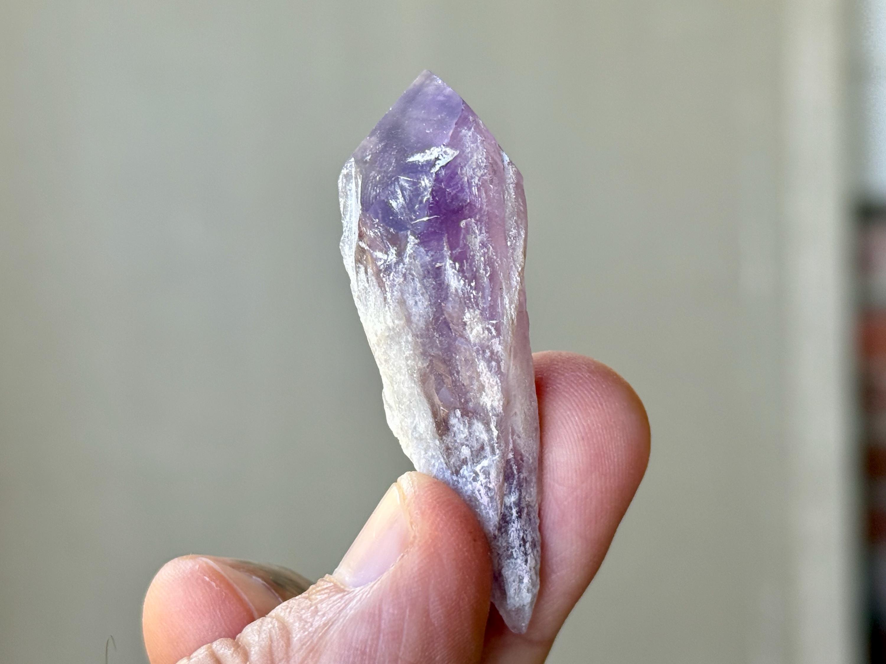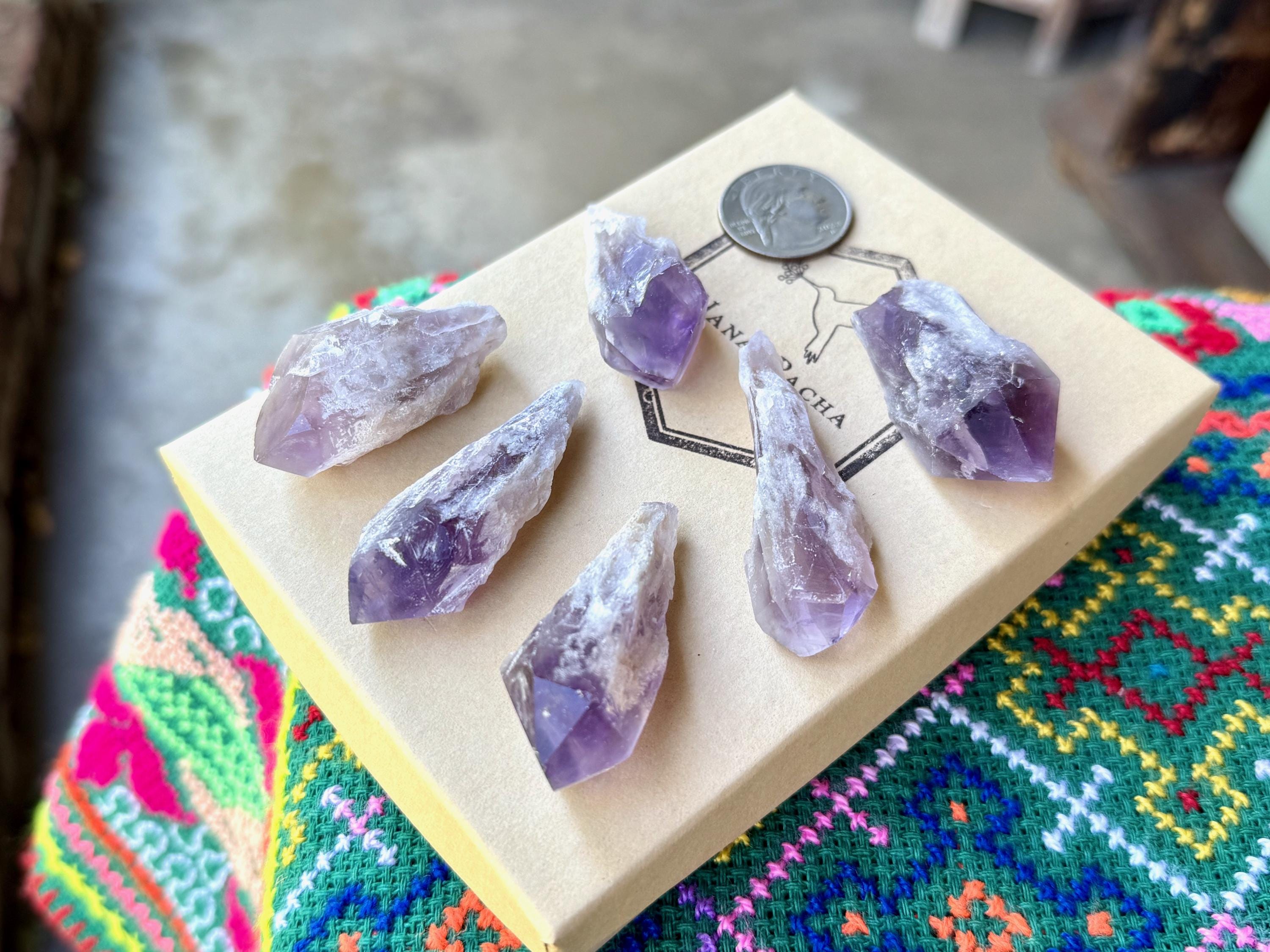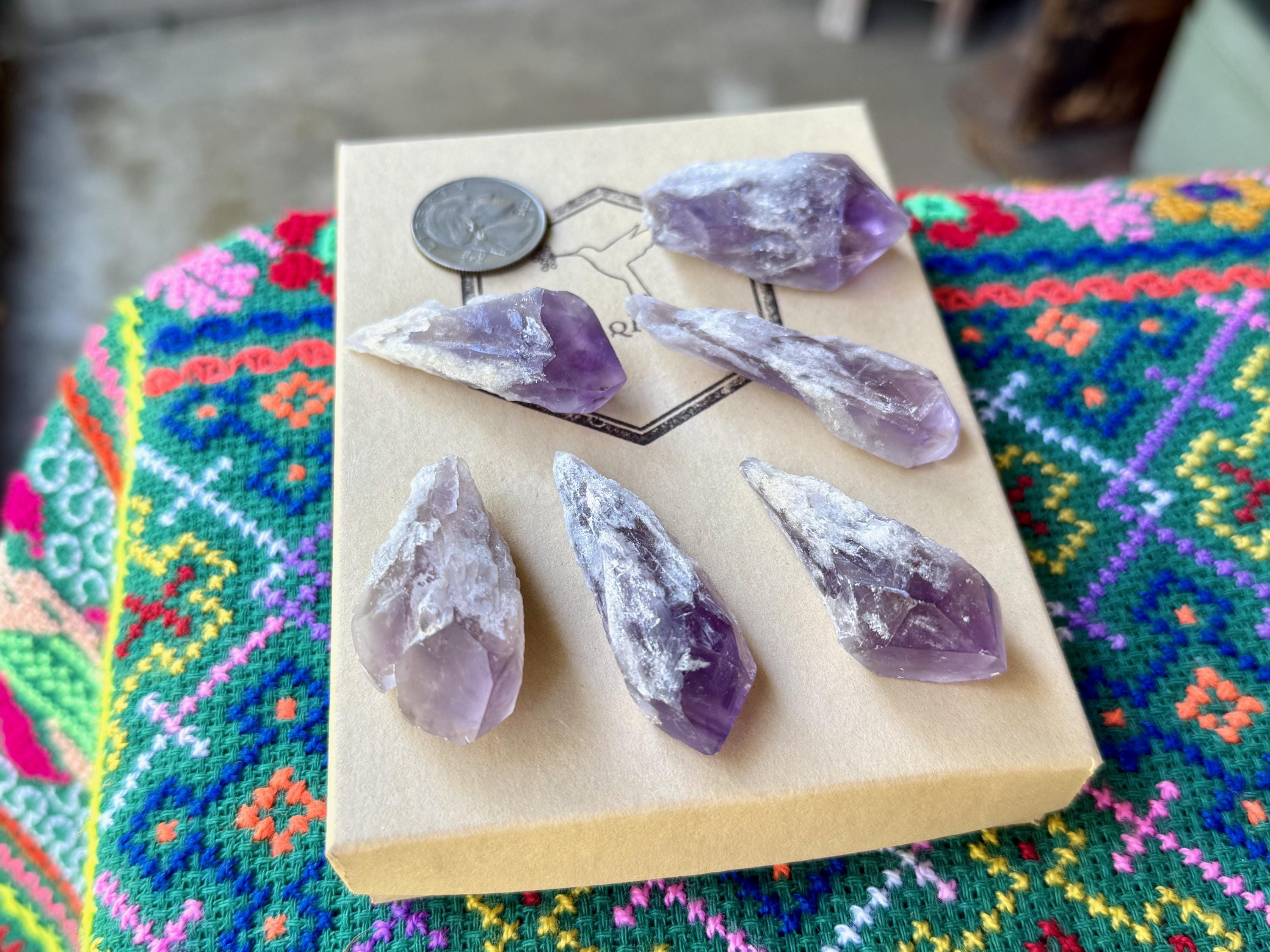 These Root Amethyst crystals have vibrant purple hues and lovely clarity when backlit. The "root" portions are naturally etched and elongated. Terminations are excellent. Great crystals for gridding or jewelry.