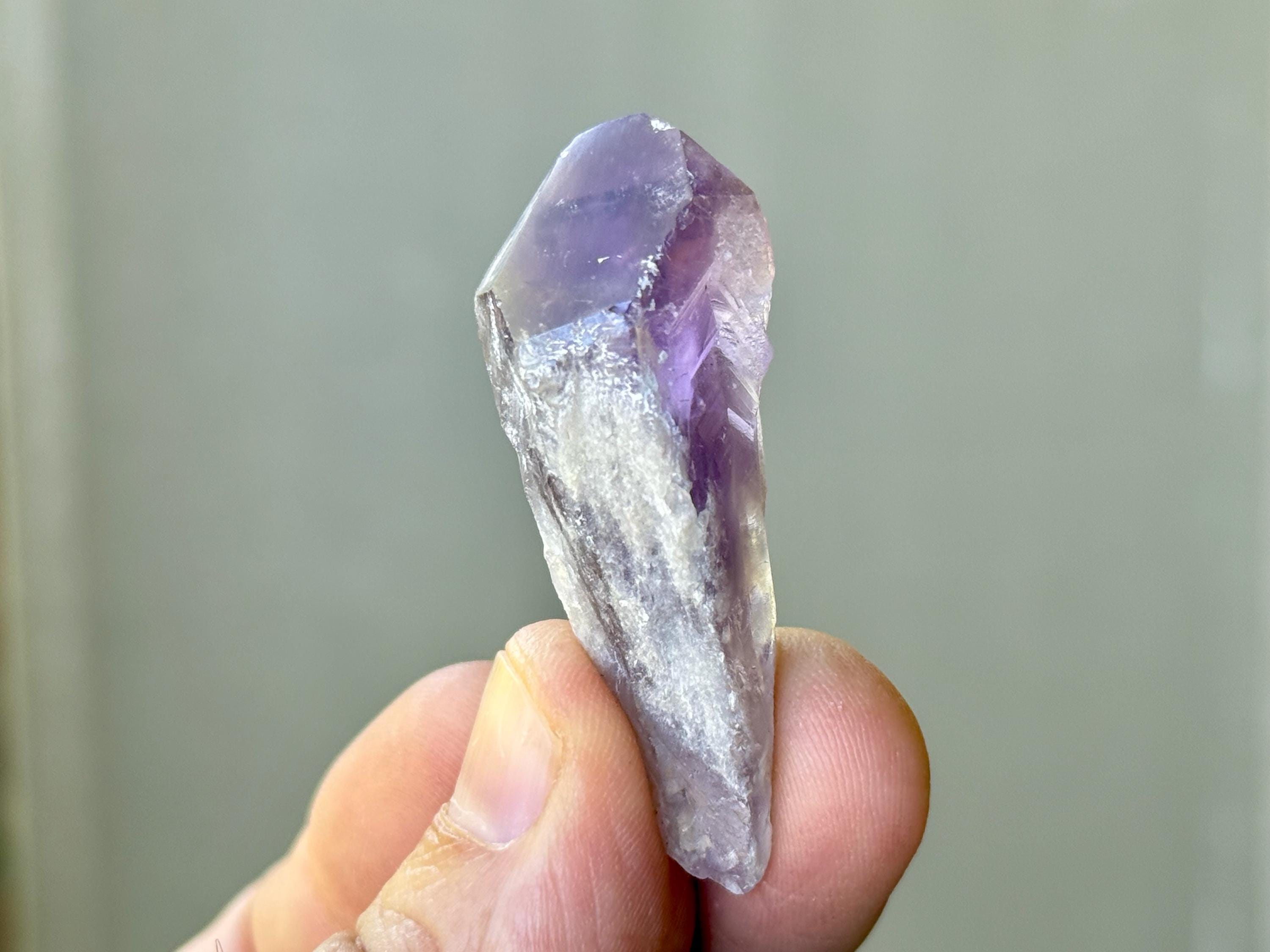 These crystals are referred to as "root" Amethyst because of their long root-like bodies, which are often etched with natural hydrothermal textures. Amethyst, in general, carries a very highly vibrational sweet energy, particularly stimulating to the Third Eye, Crown and Etheric Chakras.