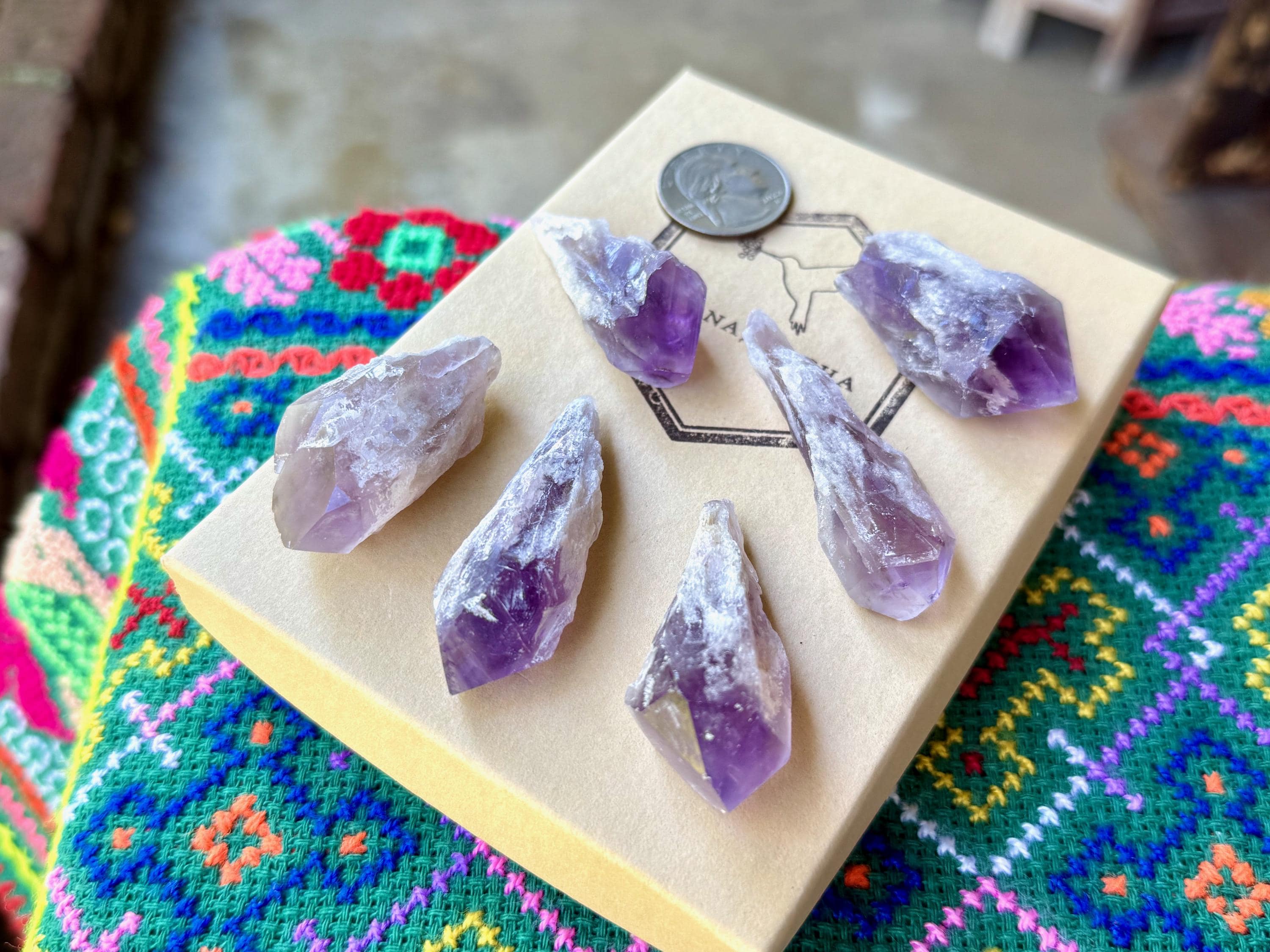 This lot of SIX Root Amethyst crystals comes from Bahia, Brazil.