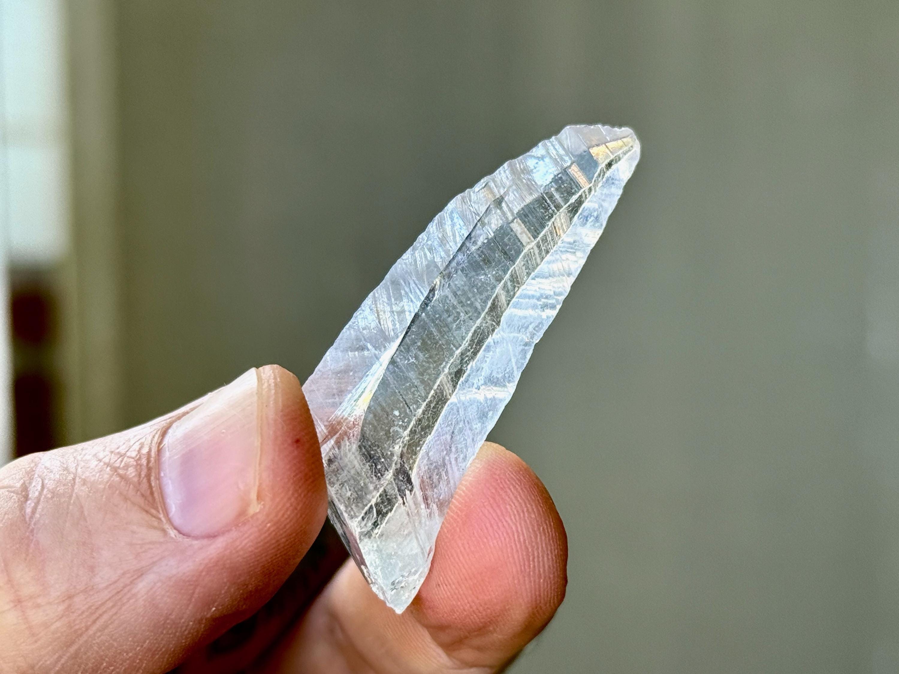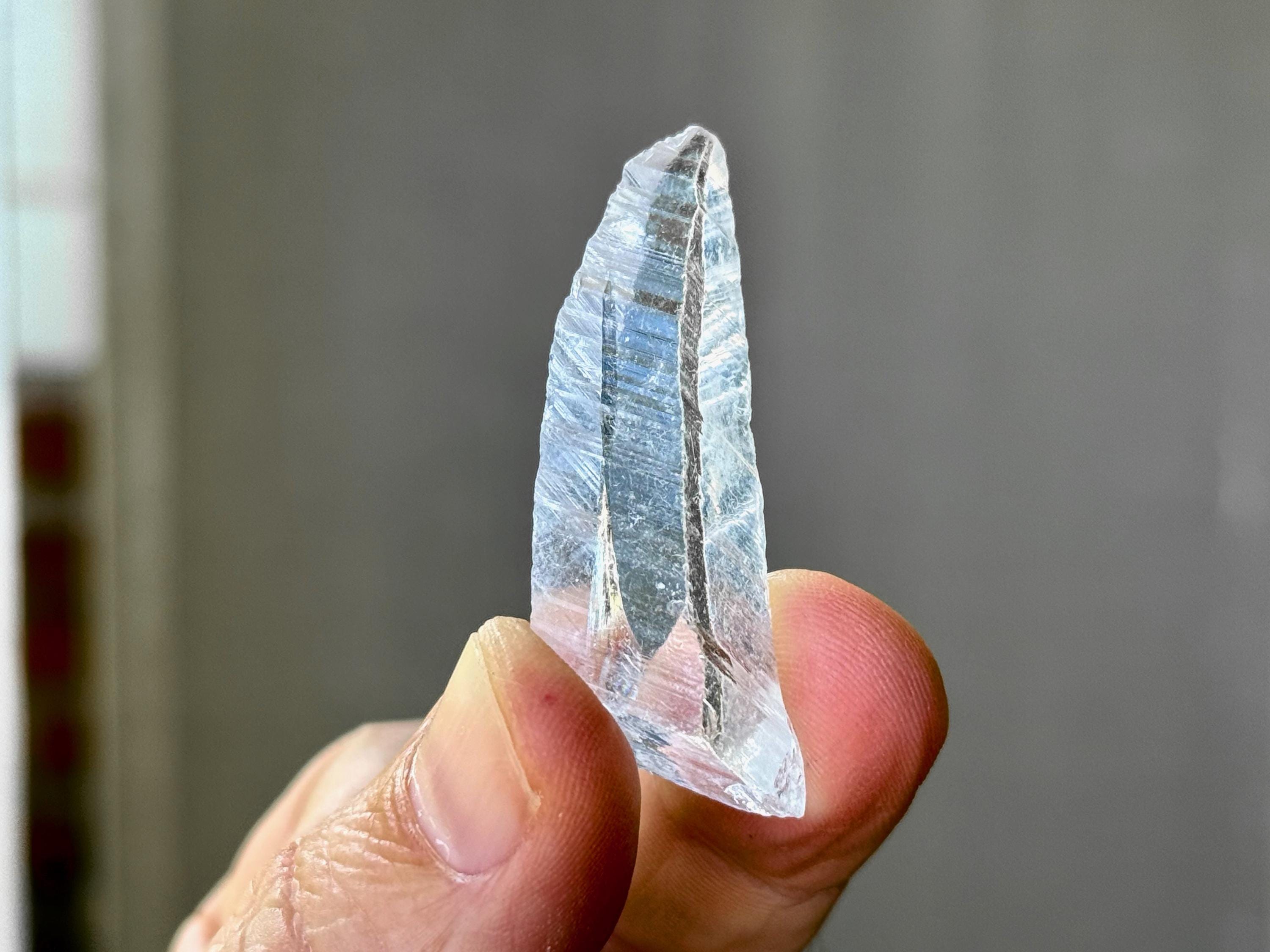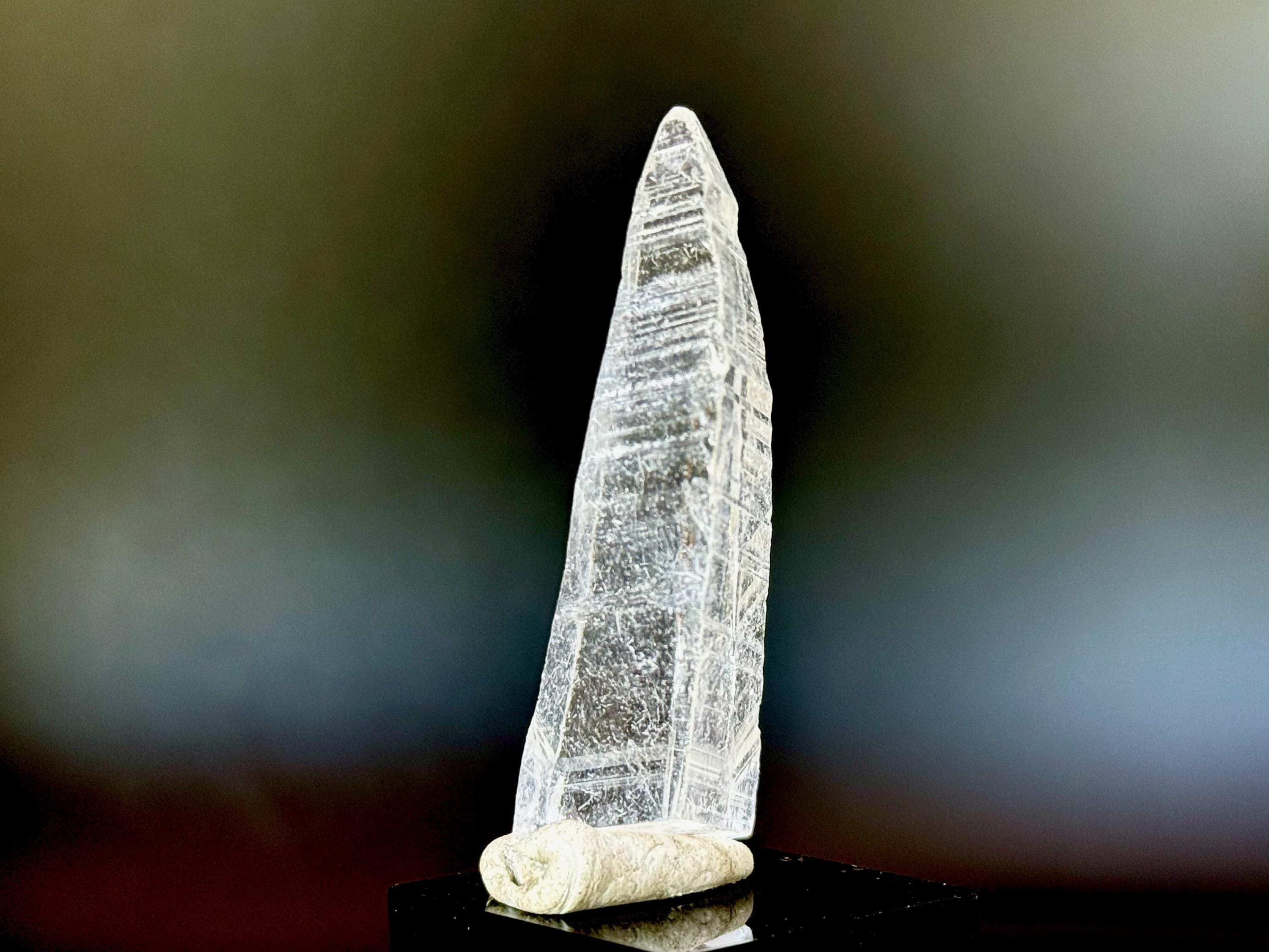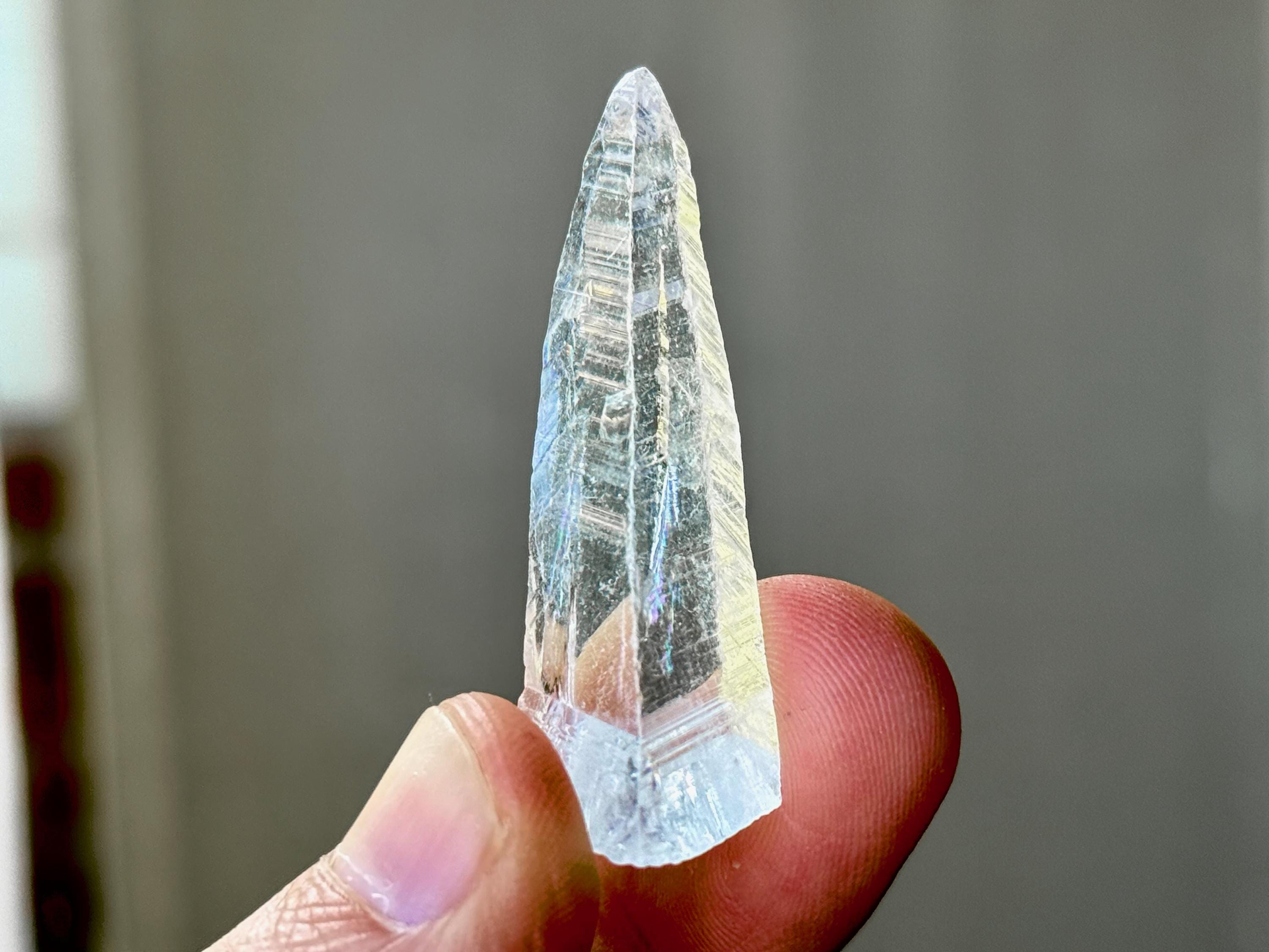 Glassy luster and water-clear clarity to this superb Nifontovite crystal in a natural, tapered point formation. This piece displays the characteristic diagonal striations on its sides, and exhibits a glassy complexion.