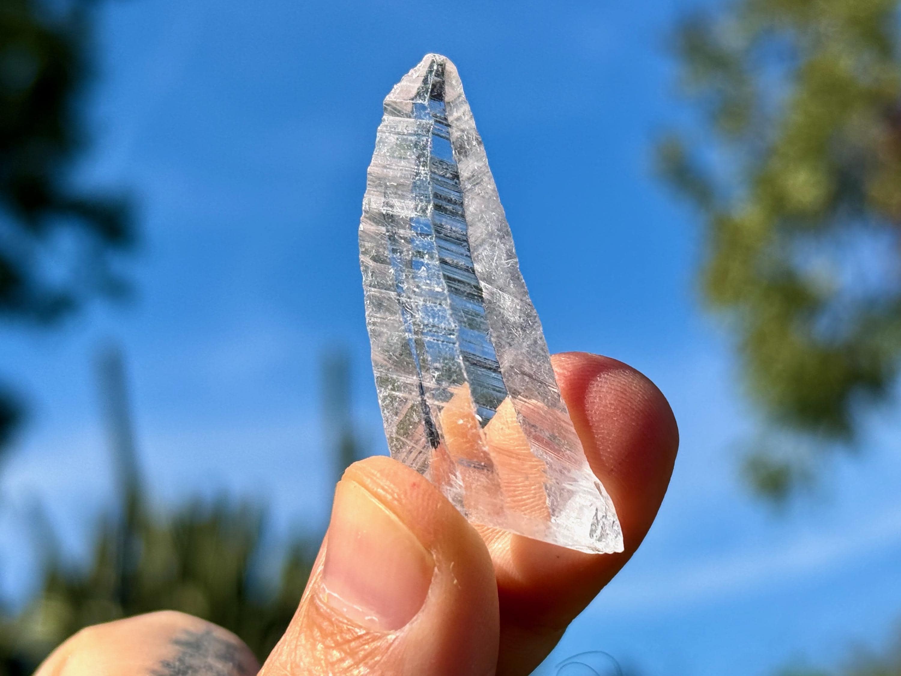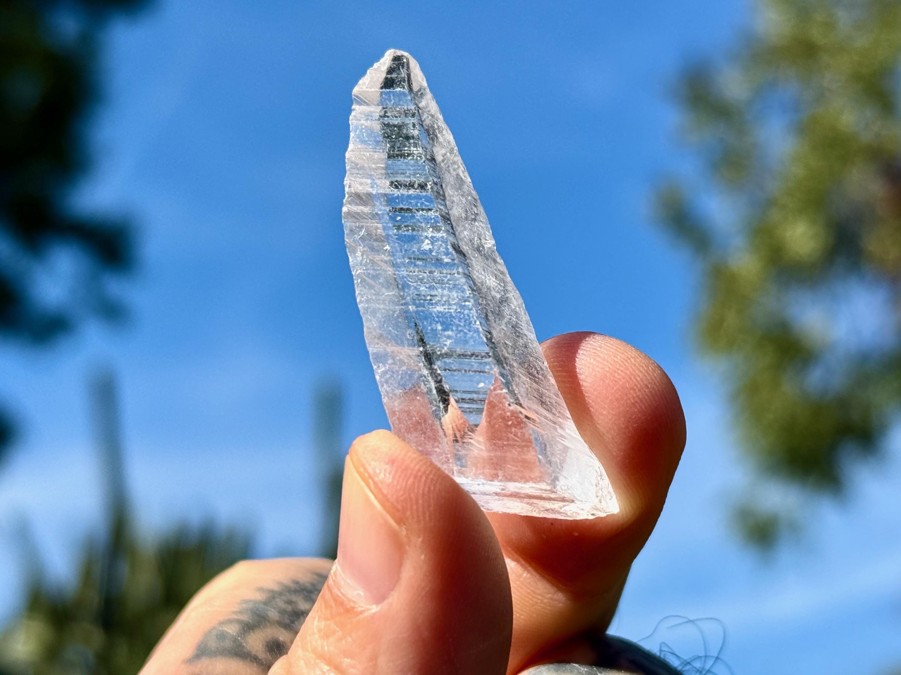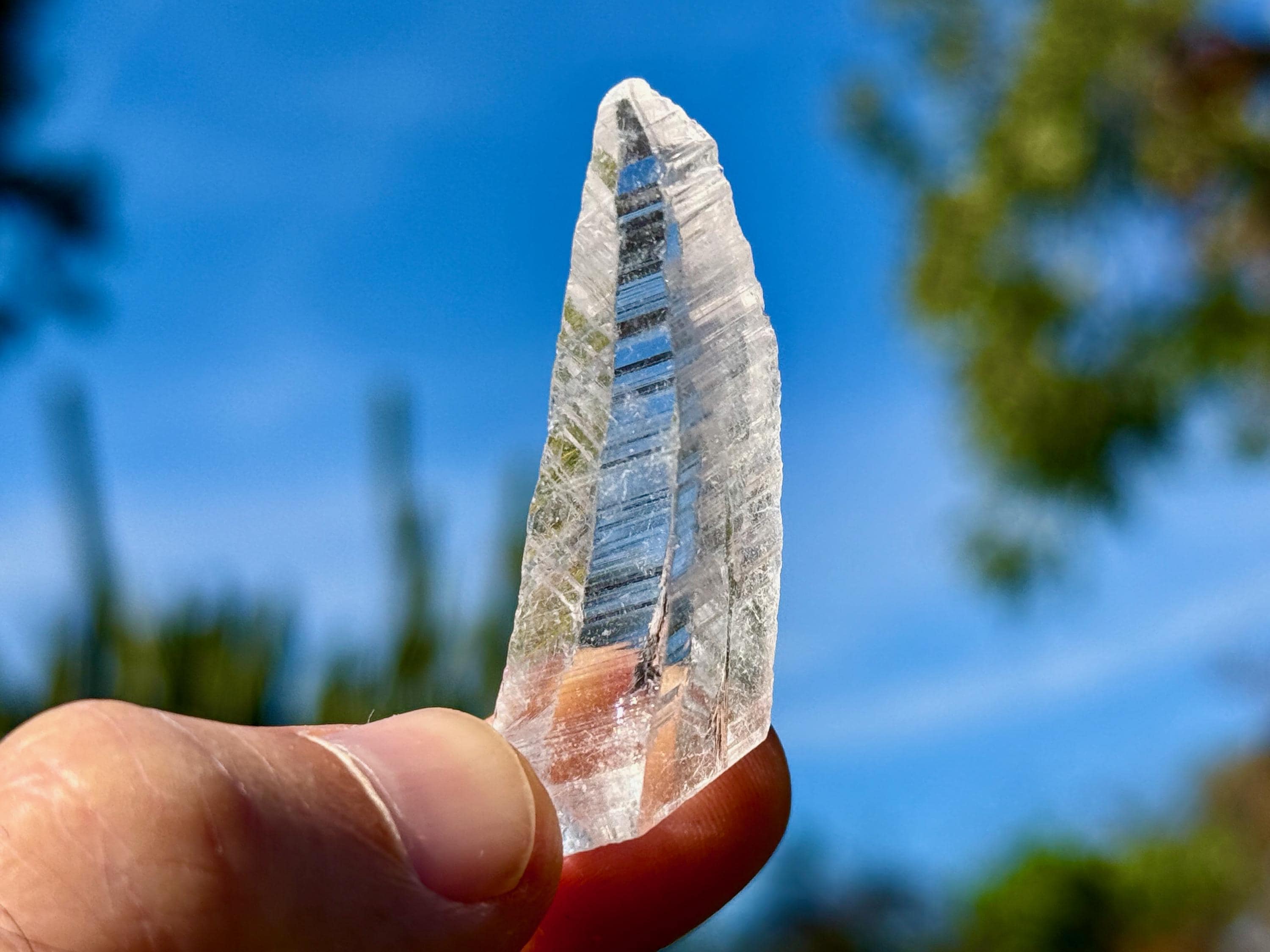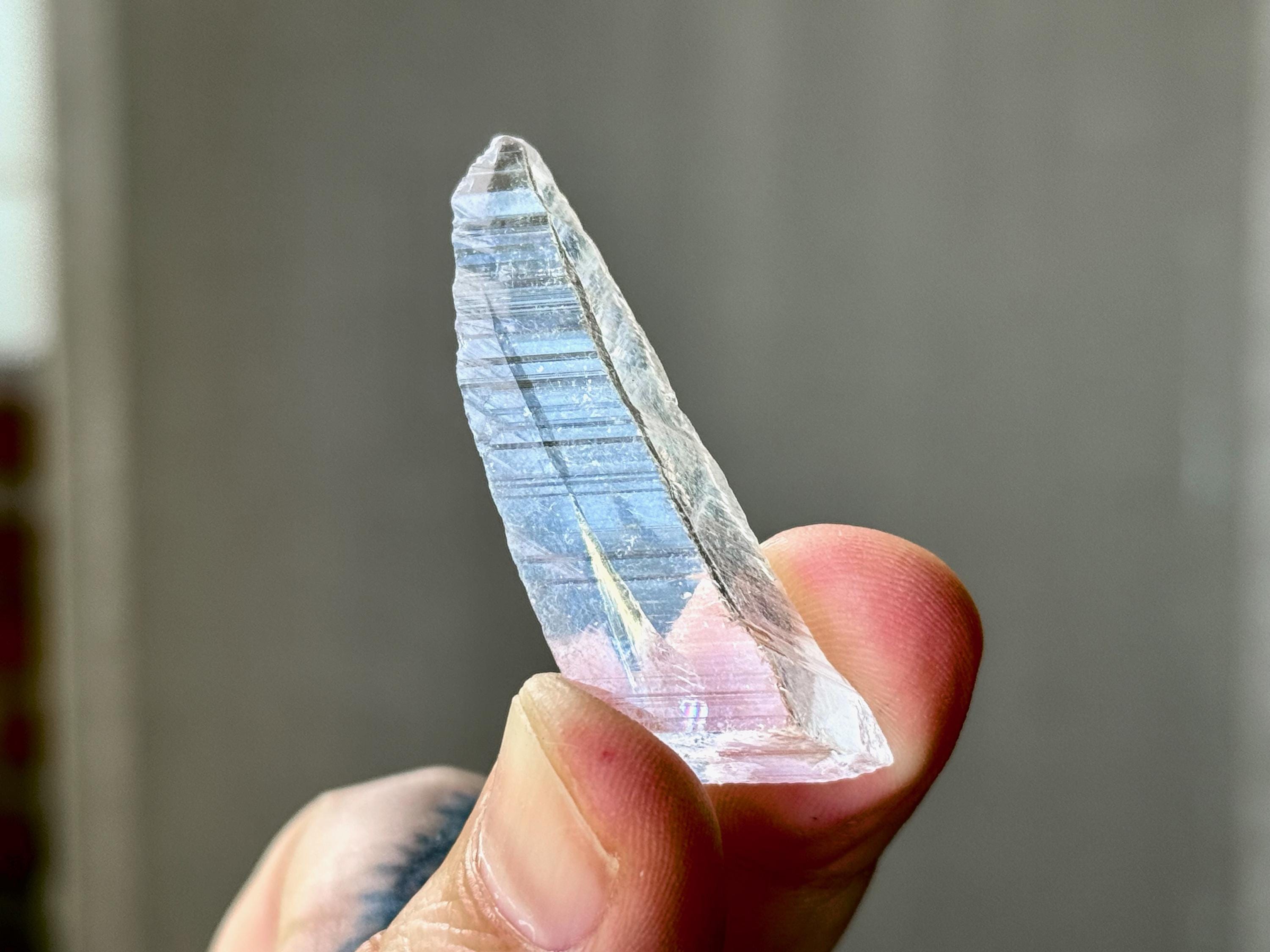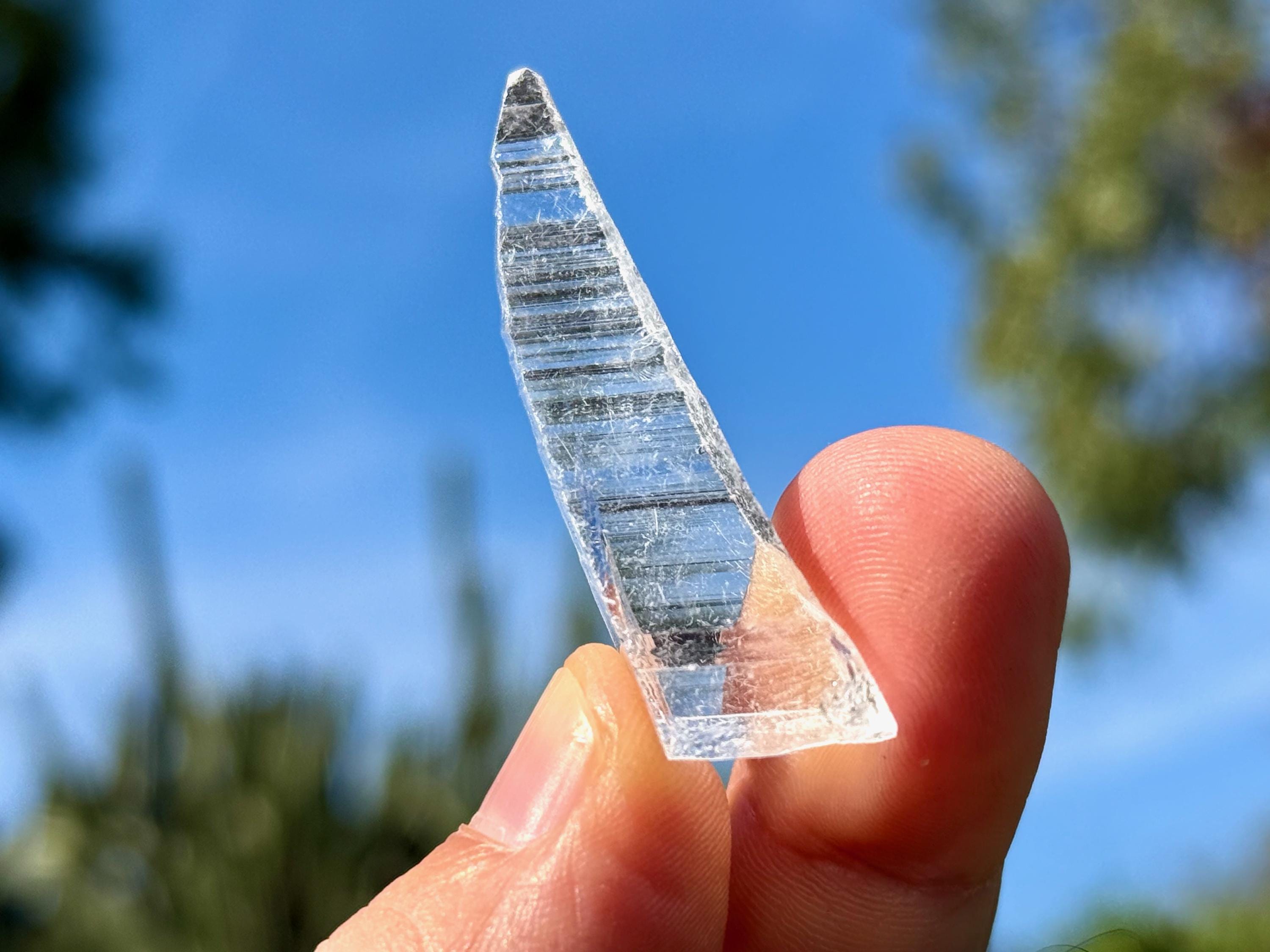Glassy luster and water-clear clarity to this superb Nifontovite crystal in a natural, tapered point formation. This piece displays the characteristic diagonal striations on its sides, and exhibits a glassy complexion.