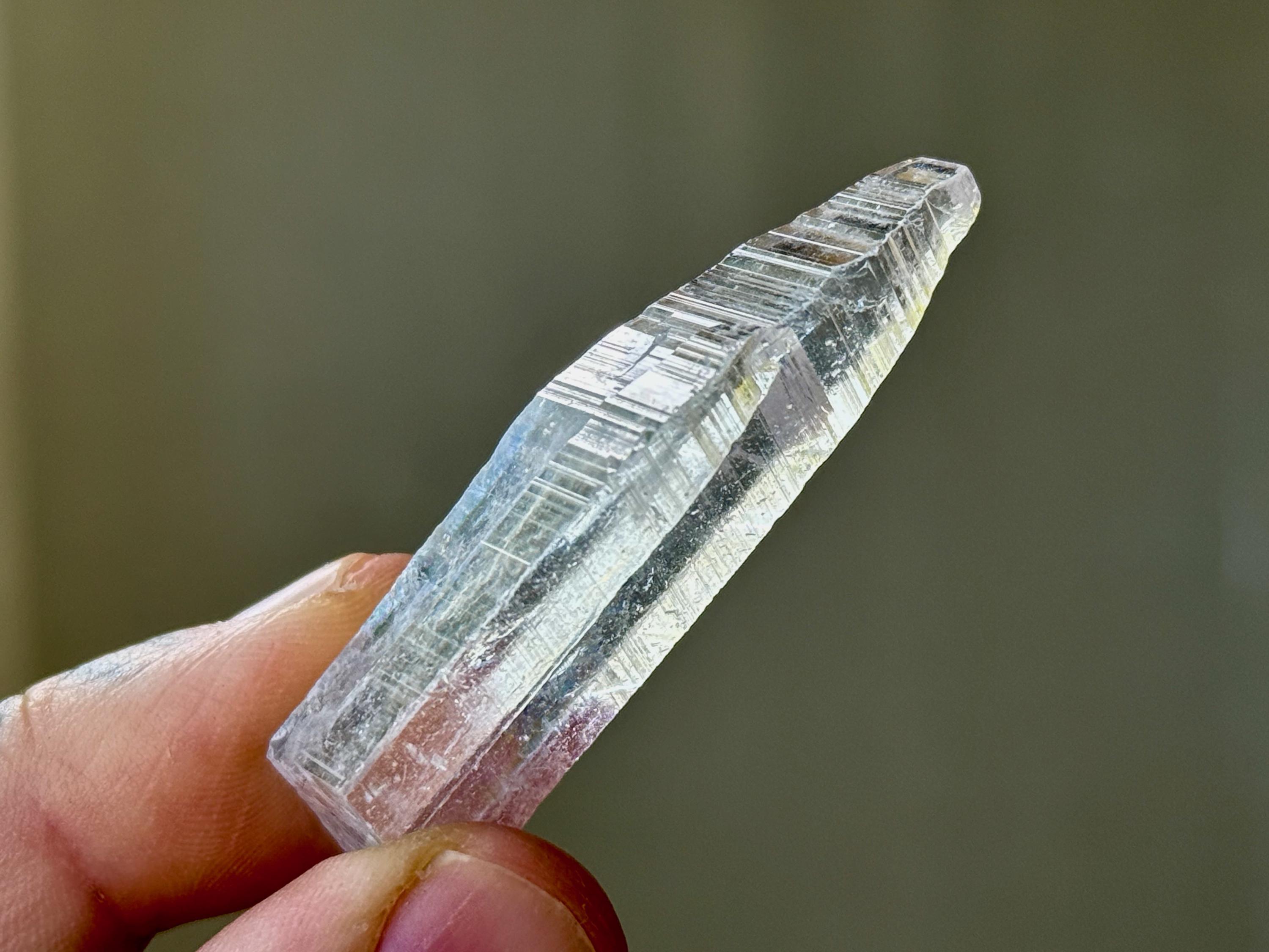 This crystal is beautifully terminated with a natural, "cleaved" (flat) termination, and the base is also self-healed. One of the best of the best from this collection.