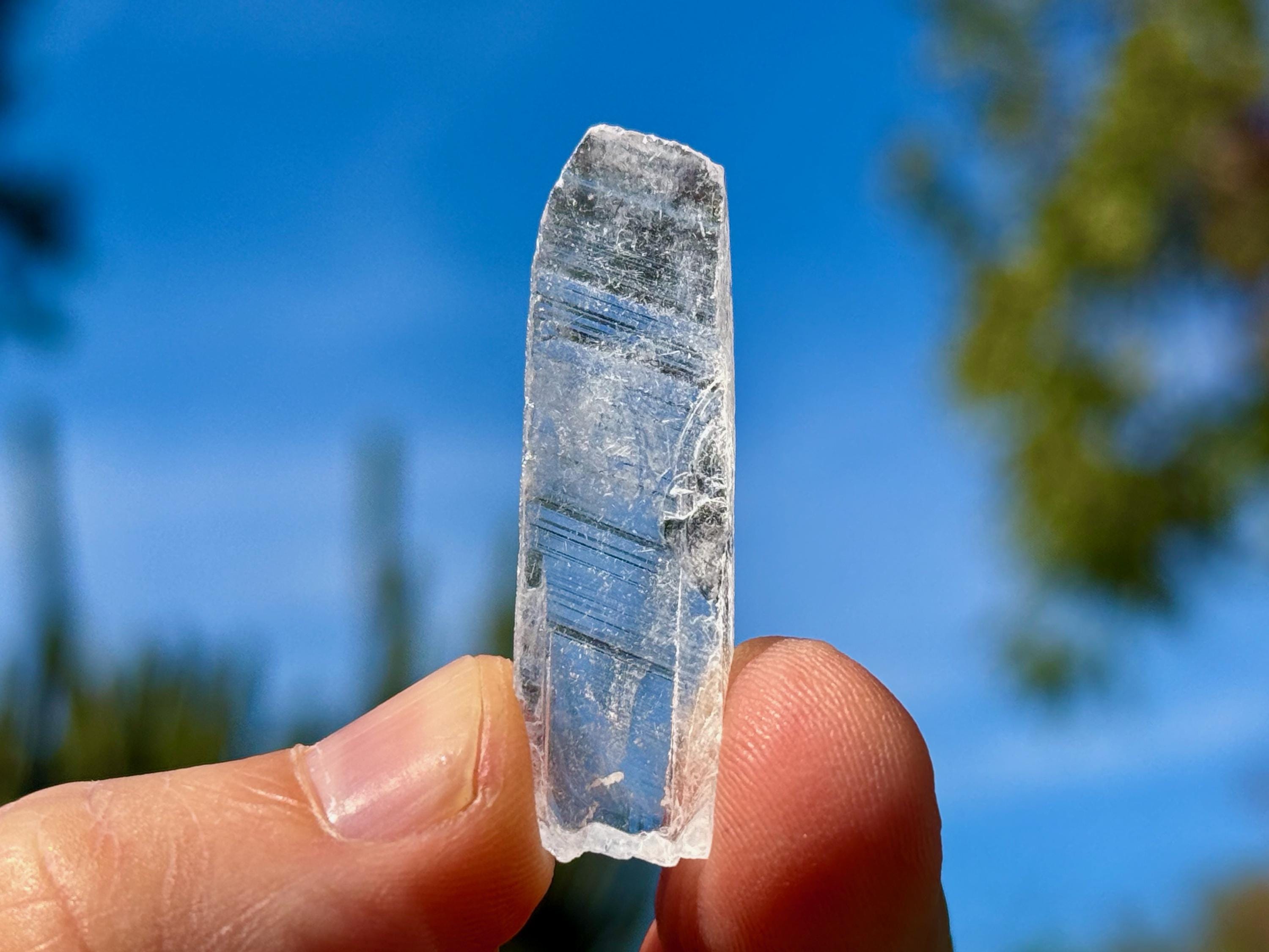 Lustrous and water-clear, this is a lovely Nifontovite crystal in a broad and flat tabular ("tabby") formation. This crystal exhibits the characteristic diagonal striations on its front side.