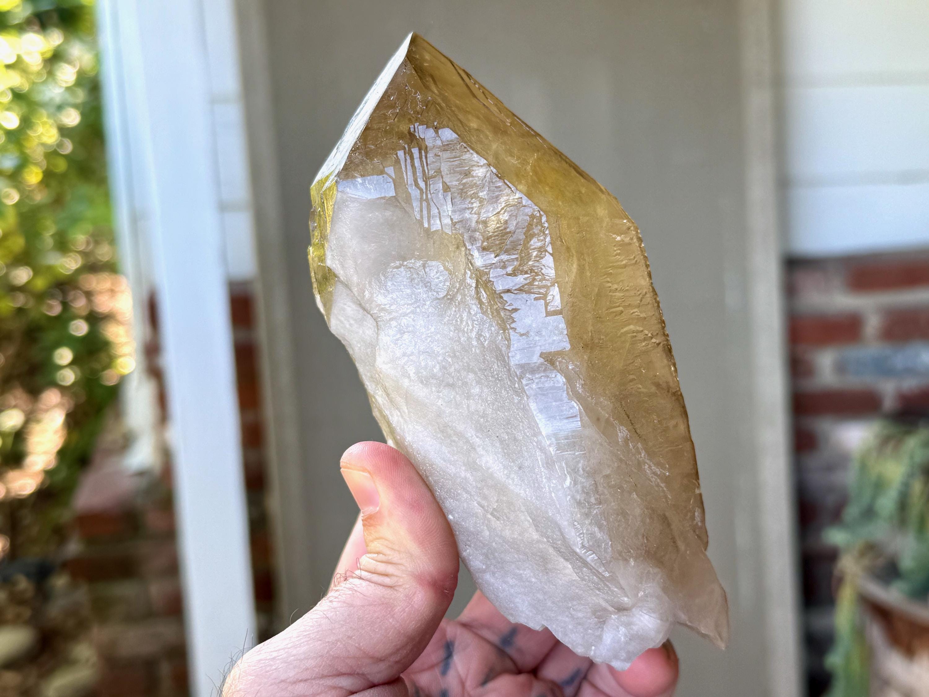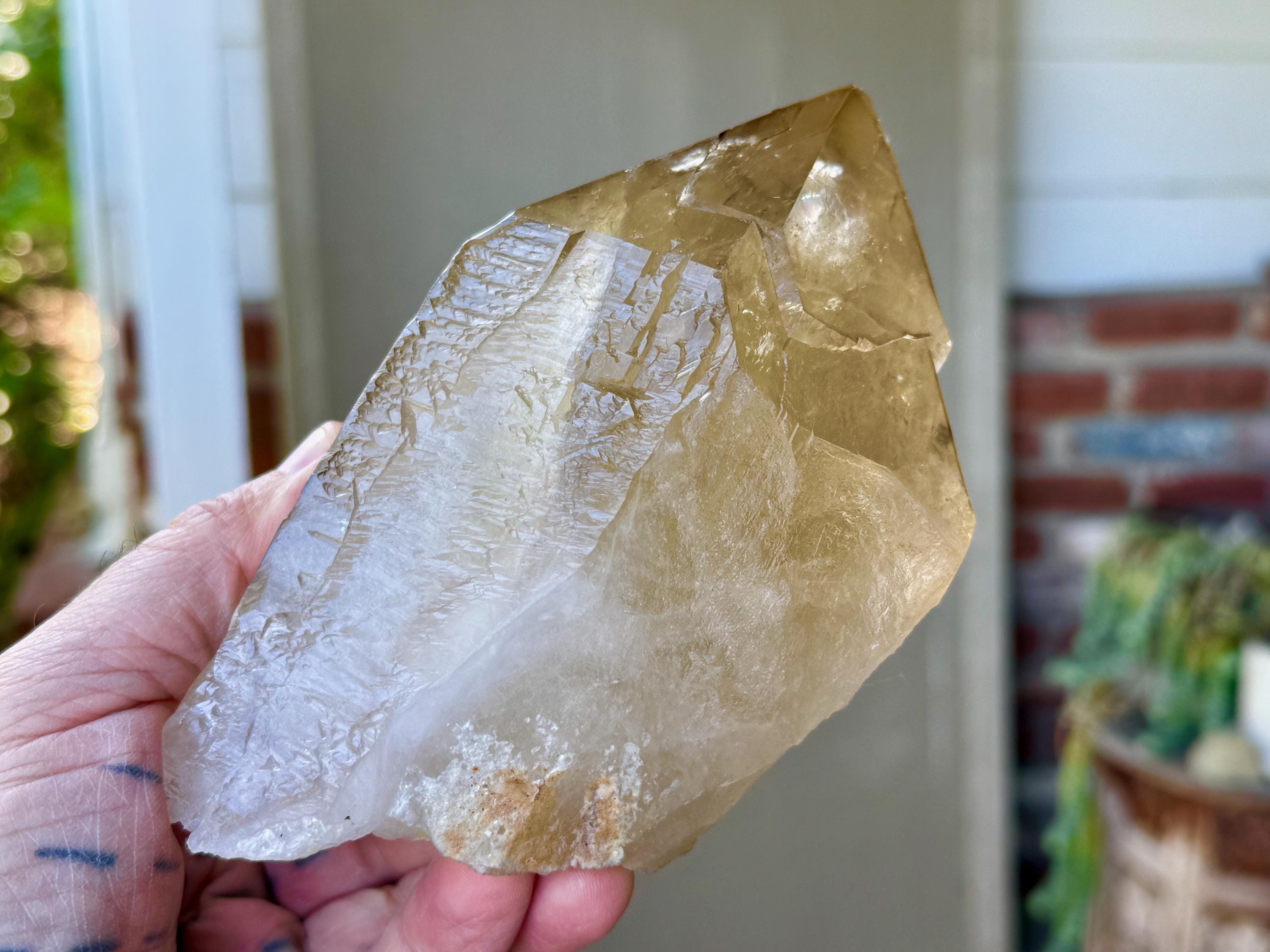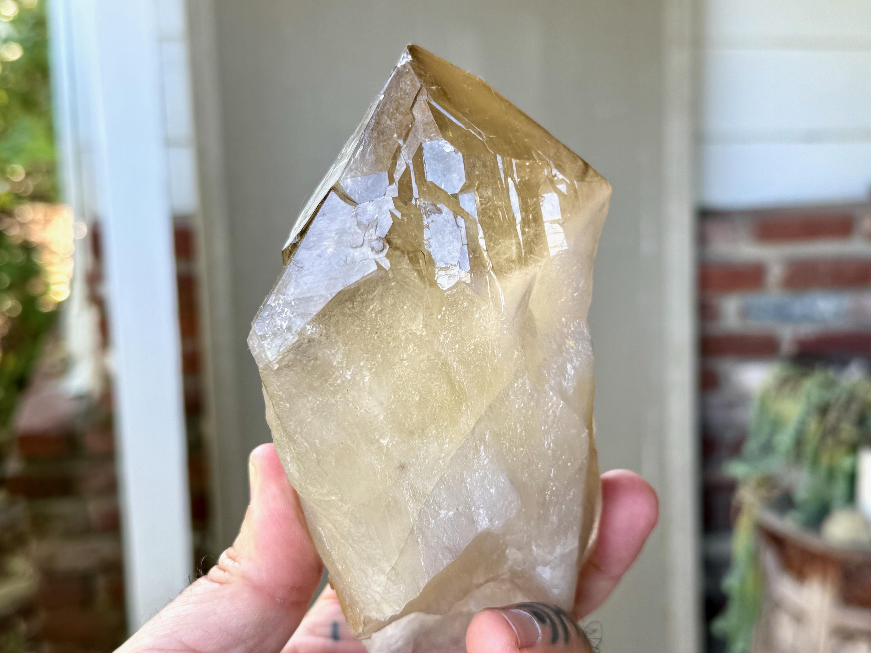 This natural Cathedral Citrine crystal comes from a recent find in Aracuai, Minas Gerais, Brazil. Citrine activates, opens, and energizes the Solar Plexus and Navel Chakras, releasing personal power, creativity and most importantly the ability to manifest.